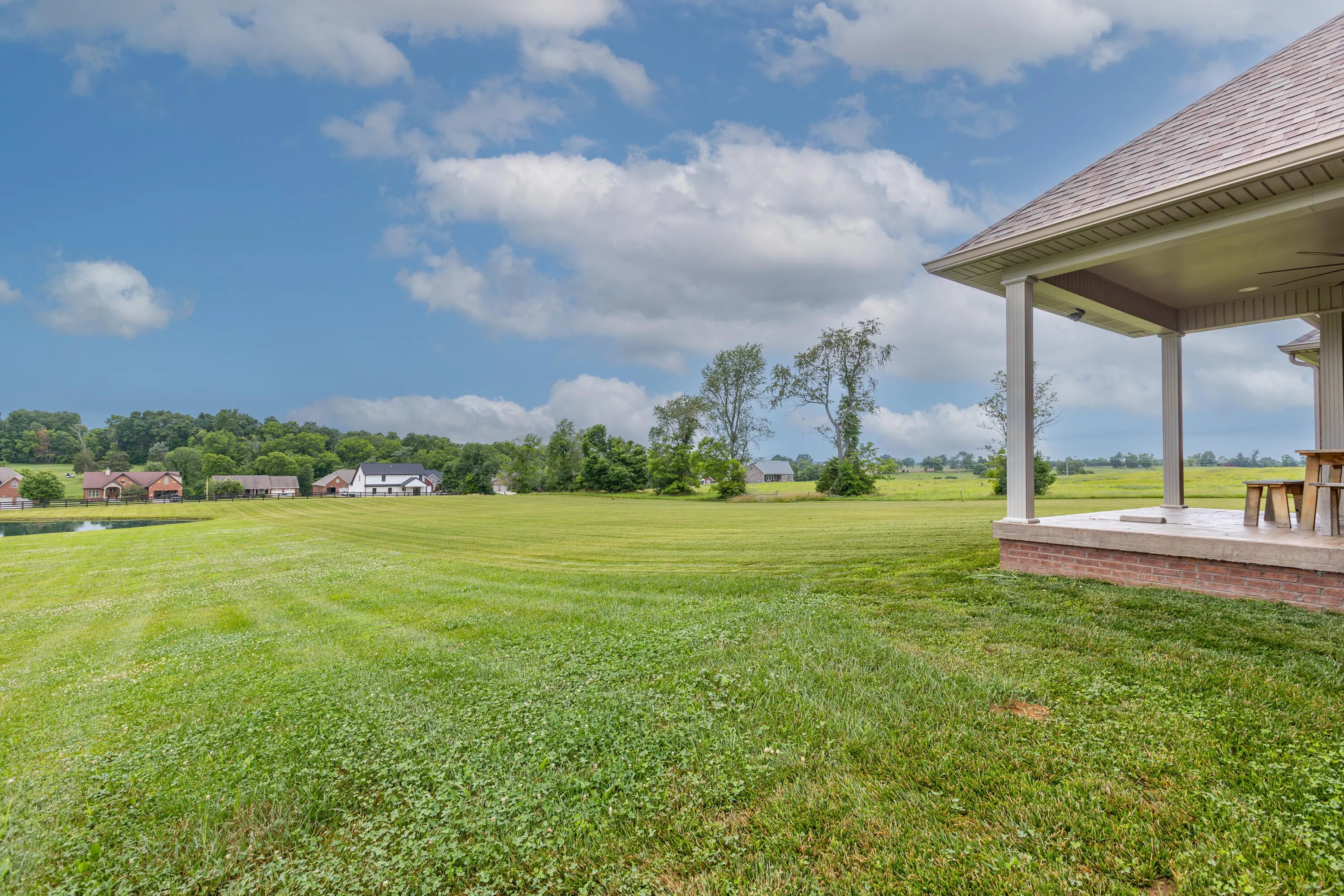 Welcome to this custom-built gem nestled in the serene community of The Gardens, where modern luxury meets country charm. Built in 2021 and situated on 8.25 scenic acres, this 3-bedroom, 2-bath home offers the best of both worlds with peaceful privacy and exciting potential. Step into an open concept living space tailored for entertaining, featuring rich custom cabinetry, tile shower, and a spacious walk-in closet in the primary suite. Every detail has been thoughtfully curated, making this home as functional as it is beautiful. Take your morning coffee on the custom stamped back porch overlooking the fully stocked pond or hop on your golf cart and follow the path to the golf course—yes, it's that close. With no HOA restrictions, the land offers incredible flexibility. Subdivide into multiple lots and bring your vision to life with electric service already in place to build the outdoor structure of your dreams. Whether you're looking for a forever home, a getaway, or a smart investment, this rare opportunity is ready to welcome you.