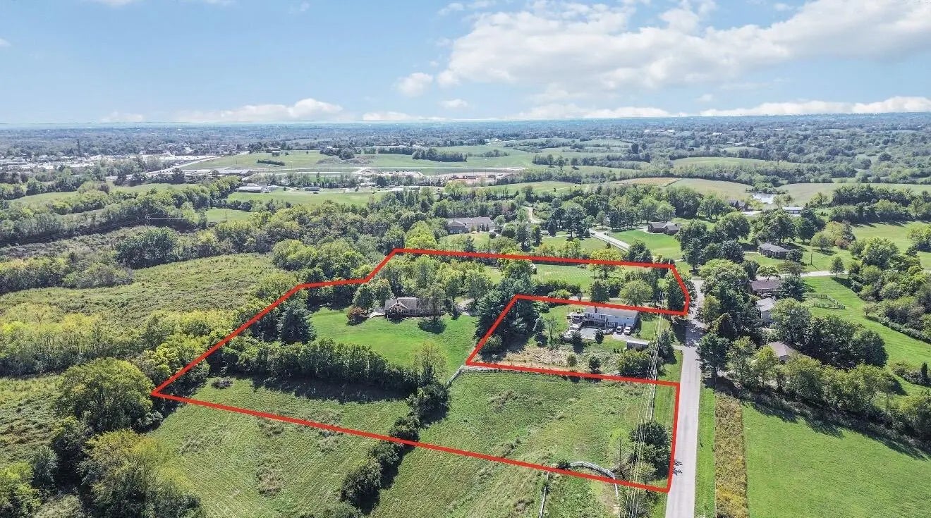 Discover this rare and remarkable opportunity to own a beautifully maintained custom-built home, perfectly situated on 7.37 acres along a quiet street -just minutes from Richmond Centre, the new city park under construction, with easy access to both Exit 90 and 87 off I-75. The perfect mini farm for those who would enjoy having animals. This spacious 4-bedroom, 3-bath home offers both comfort and functionality. The well-equipped kitchen features stainless steel appliances and opens to a dining room and living room with a charming double-sided gas fireplace connecting the living and family rooms. Two large family rooms provide ample space for entertaining and everyday living. Enjoy the outdoors from the deck just off the family room, complete with an electric awning for shade and relaxation. The large unfinished basement-formerly used as a dance studio-includes a converted two-car garage (now one-car plus a workshop area). The basement also has a tornado shelter. Two fenced lots sit behind the home: one with an older metal barn and another with a field and water spigot previously used for livestock. This property includes two parcels: Baby Farm 2 (5.6193 acres) and Tract 1-B (1.87 acres), both partially fenced. Windows were replaced in 2018. The roof was recently replaced in December of 2025. Originally built in 1973, the home was expanded with a second floor added a few years later. A 14-month Home Warranty Inc. "Core Plan" will be provided to the buyer at closing with an acceptable offer. Note: Aerial boundary lines are approximate and do not include the neighbor's corral. Please refer to the official plat for precise property lines.