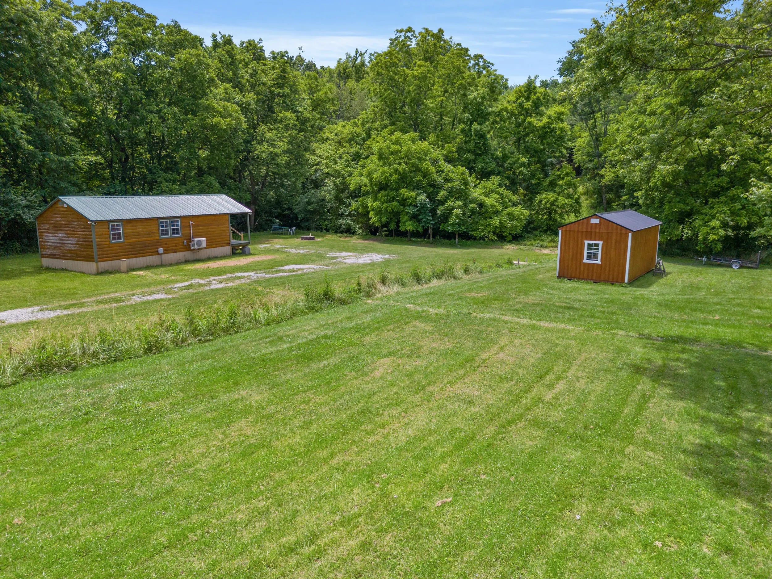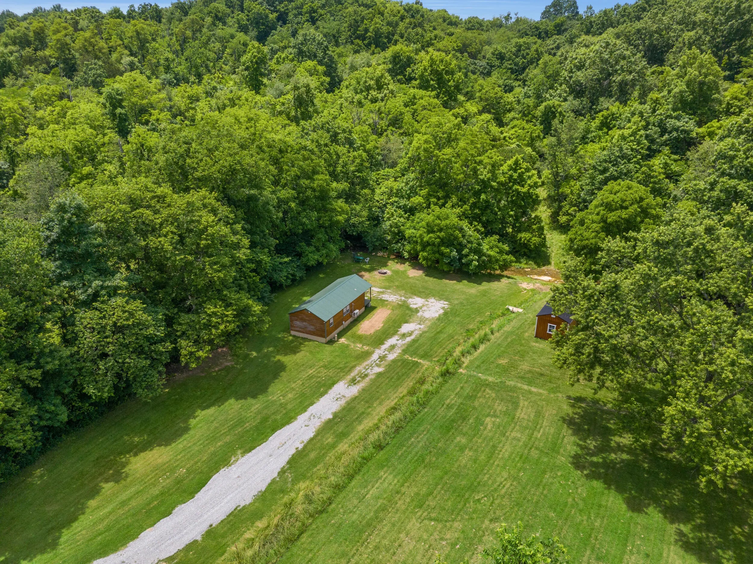 INVESTORS WANTED. Property is 10 minutes to I75 and Toyota. 5 acres of park like setting. 1.5 clear, 3.5 wooded. 1078 sq ft Singlewide mobile home 2022. 3bd 2 bath, 600 sq ft 1 bd, 1 bath Amish built luxury cabin. 12 x 24 garage with over head door. shed and out building. Cabin has generated $75 per night VRBO. Mobile will likely rent for $1,600 per month. Can generate income 3k to 3.5k per month. Property has creek running at wood line. It is in a partial flood zone. It has never reached any of the buildings and drains quickly into the near culvert. You will likely need cash or at least 25% down to finance. This will not qualify for a traditional loan.