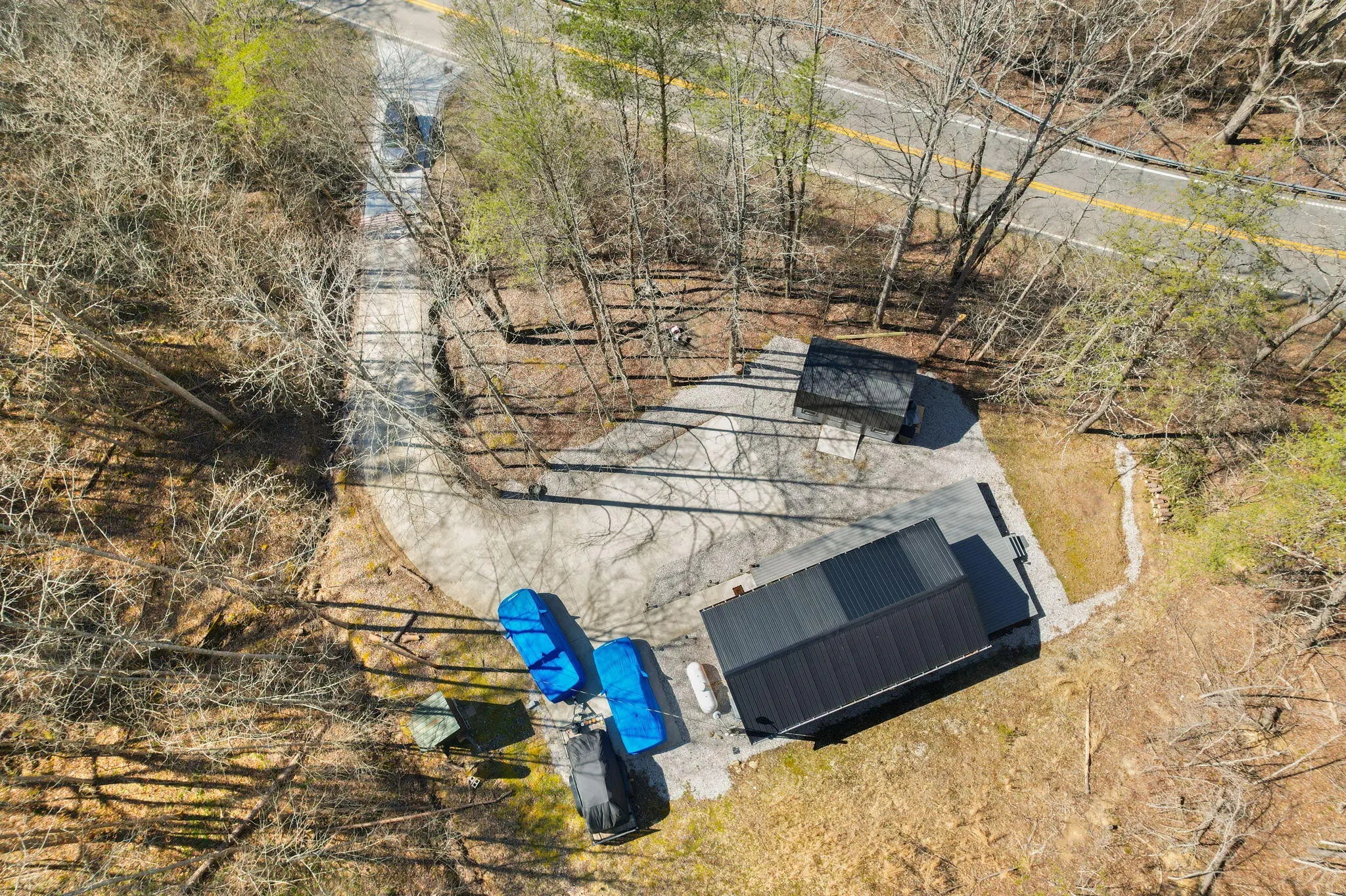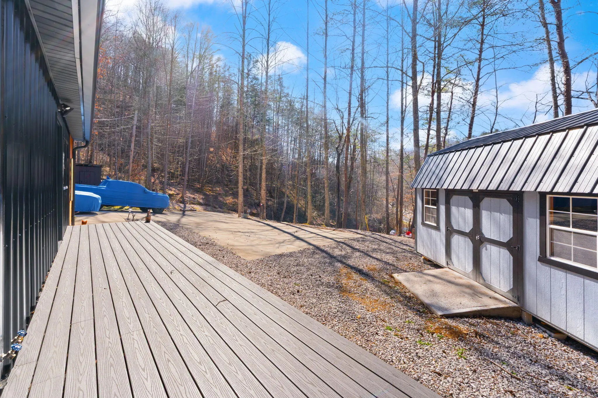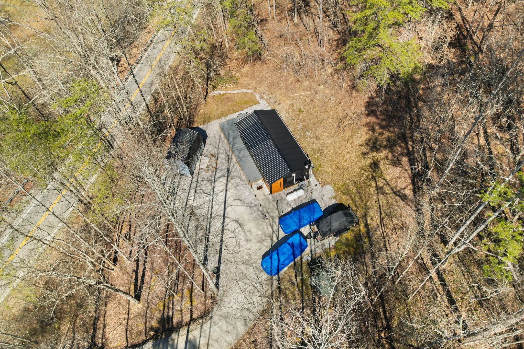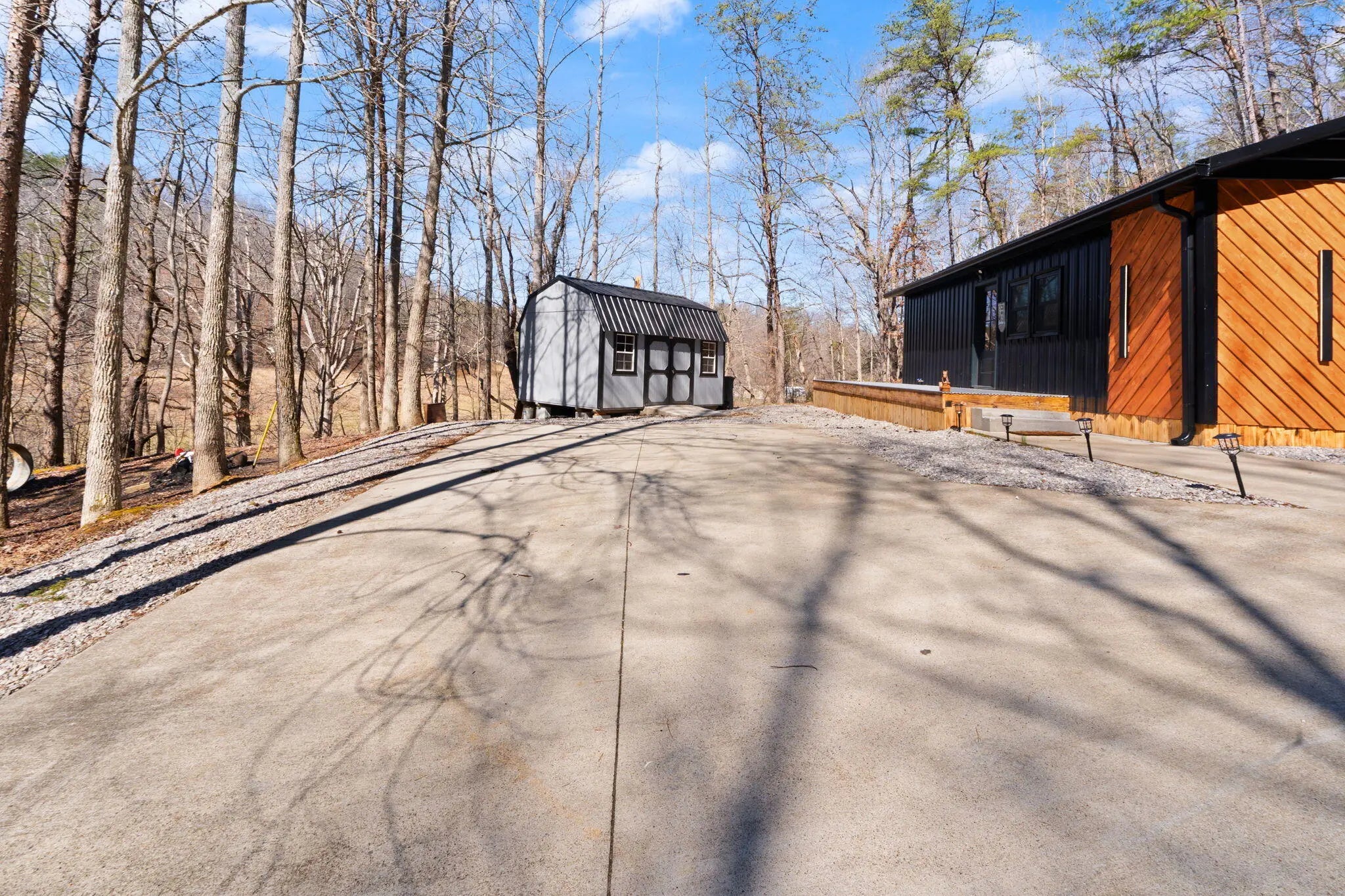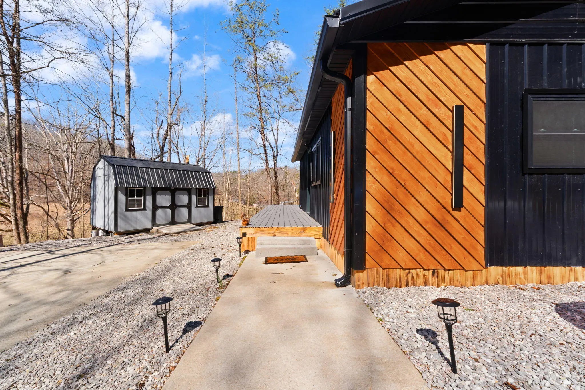 Tucked behind a private gate and set against the hillside on 9.02 surveyed acres, this fully reimagined modern cabin retreat delivers luxury tiny living without sacrificing comfort, style, or convenience. If you've been waiting for something different, something intentional, something unforgettable, this is it. Completely gutted and rebuilt, this 515 sq ft custom home was designed to live big. The open concept layout flows effortlessly, anchored by a stunning custom kitchen featuring a gas range, modern cabinetry, and a functional island that doubles as a backup propane heating source. Every detail was thought through. From the hardwood floors throughout to the tile bath, this home feels like a boutique hotel suite tucked into the woods. The queen-size Murphy bed transforms the living space in seconds, allowing you to maximize every square foot. A full-size washer and dryer are thoughtfully positioned for true everyday livability. The living area is finished with a wall-mounted TV setup and LED accent lighting surrounding the mantle for a sleek, modern feel. Ceiling fans and a split unit provide efficient heating and cooling year-round, while the owned propane tank offers peace of mind in colder months. The bathroom is next-level for a home this size, complete with a stand-up shower, smart toilet, and smart mirror. It is modern, clean, and elevated. Outside, the charm continues. Board and batten siding paired with metal accents and a metal roof give this home a refined cabin-top aesthetic. A wraparound deck invites you to sit, breathe, and listen to nothing but the woods. When it rains, a natural runoff creates a waterfall effect along the small cliffs and caves scattered across the property. It is peaceful. It is private. It feels like your own hidden retreat. The land itself offers opportunity. There is a small trail system already in place and an additional cleared area where a manufactured home once sat, giving potential for expansion or another dwelling. A nice storage building adds extra functionality. The concrete driveway provides ample parking for multiple vehicles, boats, or side-by-sides. Located just 20 minutes to Corbin and approximately 15 minutes to both London and Barbourville, you get seclusion without isolation. Hospitals, shopping, restaurants, and everyday necessities are all within easy reach. Electric, city water, and septic are already in place. This property is ideal for the minimalist who refuses to compromise on style, the hunter or nature lover seeking a private basecamp, or anyone looking for a modern getaway with room to explore. Opportunities like this rarely come to market. It is not just a tiny house. It is a lifestyle shift. Schedule your private showing and experience it in person.