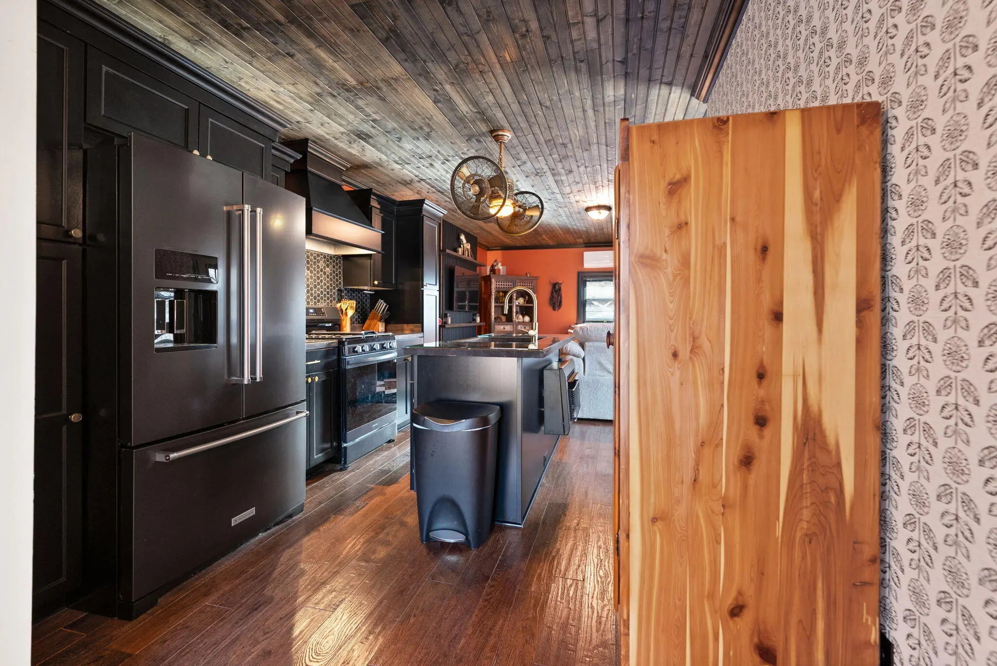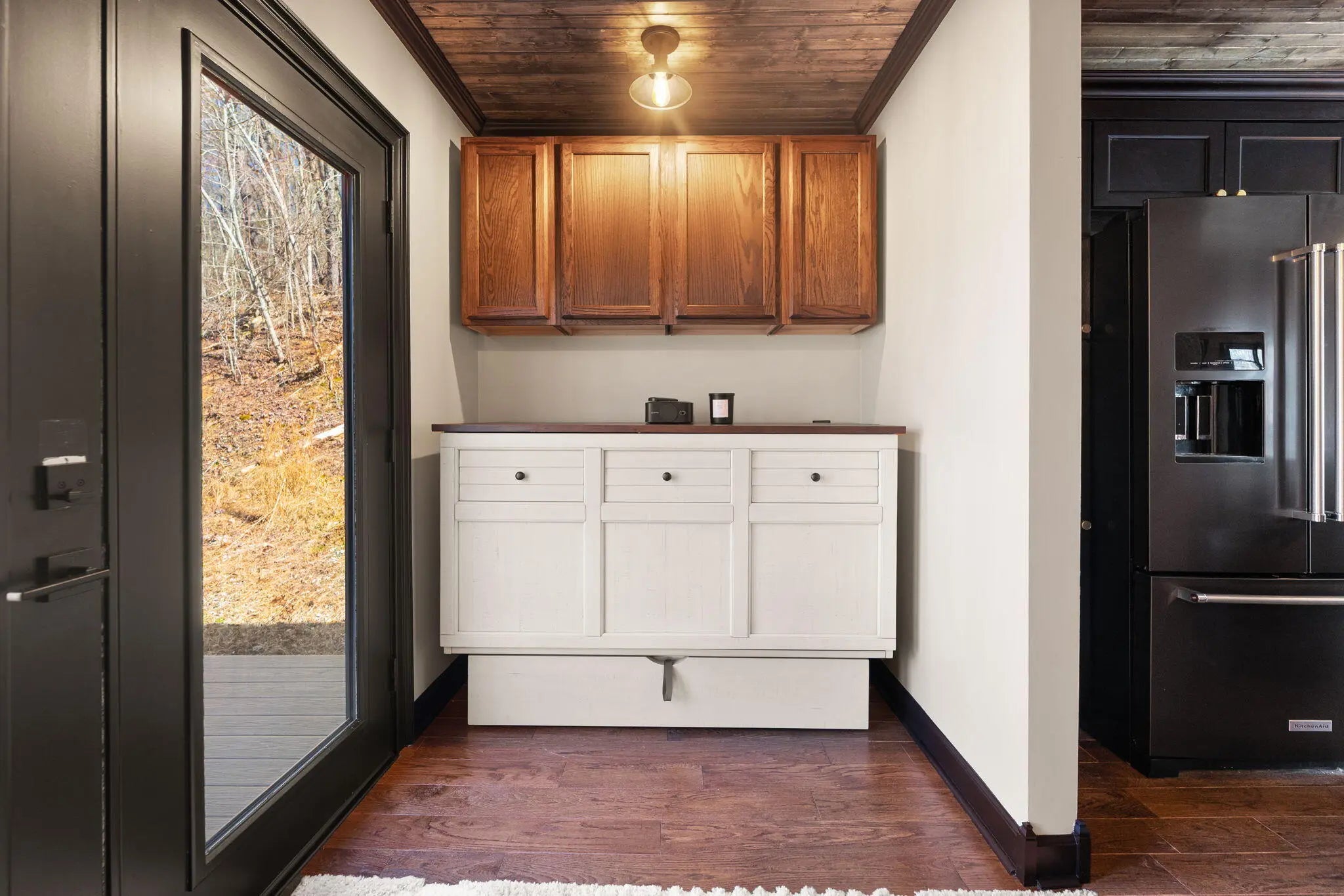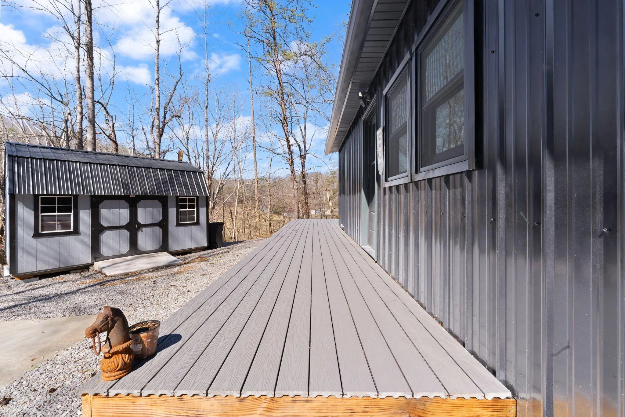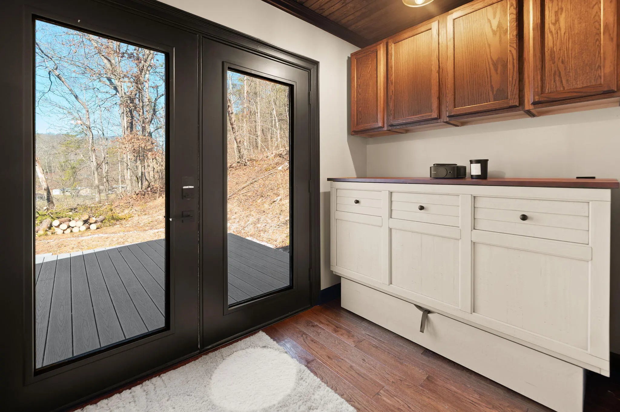 Tucked behind a private gate and set against the hillside on 9.02 surveyed acres, this fully reimagined modern cabin retreat delivers luxury tiny living without sacrificing comfort, style, or convenience. If you've been waiting for something different, something intentional, something unforgettable, this is it. Completely gutted and rebuilt, this 515 sq ft custom home was designed to live big. The open concept layout flows effortlessly, anchored by a stunning custom kitchen featuring a gas range, modern cabinetry, and a functional island that doubles as a backup propane heating source. Every detail was thought through. From the hardwood floors throughout to the tile bath, this home feels like a boutique hotel suite tucked into the woods. The queen-size Murphy bed transforms the living space in seconds, allowing you to maximize every square foot. A full-size washer and dryer are thoughtfully positioned for true everyday livability. The living area is finished with a wall-mounted TV setup and LED accent lighting surrounding the mantle for a sleek, modern feel. Ceiling fans and a split unit provide efficient heating and cooling year-round, while the owned propane tank offers peace of mind in colder months. The bathroom is next-level for a home this size, complete with a stand-up shower, smart toilet, and smart mirror. It is modern, clean, and elevated. Outside, the charm continues. Board and batten siding paired with metal accents and a metal roof give this home a refined cabin-top aesthetic. A wraparound deck invites you to sit, breathe, and listen to nothing but the woods. When it rains, a natural runoff creates a waterfall effect along the small cliffs and caves scattered across the property. It is peaceful. It is private. It feels like your own hidden retreat. The land itself offers opportunity. There is a small trail system already in place and an additional cleared area where a manufactured home once sat, giving potential for expansion or another dwelling. A nice storage building adds extra functionality. The concrete driveway provides ample parking for multiple vehicles, boats, or side-by-sides. Located just 20 minutes to Corbin and approximately 15 minutes to both London and Barbourville, you get seclusion without isolation. Hospitals, shopping, restaurants, and everyday necessities are all within easy reach. Electric, city water, and septic are already in place. This property is ideal for the minimalist who refuses to compromise on style, the hunter or nature lover seeking a private basecamp, or anyone looking for a modern getaway with room to explore. Opportunities like this rarely come to market. It is not just a tiny house. It is a lifestyle shift. Schedule your private showing and experience it in person.