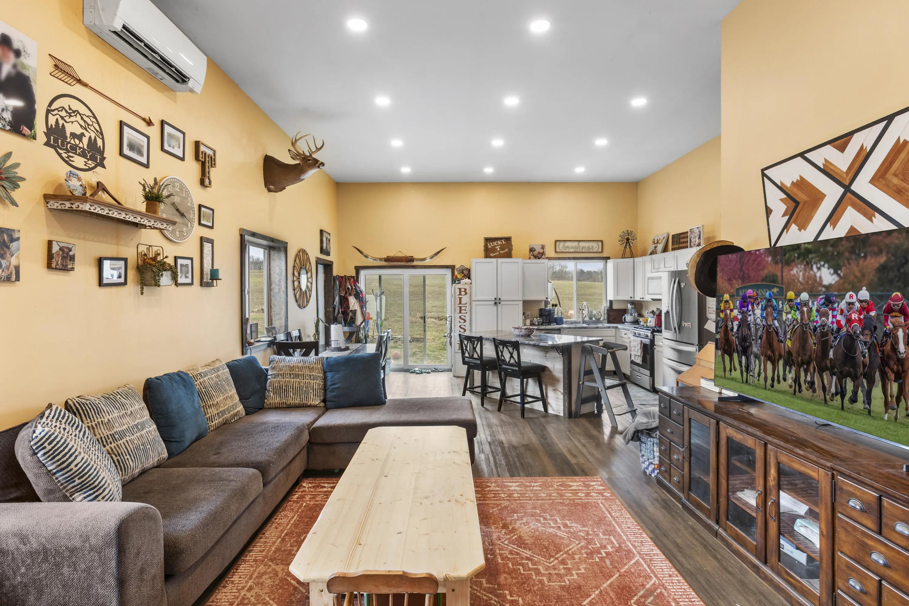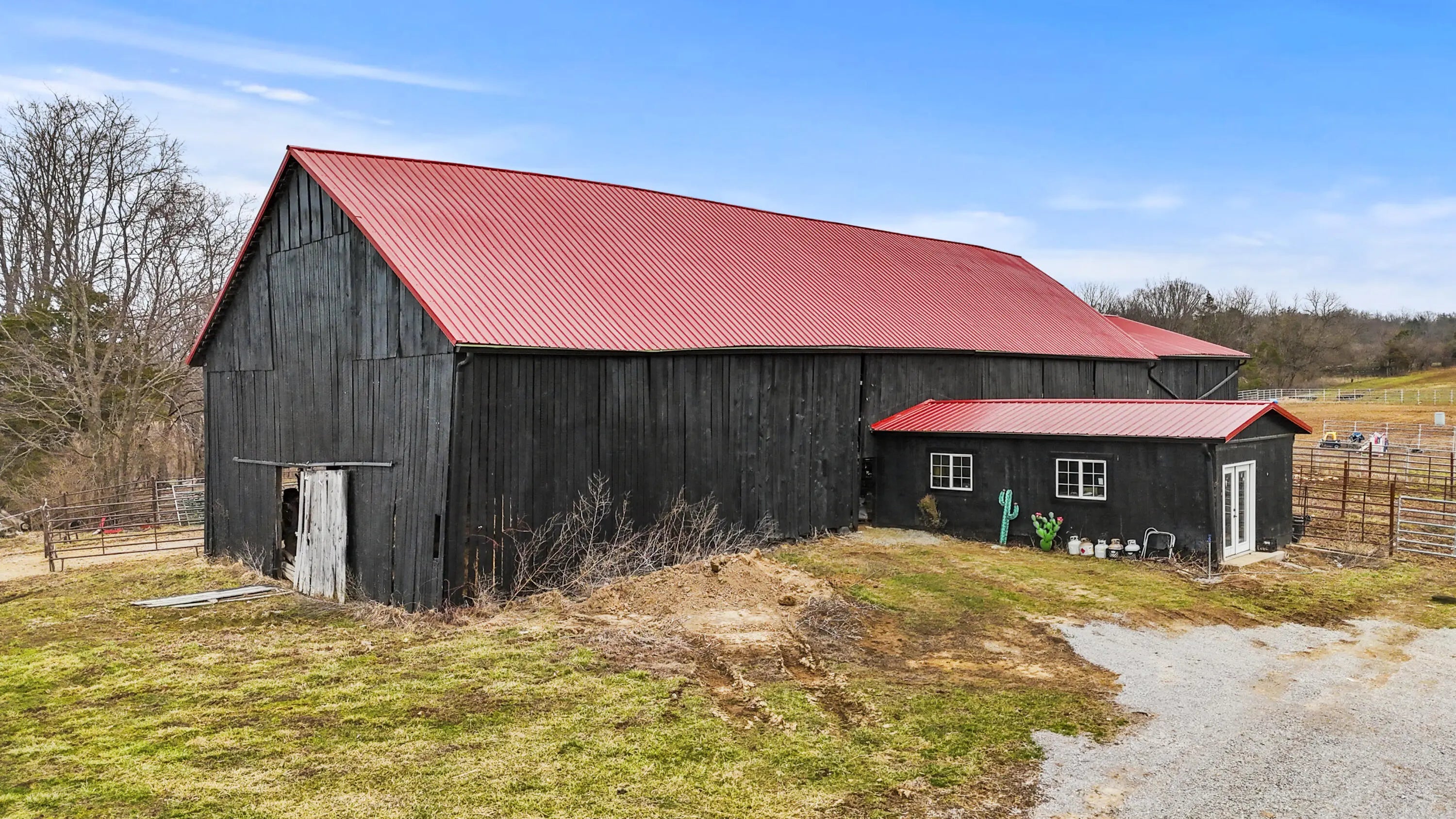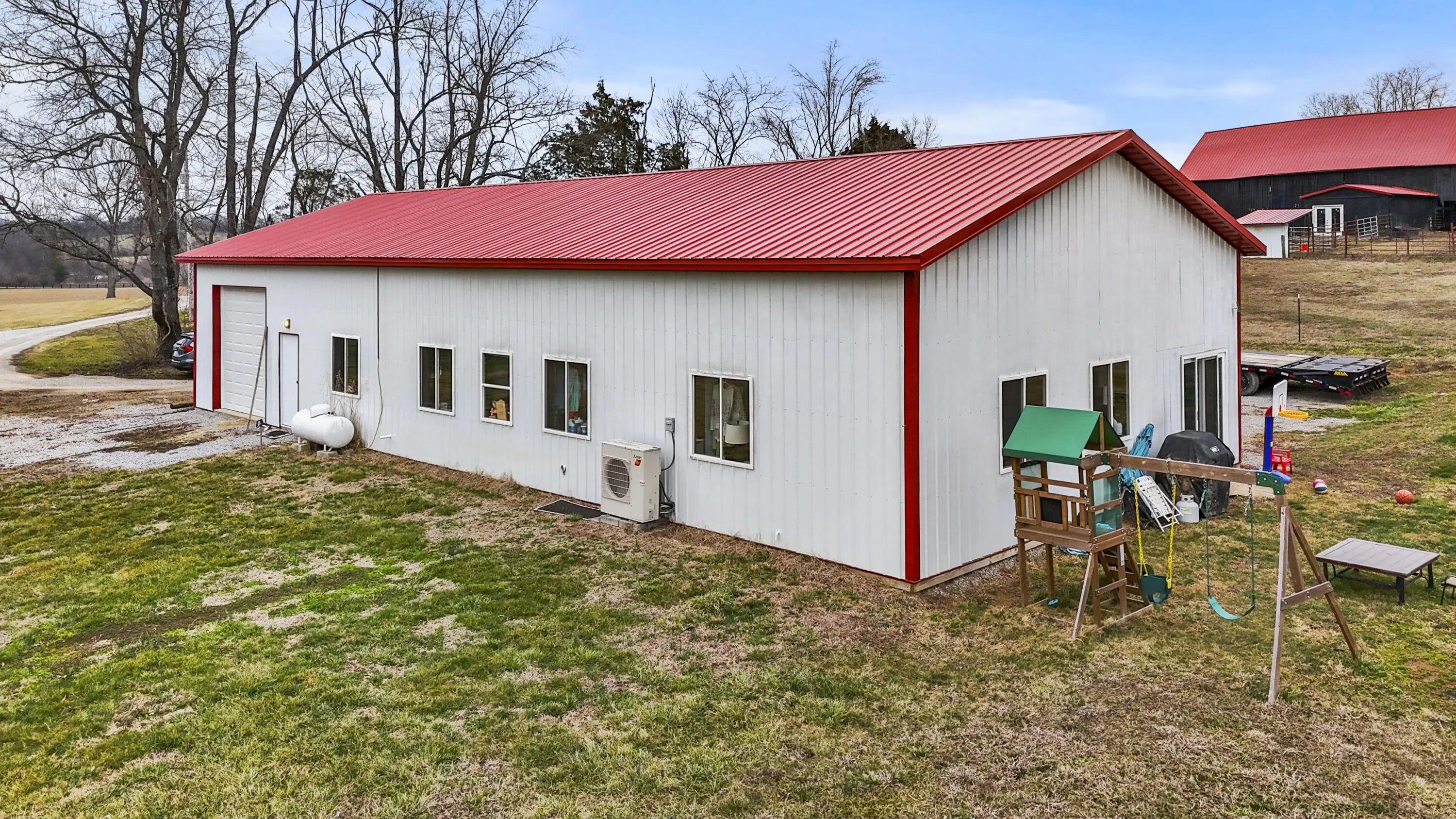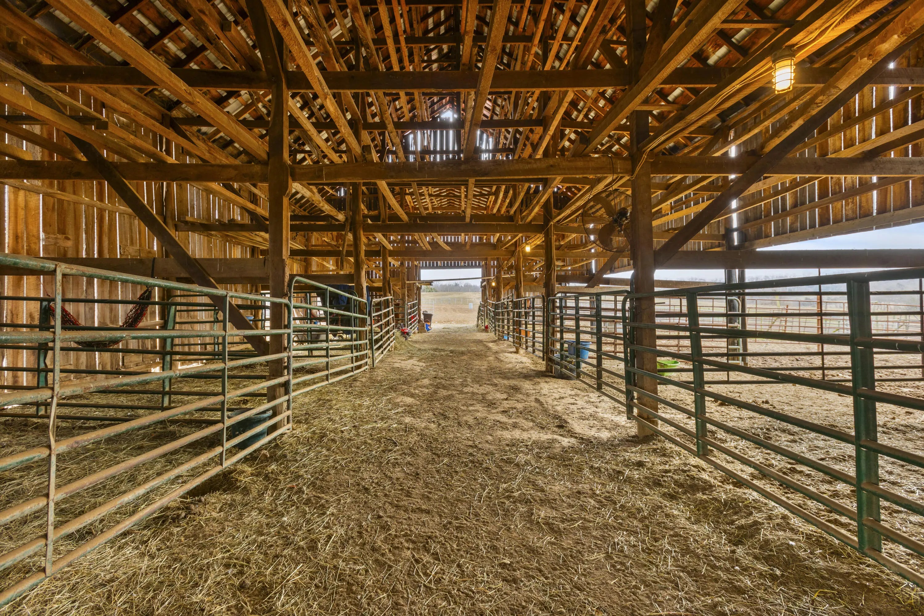 This beautiful 4 year new 6-bedroom, 4.5-bath property offers the perfect blend of functionality, comfort, and rural charm. The main residence consists of 4 bedrooms, featuring spray foam insulation for efficiency and radiant-heated floors in the primary bathroom. A swimming pool is possible, with the septic system conveniently located on the side of the home. The owned propane tank adds flexibility and long-term value. An attached guest house connected to the shop includes 2 bedrooms, 1 full bath, and a complete kitchen--ideal for guests, extended family, or farm staff. Equestrian amenities are thoughtfully designed, with a barn capable of accommodating up to 12 stalls, a 16x30 shop within the barn, and a stripping room with propane heat. The 200x120 riding arena features river sand footing for excellent performance and drainage. The property spans approximately 129 acres, with 30 fenced acres with durable 4x4 woven wire fencing for horses/livestock. Each paddock ranges from 2-3 acres, offering ample space and versatility. Approximately 25 acres are wooded, providing privacy and natural beauty, while 10 acres of productive hayfield sit at the rear of the property. Wild blackberry bushes add to the charm and usability of the land. A new grand entry gate welcomes you onto this impressive property, offering privacy, curb appeal, and a true sense of arrival. A rare opportunity to own a turnkey muti-use farm offering space, privacy, and versatility--perfect for horse enthusiasts, multi-generational living, or those seeking a well-appointed farm with room to grow!
