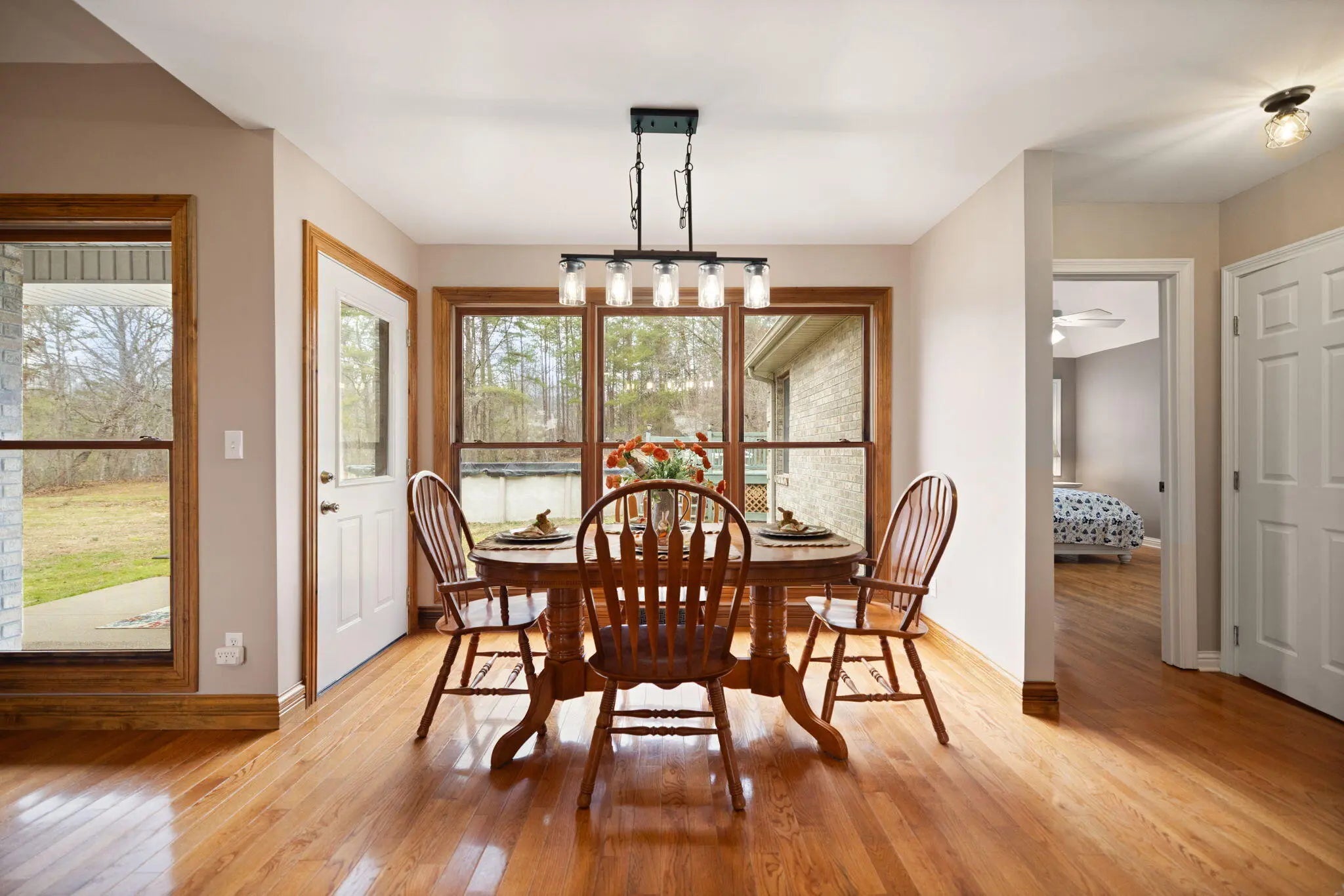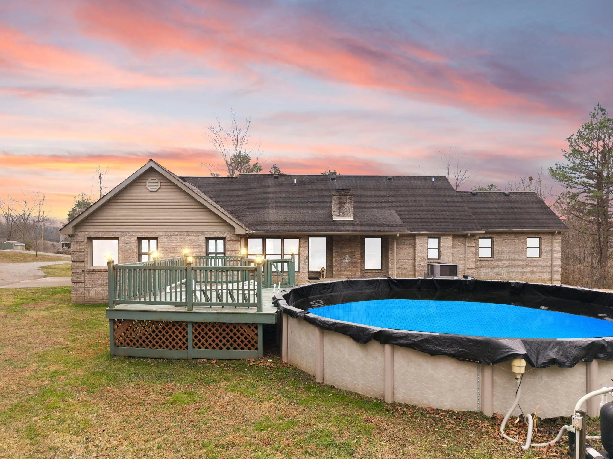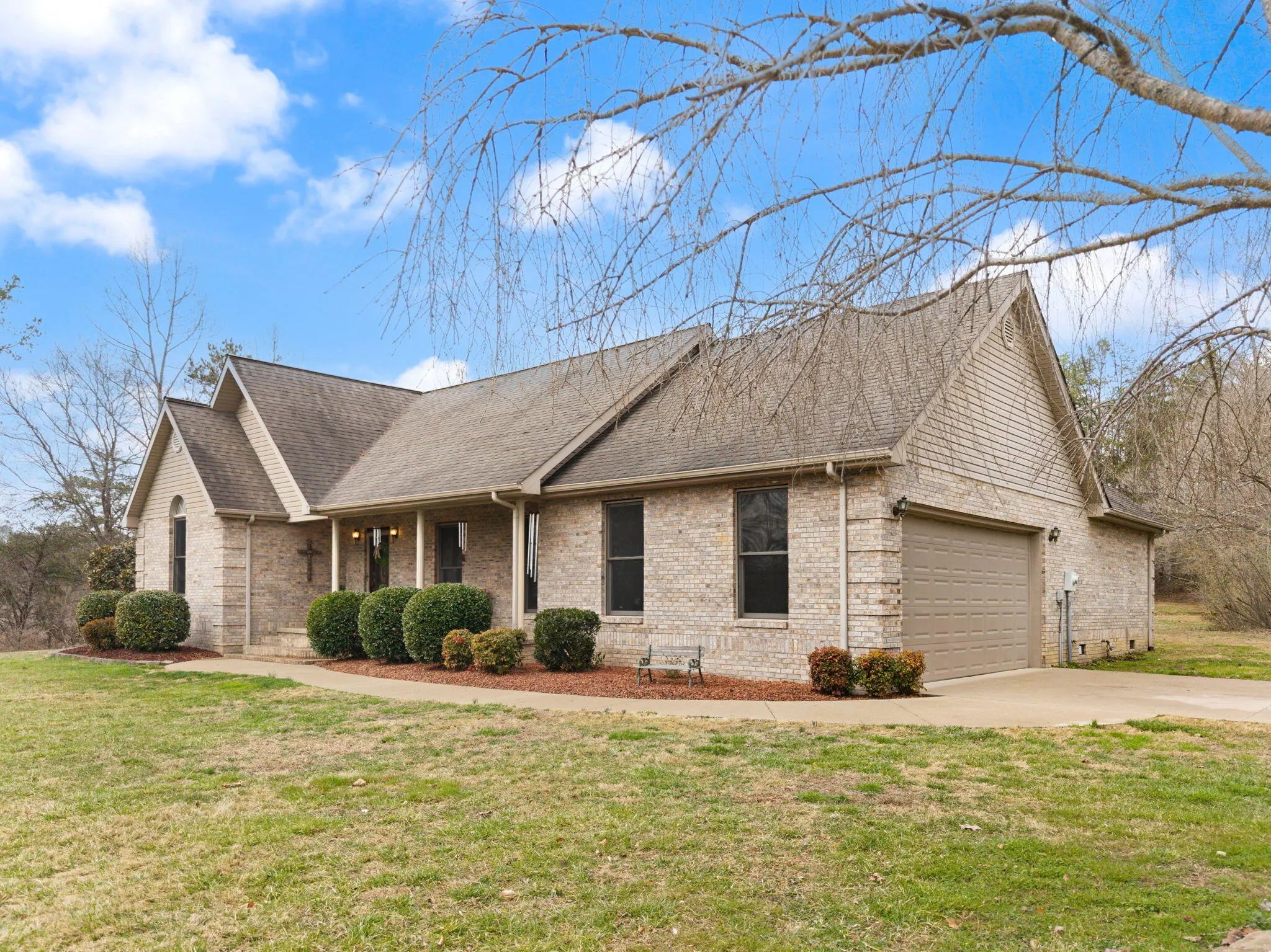 Beautifully renovated full brick family home situated on approximately 5.8 private acres offering space, privacy, and comfort. This spacious property features 3 bedrooms and 2 bathrooms, along with a bonus room and large recreation area that could easily serve as 4th and 5th bedrooms if additional space is needed. The home offers a newly updated primary en-suite featuring a custom tile shower, relaxing soaker tub, and modern finishes. Recent updates throughout include new stainless steel appliances, upgraded flooring, new carpet, and fresh paint, creating a move-in-ready interior. Additional features include a partial unfinished basement ideal for storage, a two-car attached garage, and multiple outdoor living spaces including a covered front porch and covered back patio perfect for relaxing or entertaining. Enjoy summer days in the above-ground swimming pool complete with gas pool heater and deck, all overlooking the beautifully landscaped and private acreage. The property is also equipped with free natural gas, which supplies the home's heating, providing an added cost-saving benefit. This well-maintained home also includes a storm shelter for peace of mind. With room to grow, scenic surroundings, and numerous updates, this property offers the perfect combination of comfort, privacy, and functionality. Properties like this do not come available often! Make your appointment today!