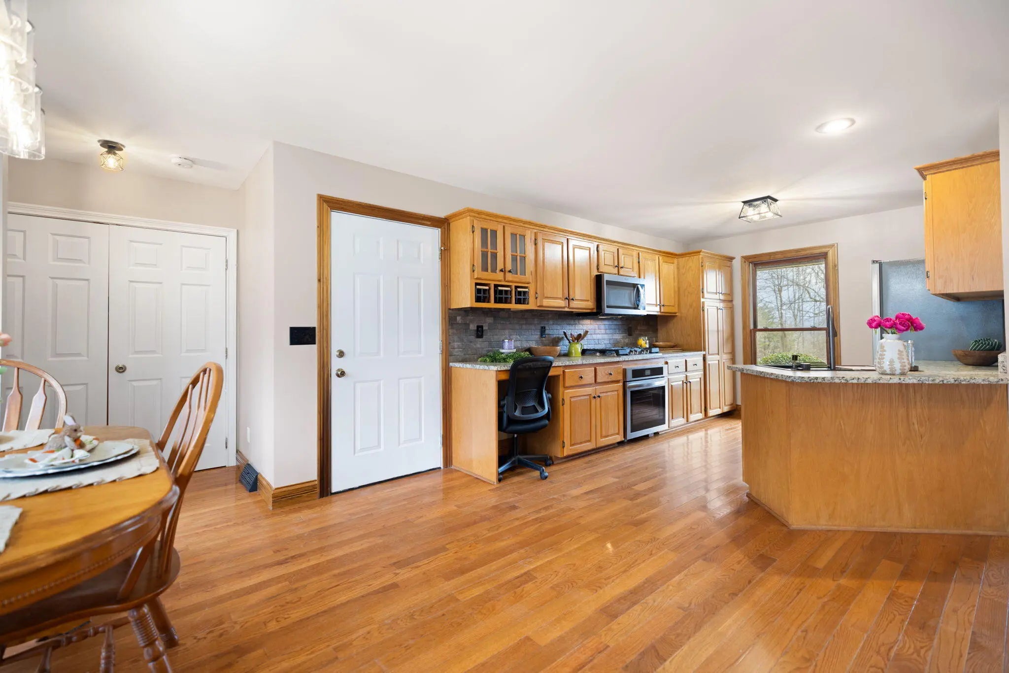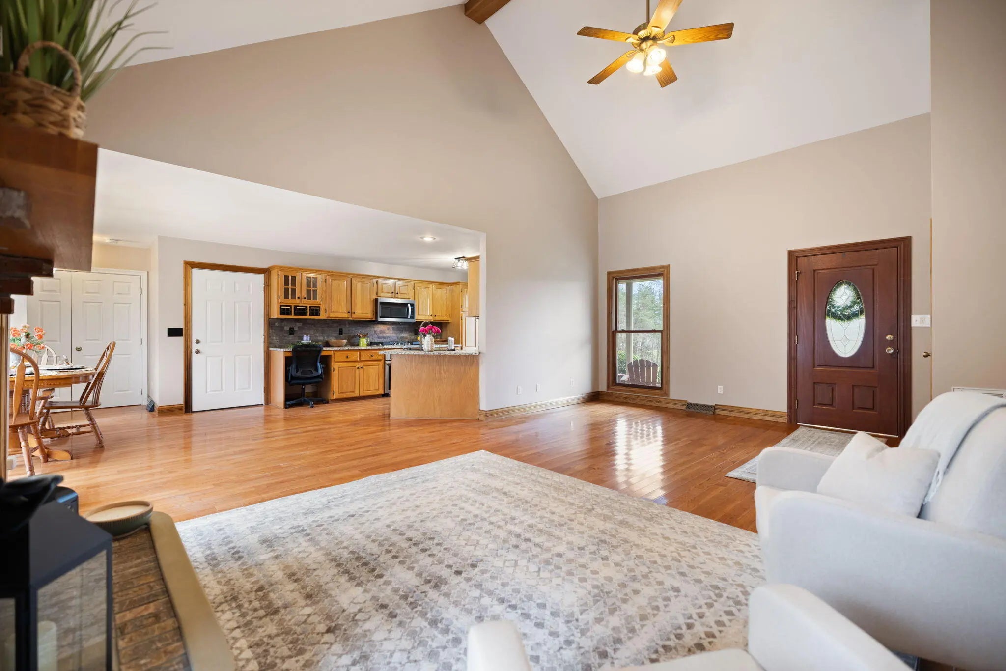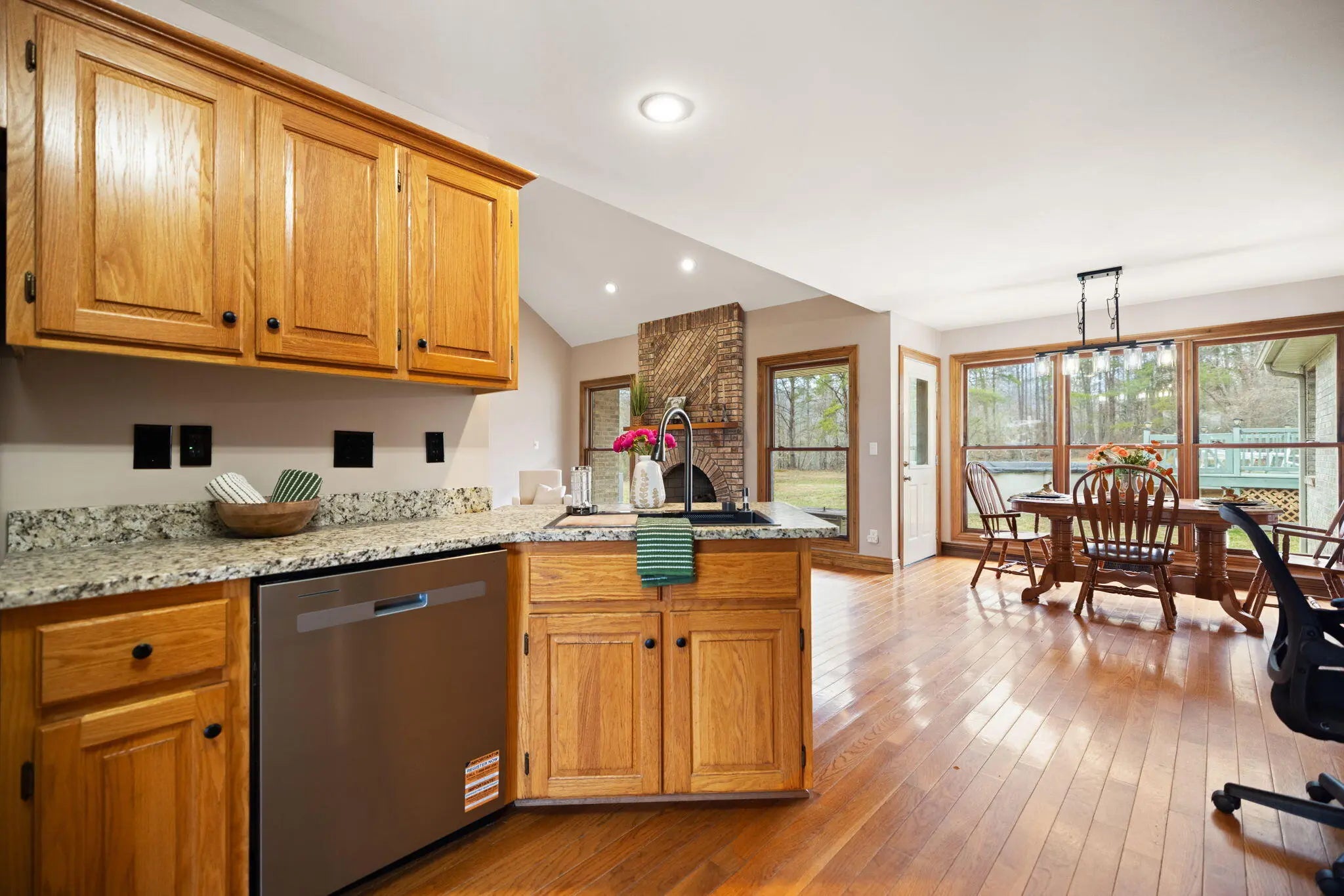 Beautifully renovated full brick family home situated on approximately 5.8 private acres offering space, privacy, and comfort. This spacious property features 3 bedrooms and 2 bathrooms, along with a bonus room and large recreation area that could easily serve as 4th and 5th bedrooms if additional space is needed. The home offers a newly updated primary en-suite featuring a custom tile shower, relaxing soaker tub, and modern finishes. Recent updates throughout include new stainless steel appliances, upgraded flooring, new carpet, and fresh paint, creating a move-in-ready interior. Additional features include a partial unfinished basement ideal for storage, a two-car attached garage, and multiple outdoor living spaces including a covered front porch and covered back patio perfect for relaxing or entertaining. Enjoy summer days in the above-ground swimming pool complete with gas pool heater and deck, all overlooking the beautifully landscaped and private acreage. The property is also equipped with free natural gas, which supplies the home's heating, providing an added cost-saving benefit. This well-maintained home also includes a storm shelter for peace of mind. With room to grow, scenic surroundings, and numerous updates, this property offers the perfect combination of comfort, privacy, and functionality. Properties like this do not come available often! Make your appointment today!