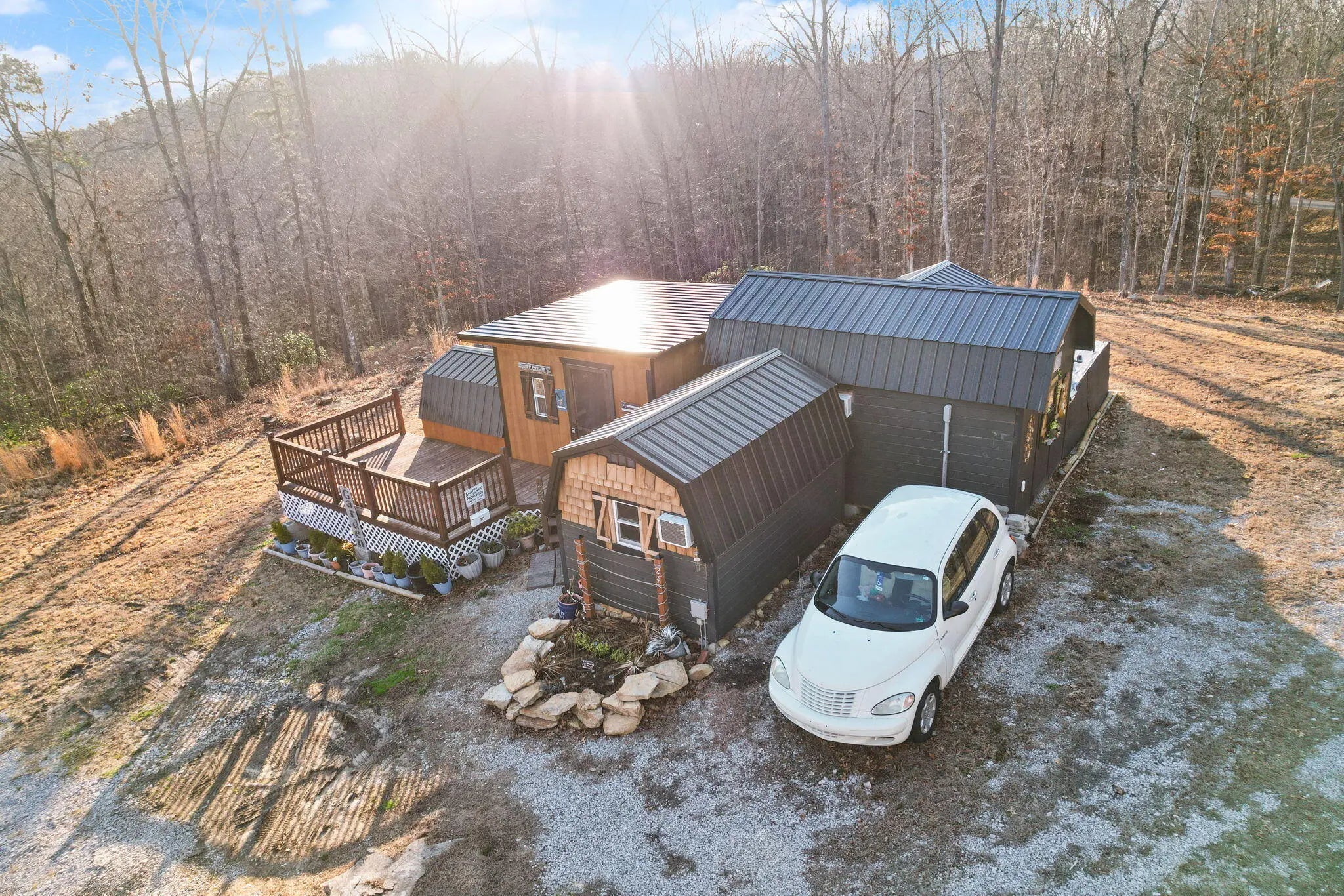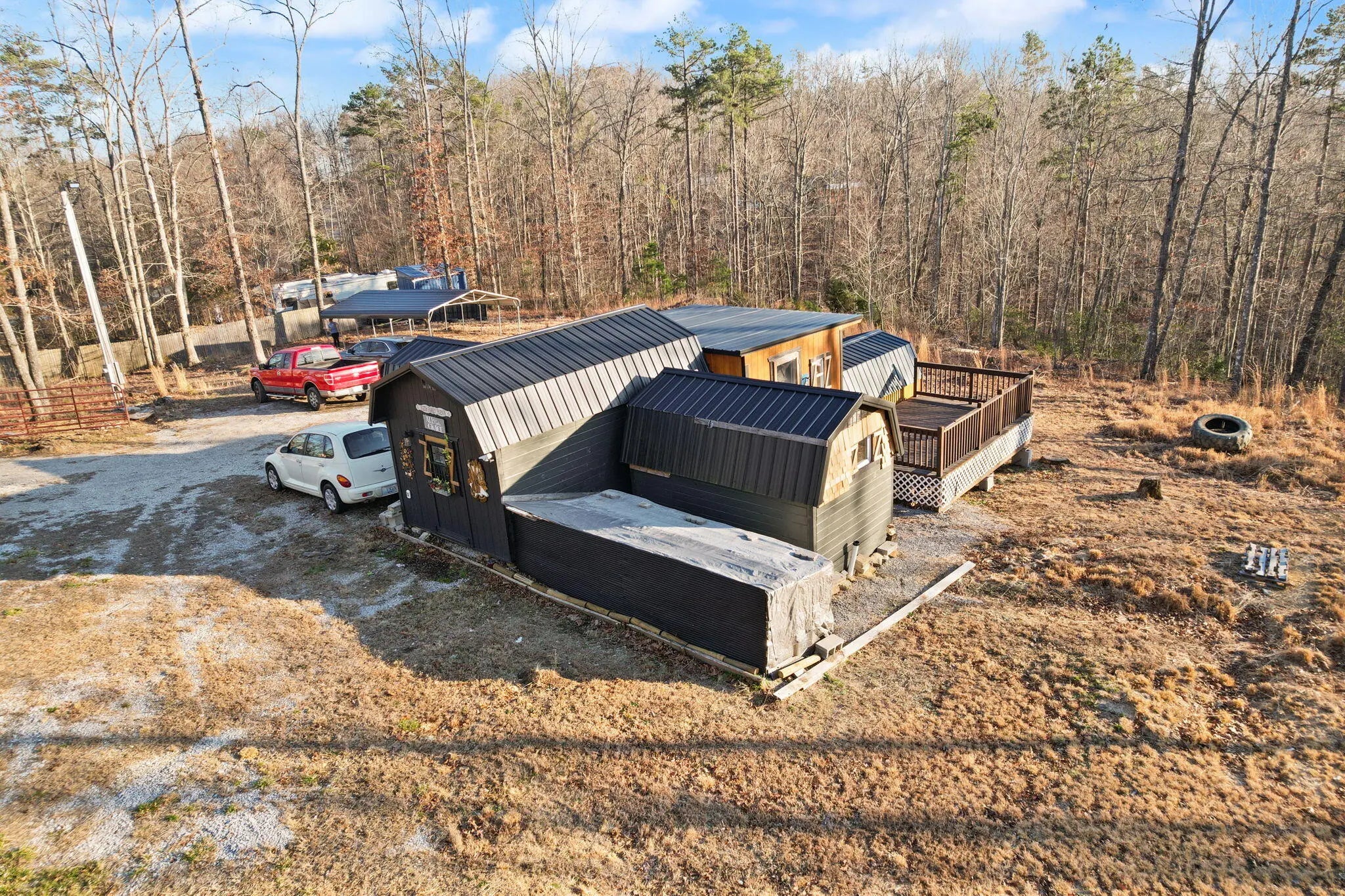 NOW OFFERING $10,000 IN BUYER CREDIT AT CLOSING! Can be used to update systems, dig a well, or any improvements deemed fit by the buyer! Turnkey tiny living on 7.6± private acres! This 544 sq. ft. fully furnished tiny home is ready for immediate move-in, offering the perfect blend of simple living and a taste of adventure. With no zoning in place, the possibilities are endless! This tiny home offers flexible spaces including a living area, eat in kitchen, spacious bedroom, bathroom with side by side laundry, and two loft spaces! Inside, you'll find a newer stove and refrigerator, new washer and dryer, new PEX plumbing, and a new tankless water heater — all designed for efficient, low-maintenance living. Four new baseboard heaters and four new wall-mounted air conditioning units provide year-round comfort in every season. The infrastructure has been extensively improved with new underground electric service to a 200-amp panel, a new septic tank, and a newly installed electric jet pump connected to four IBC water tanks for dependable water supply. Outside, enjoy peaceful views from two beautiful twin decks flanking each side of the home — ideal for relaxing or entertaining. A new 18x30 carport and two additional new outbuildings (8x12 and 8x8) provide excellent storage and workspace options. Private, practical, and fully equipped — this property offers a rare opportunity to own acreage with modern systems already in place. Selling as-is with due diligence period welcome. Eligible for cash or land/agricultural loan purchase only as tiny home is not attached to permanent foundation.