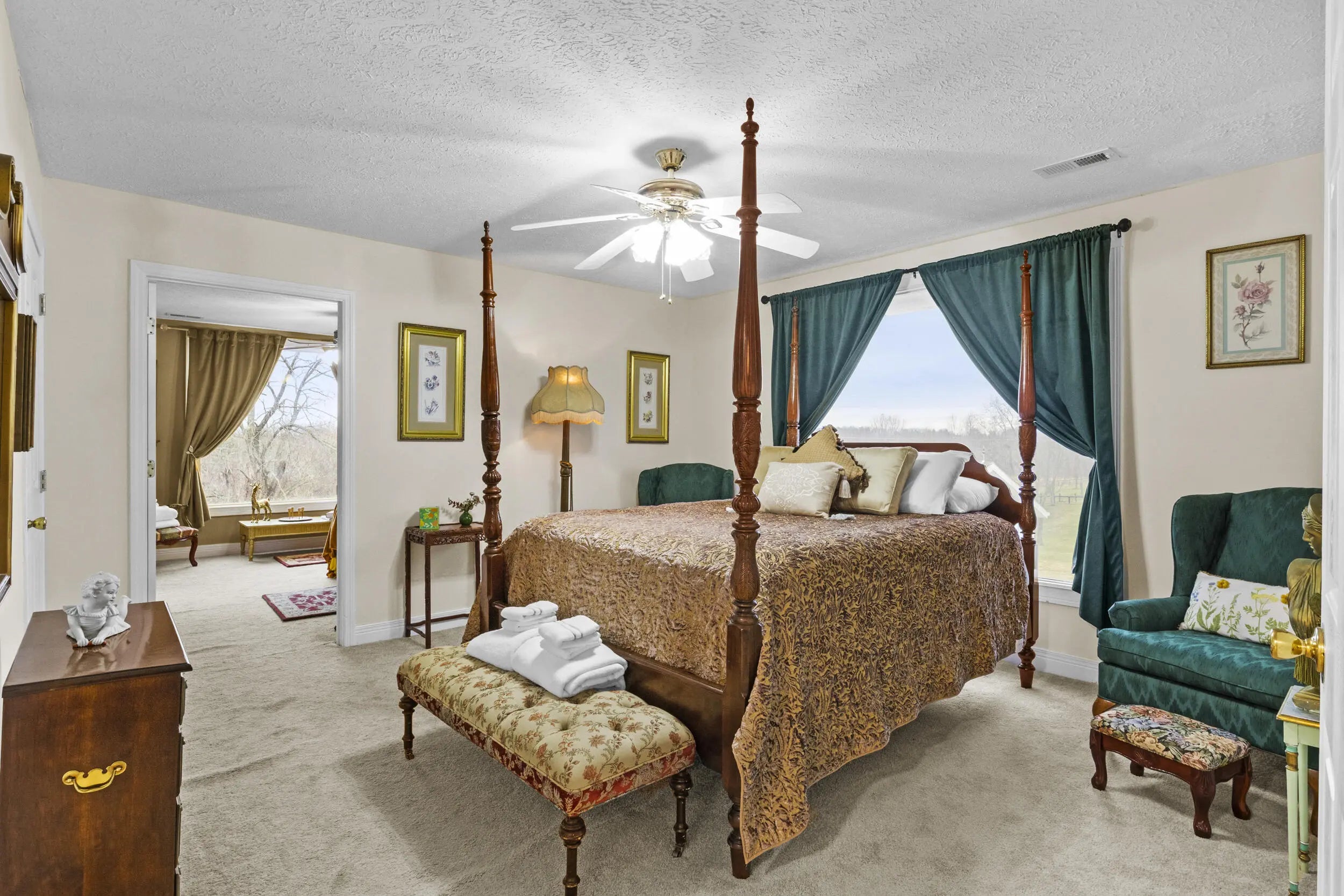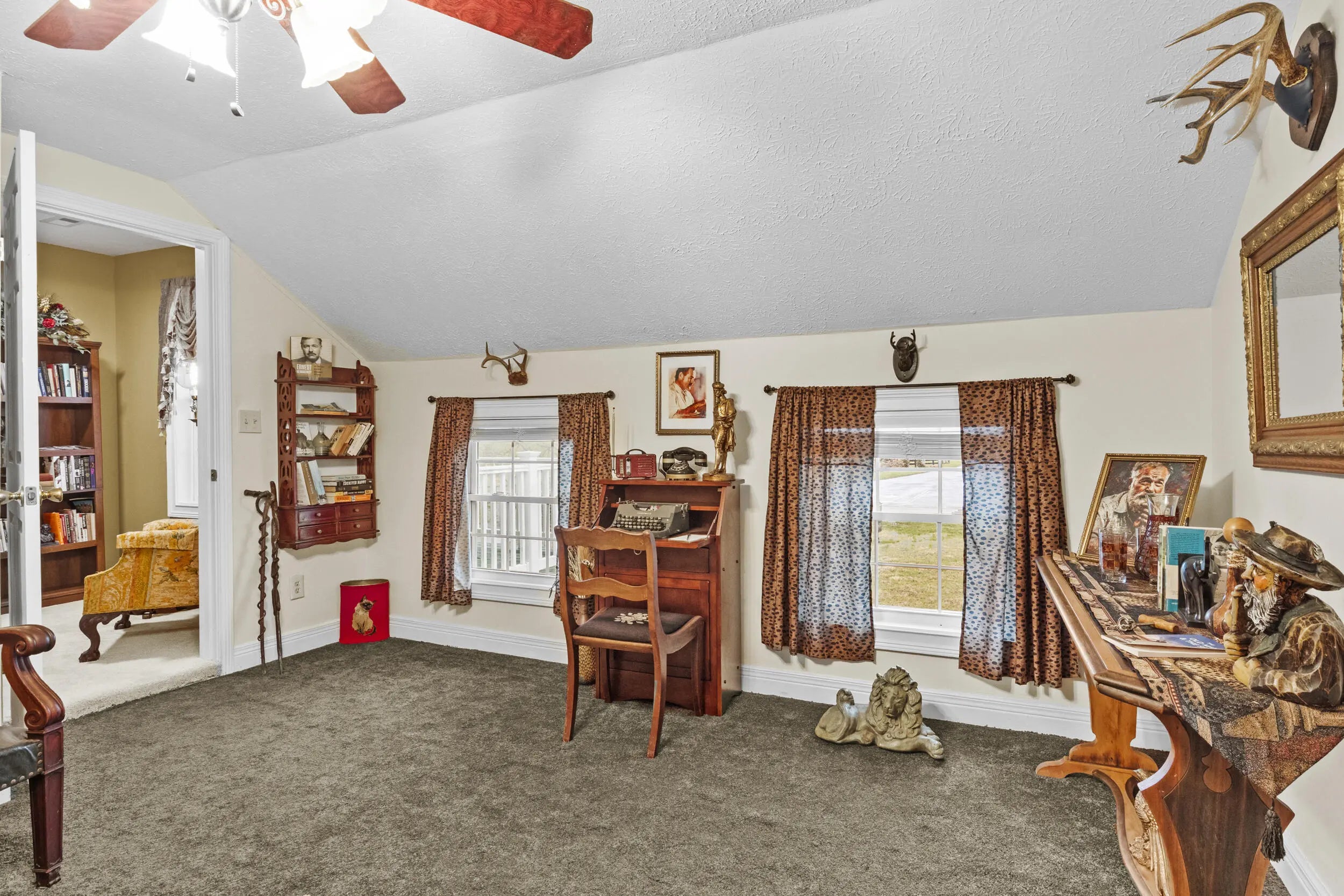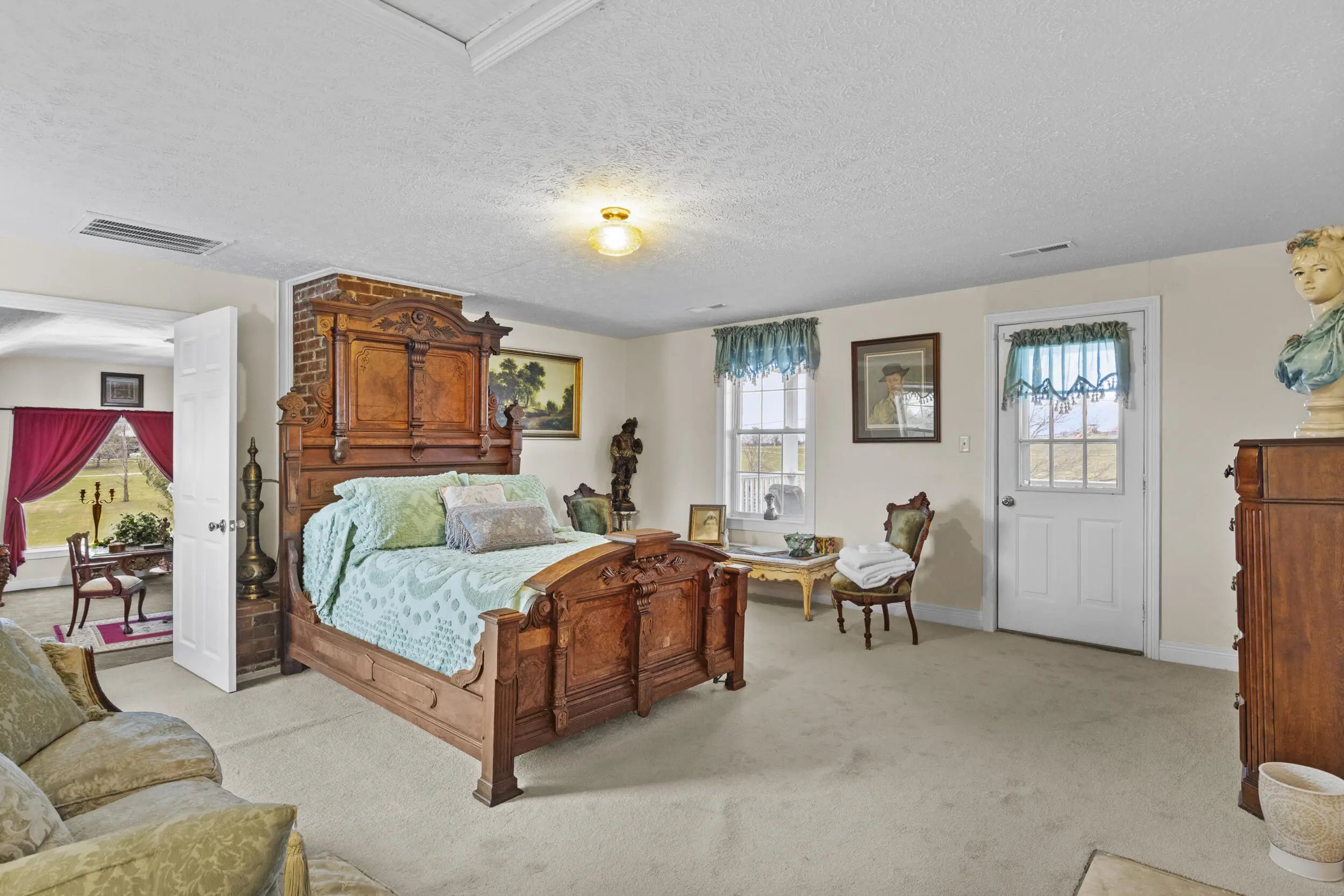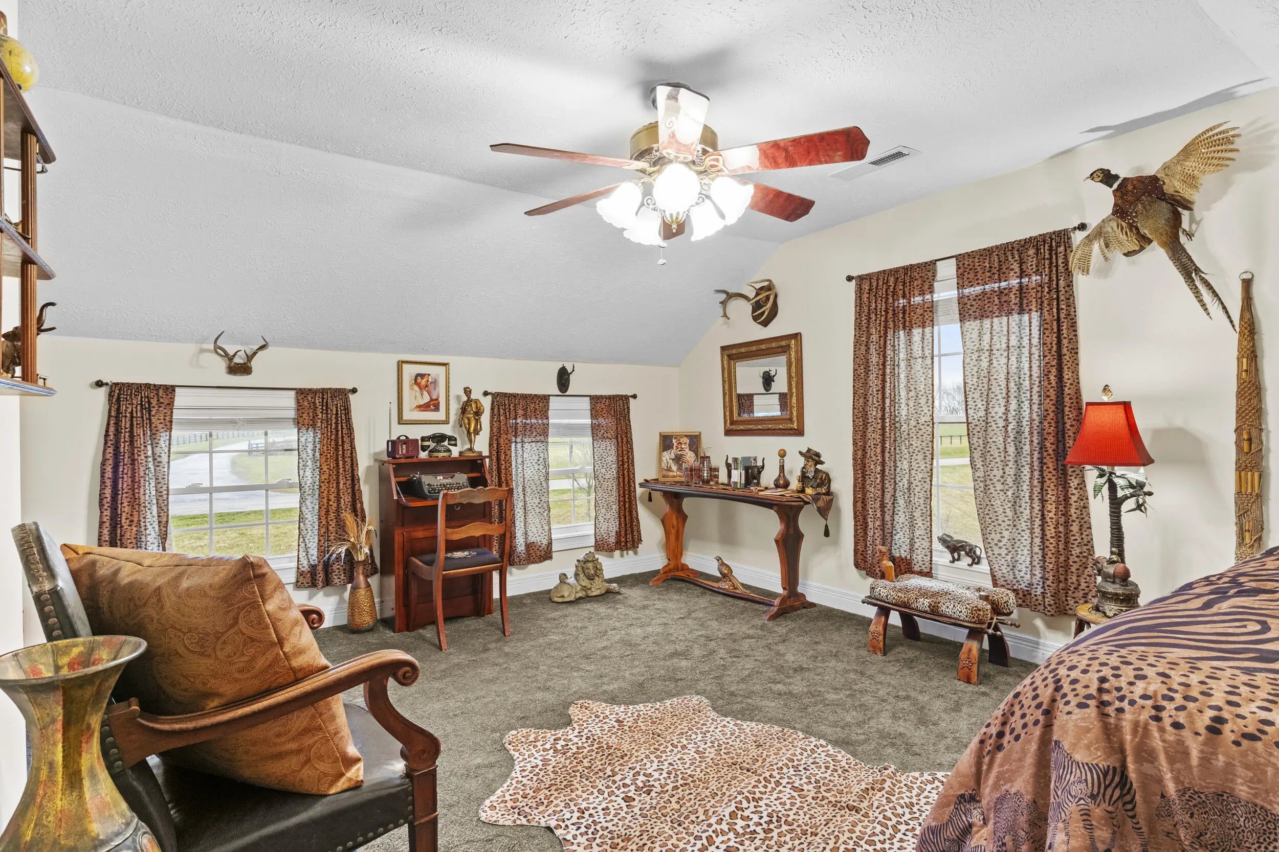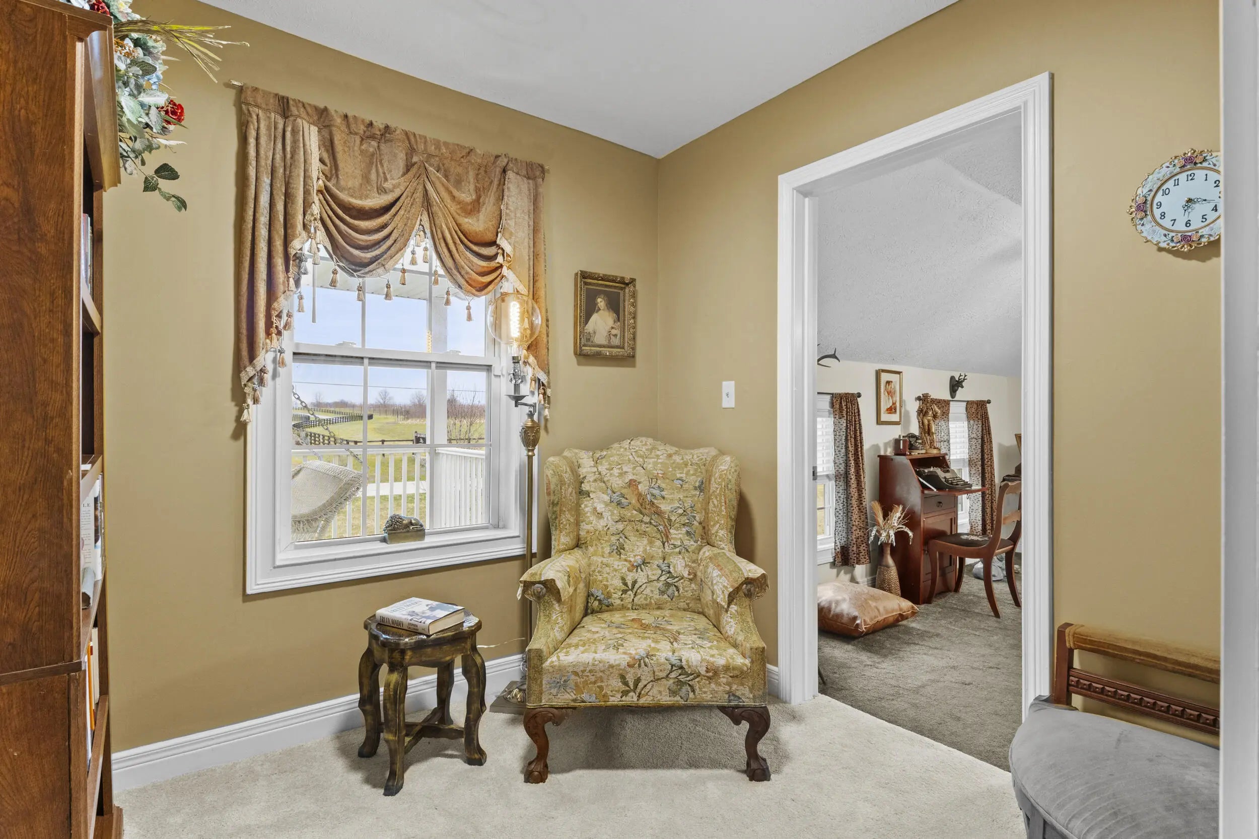 Wow! This rare Southern Colonial Revival-style home on approximately 5.0 acres is now being offered by its long-time owners. Located across from Evans Orchard and just minutes from the Kentucky Horse Park, Fasig Tipton, The Red Mile, historic Keeneland, the Ark Encounter, and downtown Lexington, while overlooking scenic Elkhorn Creek. Whether you're searching for a turn key higher end rental opportunity, a primary residence, or a secondary Bluegrass getaway, this property offers exceptional versatility. The grounds feature five flat, usable acres and capture the charm and character that Kentucky countryside living is known for. Throughout the home, you'll find inviting access to the outdoors, with multiple decks and porches that allow you to fully enjoy the surrounding landscape. Each themed room tells its own story, with five bedrooms and two full baths providing ample space to entertain guests and escape. With favorable zoning, the property also offers flexibility for a variety of potential uses and future possibilities. Upon entering the front foyer, you're welcomed by a gorgeous staircase and a charming fireplace that immediately sets the tone for the home's character. Additional features include some hardwood flooring, 8x8 picture windows placed in various bedrooms, unique lighting fixtures, a spacious utility room, alongside a bar and coffee room! The property also features a large attached garage and a detached two-car garage, offering abundant space for parking, storage, hobbies, equipment, or workshop use. For added peace of mind, the HVAC system is less than one year old, and the hot water heater was replaced just a few years ago. If you've been hoping to find a place where southern charm and graciousness still prevail, come experience one of Georgetown, Kentucky's most distinctive properties...