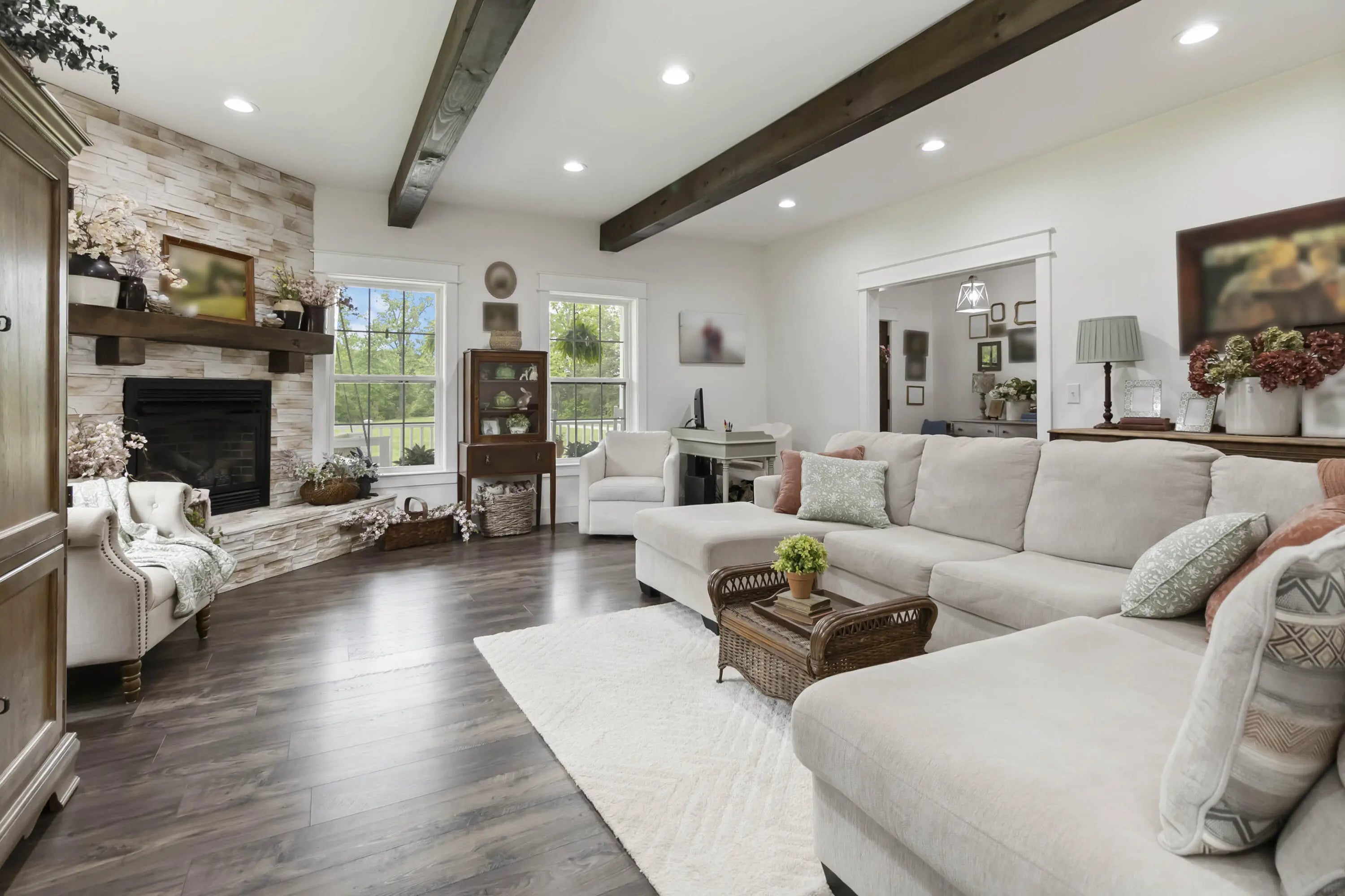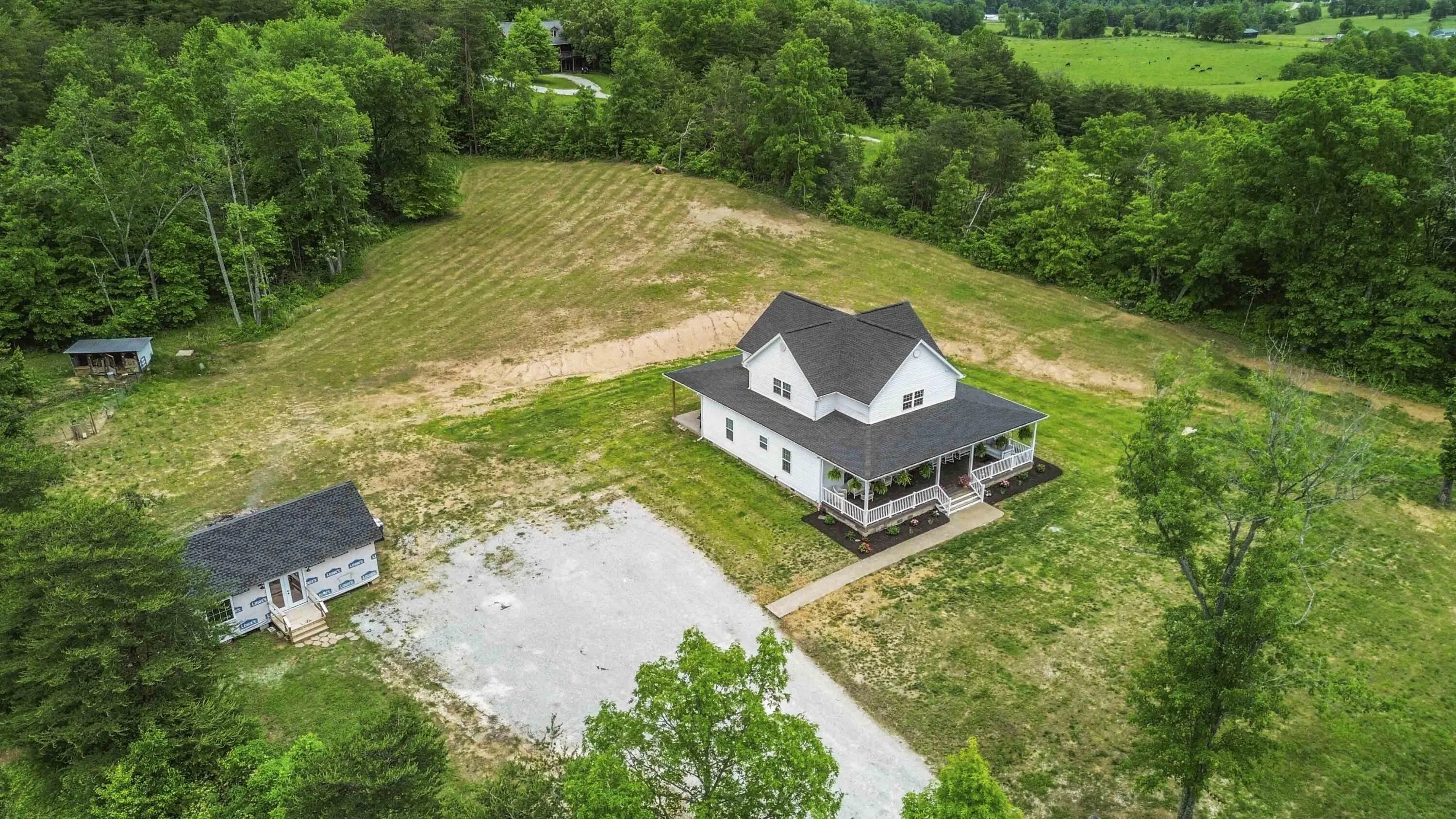 RURAL CHARM AND MODERN LUXURY. 10-Acre MODERN FARM OASIS Home with Luxury Finishes and Versatile Outbuilding! Welcome to your dream countryside retreat, where modern luxury meets peaceful rural living on a sprawling 10-acre unrestricted farm. A private homestead/farm, this stunning 3-yr-old custom-built home offers the perfect balance of comfort, space, and versatility. Spanning 3,100 SF, this home boasts high-end finishes throughout. Step into an open-concept accented by gas log fireplace, durability and elegance of luxury vinyl plank flooring that flows seamlessly throughout the home. The gourmet kitchen is a chef's dream, featuring sleek quartz countertops, modern cabinetry, and ample space! Professional office on 2nd level. Energy-Efficient, with spray foam insulation, the home has excellent energy efficiency electric bills rarely exceed $200/mo. A 16'x32' external office bldg, fully wired, makes this MORE than a home as it's a lifestyle opp with electric & fully wired with outletsâ€"offering potential for a home business, creative studio, workshop, or guest housing. Call today to explore the perfect blend of rural charm and modern luxury.