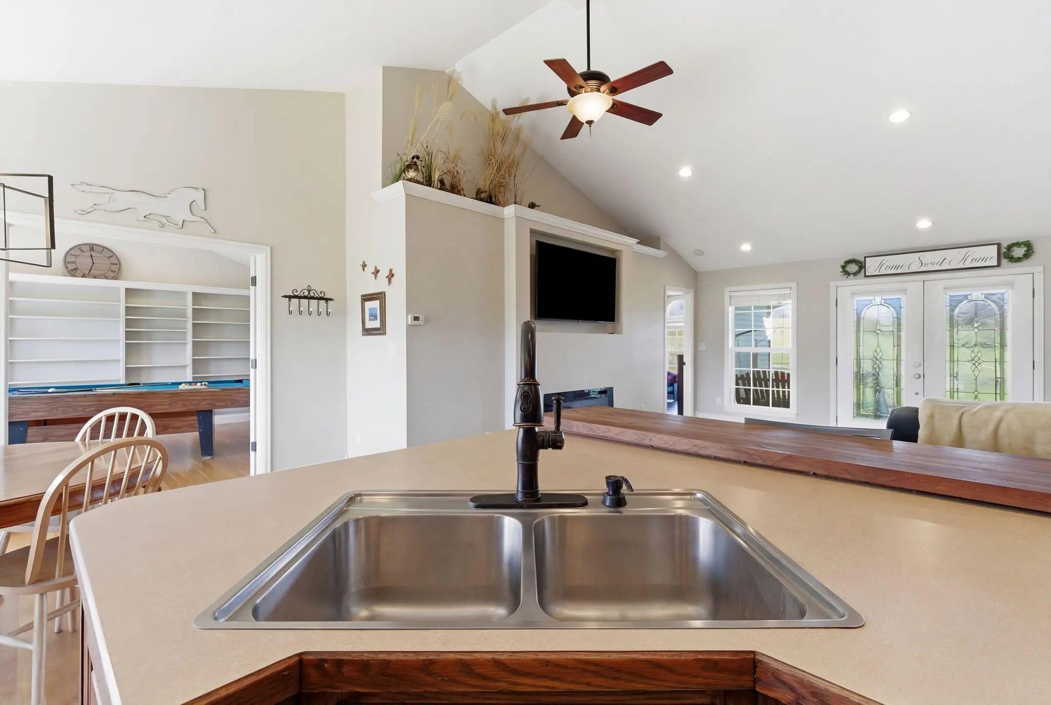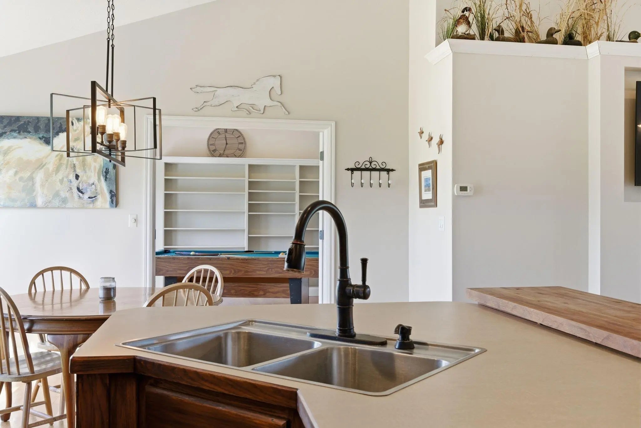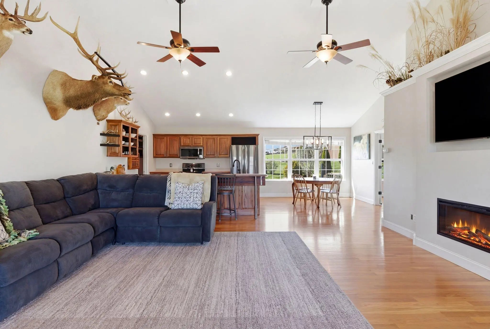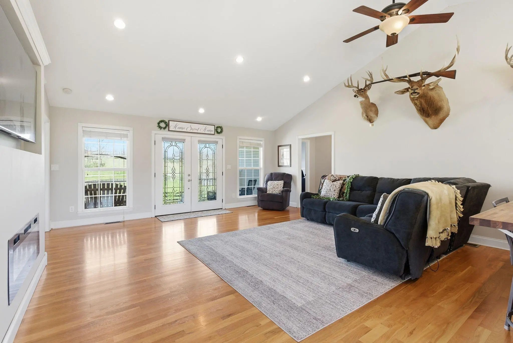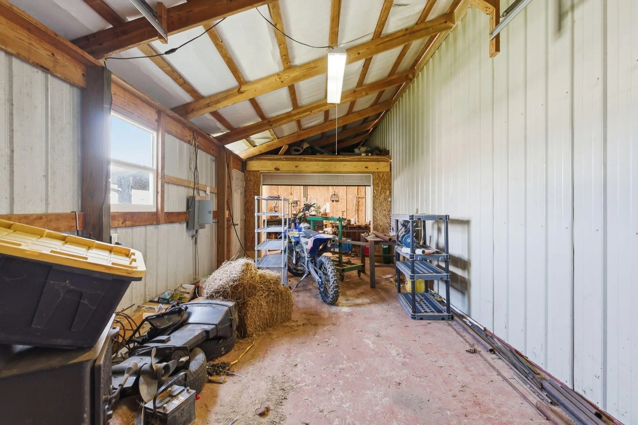 Million-dollar views and wide open Bluegrass skies set the stage for this well-built ranch home on beautiful acreage. Framed by classic four-board fencing, the property offers comfort, functionality, and country lifestyle. A thoughtfully designed split-bedroom layout features spacious rooms, including a private primary suite and two secondary bedrooms connected by a Jack-and-Jill bath. Hardwood floors run throughout the main living areas, and luxury vinyl plank complete the home for a carpet free home. The kitchen offers excellent storage with a large pantry, functional space and a beautiful custom peninsula. An additional flex space just off the kitchen provides versatility as a formal dining room, home office, or playroom. Outdoor enthusiasts and hobbyists will appreciate the impressive 50' x 50' metal barn, complete with tack room, hay storage, and a third garage bay—ideal for equipment, workshop space, or equestrian use. Additional highlights include a two-car attached garage that is insulated and equipped with a mini-split system, making it comfortable year-round. Major updates include a newer roof and HVAC system for added peace of mind. This farm is conveniently located just off Highway 227, offering an easy commute to Georgetown while still enjoying the tranquility and views that make country living so special.
