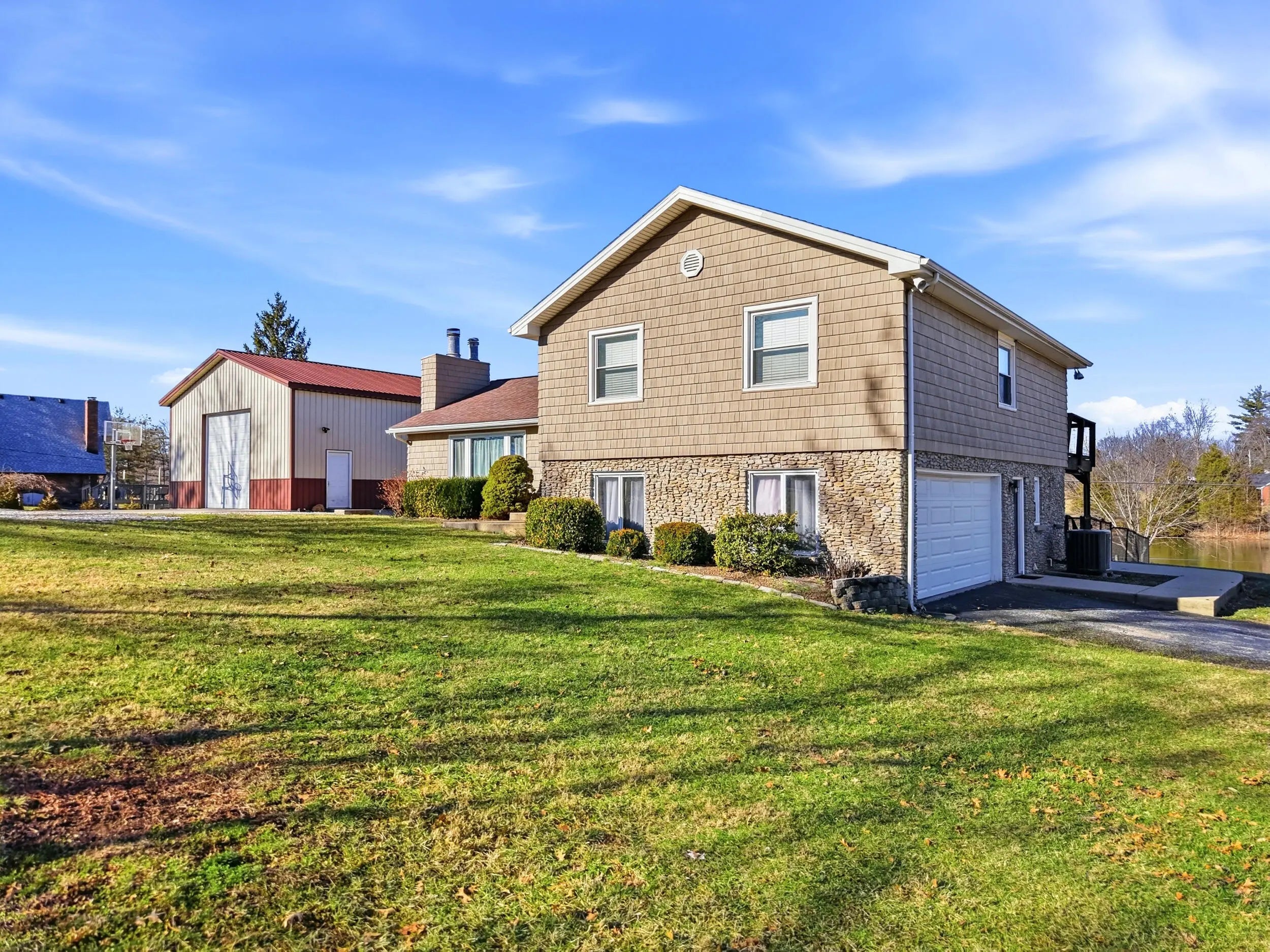 Welcome to this exceptional 4-bedroom, 2.5-bath home set on 6.75 acres, featuring a large pond that creates a truly peaceful and picturesque backdrop. Whether you're enjoying quiet mornings on the deck, hosting friends at sunset, or simply taking in the views, the pond offers a rare sense of privacy and serenity. The property also features an in-ground pool with a new liner and motor, perfect for warm summer days and outdoor entertaining. Inside, the home offers an inviting open living area centered around a cozy wood-burning fireplace, flowing effortlessly into a modern kitchen designed for both style and function with a double oven and ample cabinet space. An attached 2-car garage plus a spacious 30x30 detached garage provide abundant room for vehicles, storage, and hobbies. With its blend of space, comfort, and standout outdoor features, this property offers a rare opportunity to enjoy modern living in a private, scenic setting.