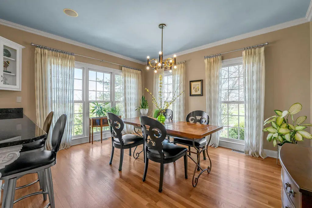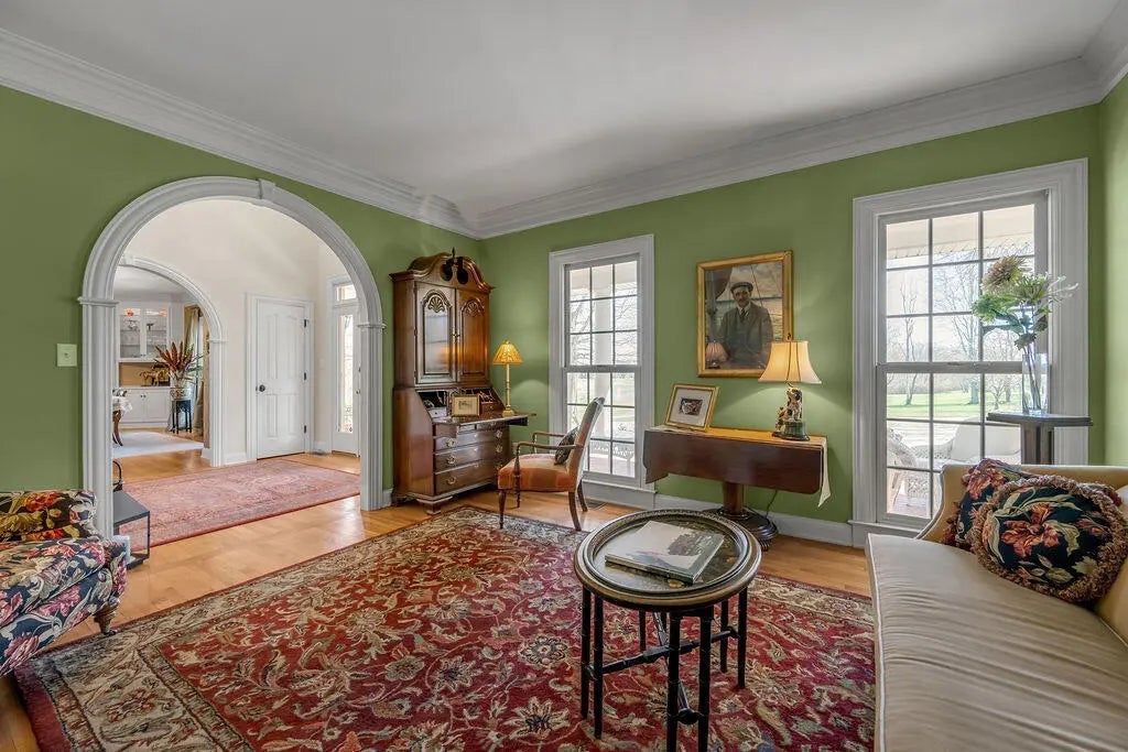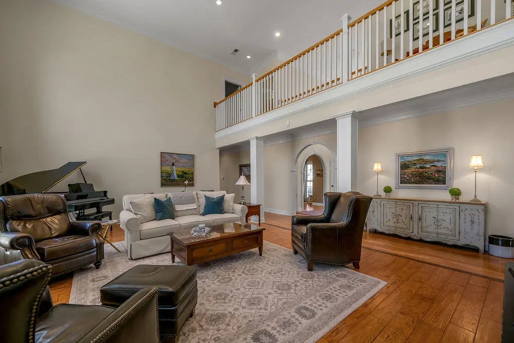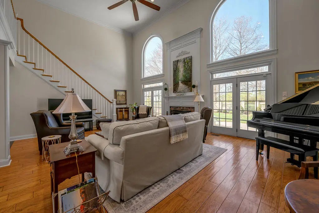 Experience the perfect blend of Southern charm and elegant style in this exquisite home located on the 4th fairway of the Champion Trace Course at Keene Trace Golf Club, a recent host of the Barbasol Championship. This property features a large front porch with stunning golf course views. Inside, discover custom moldings, arched entryways, and an open layout with hardwood floors. The generously sized rooms include a highly desired first-floor owner's suite. Pristine condition! Entertain with ease in the gourmet kitchen equipped with a 5-burner gas cooktop, double ovens, extensive cabinetry, and a cozy sitting area. The home also boasts a large dining room with built-ins, a home office, and a gorgeous Great Room flooded with natural light. Upstairs, find four spacious bedrooms, two full baths, and substantial closet space. The walkout basement offers a theater room with built-in speakers and a screen, recreation space, and a workout room. Complete with a 3-car garage and a private brick courtyard. Hurry!