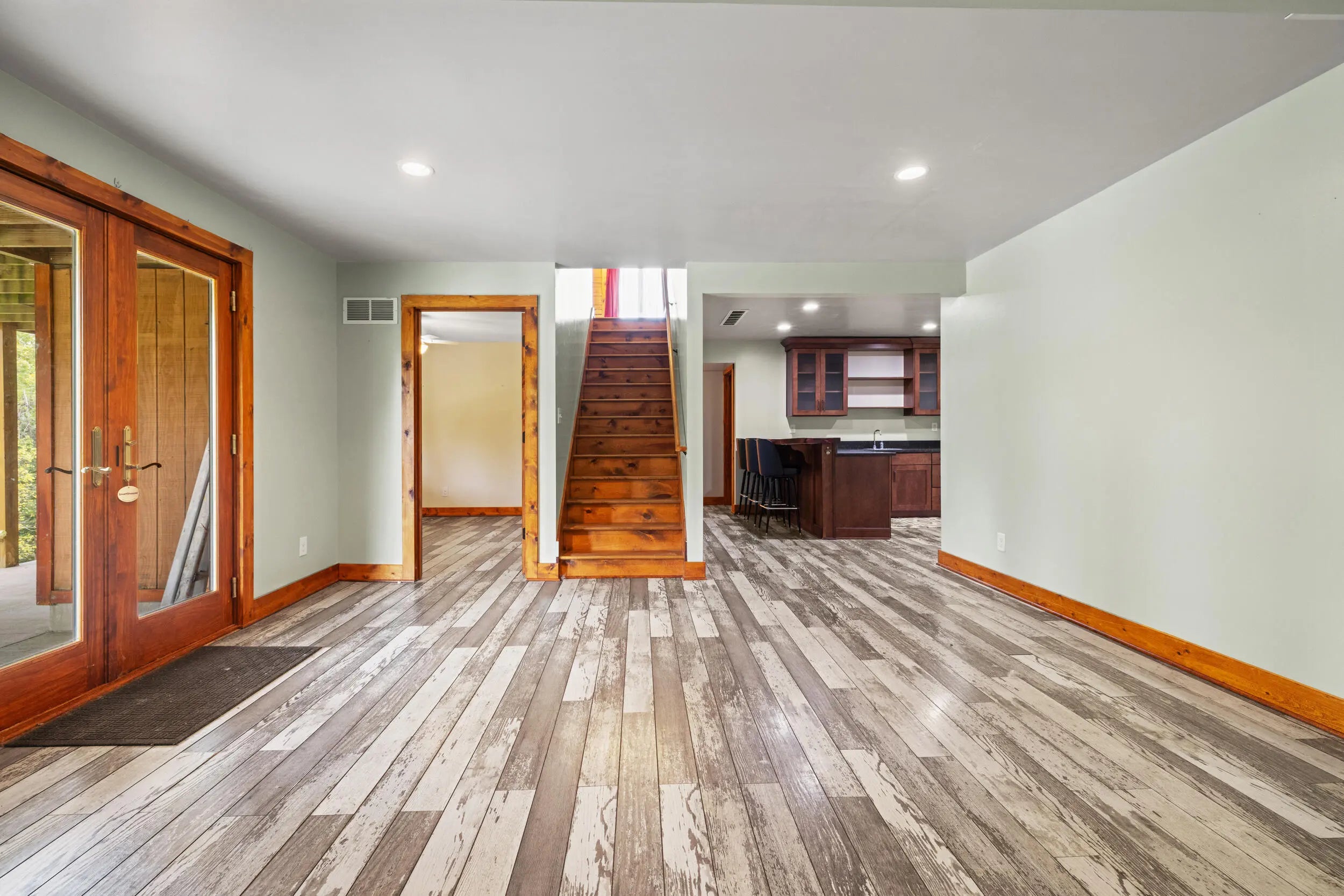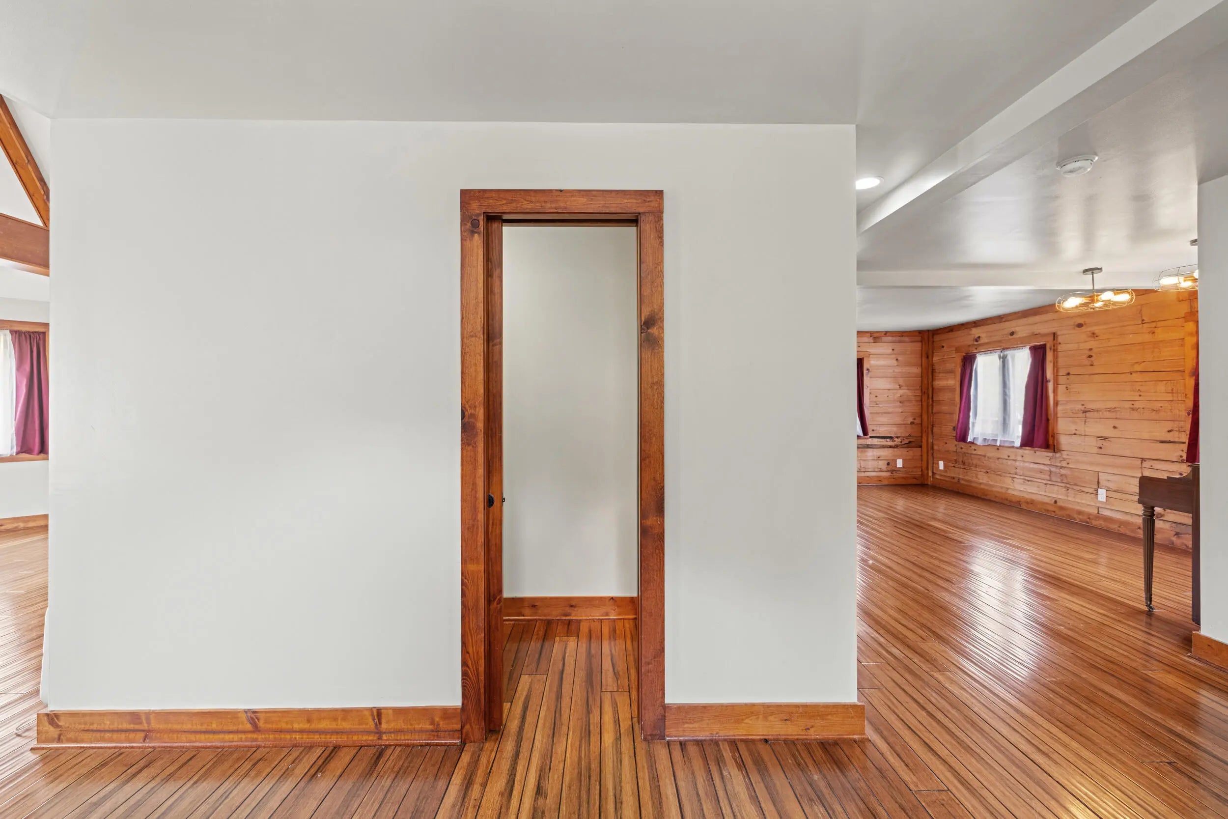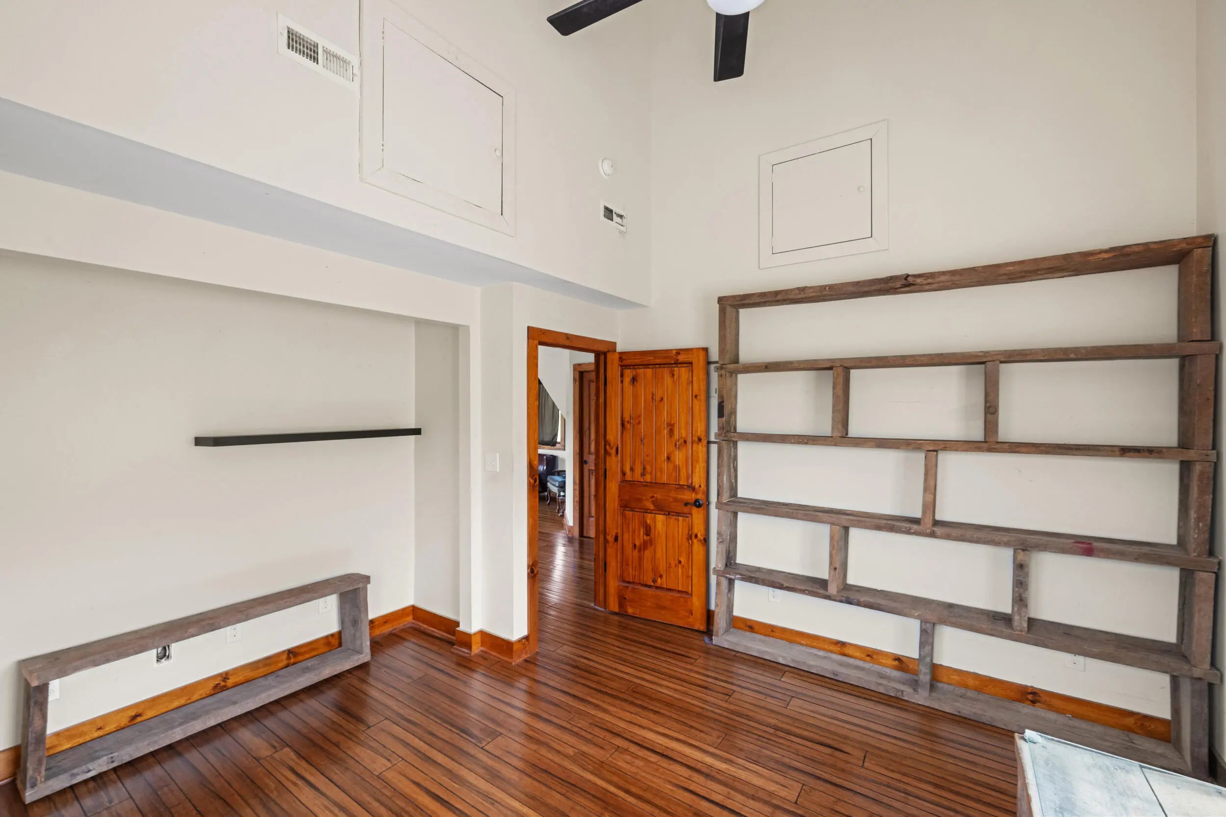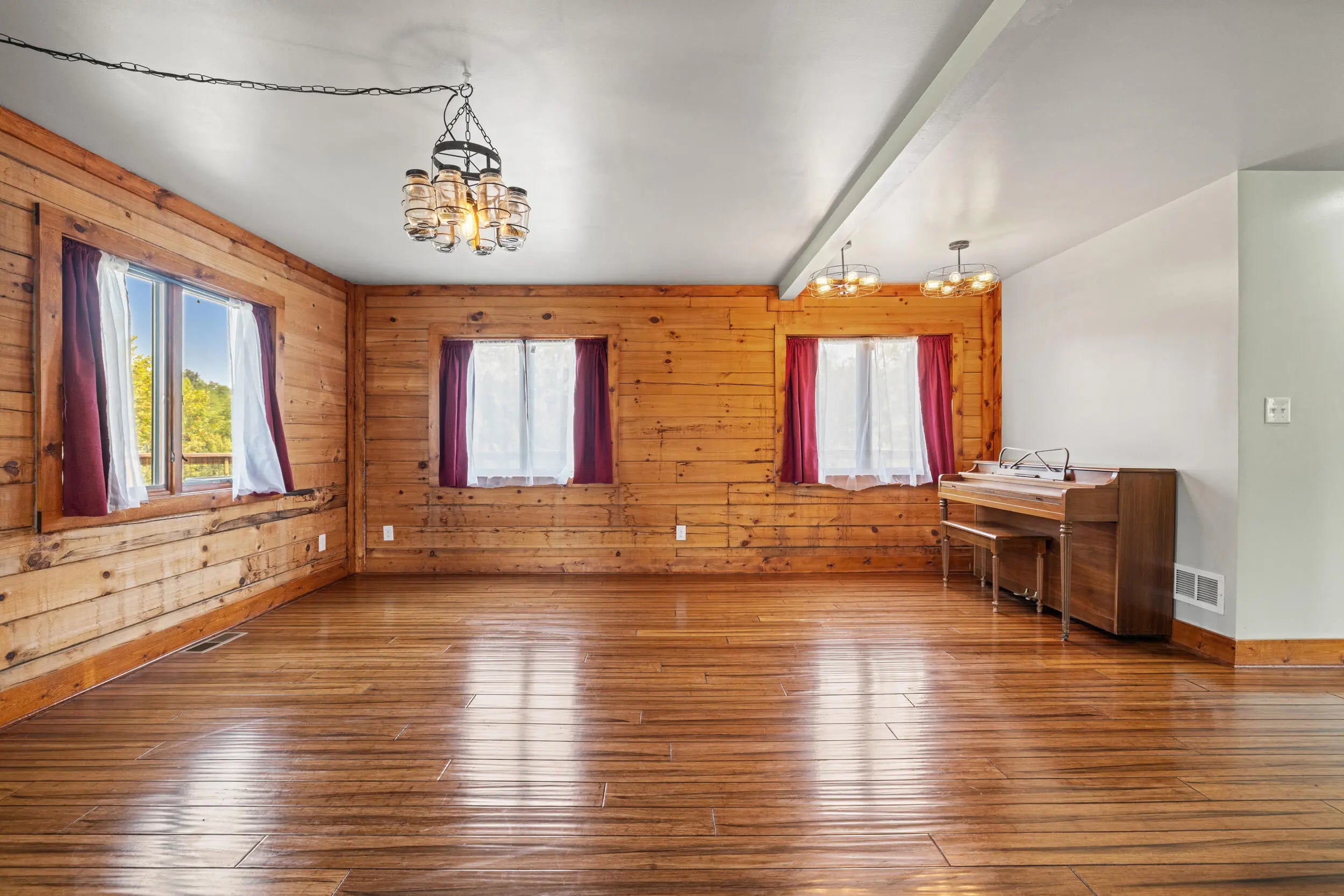 Welcome to peaceful country living in this one-of-a-kind custom log home, offered for the first time. Thoughtfully designed and meticulously crafted, every detail of this D-log style home reflects quality, character, and care. A wraparound deck spans the main living area, and patio off the first floor with matching swings—is the perfect place for relaxing and taking in the serene surroundings. Inside, soaring vaulted ceilings with exposed wood beams and abundant natural light create a warm, inviting atmosphere, beautifully complemented by bamboo flooring throughout. The kitchen is both stylish and functional, featuring granite countertops, a spacious walk-in pantry, and a deep farmhouse sink. A charming half bath showcases a truly unique custom vanity, crafted from a vintage sewing machine with a copper basin. Upstairs, the expansive primary suite offers vaulted ceilings, a large walk-in closet, and a spa-like bathroom complete with an oversized tiled shower, a classic clawfoot tub, and a distinctive vanity made from an antique pie safe. Step out onto the private balcony for breathtaking stargazing nights. The home office is rich with character, featuring custom-built shelving and a desk crafted from reclaimed wood, adding warmth and history to the space. The finished walkout basement is designed for both comfort and entertaining, featuring a live-edge wood bar, full bathroom, two additional bedrooms, a cozy den, and a utility room. Outdoors, the backyard is an entertainer's dream with a saltwater pool, inviting firepit area, and plenty of space to unwind. The barn includes concrete flooring and electricity, offering versatility for hobbies or storage. A whole-home generator provides peace of mind year-round. Fruit trees, including peach and apple, flourish in the lower valley, adding to the property's natural charm. Conveniently located just minutes from Chowning Boat Dock, local wineries, and the growing community of Bloomfield, this home offers the perfect blend of tranquility and accessibility. Experience the beauty, craftsmanship, and lifestyle this exceptional property has to offer—your private retreat awaits.
