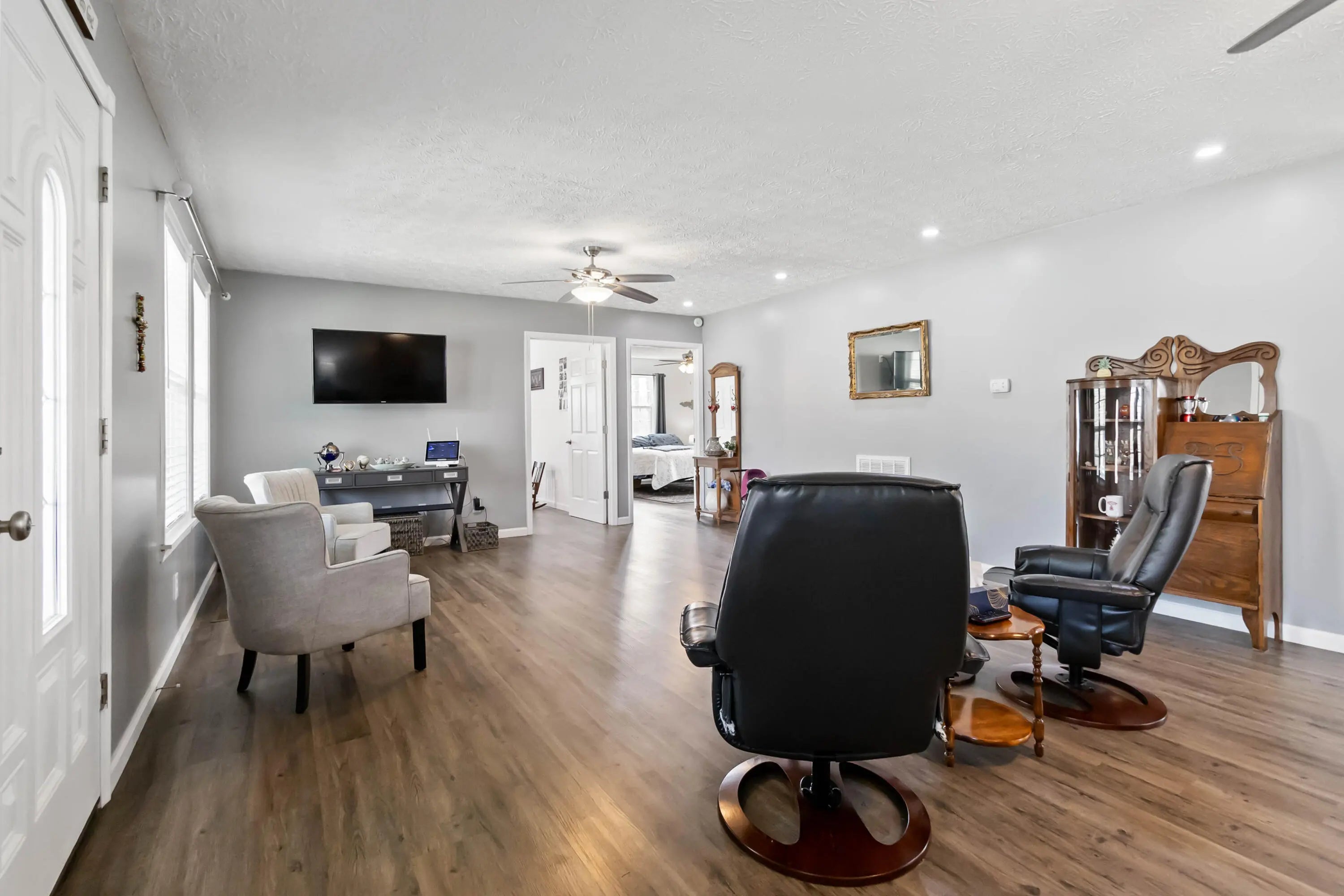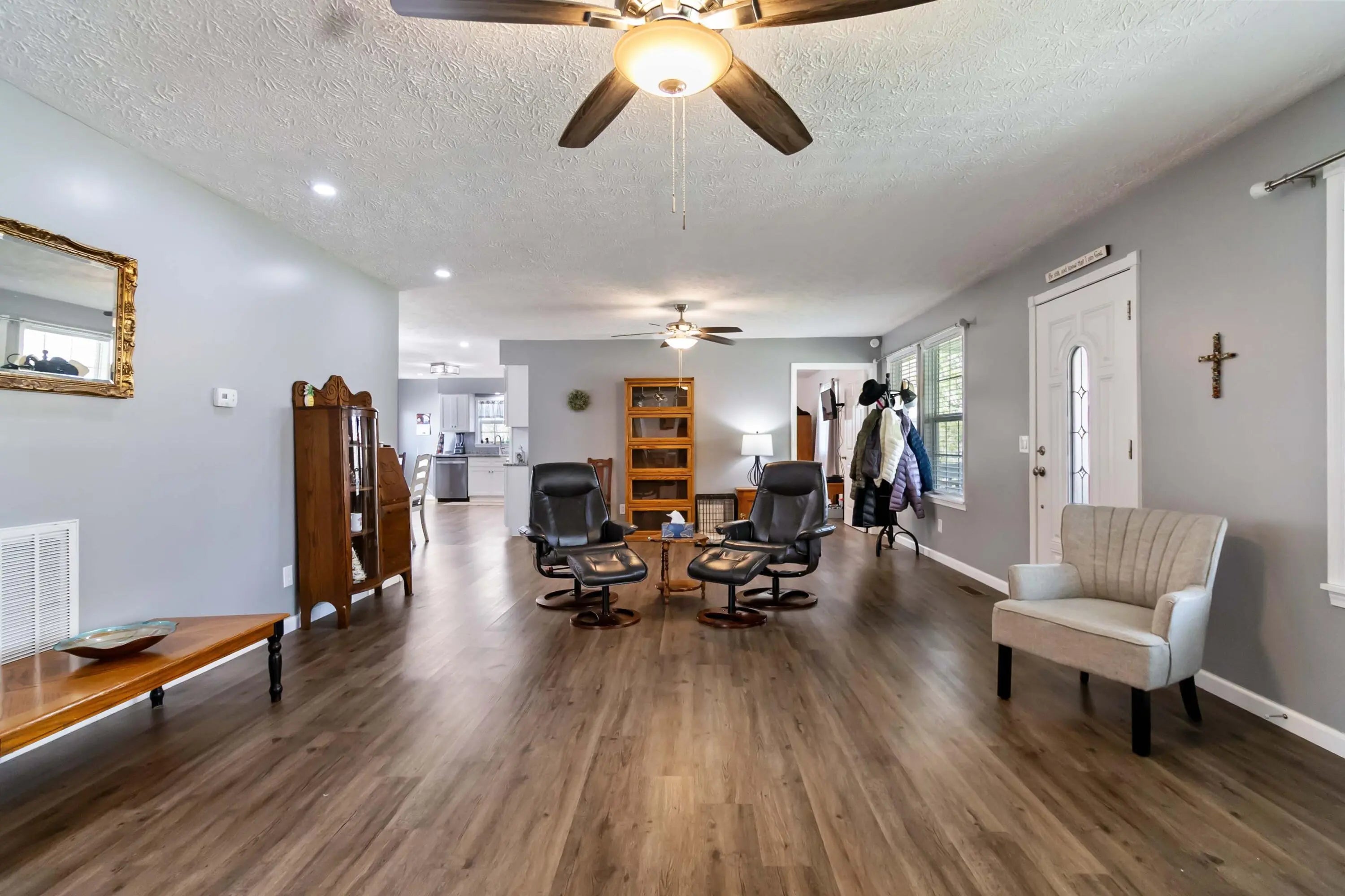 Located on approximately 7.083 acres, this 3 bedroom, 2 bath fully renovated home offers privacy and direct access to outdoor recreation near the Daniel Boone National Forest. Additional features include covered RV/Boat parking with electric and "man cave" area. The 38x60 detached garage features new automatic garage door, shelving, and plenty of space for a workshop/storage. The home features an approximate 1,680 square foot layout with a spacious living area, great natural light, and a newly updated kitchen with modern finishes. The primary suite includes a separate walk-in shower and a soaking tub. Two additional bedrooms and bathroom offer the space and layout for comfortable everyday living. Exterior features include a covered front porch and rear deck overlooking wooded surroundings. The acreage is mostly wooded and offers potential for hunting, gardening, or small homestead use. A separate driveway to the garage allows for convenient access and added functionality. Property also includes an existing well. Conveniently located approximately 1.5 miles from Turkey Creek Boat Ramp for access to Lake Cumberland and less than 10 minutes to Natural Arch Scenic Area. The property is also near hiking trails and ATV riding areas, making it ideal for full-time living, recreational use, or investment potential.