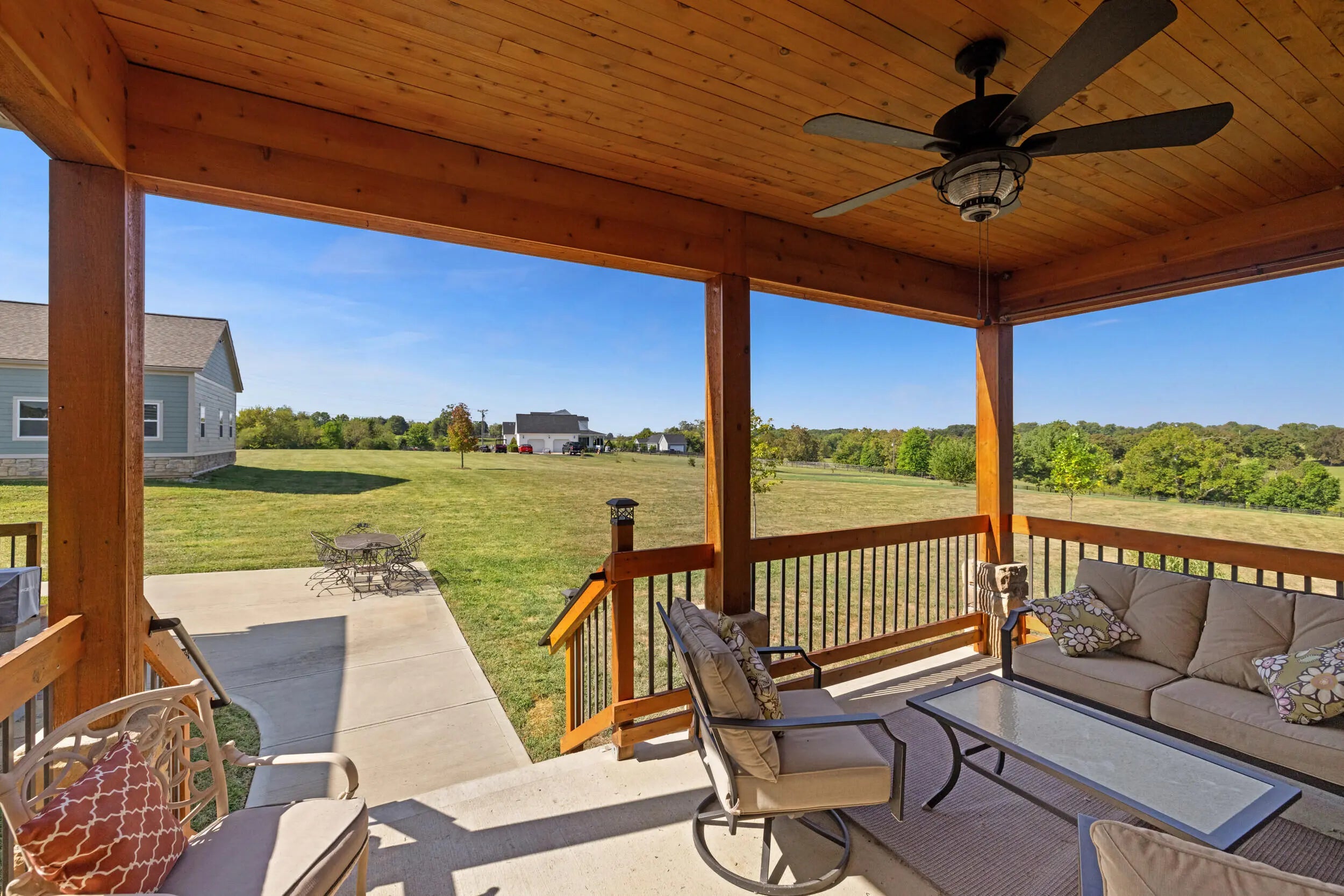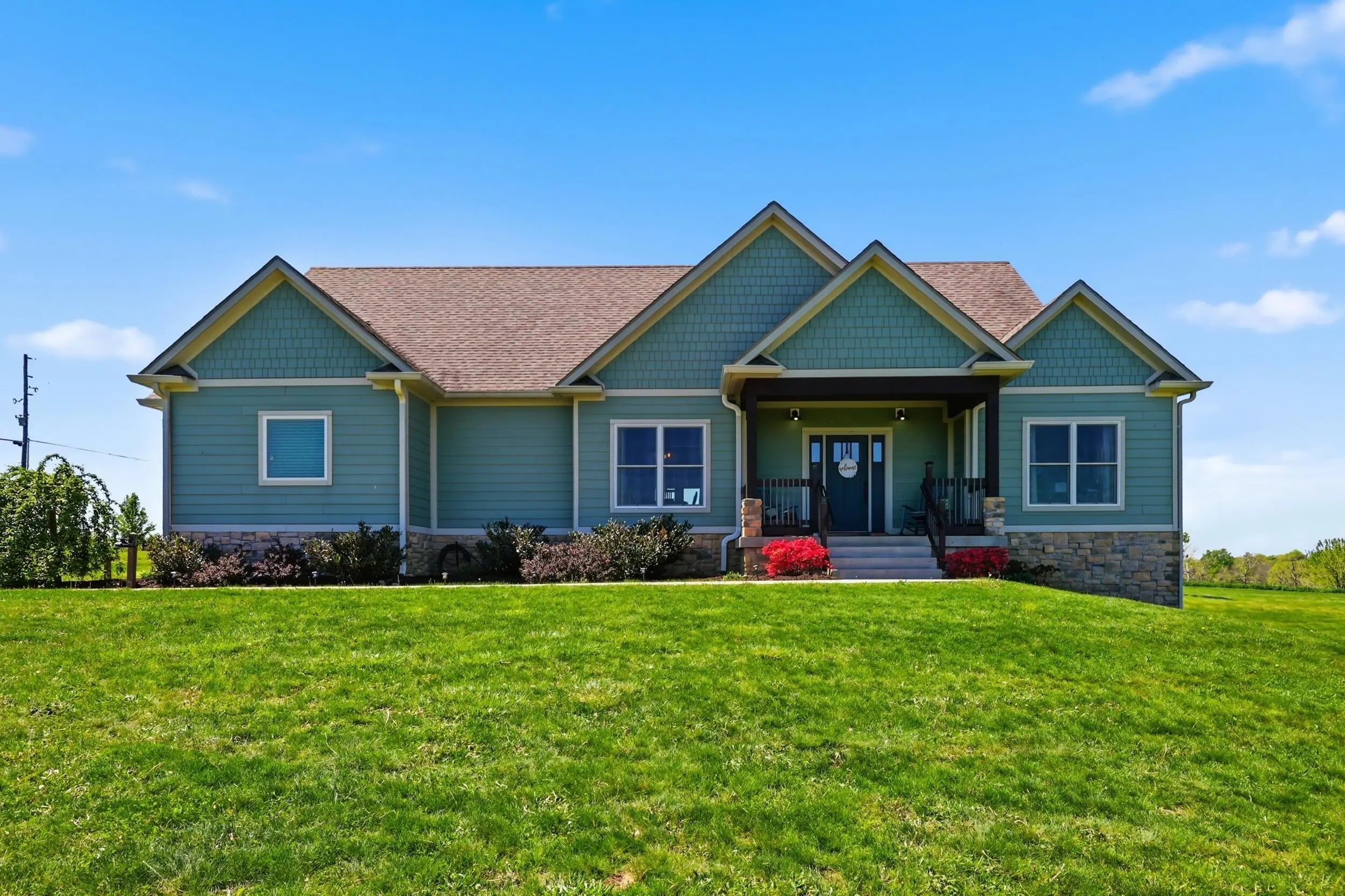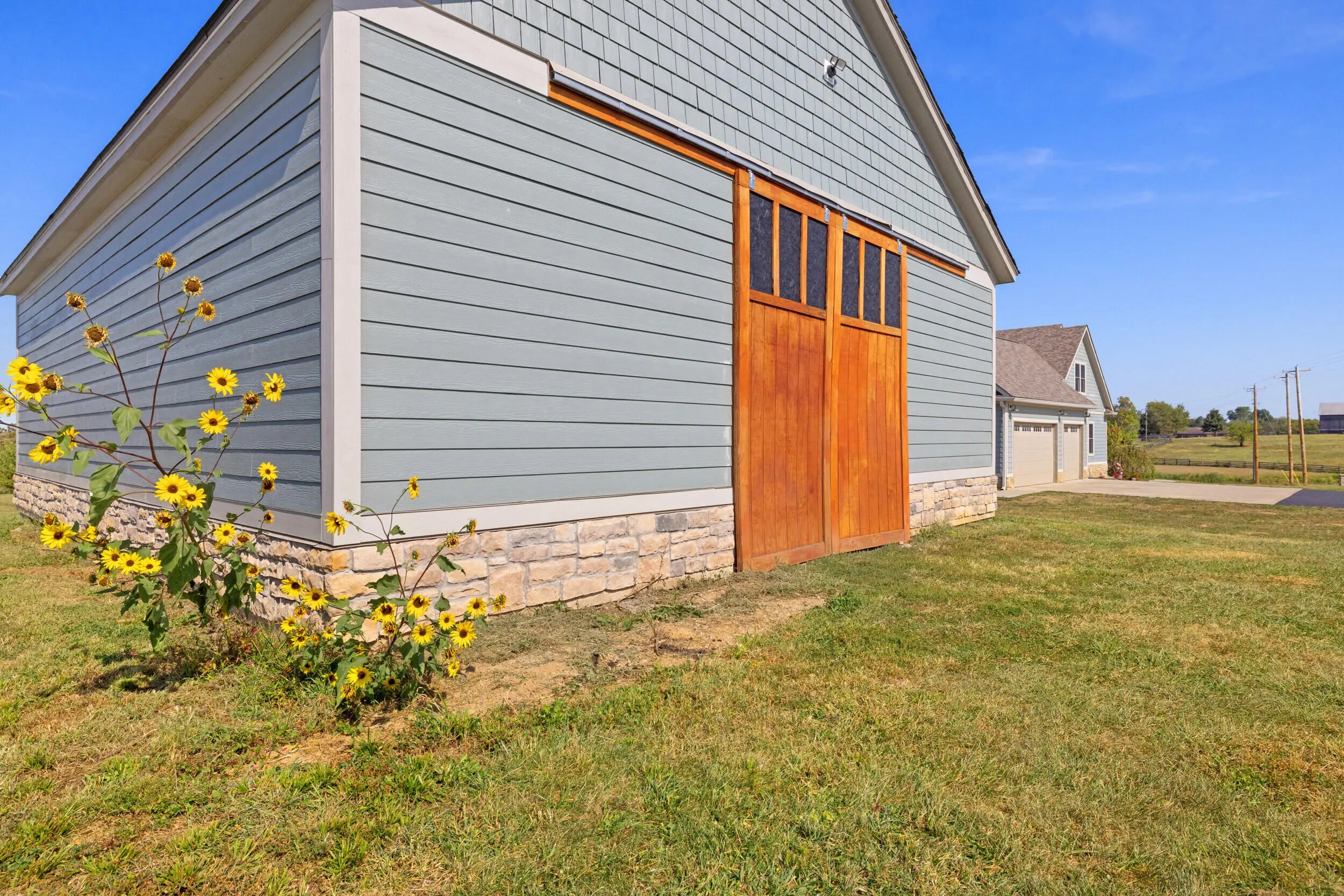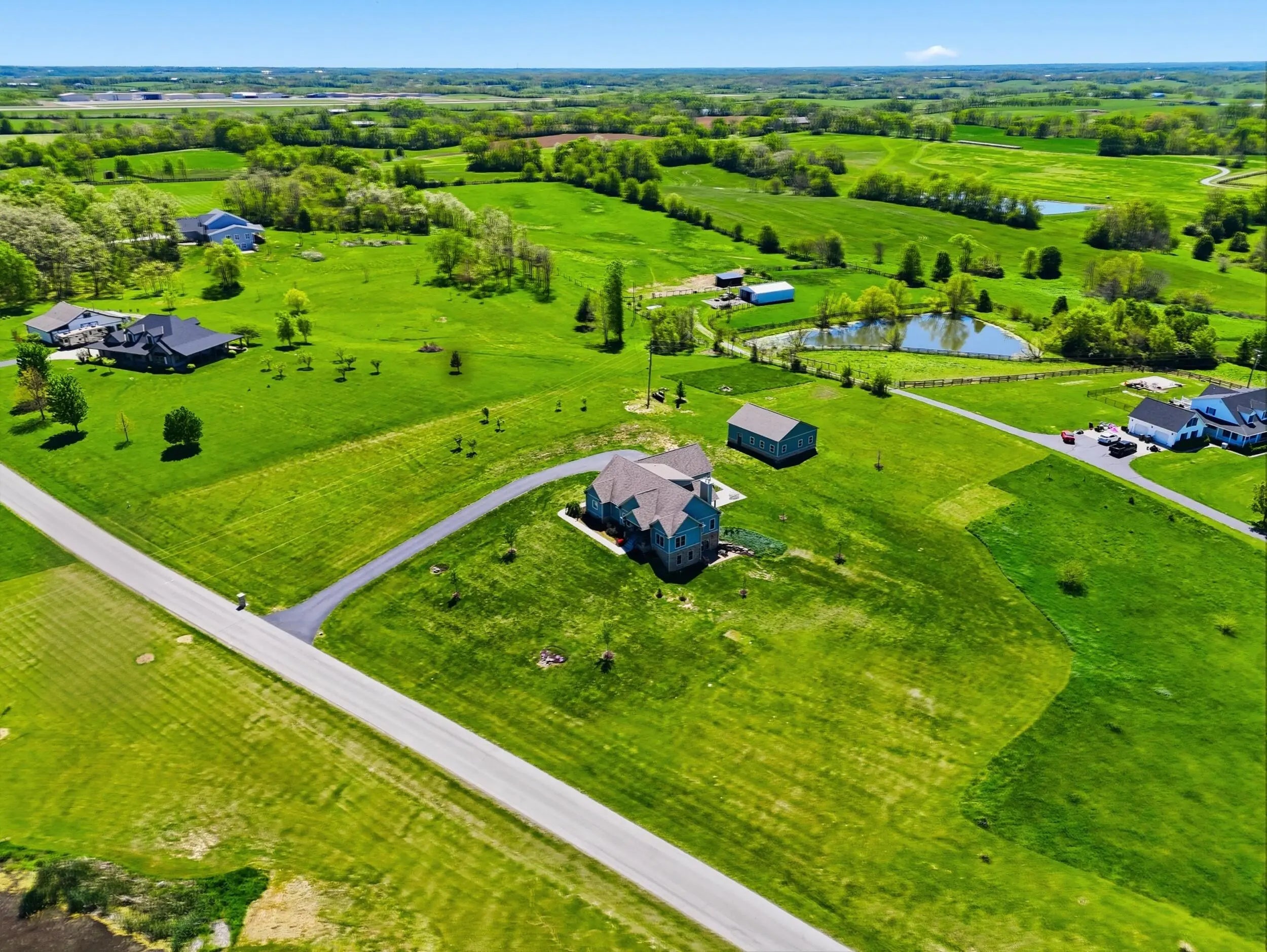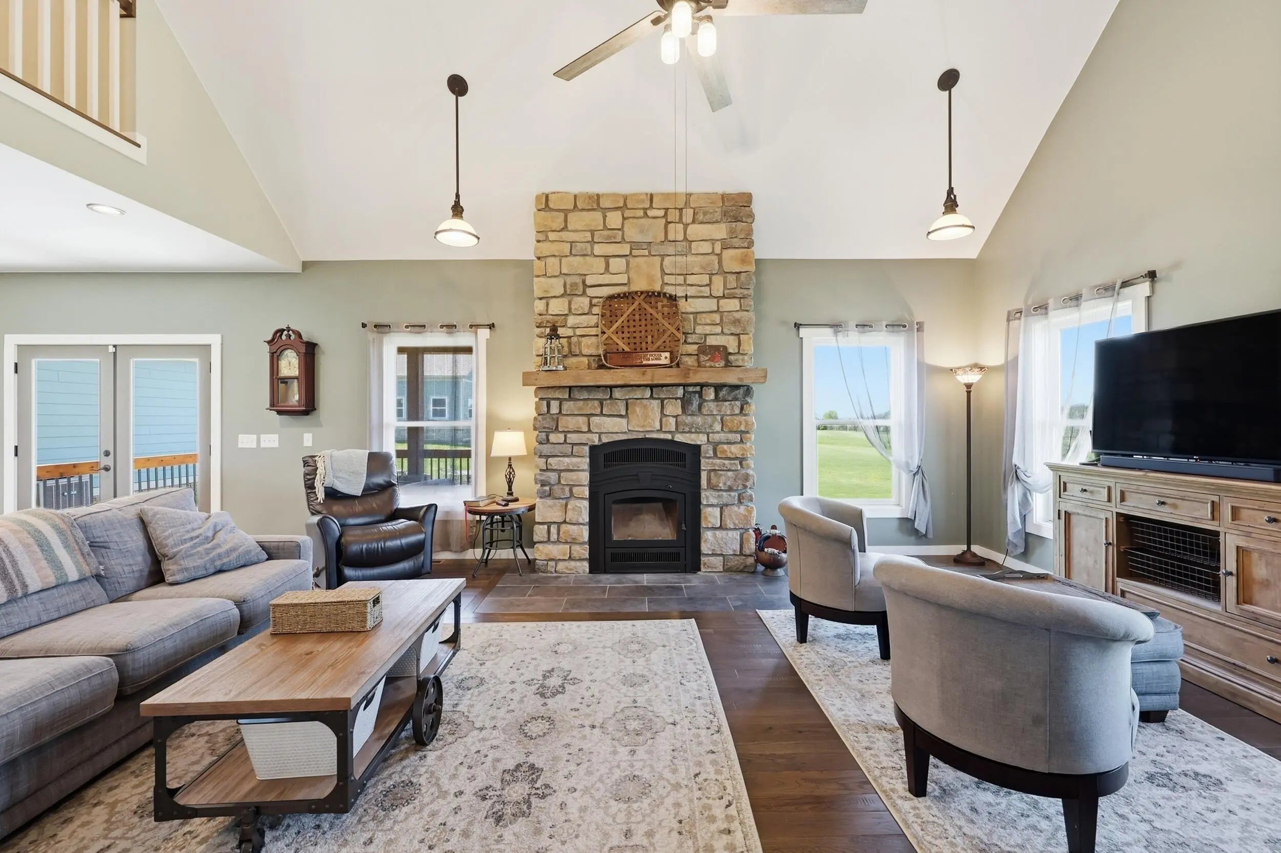 Wow...this is a rare find! Gorgeous story & a half custom-built home with full walk-out basement, sitting on picturesque 5-acre lot, with adjacent barn. The floorplan of this home is a dream! Enter through the covered front porch into formal foyer with open hardwood tread staircase. To the right are French style doors opening into the Study with 9' ceilings, fan & loads of natural light. Private door off the study to a ½ bath with stone top vanity. To the left of the Foyer you will find the Dining Room that is also open to Kitchen & Breakfast. Head from the Foyer straight into the stunning Great Room. The Great Room has a cathedral ceiling, stone hearth wood burning fireplace, beautiful pendant lighting & ceiling fan. The heart of this home is the Kitchen! You will love the beauty and detail of the Amish custom-built maple cabinetry. The cook of the family will love the details including large island, pot filler, bread cabinet, roll-out trash bin, soft close cabinets, & floor to ceiling cabinetry. Need just a bit more kitchen space? No worries, just off the kitchen you will find an incredible Butler style pantry with beverage cooler, wine & stem rack. This home has a private first floor Primary Bedroom & Bath. Walk from the spacious Primary Bedroom into an ensuite bath with 2 walk-in closets, custom tiled shower, soaking tub & double bowl vanity. One of the closets has a sit-down vanity with salon style roll-out cabinet! There is a first floor mudroom with drop zone & separate laundry room! The second level offers an open flex space overlooking the Great Room, full hall bath, & 2 generous size bedrooms with large closets. There is a large hall closet & off of Bedroom 3 you will find a huge walk-in storage area!!! The lower level offers over 2300 more square feet of living! This does not feel like your typical basement... it is truly another level with walk-out exit and loads of natural light. There is a den/office with 2 closets, gathering family room area, recreation area with walk-up wet bar, exercise room, & 4th bedroom. The full bath in the lower level has a low threshold walk-in shower. There is also an area under the front porch that could be used as a safe room or would make a perfect wine cellar! This home has an attached 3 car garage with over 800 square feet of space. Enjoy entertaining or relaxing on the covered back patio. Need a little more space? Walk out back to the adjacent barn built to match the home! This oversized barn has electric, water and gravel floor ready for concrete if desired! There are so many details to this home so be sure to scroll the pictures & videos! This is a home you will definitely want to view in person!