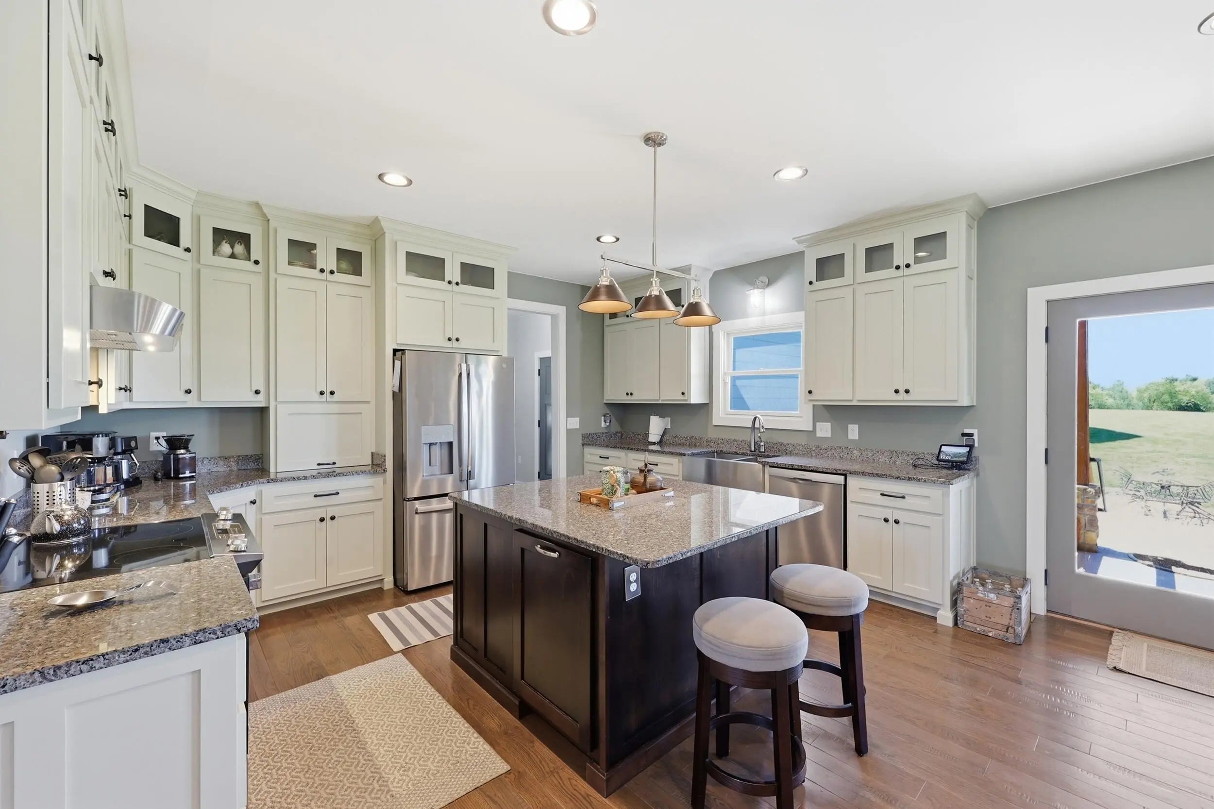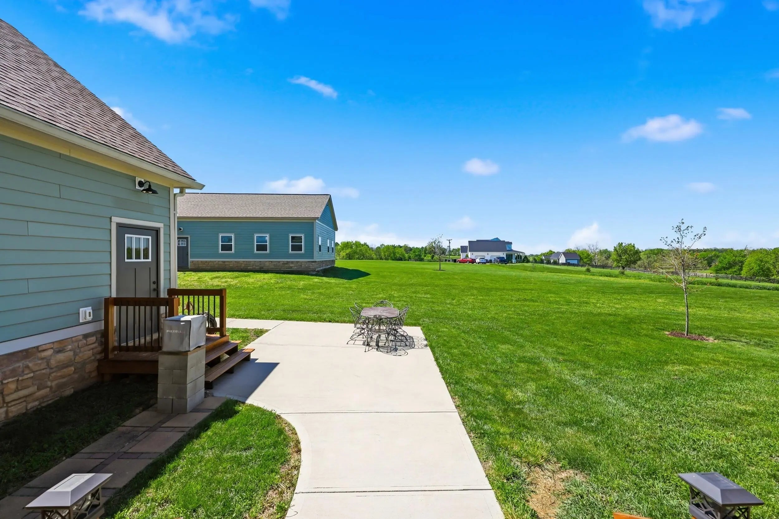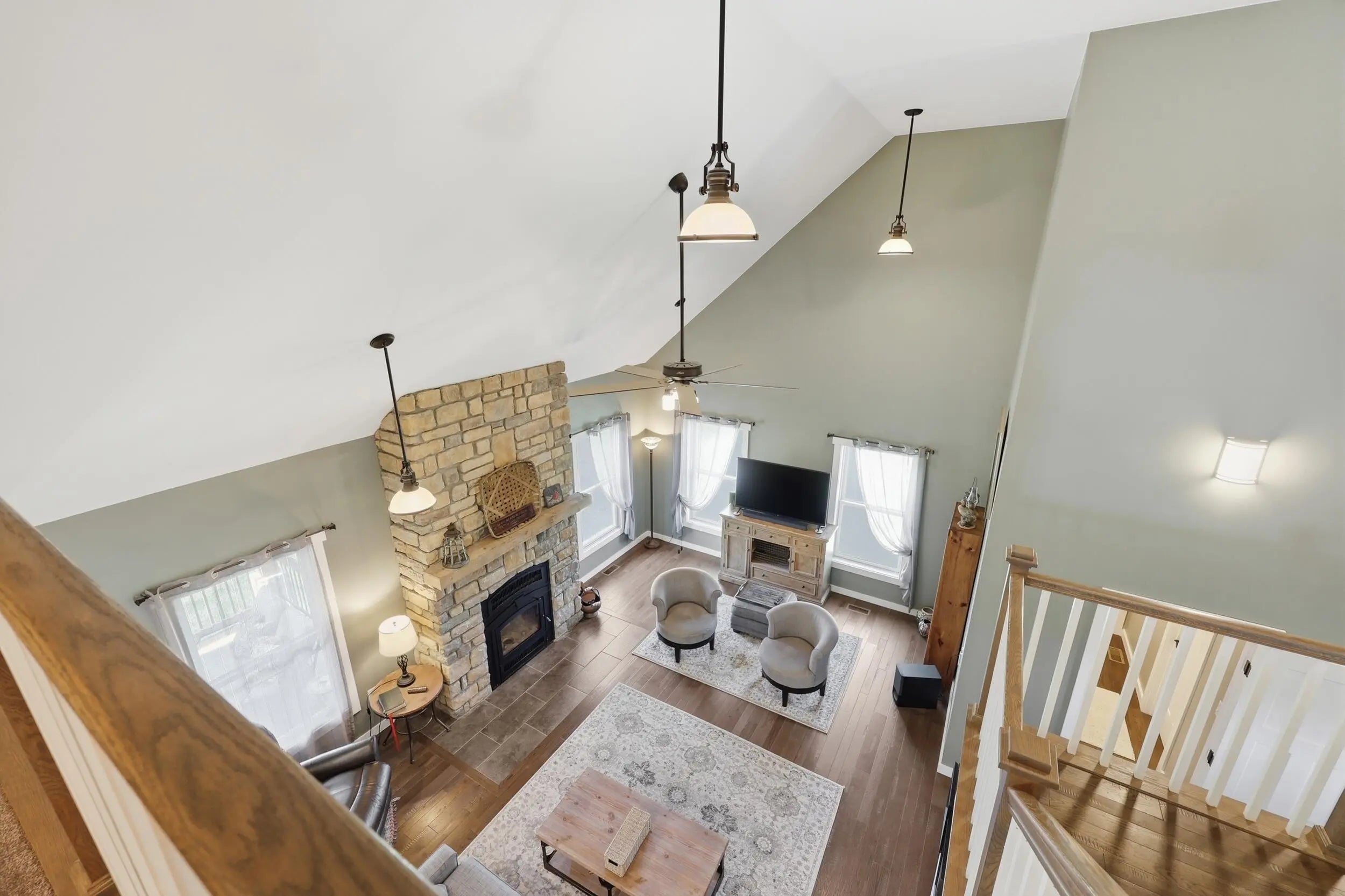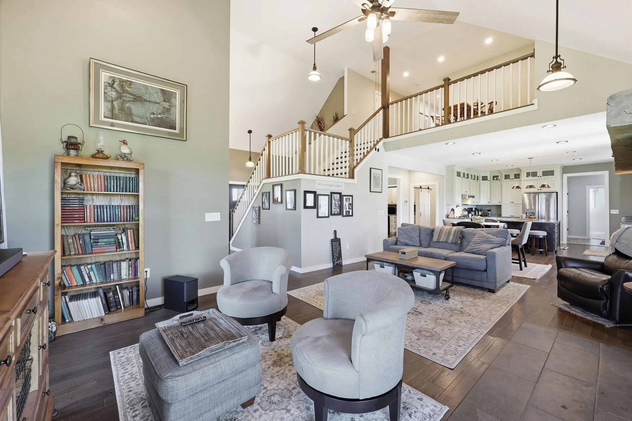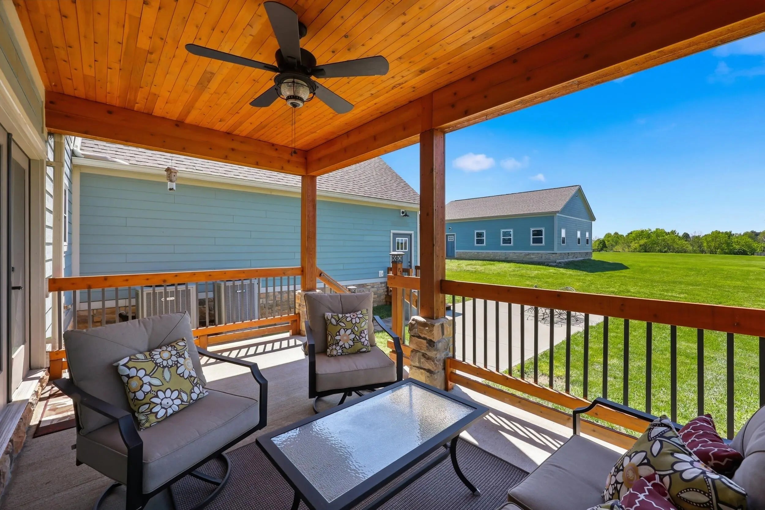 Wow...this is a rare find! Gorgeous story & a half custom-built home with full walk-out basement, sitting on picturesque 5-acre lot, with adjacent barn. The floorplan of this home is a dream! Enter through the covered front porch into formal foyer with open hardwood tread staircase. To the right are French style doors opening into the Study with 9' ceilings, fan & loads of natural light. Private door off the study to a ½ bath with stone top vanity. To the left of the Foyer you will find the Dining Room that is also open to Kitchen & Breakfast. Head from the Foyer straight into the stunning Great Room. The Great Room has a cathedral ceiling, stone hearth wood burning fireplace, beautiful pendant lighting & ceiling fan. The heart of this home is the Kitchen! You will love the beauty and detail of the Amish custom-built maple cabinetry. The cook of the family will love the details including large island, pot filler, bread cabinet, roll-out trash bin, soft close cabinets, & floor to ceiling cabinetry. Need just a bit more kitchen space? No worries, just off the kitchen you will find an incredible Butler style pantry with beverage cooler, wine & stem rack. This home has a private first floor Primary Bedroom & Bath. Walk from the spacious Primary Bedroom into an ensuite bath with 2 walk-in closets, custom tiled shower, soaking tub & double bowl vanity. One of the closets has a sit-down vanity with salon style roll-out cabinet! There is a first floor mudroom with drop zone & separate laundry room! The second level offers an open flex space overlooking the Great Room, full hall bath, & 2 generous size bedrooms with large closets. There is a large hall closet & off of Bedroom 3 you will find a huge walk-in storage area!!! The lower level offers over 2300 more square feet of living! This does not feel like your typical basement... it is truly another level with walk-out exit and loads of natural light. There is a den/office with 2 closets, gathering family room area, recreation area with walk-up wet bar, exercise room, & 4th bedroom. The full bath in the lower level has a low threshold walk-in shower. There is also an area under the front porch that could be used as a safe room or would make a perfect wine cellar! This home has an attached 3 car garage with over 800 square feet of space. Enjoy entertaining or relaxing on the covered back patio. Need a little more space? Walk out back to the adjacent barn built to match the home! This oversized barn has electric, water and gravel floor ready for concrete if desired! There are so many details to this home so be sure to scroll the pictures & videos! This is a home you will definitely want to view in person!