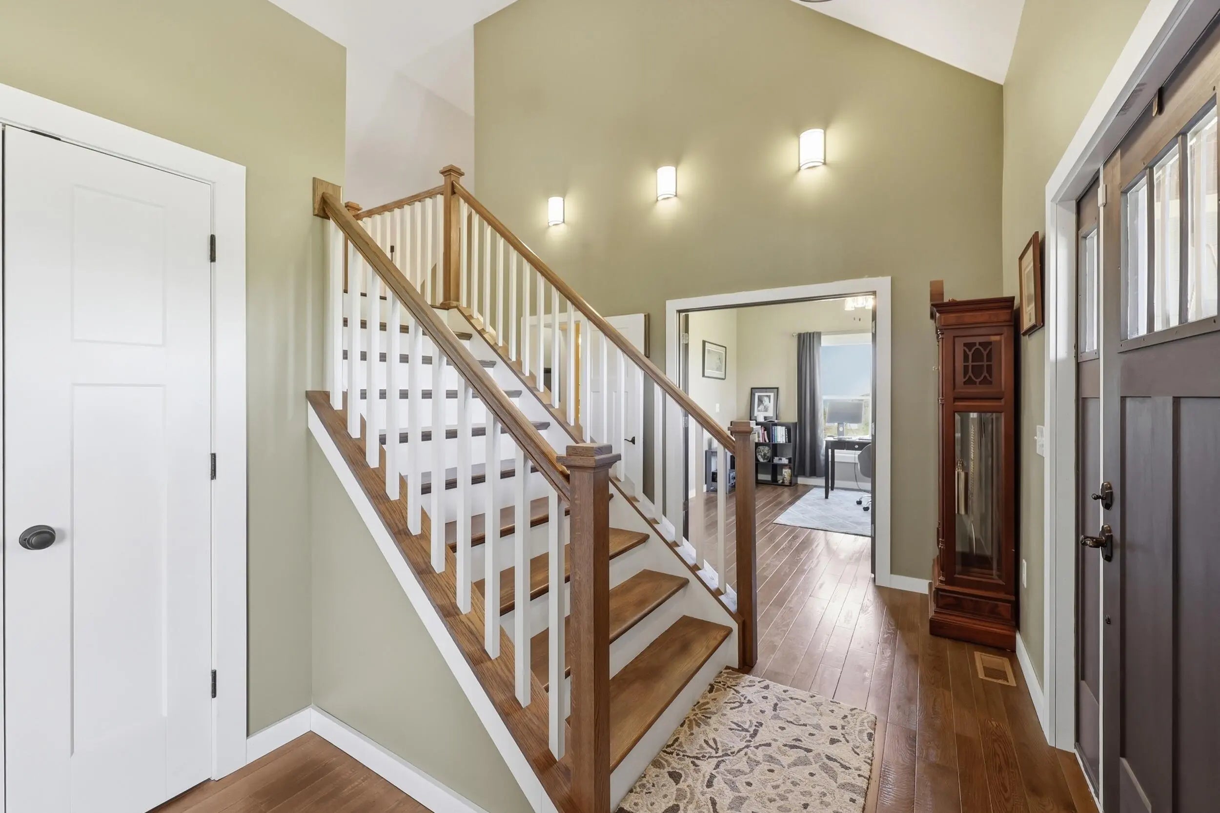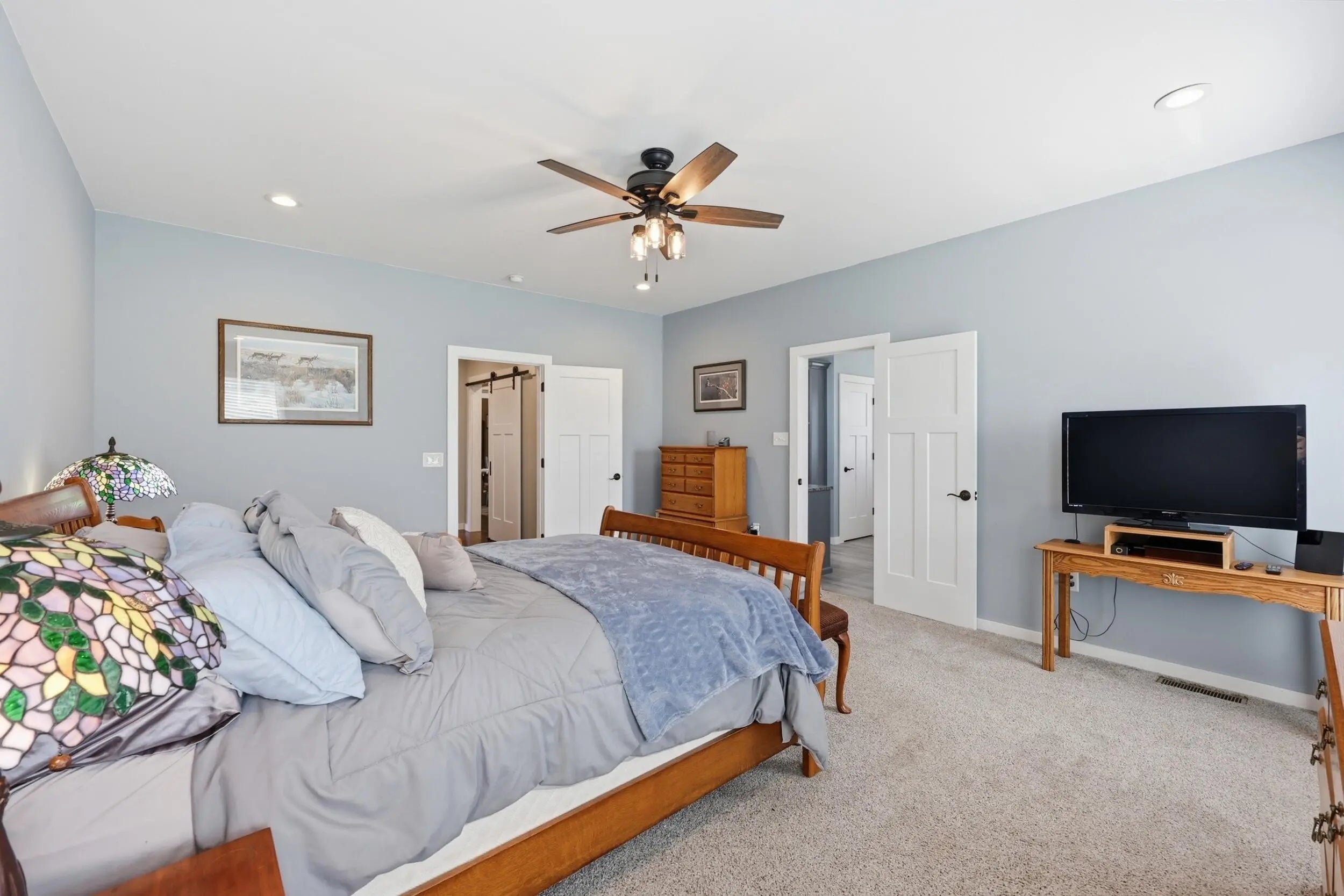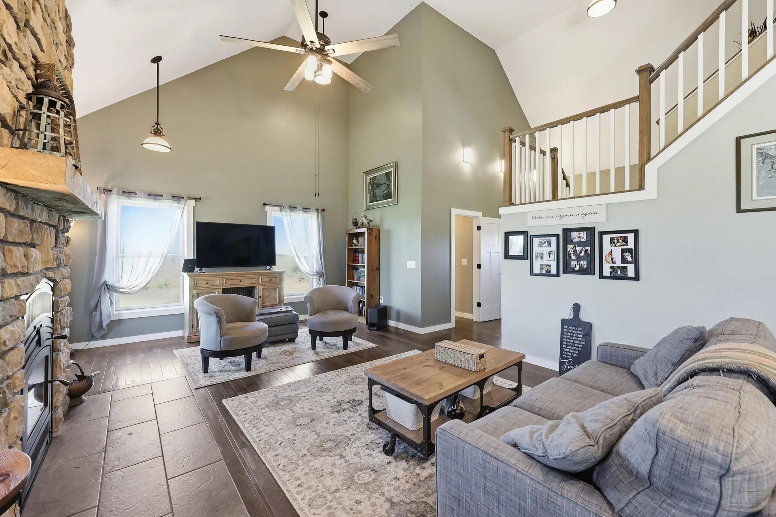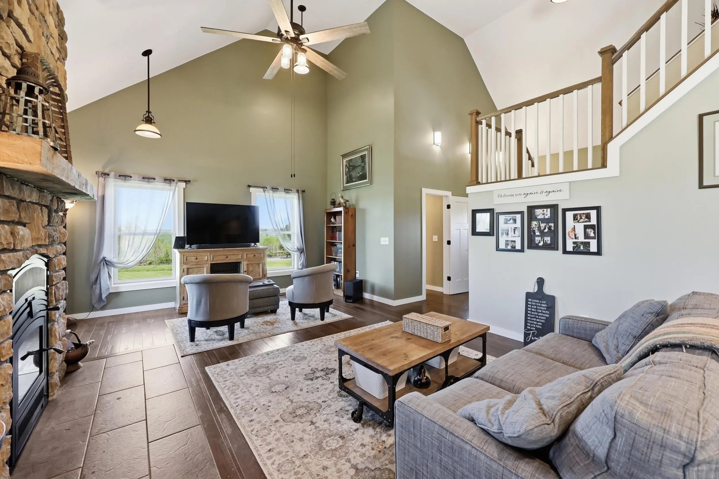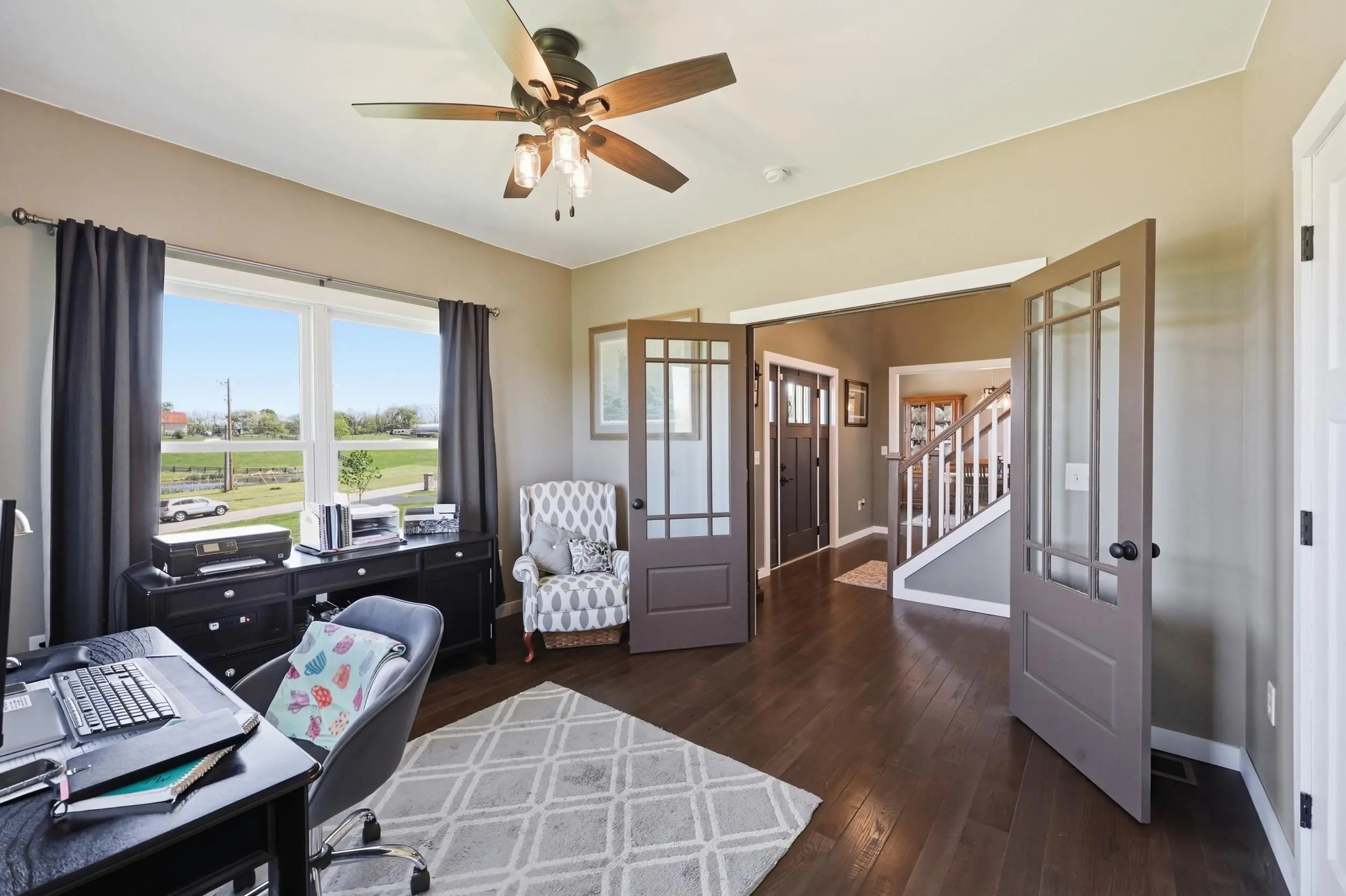 Wow...this is a rare find! Gorgeous story & a half custom-built home with full walk-out basement, sitting on picturesque 5-acre lot, with adjacent barn. The floorplan of this home is a dream! Enter through the covered front porch into formal foyer with open hardwood tread staircase. To the right are French style doors opening into the Study with 9' ceilings, fan & loads of natural light. Private door off the study to a ½ bath with stone top vanity. To the left of the Foyer you will find the Dining Room that is also open to Kitchen & Breakfast. Head from the Foyer straight into the stunning Great Room. The Great Room has a cathedral ceiling, stone hearth wood burning fireplace, beautiful pendant lighting & ceiling fan. The heart of this home is the Kitchen! You will love the beauty and detail of the Amish custom-built maple cabinetry. The cook of the family will love the details including large island, pot filler, bread cabinet, roll-out trash bin, soft close cabinets, & floor to ceiling cabinetry. Need just a bit more kitchen space? No worries, just off the kitchen you will find an incredible Butler style pantry with beverage cooler, wine & stem rack. This home has a private first floor Primary Bedroom & Bath. Walk from the spacious Primary Bedroom into an ensuite bath with 2 walk-in closets, custom tiled shower, soaking tub & double bowl vanity. One of the closets has a sit-down vanity with salon style roll-out cabinet! There is a first floor mudroom with drop zone & separate laundry room! The second level offers an open flex space overlooking the Great Room, full hall bath, & 2 generous size bedrooms with large closets. There is a large hall closet & off of Bedroom 3 you will find a huge walk-in storage area!!! The lower level offers over 2300 more square feet of living! This does not feel like your typical basement... it is truly another level with walk-out exit and loads of natural light. There is a den/office with 2 closets, gathering family room area, recreation area with walk-up wet bar, exercise room, & 4th bedroom. The full bath in the lower level has a low threshold walk-in shower. There is also an area under the front porch that could be used as a safe room or would make a perfect wine cellar! This home has an attached 3 car garage with over 800 square feet of space. Enjoy entertaining or relaxing on the covered back patio. Need a little more space? Walk out back to the adjacent barn built to match the home! This oversized barn has electric, water and gravel floor ready for concrete if desired! There are so many details to this home so be sure to scroll the pictures & videos! This is a home you will definitely want to view in person!