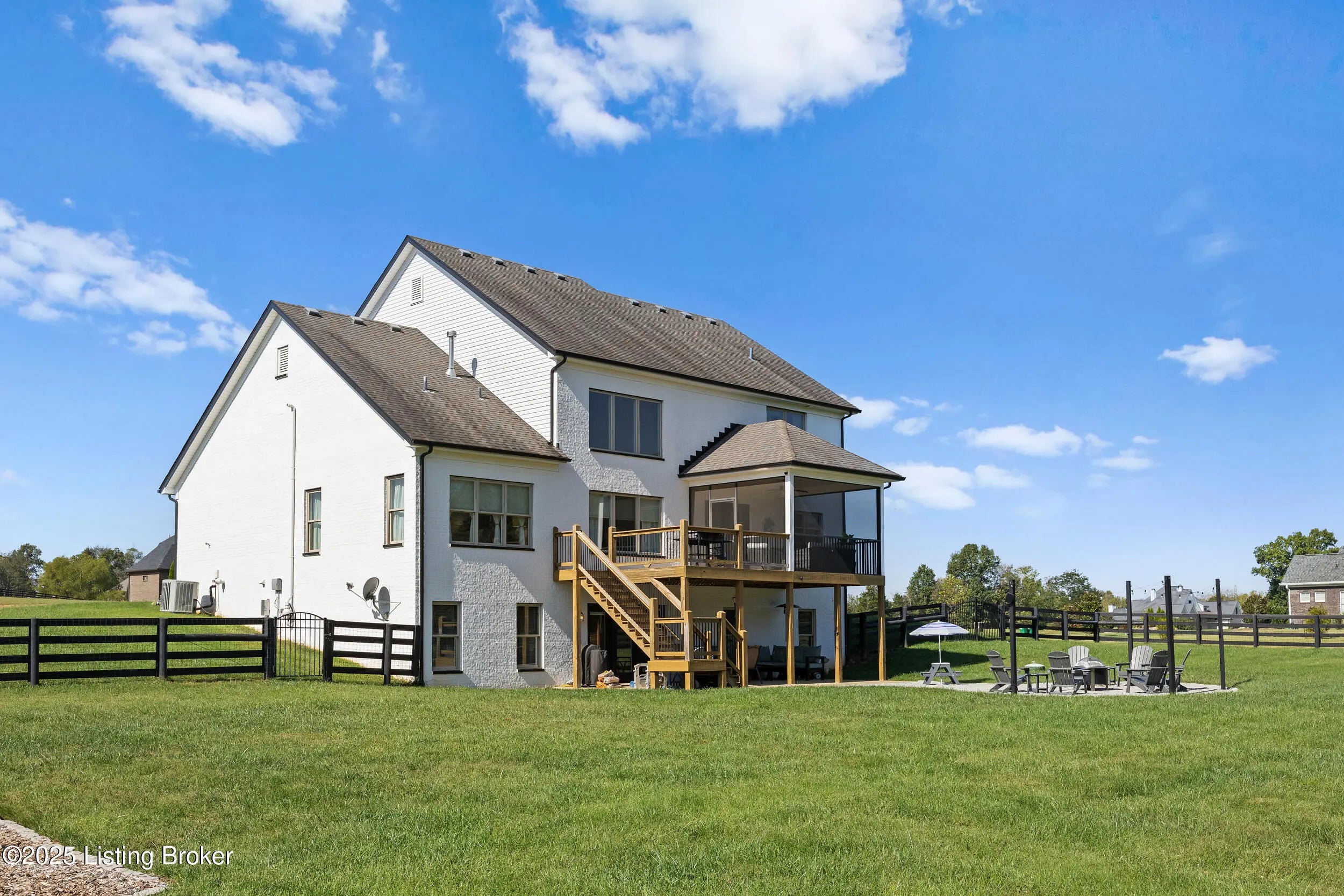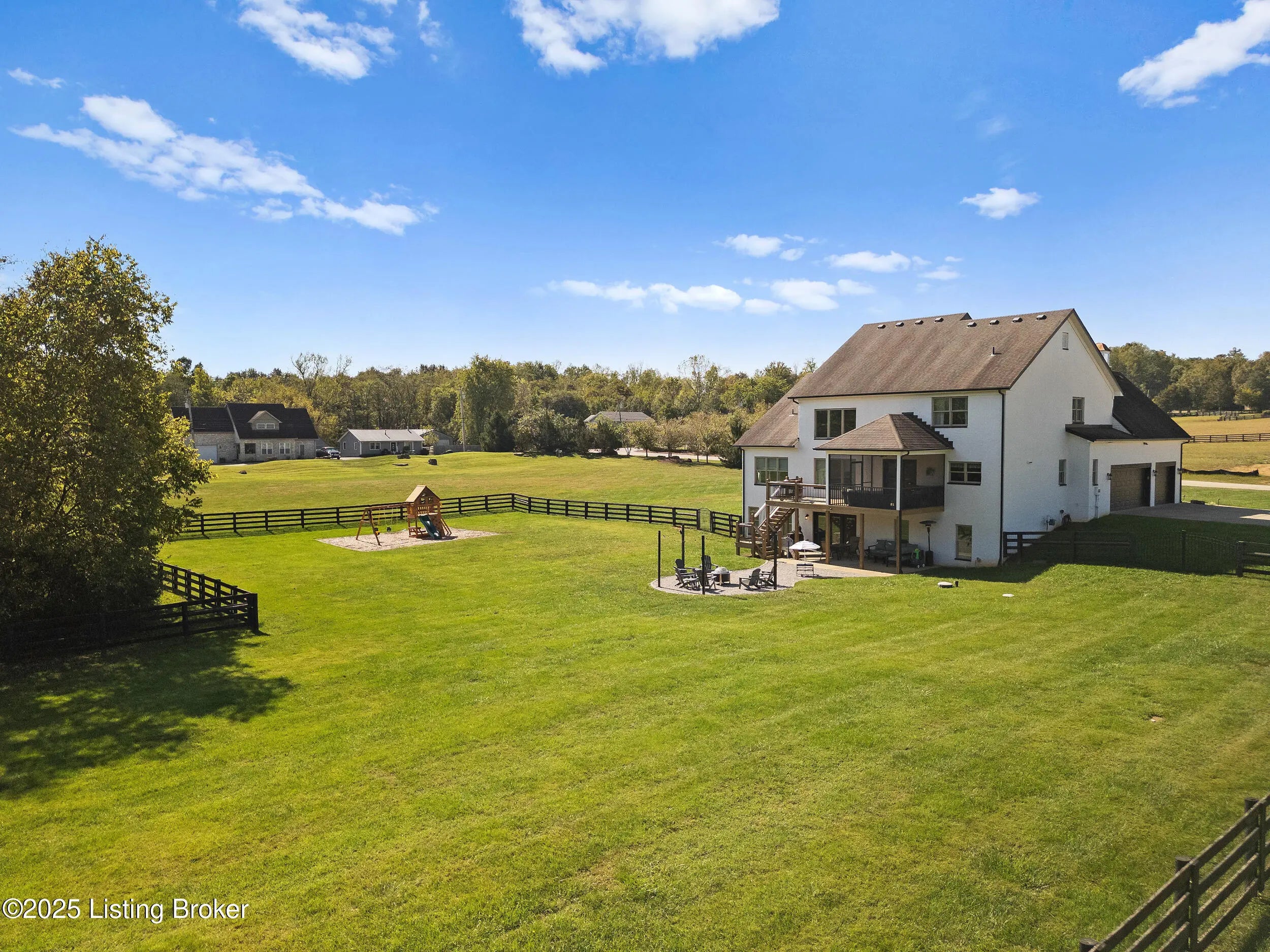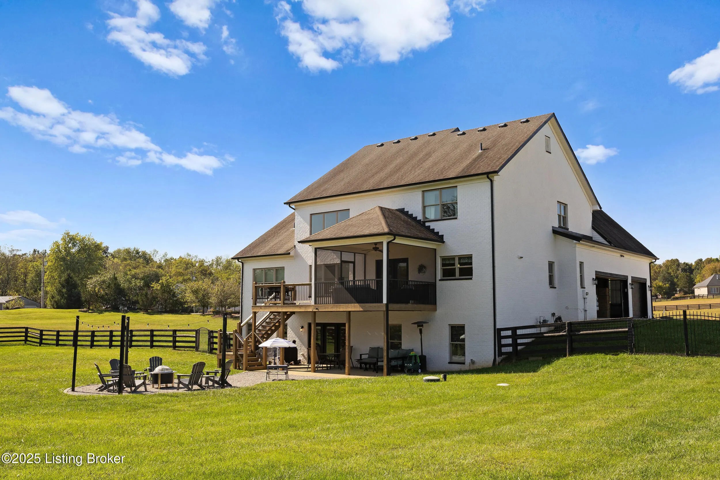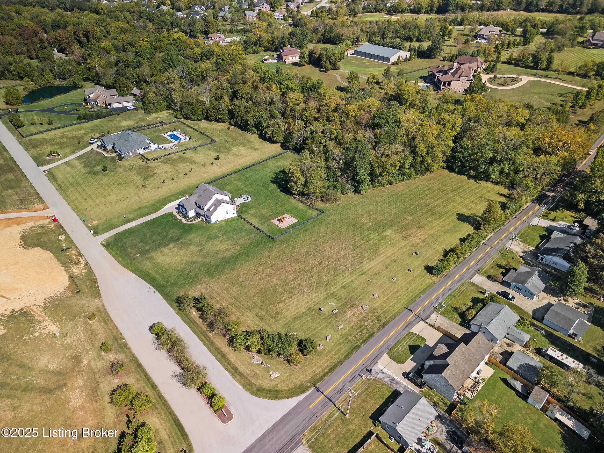 Welcome to this stunning 5-bedroom, 4.5-bath custom-built home, nestled on a picturesque 5-acre lot in the prestigious Overlook at Persimmon Ridge. This stunning property offers the perfect blend of luxury, comfort, and natural beauty — with the back portion of the lot beautifully wooded for added privacy and scenic views. As you enter through the soaring front entryway, you're greeted by a spacious open floor plan filled with natural light. The living room features vaulted ceilings, a cozy gas fireplace, and custom built-in cabinetry — seamlessly flowing into the super-sized kitchen equipped with an abundance of cabinetry, exquisite granite countertops, a massive center island, and a convenient built-in desk/computer area. The main-level owner's suite is a peaceful retreat overlooking the rear of the property. It boasts a spa-like en suite bath with double vanities, a large walk-in shower, a whirlpool tub, and a generous walk-in closet. Also on the main level: a formal dining room with gleaming hardwood floors, a well-equipped laundry room with utility sink and linen closet, and a stylish powder room for guests. Step outside to enjoy the large, fenced-in backyardperfect for entertaining or relaxingwith a screened-in covered deck just off the kitchen, offering year-round comfort and scenic views. Upstairs, you'll find a cozy loft/common area and three spacious bedrooms, each with large walk-in closets and plenty of natural light. One of the bedrooms features its own private en suite bath, while the others share a beautifully designed full bath with double vanities. The finished walk-out basement provides even more living space, including a home office, media room with built-in surround sound, a 5th bedroom, full bath, and a versatile flex room. One area is already plumbed and finished for a potential second kitchenideal for multi-generational living or entertaining. Walk right out onto the covered patio and into the expansive backyard, perfect for play, pets, and peaceful evenings. Additional features include a three-car garage, plenty of storage throughout, and the perfect setting for outdoor activities like campouts under the stars in your own wooded area. Conveniently located just minutes from the Old Henry Road exit and close to Shelbyville, Westport, and Brownsboro Roads, this home offers quick access to shopping, dining, and top Louisville destinations. Plus, you're just minutes from Beckley Creek Park, where you can enjoy biking, walking, kayaking, and fishing. Don't miss your opportunity to own this private paradise in one of the area's most sought-after neighborhoods. Reach out today to schedule your private tour!