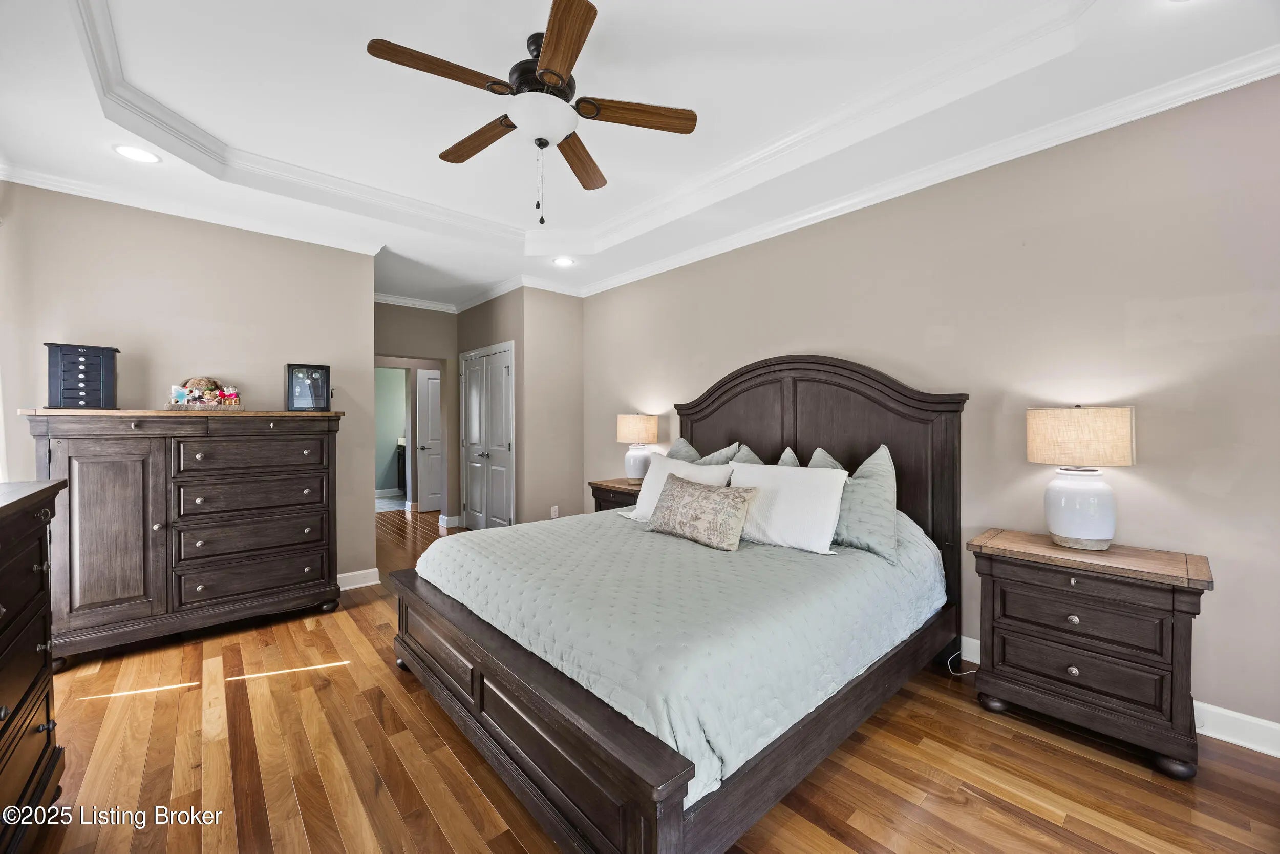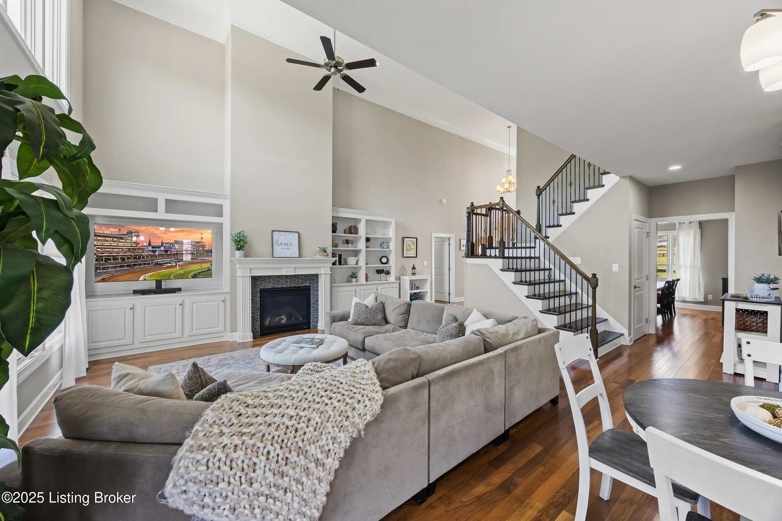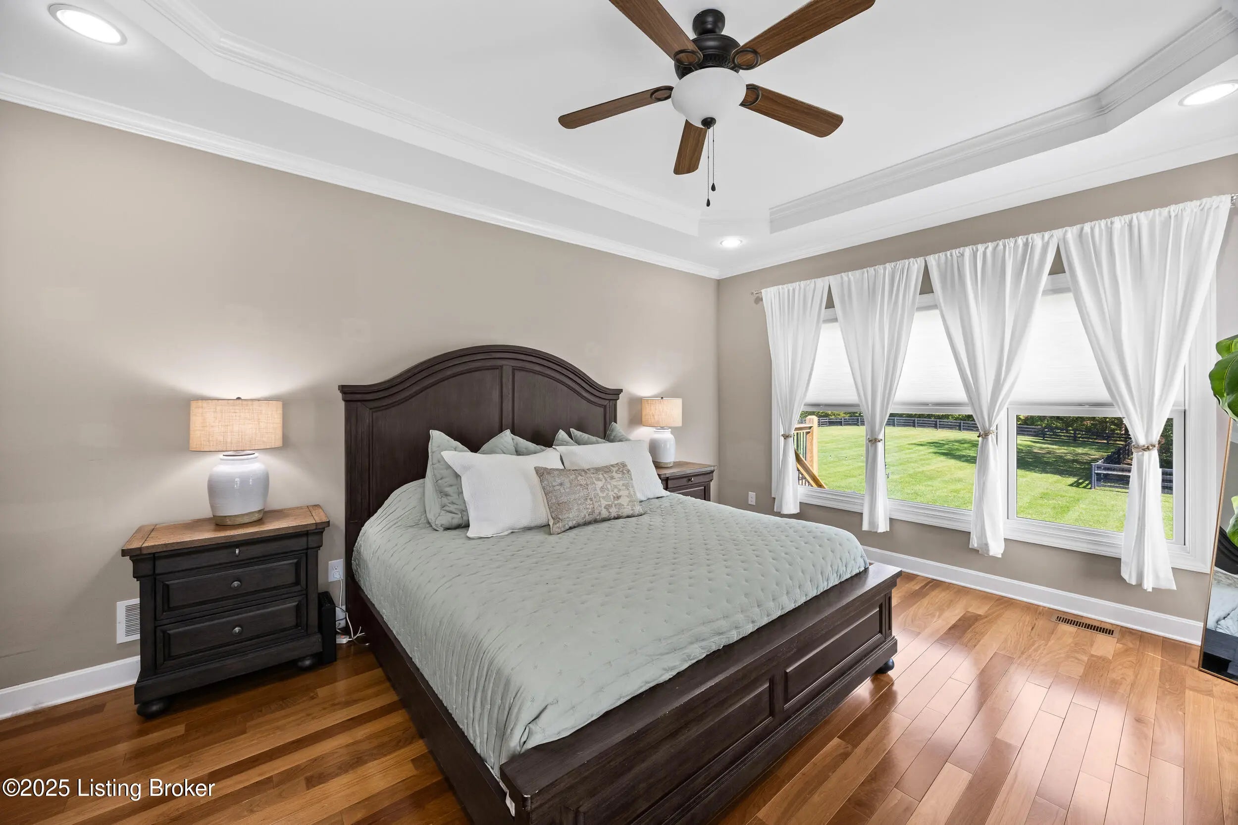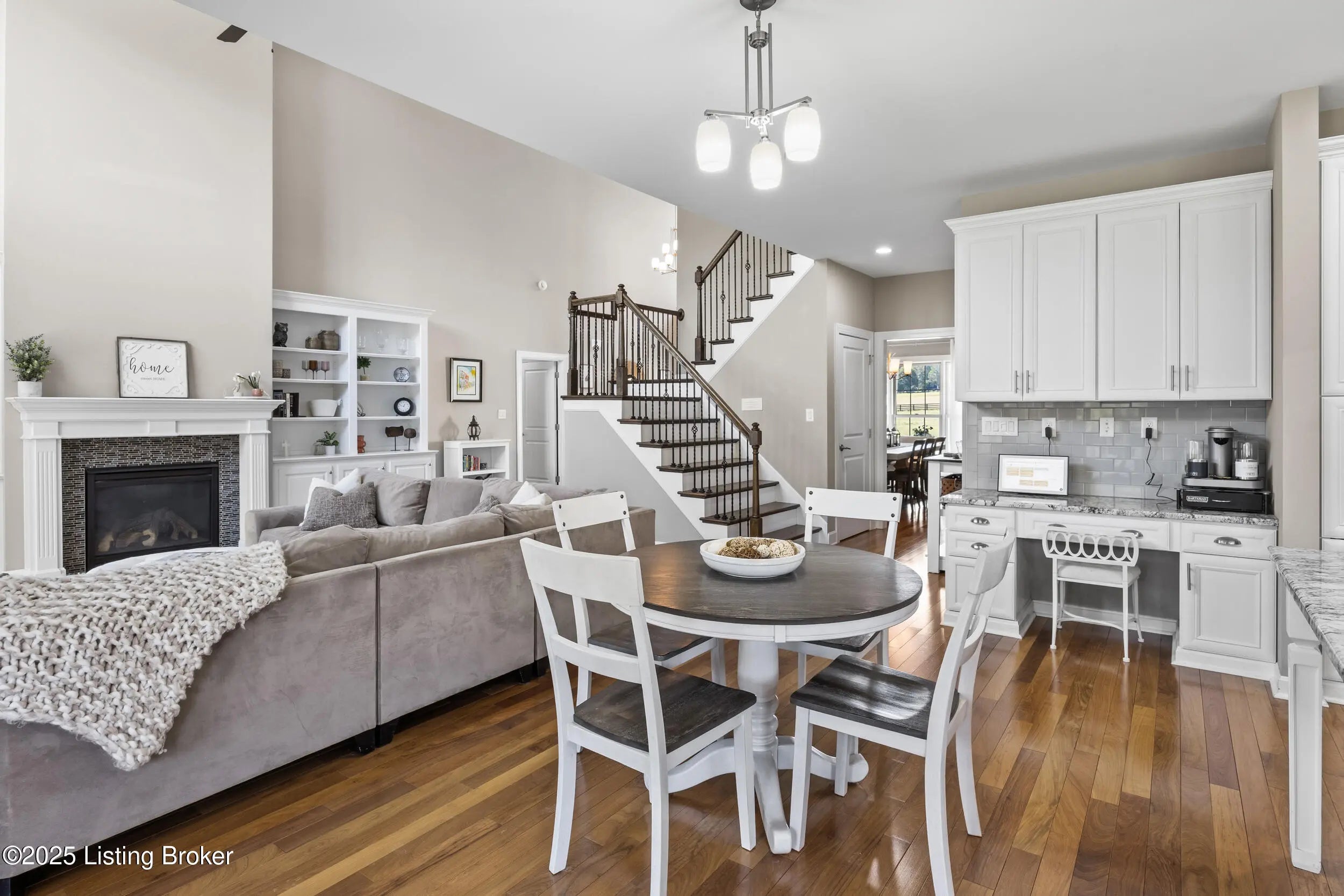 Welcome to this stunning 5-bedroom, 4.5-bath custom-built home, nestled on a picturesque 5-acre lot in the prestigious Overlook at Persimmon Ridge. This stunning property offers the perfect blend of luxury, comfort, and natural beauty — with the back portion of the lot beautifully wooded for added privacy and scenic views. As you enter through the soaring front entryway, you're greeted by a spacious open floor plan filled with natural light. The living room features vaulted ceilings, a cozy gas fireplace, and custom built-in cabinetry — seamlessly flowing into the super-sized kitchen equipped with an abundance of cabinetry, exquisite granite countertops, a massive center island, and a convenient built-in desk/computer area. The main-level owner's suite is a peaceful retreat overlooking the rear of the property. It boasts a spa-like en suite bath with double vanities, a large walk-in shower, a whirlpool tub, and a generous walk-in closet. Also on the main level: a formal dining room with gleaming hardwood floors, a well-equipped laundry room with utility sink and linen closet, and a stylish powder room for guests. Step outside to enjoy the large, fenced-in backyardperfect for entertaining or relaxingwith a screened-in covered deck just off the kitchen, offering year-round comfort and scenic views. Upstairs, you'll find a cozy loft/common area and three spacious bedrooms, each with large walk-in closets and plenty of natural light. One of the bedrooms features its own private en suite bath, while the others share a beautifully designed full bath with double vanities. The finished walk-out basement provides even more living space, including a home office, media room with built-in surround sound, a 5th bedroom, full bath, and a versatile flex room. One area is already plumbed and finished for a potential second kitchenideal for multi-generational living or entertaining. Walk right out onto the covered patio and into the expansive backyard, perfect for play, pets, and peaceful evenings. Additional features include a three-car garage, plenty of storage throughout, and the perfect setting for outdoor activities like campouts under the stars in your own wooded area. Conveniently located just minutes from the Old Henry Road exit and close to Shelbyville, Westport, and Brownsboro Roads, this home offers quick access to shopping, dining, and top Louisville destinations. Plus, you're just minutes from Beckley Creek Park, where you can enjoy biking, walking, kayaking, and fishing. Don't miss your opportunity to own this private paradise in one of the area's most sought-after neighborhoods. Reach out today to schedule your private tour!