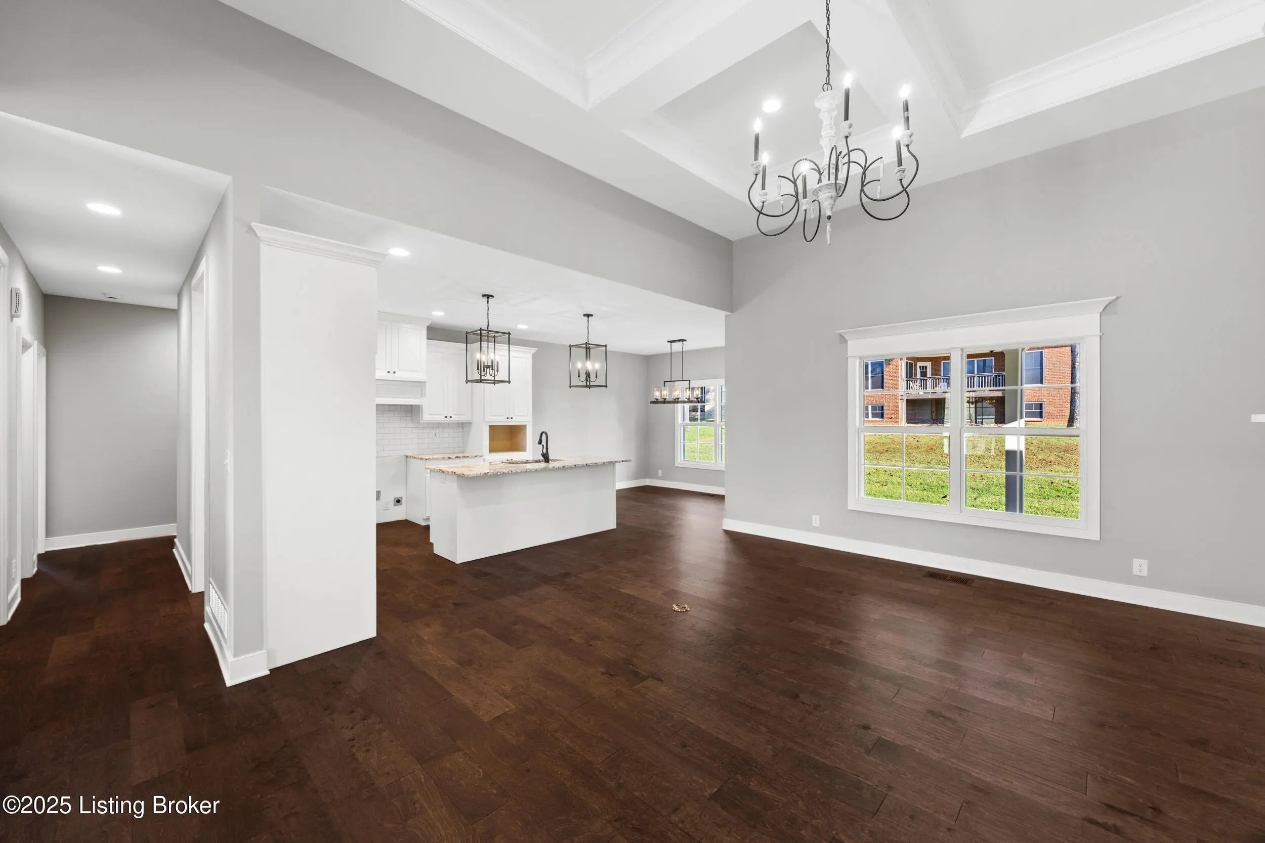 Welcome to Harmony Pointe One of Goshen's newest communities located directly across from the North Oldham School Campus. This brand new three bedroom, two and a half bath ranch blends modern comfort with timeless design. The open concept floor plan features soaring ceilings, beautiful flooring, and designer finishes throughout. The gourmet kitchen showcases custom cabinetry, quartz countertops, a large island, and a walk-in pantry opening seamlessly to the spacious great room with a cozy fireplace and abundant natural light. The primary suite offers a luxurious retreat with a spa-inspired bath and generous walk-in closet. Two additional bedrooms share a stylish full bath, and the convenient half bath is ideal for guests. A covered back porch provides the perfect spot for outdoor entertaining or quiet relaxation. Situated in the sought-after North Oldham School district, this home combines small town charm with easy access to top-rated schools, parks, and amenities. Experience new construction living at its finest in Harmony Pointe!