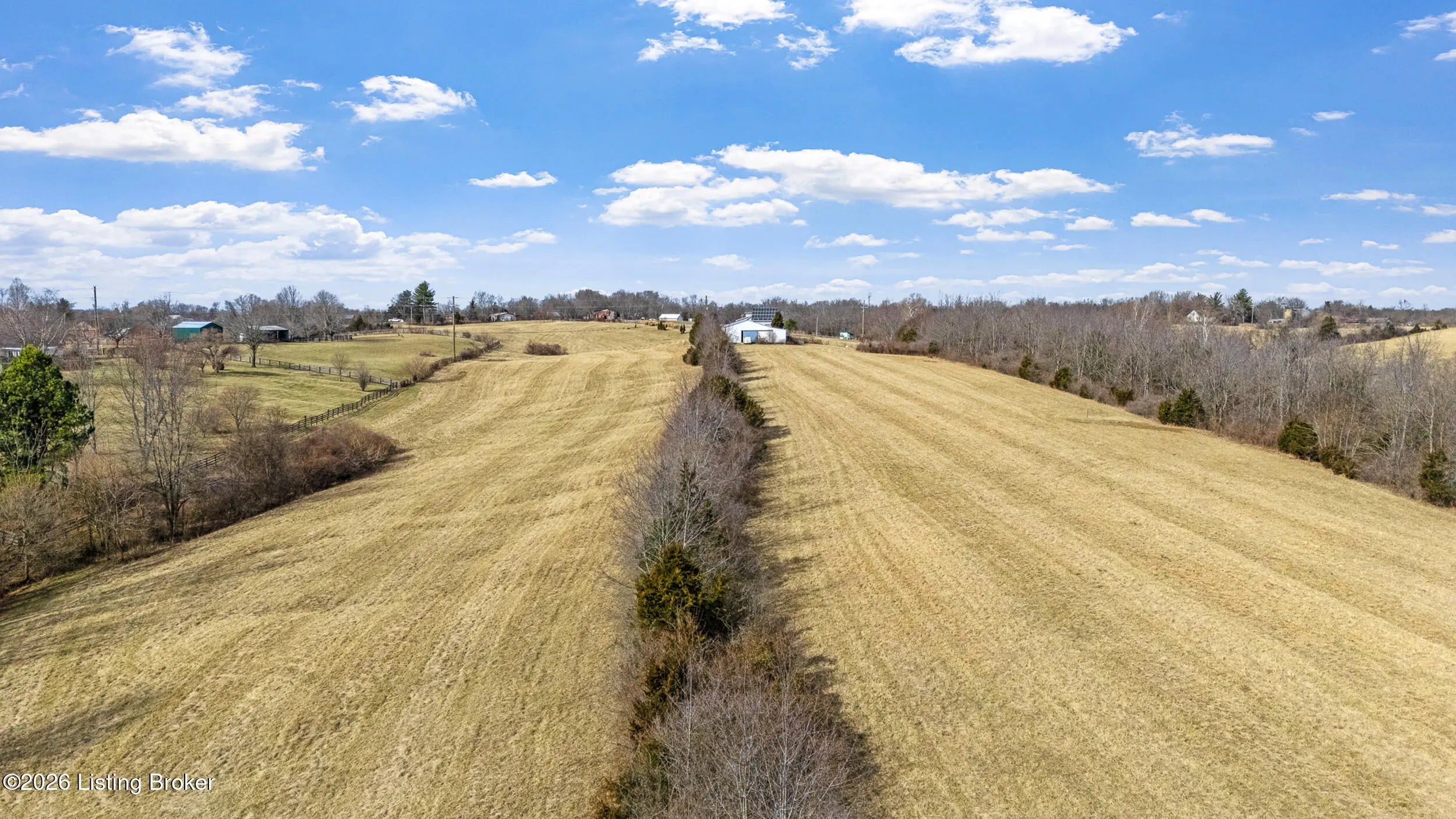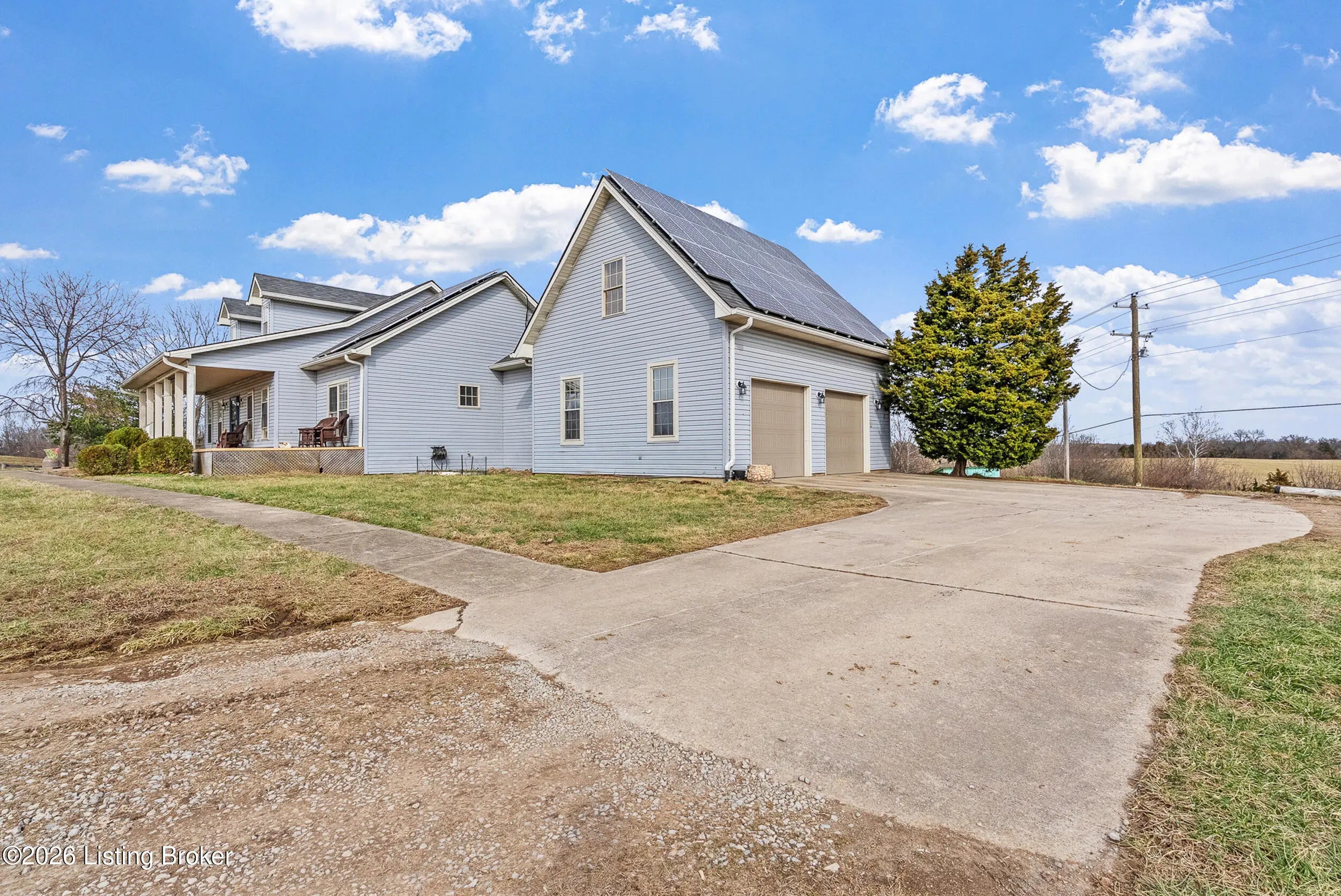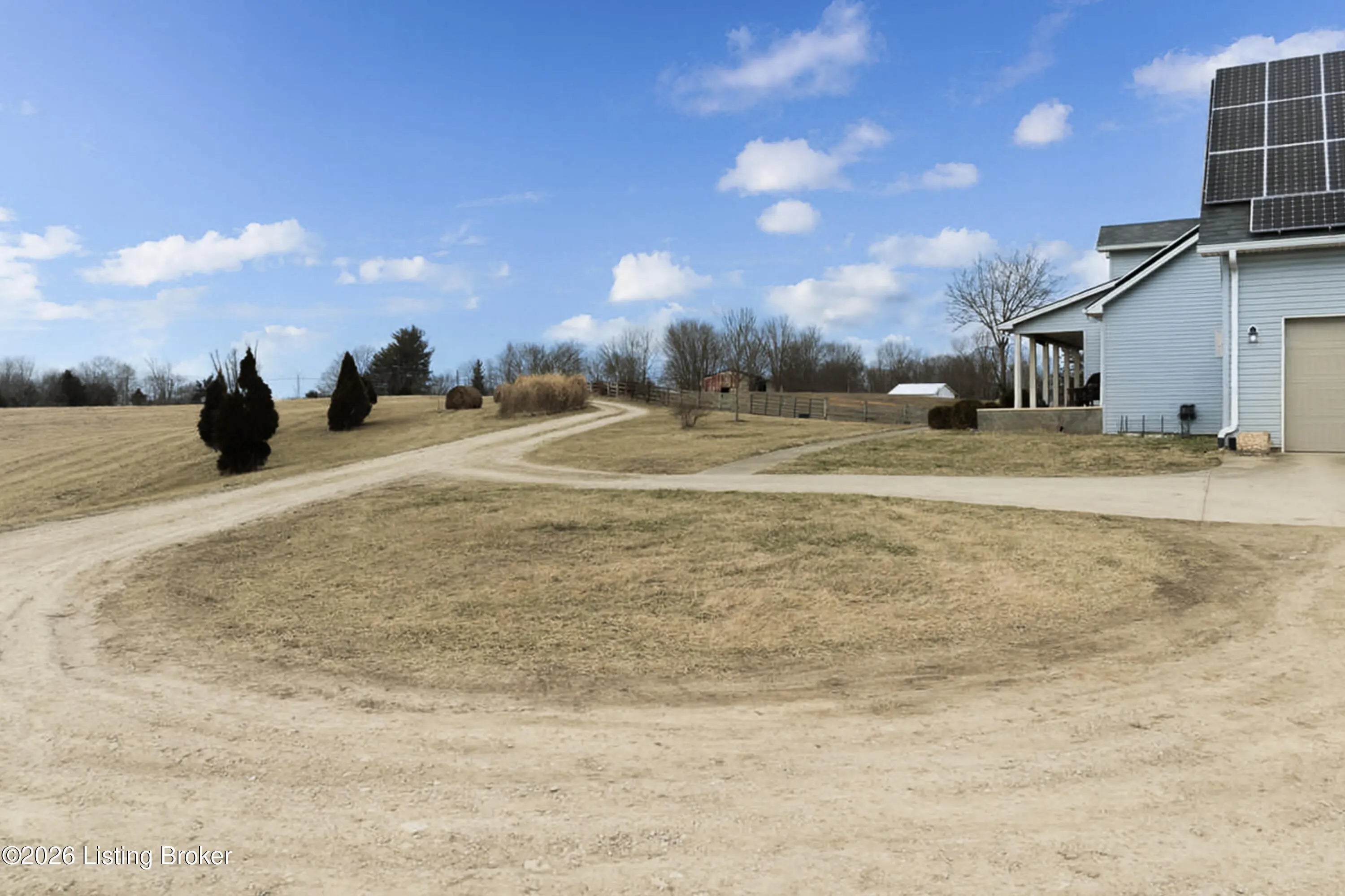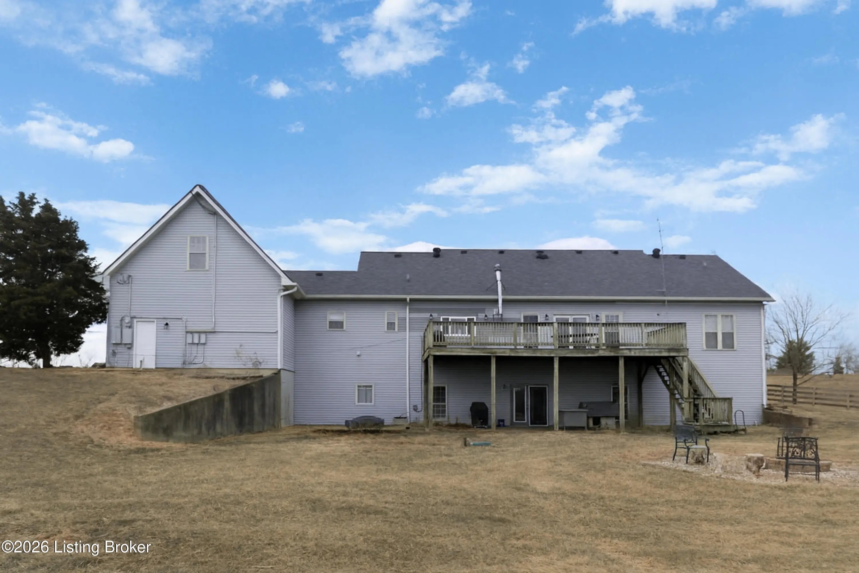 This exceptional cape cod style walkout ranch on over 33 acres offers far more than you ever expected—and everything you didn't know you needed. With over 4200 square feet of finished living space, this five-bedroom, three-full-bath home is thoughtfully designed for both everyday living and large gatherings. Energy efficiency is a standout feature, with geothermal heating and solar panels significantly reducing utility costs. A covered front porch welcomes you inside, where an open-concept family room and dining area flow seamlessly into the kitchen—ideal for entertaining. Built-in bookcases frame the media center in the family room, adding both function and charm. Off the family room is a deck that extends the length of the home, perfect for the amazing views overlooking the back 33 acres. A first-floor bedroom with dual access offers excellent flexibility and is well-suited for in-law living or accessibility needs. The primary suite is a private retreat featuring a spacious walk-in closet and an en-suite bath with separate double vanities. A third first-floor bedroom is tucked away, generously sized for oversized furniture, and offers peaceful views of the front acreage. A full bath on the main level connects to an oversized laundry and mudroom with exceptional storage. The walkout lower level is equally impressive, featuring a massive second family room with windows overlooking the rear of the property and direct access to a private patio. This space easily accommodates a dining area, media room, exercise space, or all three. Two additional bedrooms, each with walk-in closets, and a full bath complete the finished lower level. Storage is abundant throughout the home, including a second large pantry near the stairwell, two distinct unfinished basement spaces, oversized bedroom closets, and extensive mudroom storage. The garage offers ample room for vehicles and equipment, plus a substantial walk-up attic for even more storage. The land itself is extraordinary: a former cattle pasture, a fishing pond at the entrance, a large outbuilding, former chicken coop, garden areas, and wooded acreageoffering endless possibilities for recreation, farming, or simply enjoying wide-open space. The 33 acres are complemented by an additional 5-acre parcel, deeded separately and available for purchase independently. Conveniently located just minutes from the highway and across from the entrance to the prestigious L'Esprit Estates, this ranch-style Cape Cod combines privacy, efficiency, and scale in a truly rare offering. All of this is ideally situated just off the I-71 corridor, right on the border of Oldham and Henry Countiesprivacy, convenience, and versatility in one remarkable property.