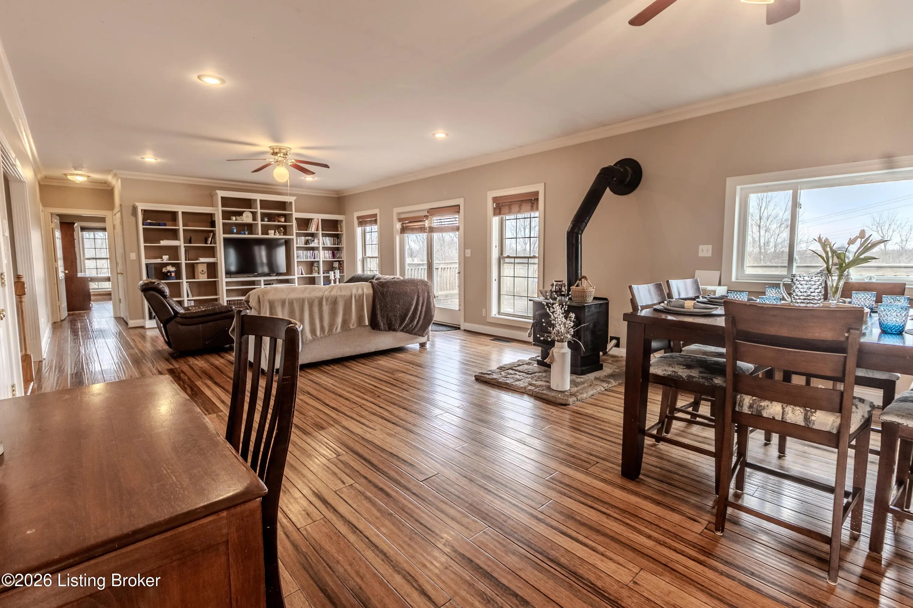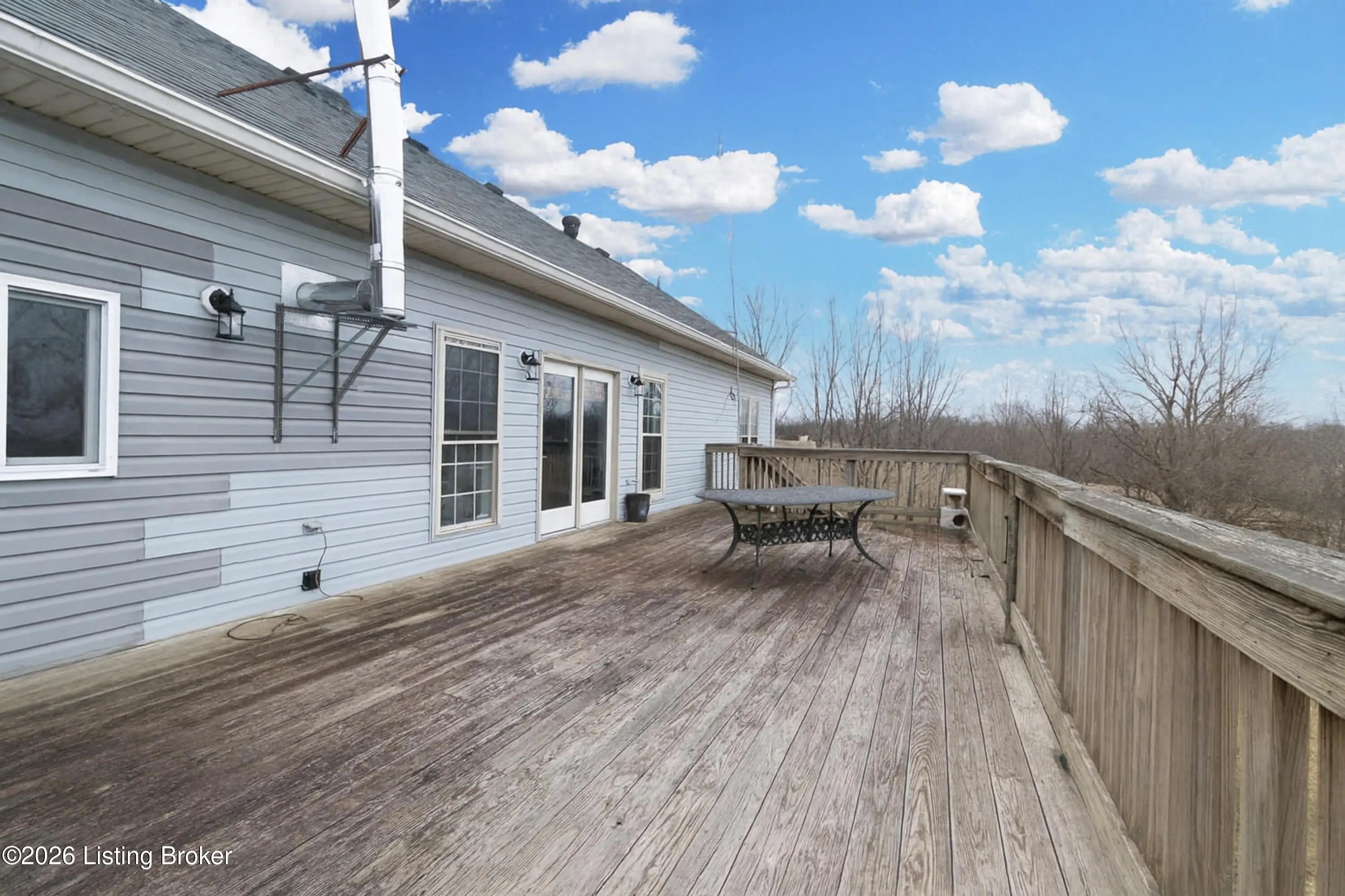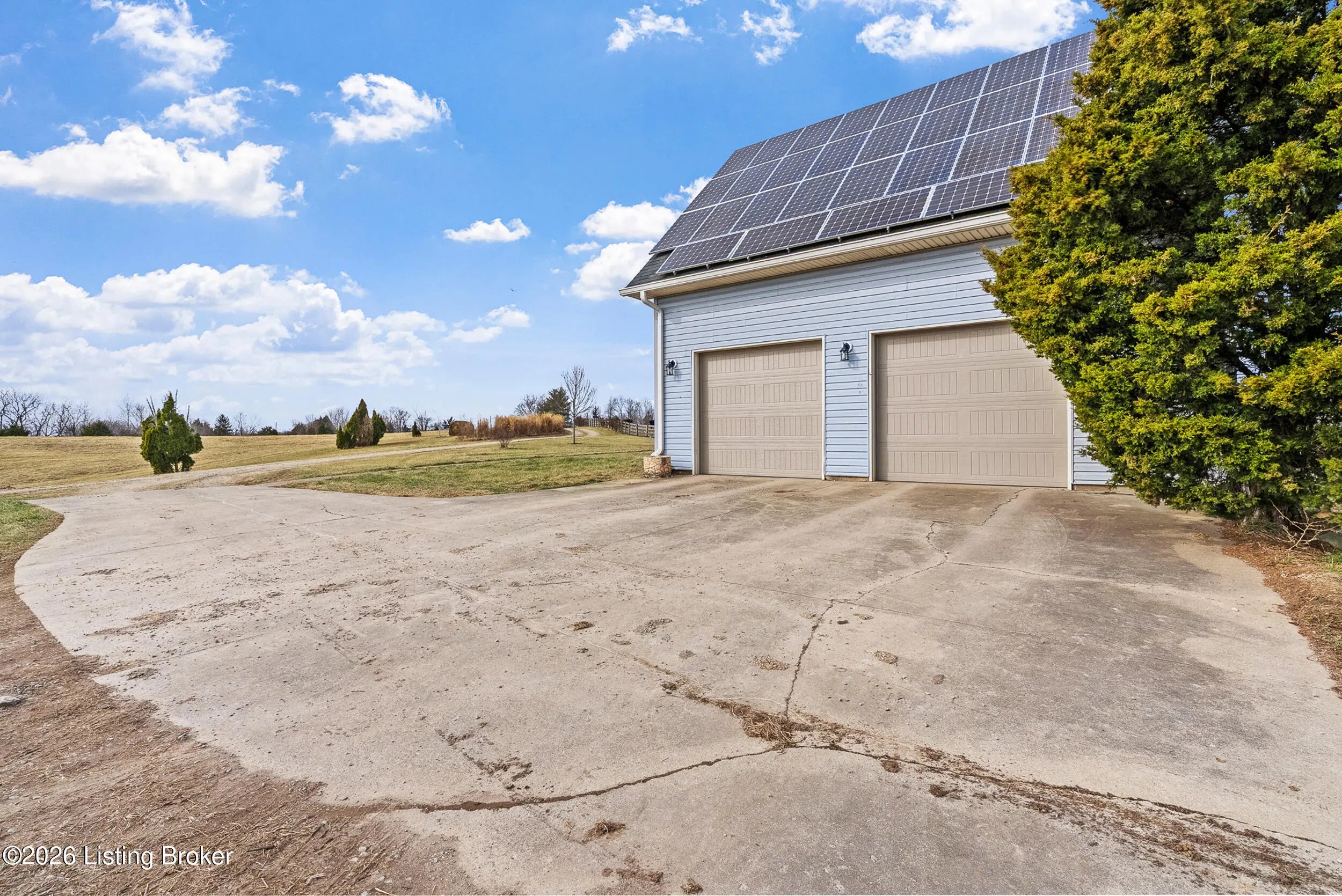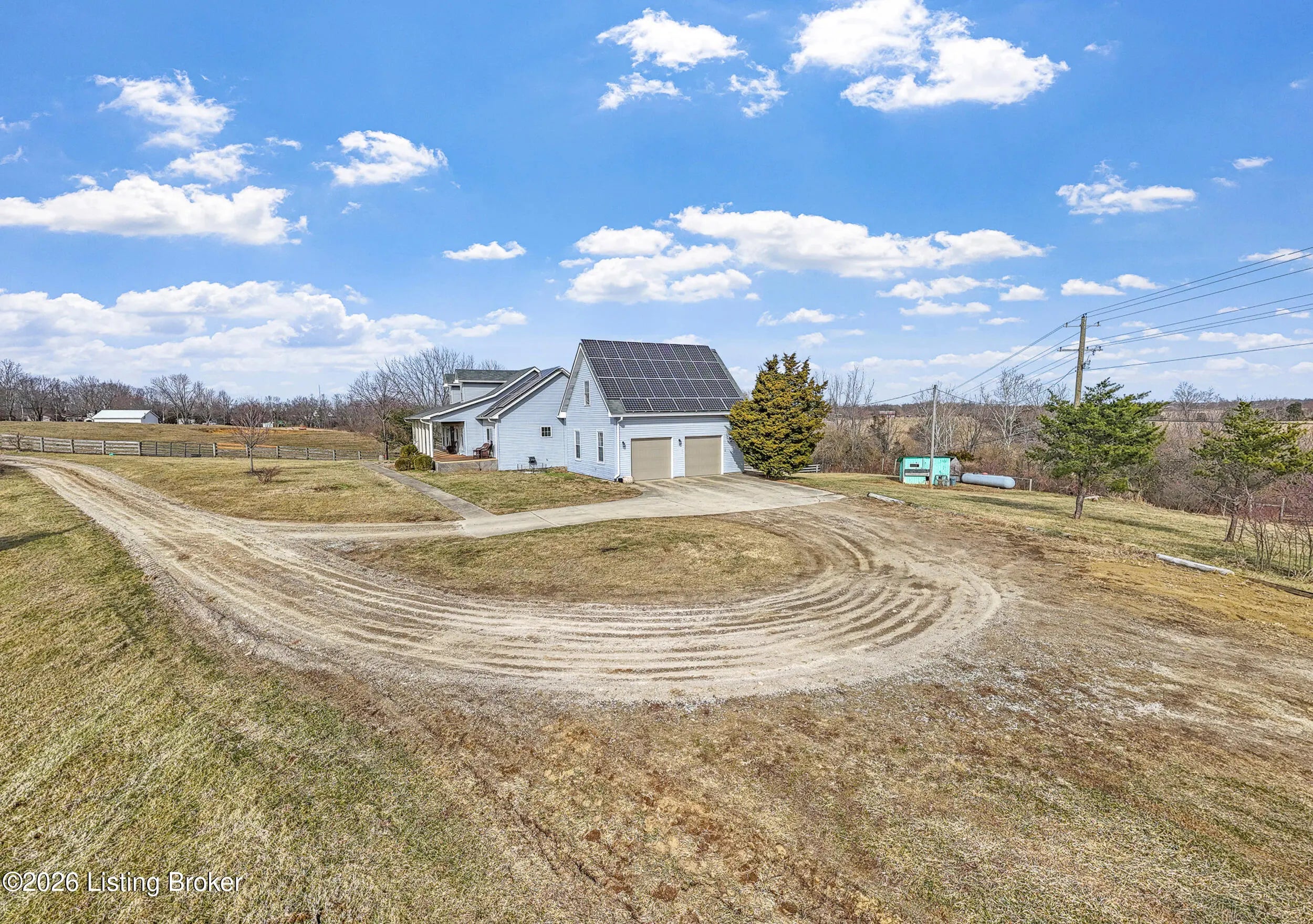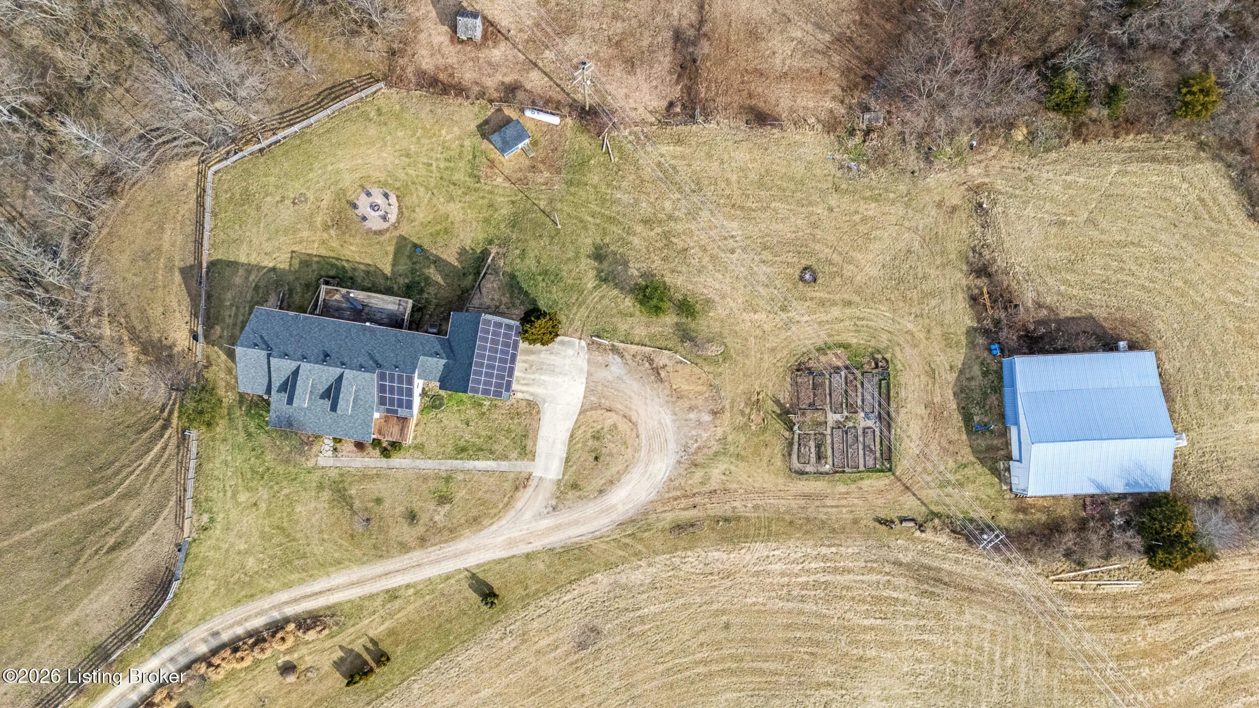 This exceptional cape cod style walkout ranch on over 33 acres offers far more than you ever expected—and everything you didn't know you needed. With over 4200 square feet of finished living space, this five-bedroom, three-full-bath home is thoughtfully designed for both everyday living and large gatherings. Energy efficiency is a standout feature, with geothermal heating and solar panels significantly reducing utility costs. A covered front porch welcomes you inside, where an open-concept family room and dining area flow seamlessly into the kitchen—ideal for entertaining. Built-in bookcases frame the media center in the family room, adding both function and charm. Off the family room is a deck that extends the length of the home, perfect for the amazing views overlooking the back 33 acres. A first-floor bedroom with dual access offers excellent flexibility and is well-suited for in-law living or accessibility needs. The primary suite is a private retreat featuring a spacious walk-in closet and an en-suite bath with separate double vanities. A third first-floor bedroom is tucked away, generously sized for oversized furniture, and offers peaceful views of the front acreage. A full bath on the main level connects to an oversized laundry and mudroom with exceptional storage. The walkout lower level is equally impressive, featuring a massive second family room with windows overlooking the rear of the property and direct access to a private patio. This space easily accommodates a dining area, media room, exercise space, or all three. Two additional bedrooms, each with walk-in closets, and a full bath complete the finished lower level. Storage is abundant throughout the home, including a second large pantry near the stairwell, two distinct unfinished basement spaces, oversized bedroom closets, and extensive mudroom storage. The garage offers ample room for vehicles and equipment, plus a substantial walk-up attic for even more storage. The land itself is extraordinary: a former cattle pasture, a fishing pond at the entrance, a large outbuilding, former chicken coop, garden areas, and wooded acreageoffering endless possibilities for recreation, farming, or simply enjoying wide-open space. The 33 acres are complemented by an additional 5-acre parcel, deeded separately and available for purchase independently. Conveniently located just minutes from the highway and across from the entrance to the prestigious L'Esprit Estates, this ranch-style Cape Cod combines privacy, efficiency, and scale in a truly rare offering. All of this is ideally situated just off the I-71 corridor, right on the border of Oldham and Henry Countiesprivacy, convenience, and versatility in one remarkable property.