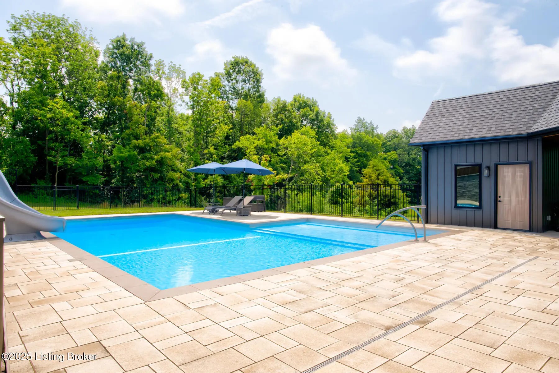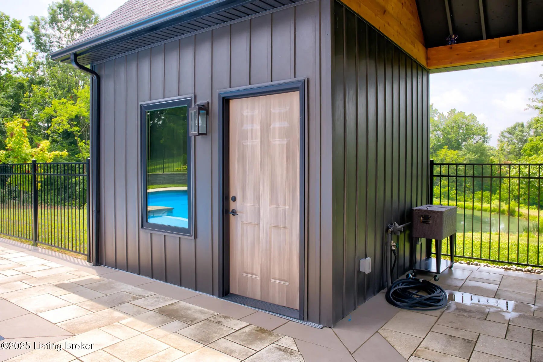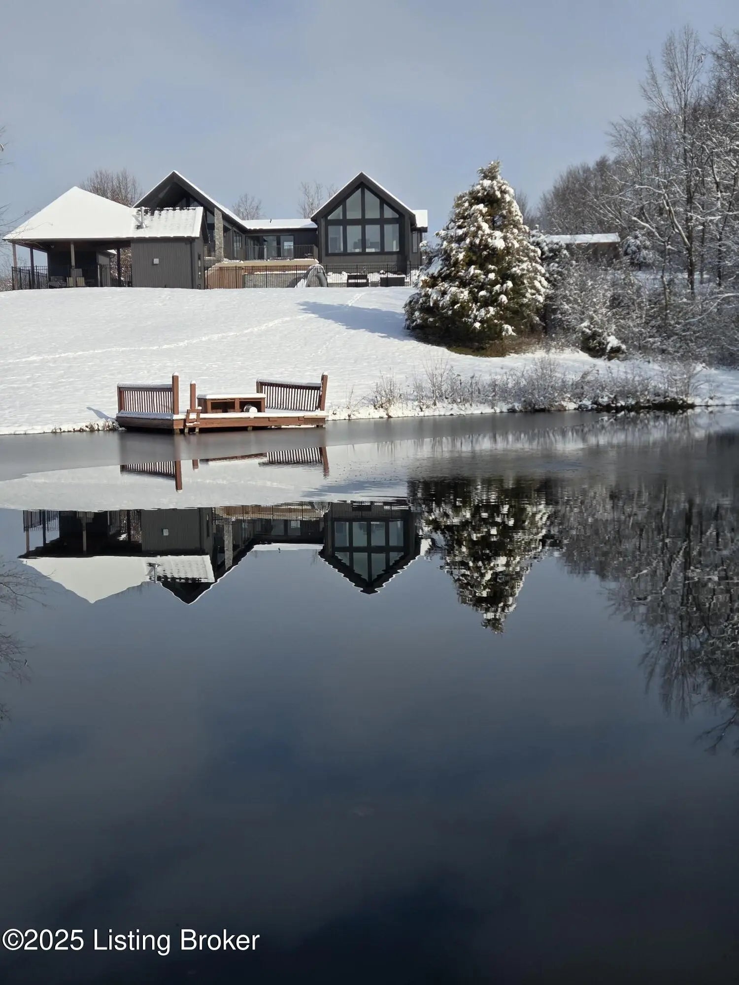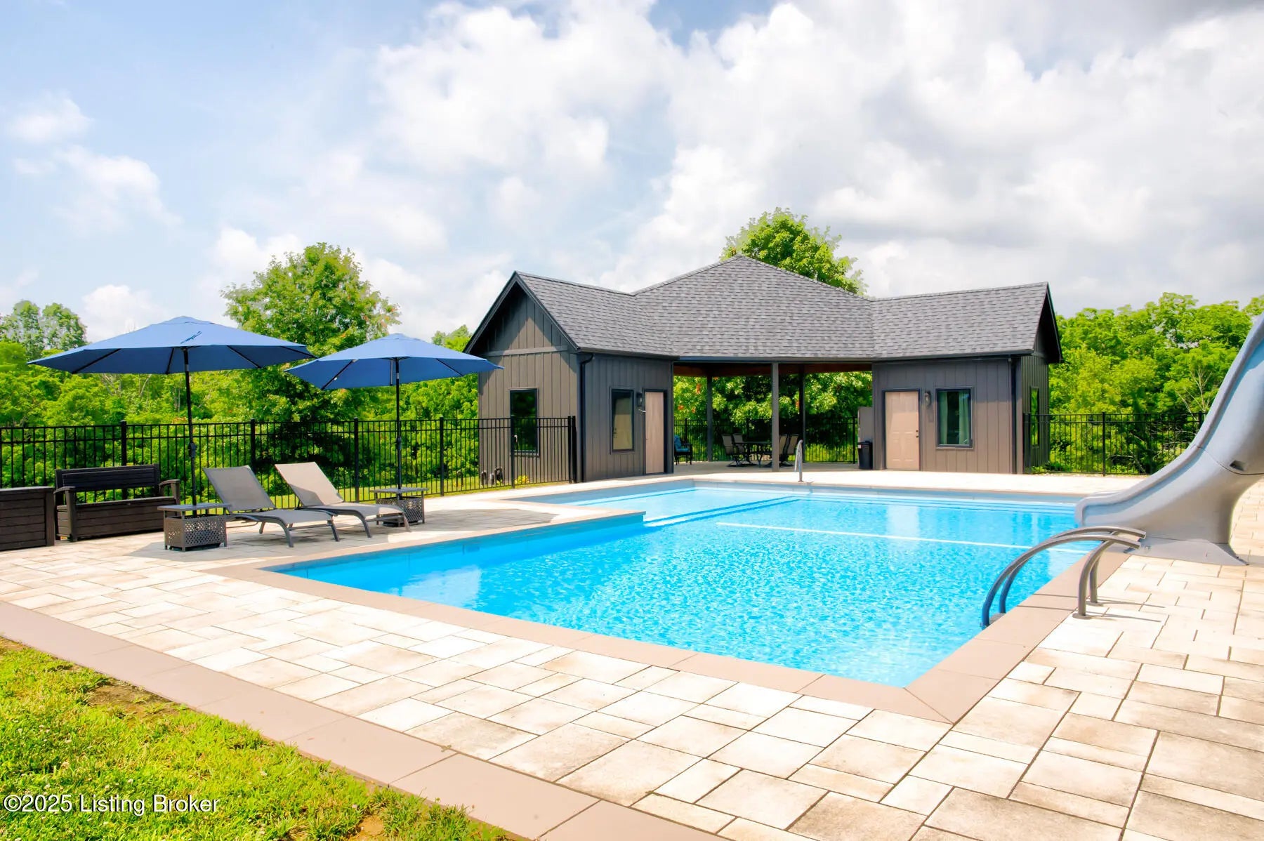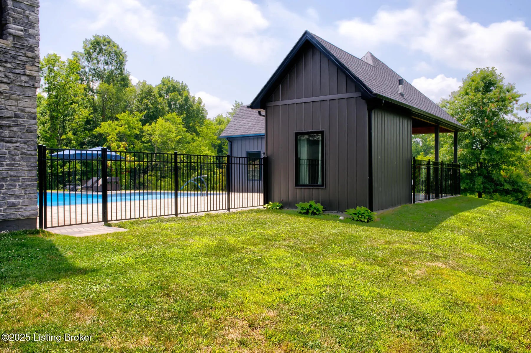 Prepare to be WOWED with this unique and stunning 3 year ''new'' home. Built by Schumacher Homes and completed in December of 2022, this open plan is an entertainer's dream, both inside and outdoors. Located in Spencer County on a private 9 acres, this home features an incredible outdoor space which includes a 20x40 in ground pool with pool deck entry and slide, pool house, full bath house, pavilion with refrigerator, covered back porch with vaulted wooden ceiling, and stocked pond. Coming up the drive, one will be impressed with the curb appeal of this home. The pavers walkway to the covered front porch is highlighted by a stained wooden pergola that complements the dark siding of the home. A real standout. The front door blends in with the modern style of the home. Once inside, you'll notice that this plan was built with views to the outside as a priority. Large windows everywhere flooding the space with natural light. The floor plan is an "H" shape with the foyer in the middle, great room, kitchen and lounge (office) on one side and the bedrooms and baths on the other. Spanning the space between the "H" outside is a fabulous and huge Timber Tech deck overlooking the pool area with entrances from the great room and primary bedroom. The great room space showcases a vaulted ceiling with beams and a gas fireplace with tile surround extending to the ceiling. A great focal point. Not to be missed is a wall of windows looking out to the rear of the property. The doors lead out to a fabulous covered patio with vaulted wooden ceiling and paved floor. The great room accommodates the dining room as well with plenty of space for a large gathering table. So now let's focus on the amazing kitchen. Featuring white cabinetry and quartz counters, this kitchen hides a big surprise. The tall cabinet doors open up leading into a butler's pantry room, or "messy kitchen" in today's terms. This room serves as a walk-in pantry with wrap around solid shelving, separate storage closet, base cabinet with sink and beverage fridge and even a window with remote shades. Very cool design and amazing storage. The kitchen is outfitted with stainless Jenn-Aire appliances throughout which remain with the home. Release your inner chef with the Jenn-Aire 5 burner gas chef stove and touch control stainless hood. Around the corner from the kitchen and facing the front of the house is a lounge/office room with an expanse of windows to make the work day better. The wall unit shelves with ladder can remain. On the other side of the foyer is a coat closet and a half bath featuring quartz countertop. The primary bedroom has a vaulted ceiling and faces the back of the property overlooking the pool area and pond. There is an accent wall for your headboard which adds a nice touch. Across from the bed is a wall of windows, maximizing the view for the perfect wake-up call or star gazing in the evening. Primary bedroom windows have remote shades for privacy and light blocking. The primary bath features tile floors, a soaker tub surrounded by windows, double vanity with quartz counter, walk in tiled shower with glass enclosure and a walk in closet with custom shelving. Down the hall are two other bedrooms, both with two closets. One is currently set up as an office. There is a convenient mudroom with built-in shelving and cubbies for dropping off items when entering the home. The laundry room is an efficient space with a sink cabinet, and two wall mounted fold up/down tables for ease of doing laundry. The washer and dryer can remain with the home. The basement walkouts to the side of the house and here you'll find a finished bedroom, family room and a full bath with walk in tiled shower. There is also an area plumbed for a kitchen. And an amazing amount of space for storage or future expansion. Outside is the heated pool (propane) which is concrete with stainless steel lined walls. The bath house features a full bath with walk in shower - no need to go inside to get cleaned up after a swim! The outdoor pavilion has a refrigerator that will remain and plenty of space for a grill and dining space. The entire outdoor area has unilock pavers so no solid concrete to crack or maintain. There's plenty of room for lounging around the pool and the area is surrounded by aluminum fencing to keep everyone safe and secure. All the pool equipment is housed in the attached pool house and of course, will remain with the home. The composite deck was built with support for a hot tub should one desire. In addition, there is a new large storage shed to house your yard equipment and tools or toys with ramps for ease of moving in and out. Other noteworthy features of the home are a Lennox HVAC system, Anderson windows throughout, luxury vinyl plank flooring, custom closets, and custom remote shades on windows. Warranty information on home and items in the home will be provided. This is a one of a kind property and is a must see. Schedule your private showing today.