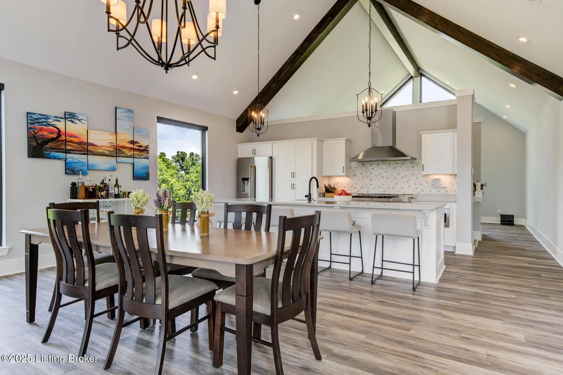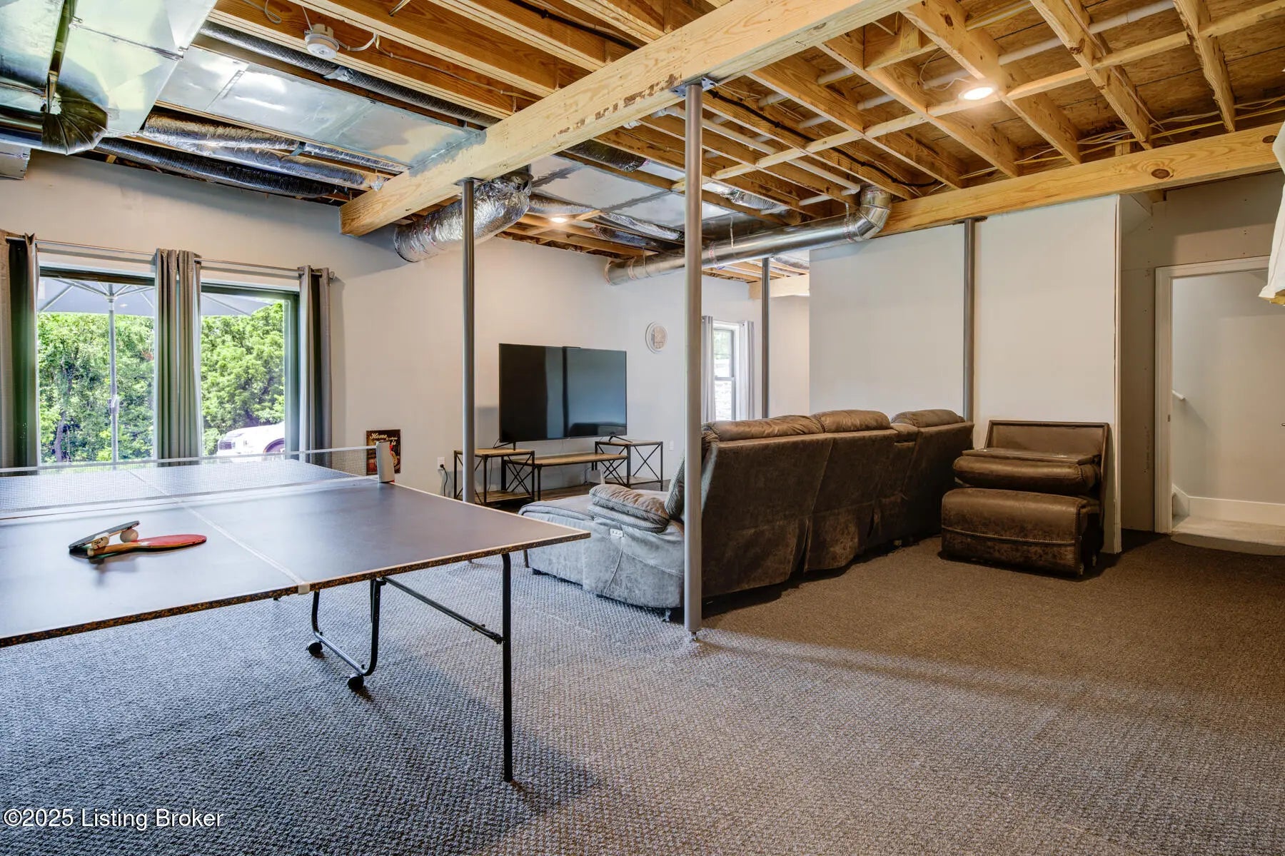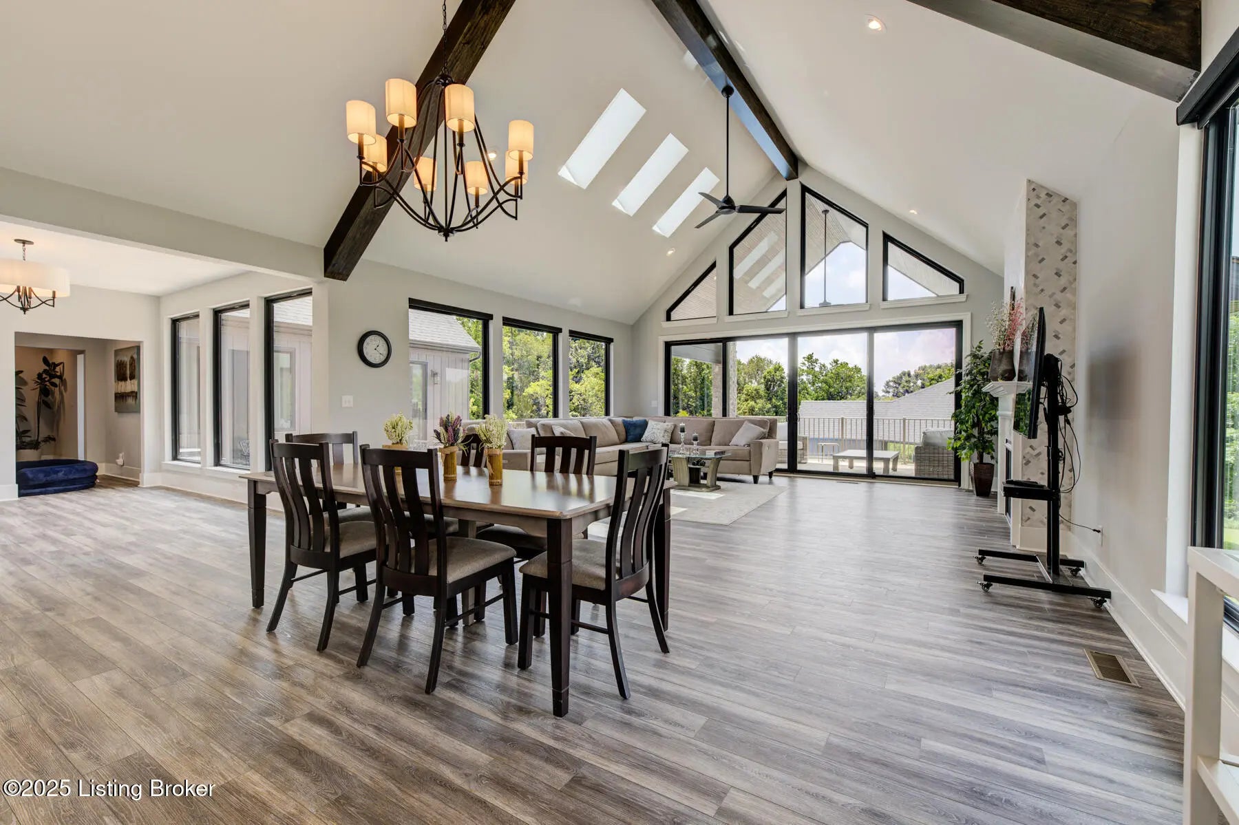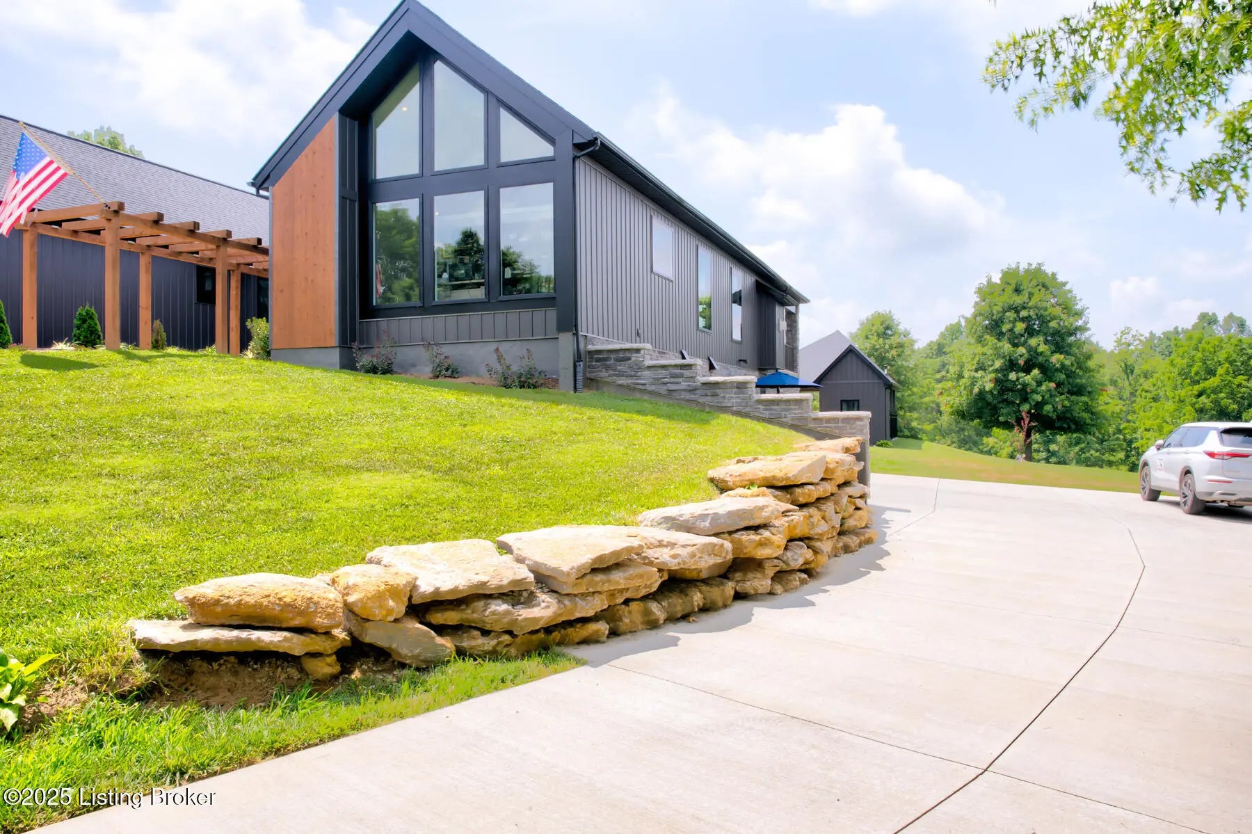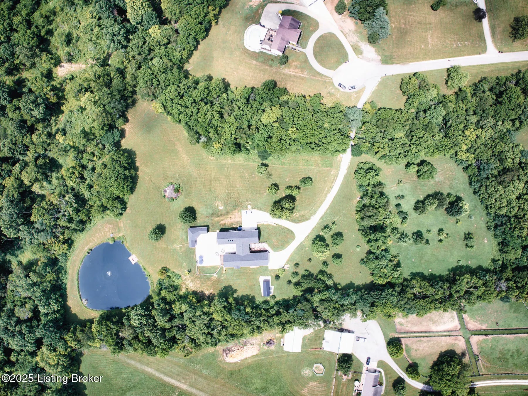 Prepare to be WOWED with this unique and stunning 3 year ''new'' home. Built by Schumacher Homes and completed in December of 2022, this open plan is an entertainer's dream, both inside and outdoors. Located in Spencer County on a private 9 acres, this home features an incredible outdoor space which includes a 20x40 in ground pool with pool deck entry and slide, pool house, full bath house, pavilion with refrigerator, covered back porch with vaulted wooden ceiling, and stocked pond. Coming up the drive, one will be impressed with the curb appeal of this home. The pavers walkway to the covered front porch is highlighted by a stained wooden pergola that complements the dark siding of the home. A real standout. The front door blends in with the modern style of the home. Once inside, you'll notice that this plan was built with views to the outside as a priority. Large windows everywhere flooding the space with natural light. The floor plan is an "H" shape with the foyer in the middle, great room, kitchen and lounge (office) on one side and the bedrooms and baths on the other. Spanning the space between the "H" outside is a fabulous and huge Timber Tech deck overlooking the pool area with entrances from the great room and primary bedroom. The great room space showcases a vaulted ceiling with beams and a gas fireplace with tile surround extending to the ceiling. A great focal point. Not to be missed is a wall of windows looking out to the rear of the property. The doors lead out to a fabulous covered patio with vaulted wooden ceiling and paved floor. The great room accommodates the dining room as well with plenty of space for a large gathering table. So now let's focus on the amazing kitchen. Featuring white cabinetry and quartz counters, this kitchen hides a big surprise. The tall cabinet doors open up leading into a butler's pantry room, or "messy kitchen" in today's terms. This room serves as a walk-in pantry with wrap around solid shelving, separate storage closet, base cabinet with sink and beverage fridge and even a window with remote shades. Very cool design and amazing storage. The kitchen is outfitted with stainless Jenn-Aire appliances throughout which remain with the home. Release your inner chef with the Jenn-Aire 5 burner gas chef stove and touch control stainless hood. Around the corner from the kitchen and facing the front of the house is a lounge/office room with an expanse of windows to make the work day better. The wall unit shelves with ladder can remain. On the other side of the foyer is a coat closet and a half bath featuring quartz countertop. The primary bedroom has a vaulted ceiling and faces the back of the property overlooking the pool area and pond. There is an accent wall for your headboard which adds a nice touch. Across from the bed is a wall of windows, maximizing the view for the perfect wake-up call or star gazing in the evening. Primary bedroom windows have remote shades for privacy and light blocking. The primary bath features tile floors, a soaker tub surrounded by windows, double vanity with quartz counter, walk in tiled shower with glass enclosure and a walk in closet with custom shelving. Down the hall are two other bedrooms, both with two closets. One is currently set up as an office. There is a convenient mudroom with built-in shelving and cubbies for dropping off items when entering the home. The laundry room is an efficient space with a sink cabinet, and two wall mounted fold up/down tables for ease of doing laundry. The washer and dryer can remain with the home. The basement walkouts to the side of the house and here you'll find a finished bedroom, family room and a full bath with walk in tiled shower. There is also an area plumbed for a kitchen. And an amazing amount of space for storage or future expansion. Outside is the heated pool (propane) which is concrete with stainless steel lined walls. The bath house features a full bath with walk in shower - no need to go inside to get cleaned up after a swim! The outdoor pavilion has a refrigerator that will remain and plenty of space for a grill and dining space. The entire outdoor area has unilock pavers so no solid concrete to crack or maintain. There's plenty of room for lounging around the pool and the area is surrounded by aluminum fencing to keep everyone safe and secure. All the pool equipment is housed in the attached pool house and of course, will remain with the home. The composite deck was built with support for a hot tub should one desire. In addition, there is a new large storage shed to house your yard equipment and tools or toys with ramps for ease of moving in and out. Other noteworthy features of the home are a Lennox HVAC system, Anderson windows throughout, luxury vinyl plank flooring, custom closets, and custom remote shades on windows. Warranty information on home and items in the home will be provided. This is a one of a kind property and is a must see. Schedule your private showing today.