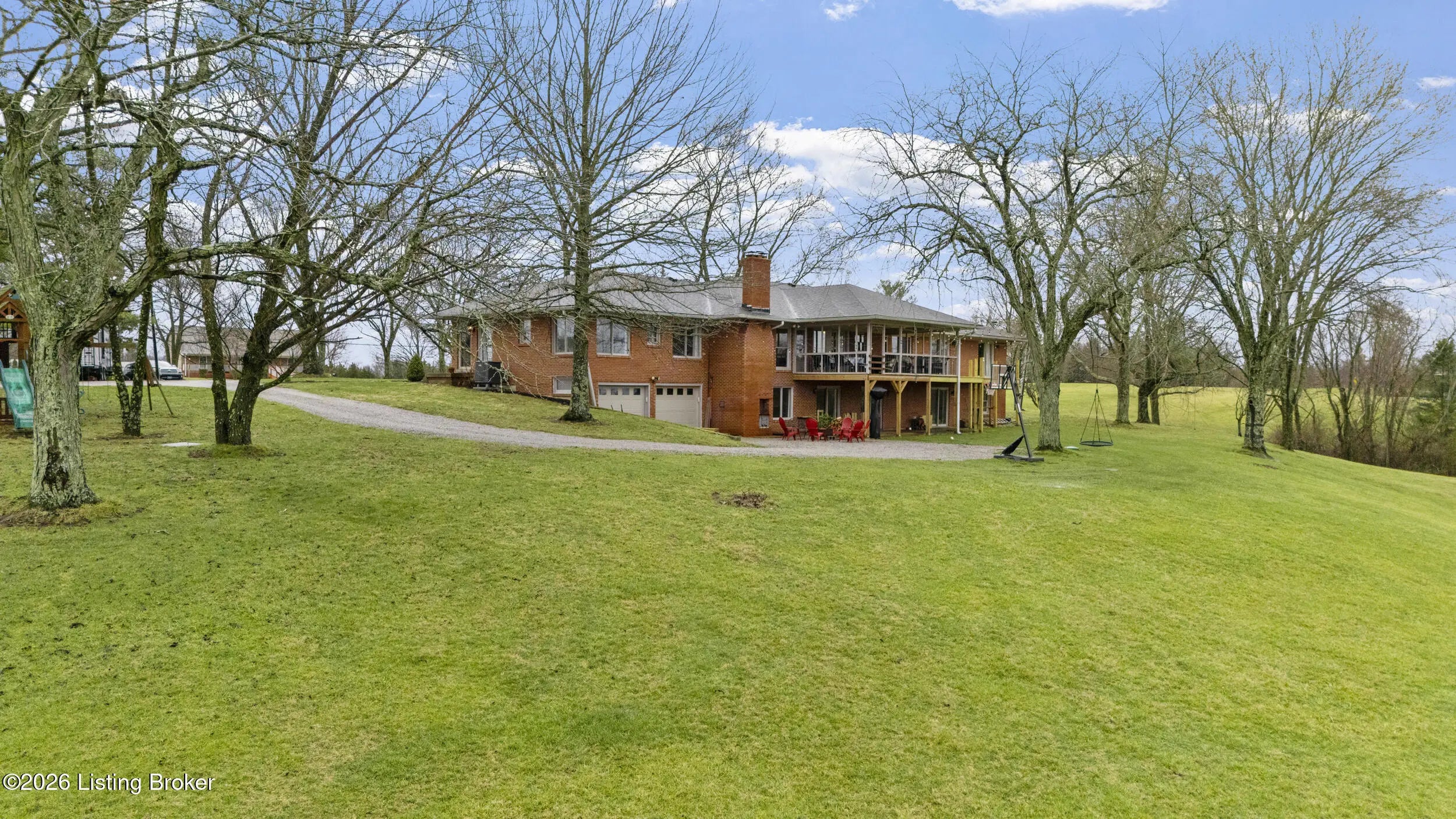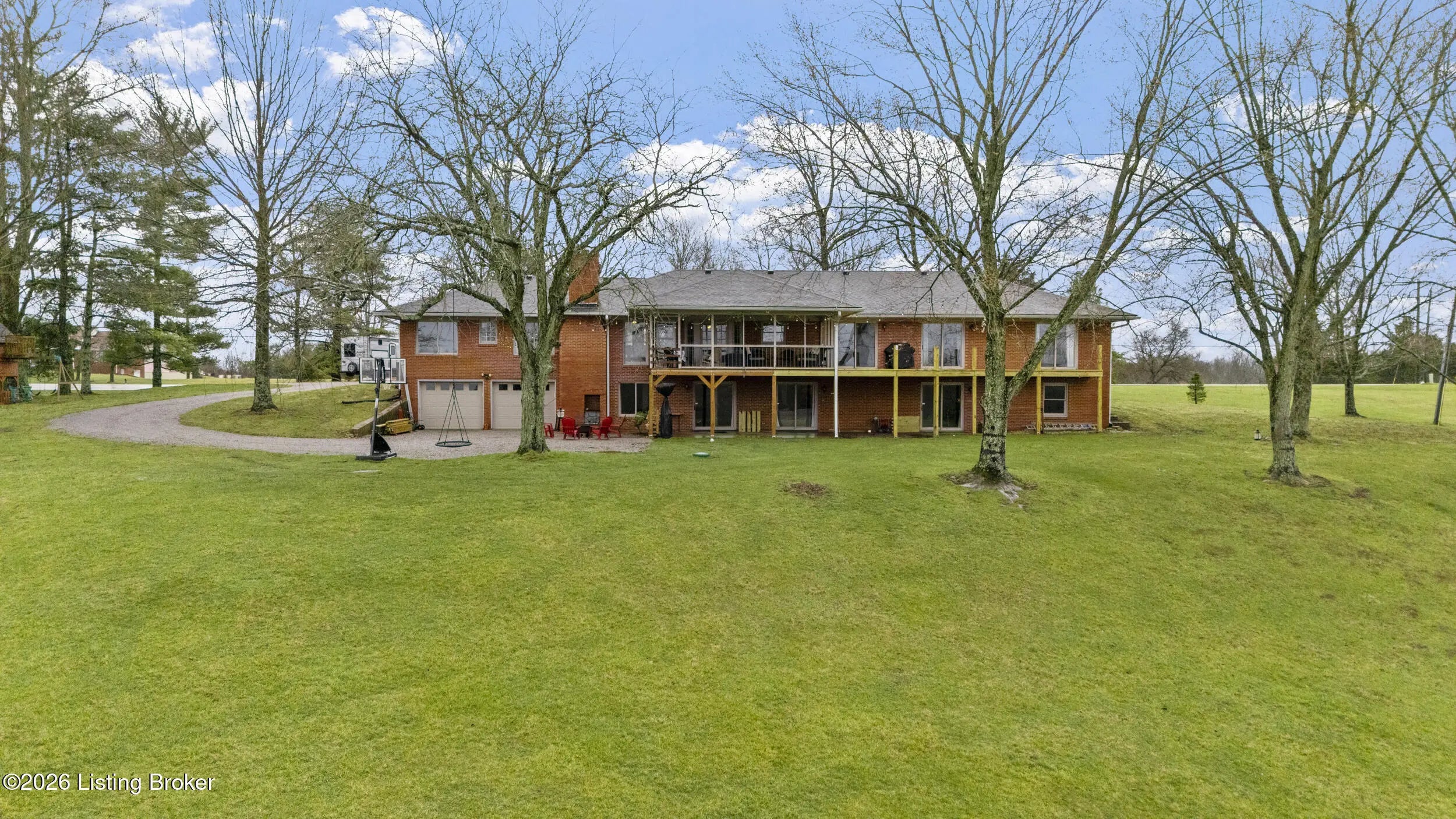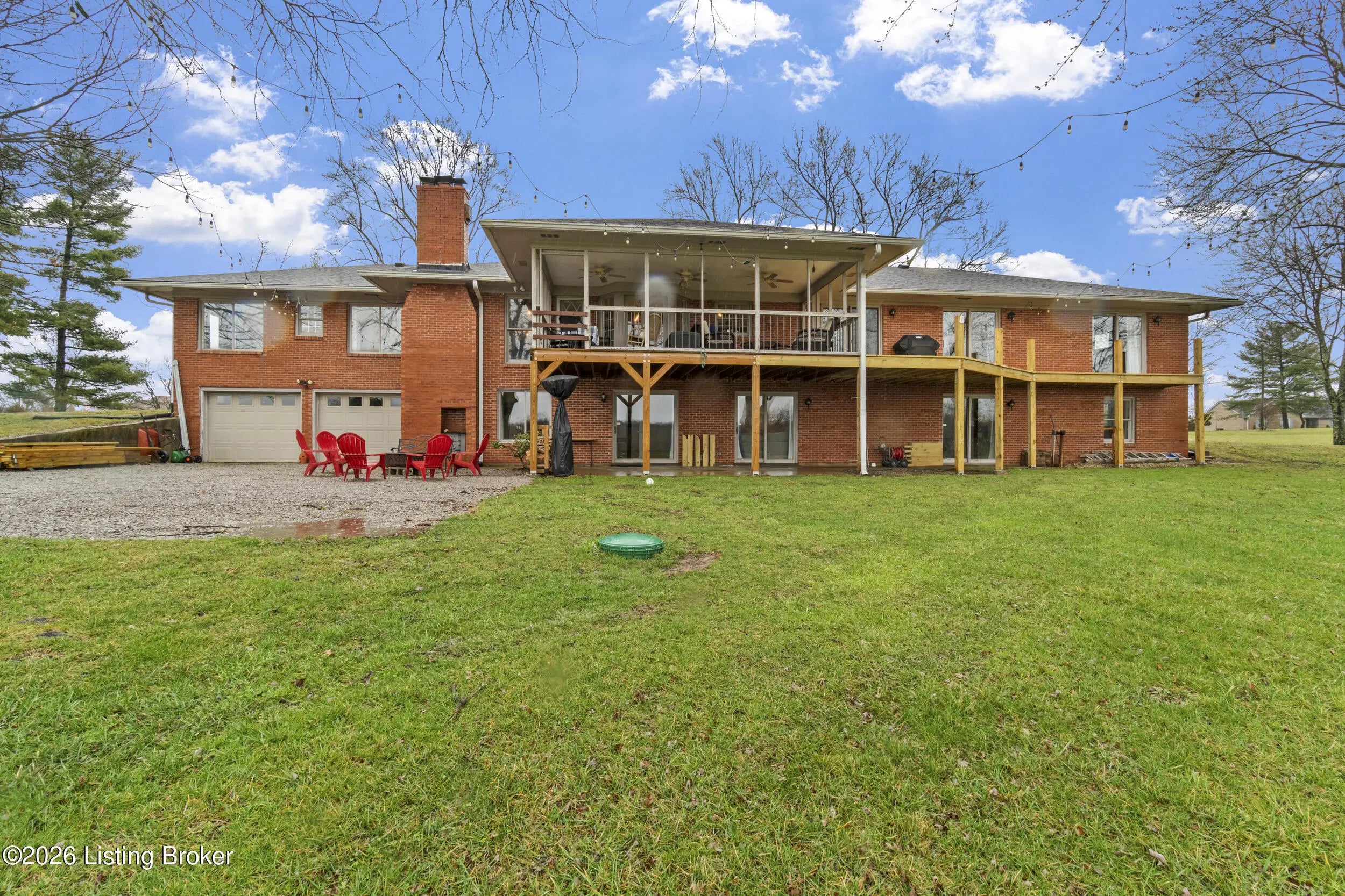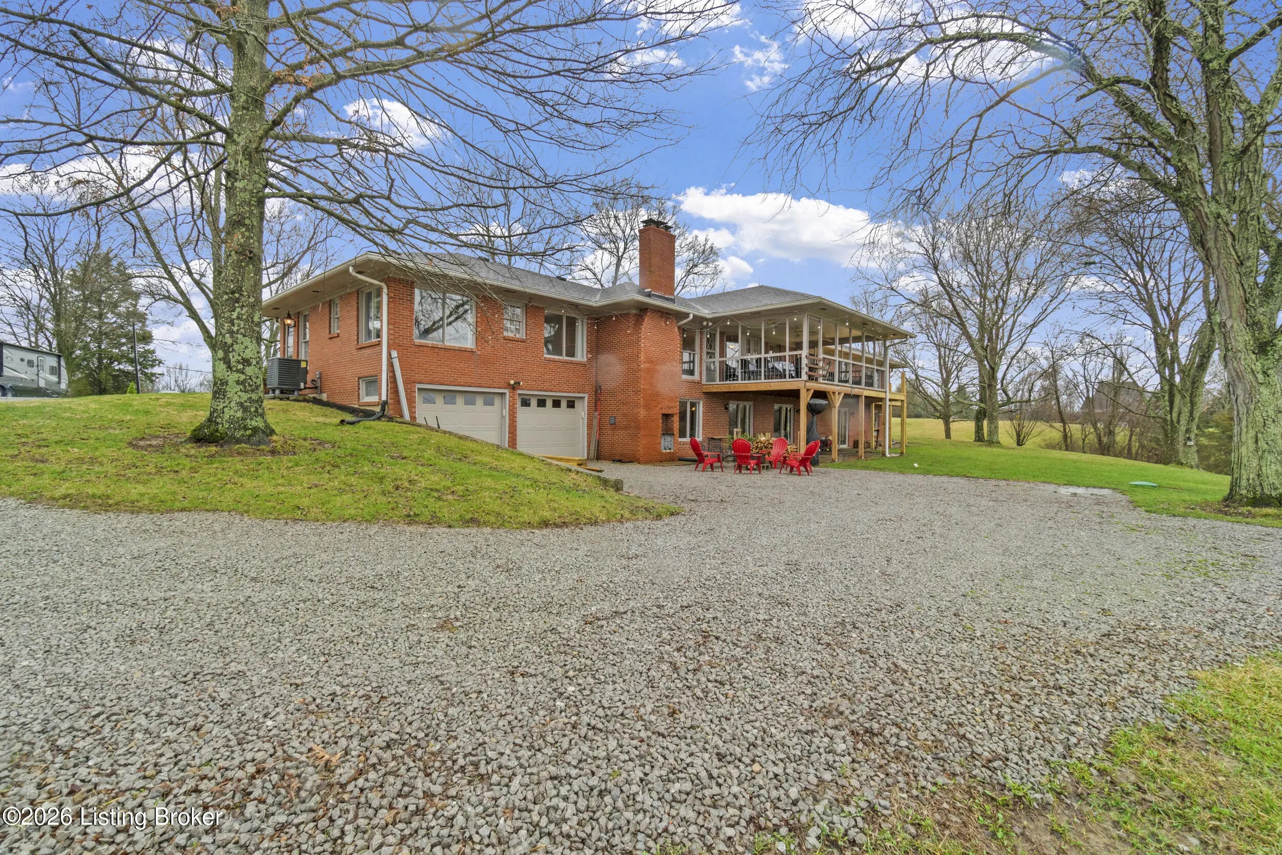 Welcome to 2421 Pendleton Rd, set on nearly 10 picturesque acres. This exceptional walk-out ranch delivers the perfect blend of space, flexibility, and privacy with over 5,500 finished square feet, 7 bedrooms, and 4 full baths. Designed for multi-generational living or income potential, a private-entry suite offers two bedrooms, a living room, full bath, and laundry—ideal for guests or Airbnb use. The main level impresses with a grand foyer featuring detailed crown moulding, a striking 25-foot living room with bay window, and a spacious kitchen with breakfast bar that flows seamlessly into the dining room with a warm wood-burning fireplace that rcurrently has an electric insert. A refined library/office with custom built-ins adds both charm and functionality. Enjoy peaceful views from covered deck that opens to a new deck under construction that will be finished prior to closing, perfect for entertaining or unwinding. The primary suite features double closets and private access to a catwalk leading to the deck, complemented by two additional generously sized bedrooms. The finished walk-out lower level expands your living space with a large family room with wood-burning fireplace, two bedrooms, a full bath, ample storage, and access to a 2.5-car attached garage, plus a patio for outdoor enjoyment. A rare opportunity to own a versatile retreat with room to live, host, and grow. Large garden with 27 raised beds, each with water run to them. Chicken coop/garden shed with water and electric. The property has multiple trails with bridges throughout.
