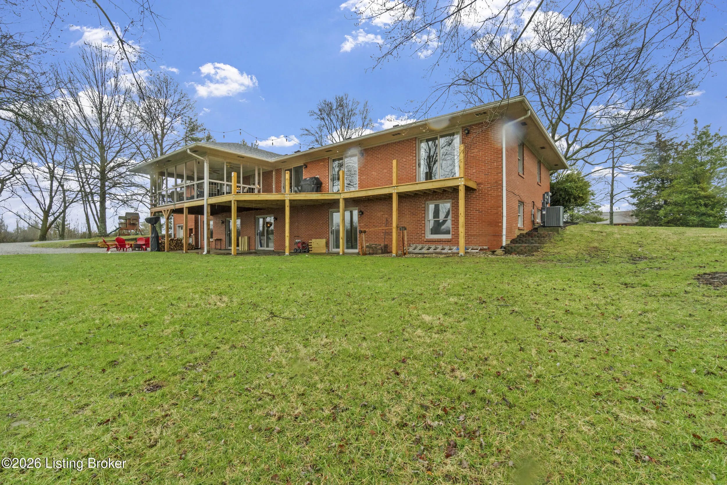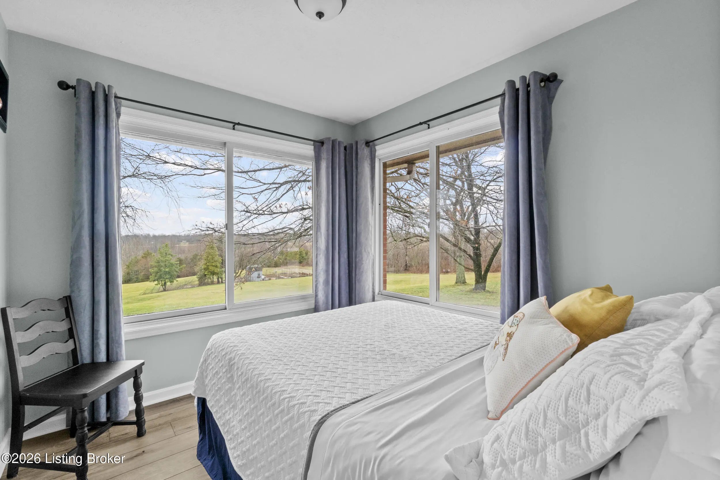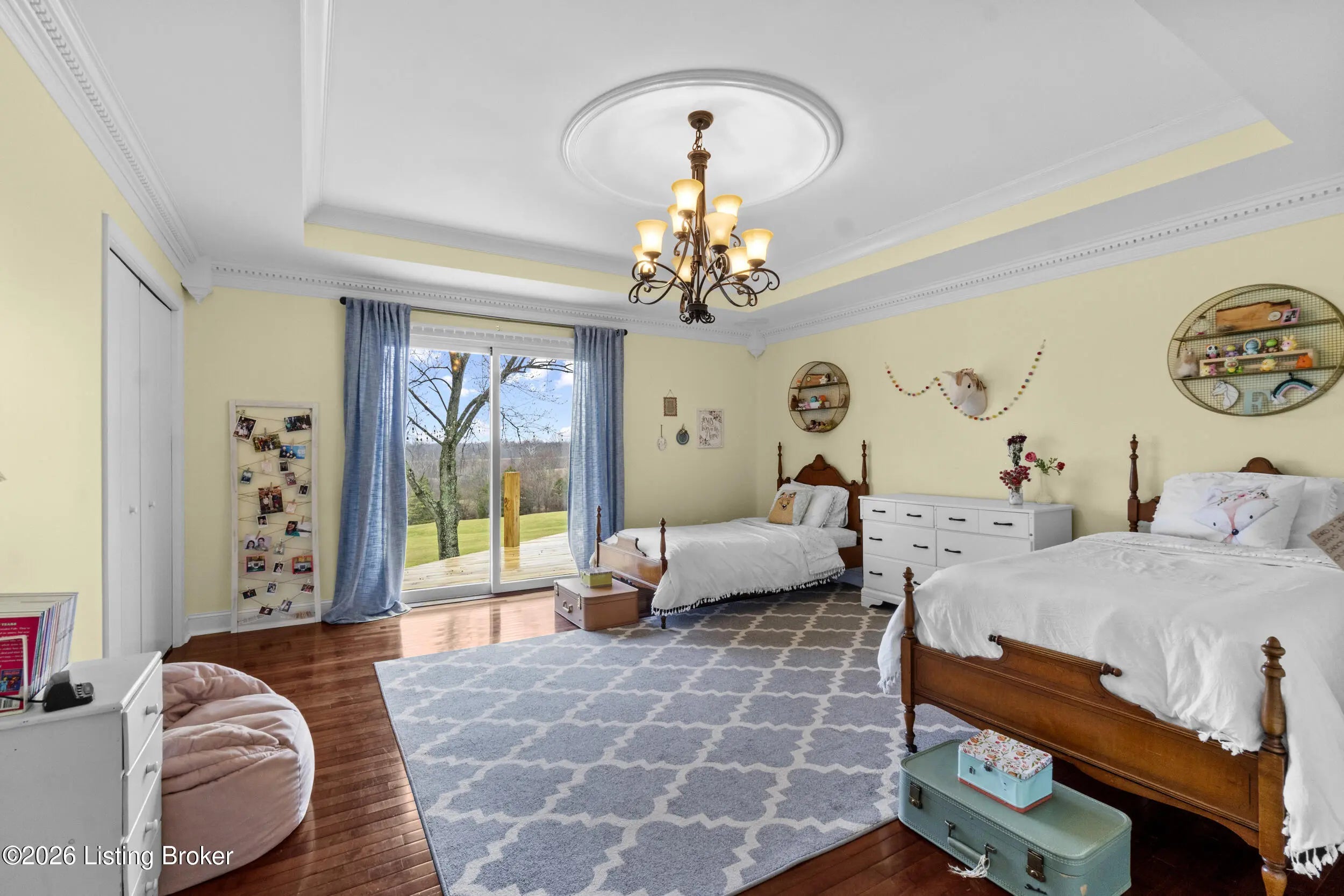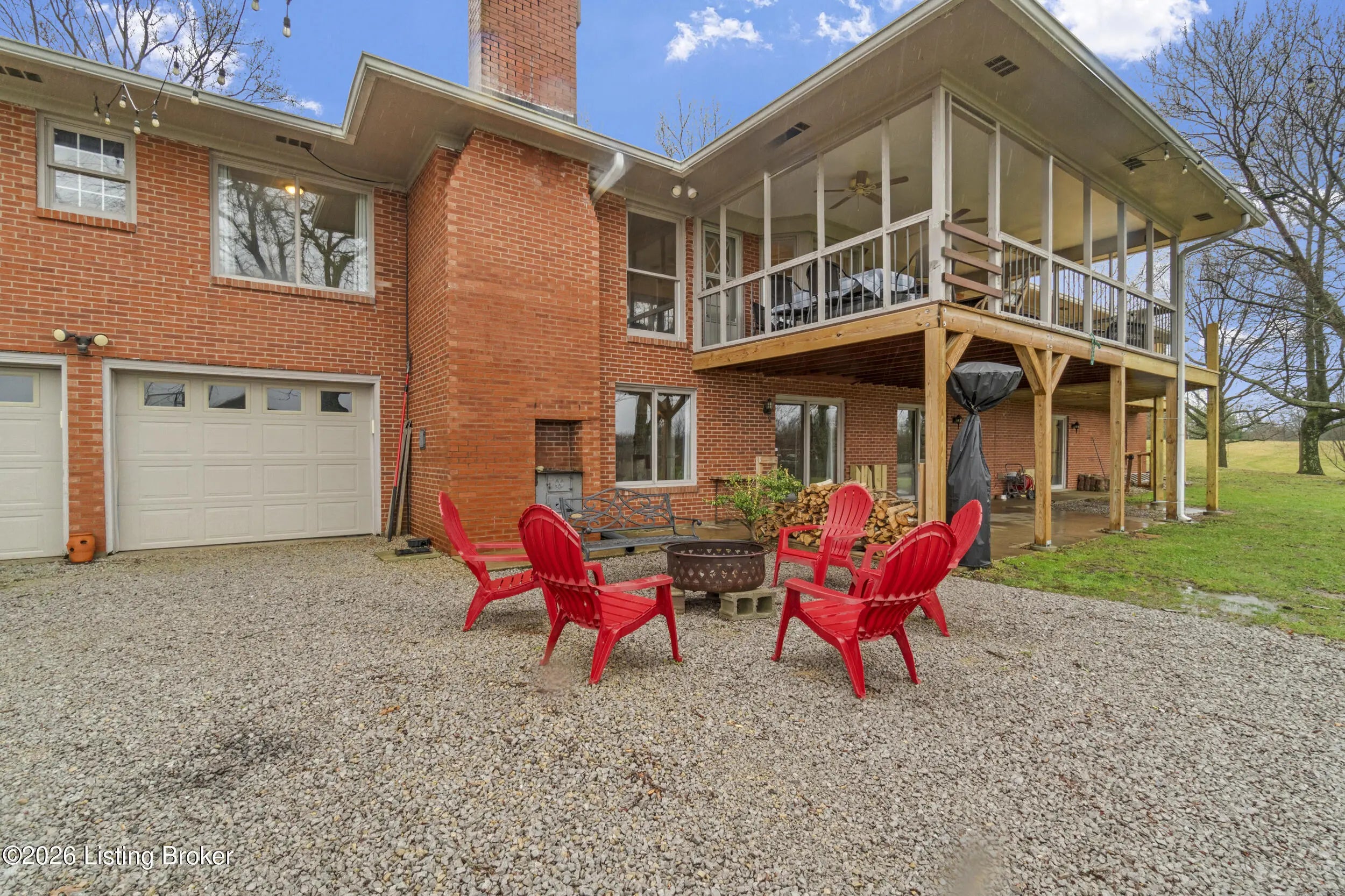 Welcome to 2421 Pendleton Rd, set on nearly 10 picturesque acres. This exceptional walk-out ranch delivers the perfect blend of space, flexibility, and privacy with over 5,500 finished square feet, 7 bedrooms, and 4 full baths. Designed for multi-generational living or income potential, a private-entry suite offers two bedrooms, a living room, full bath, and laundry—ideal for guests or Airbnb use. The main level impresses with a grand foyer featuring detailed crown moulding, a striking 25-foot living room with bay window, and a spacious kitchen with breakfast bar that flows seamlessly into the dining room with a warm wood-burning fireplace that rcurrently has an electric insert. A refined library/office with custom built-ins adds both charm and functionality. Enjoy peaceful views from covered deck that opens to a new deck under construction that will be finished prior to closing, perfect for entertaining or unwinding. The primary suite features double closets and private access to a catwalk leading to the deck, complemented by two additional generously sized bedrooms. The finished walk-out lower level expands your living space with a large family room with wood-burning fireplace, two bedrooms, a full bath, ample storage, and access to a 2.5-car attached garage, plus a patio for outdoor enjoyment. A rare opportunity to own a versatile retreat with room to live, host, and grow. Large garden with 27 raised beds, each with water run to them. Chicken coop/garden shed with water and electric. The property has multiple trails with bridges throughout.