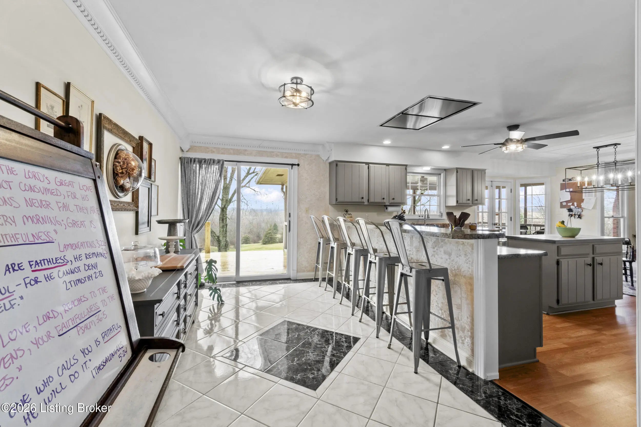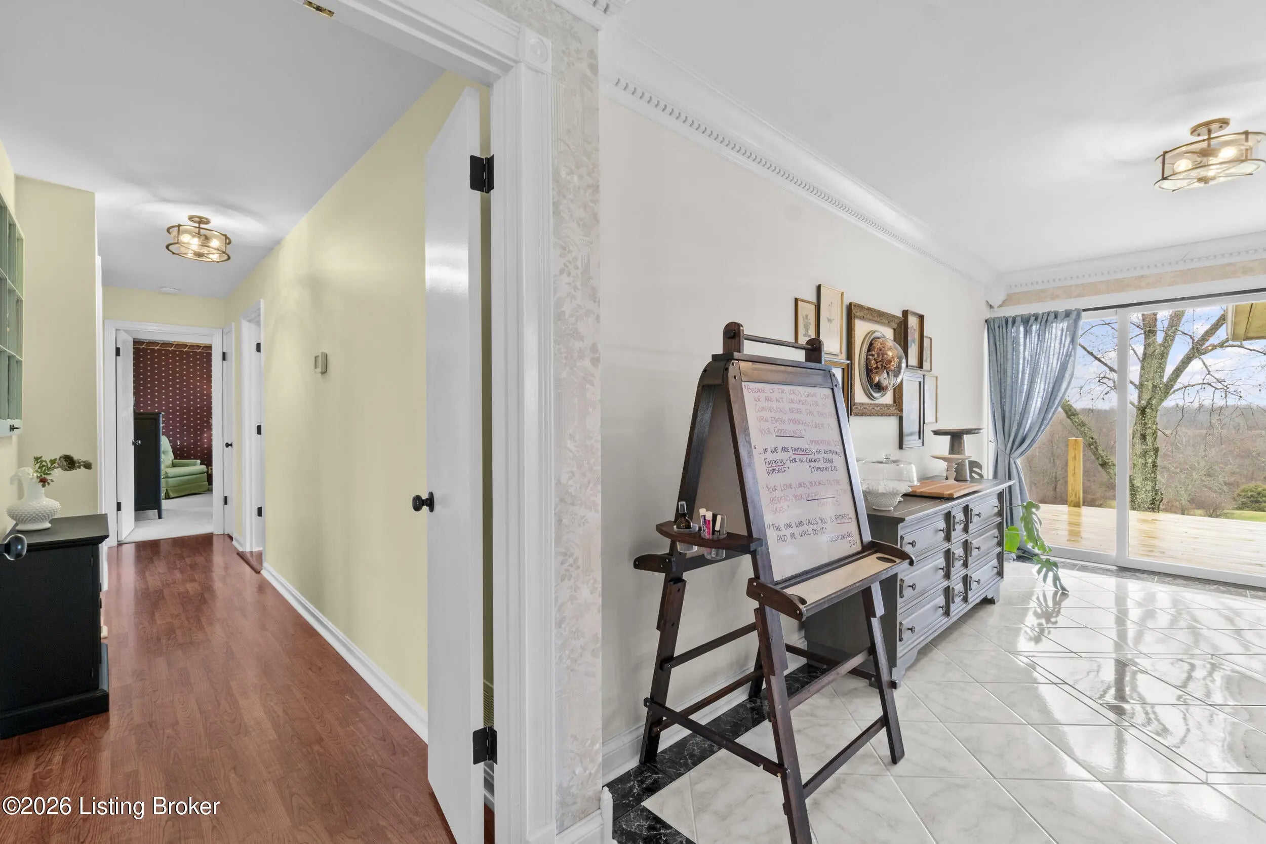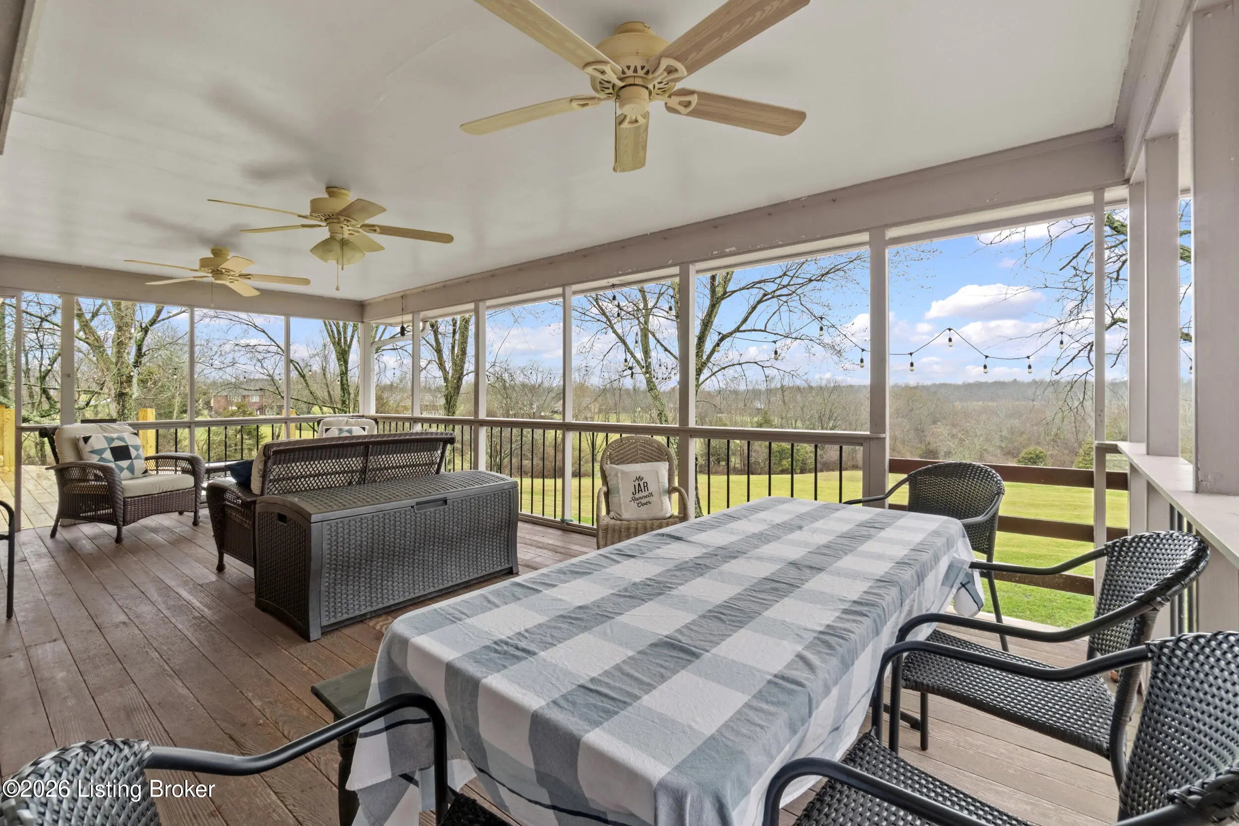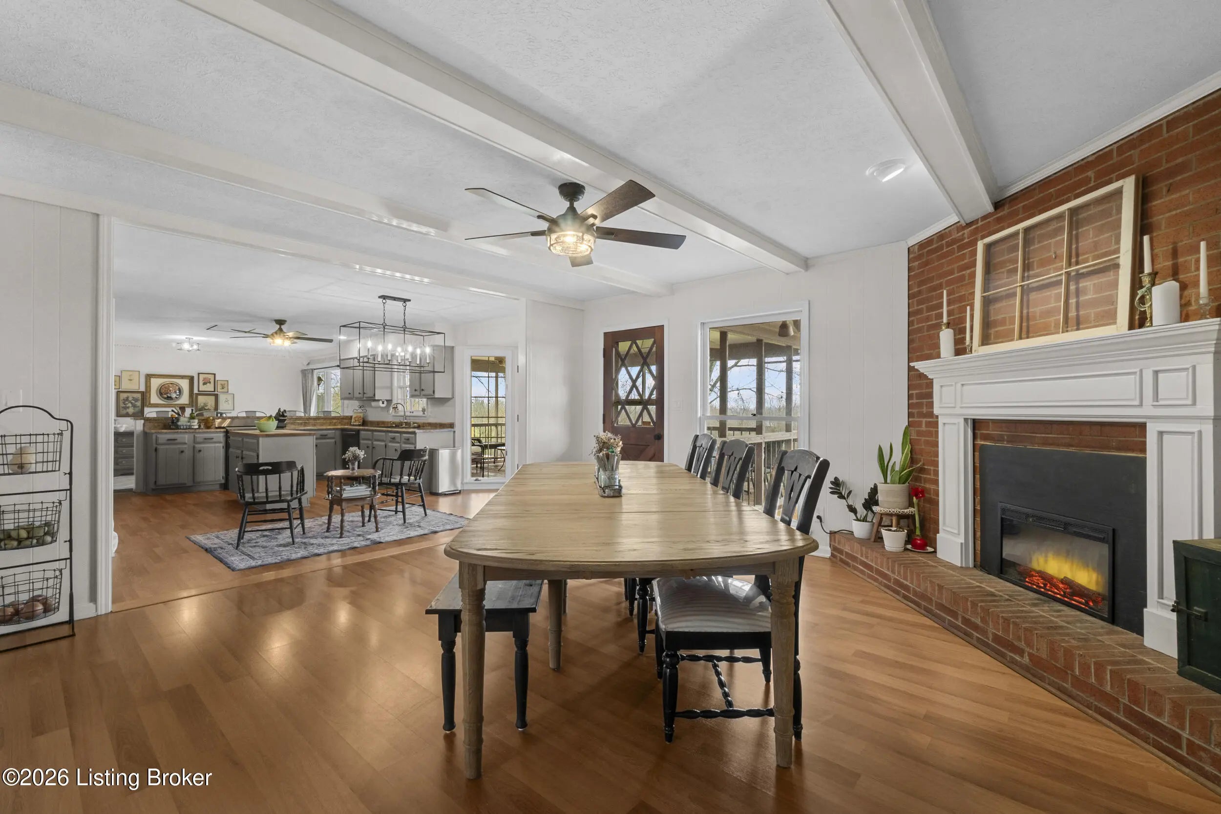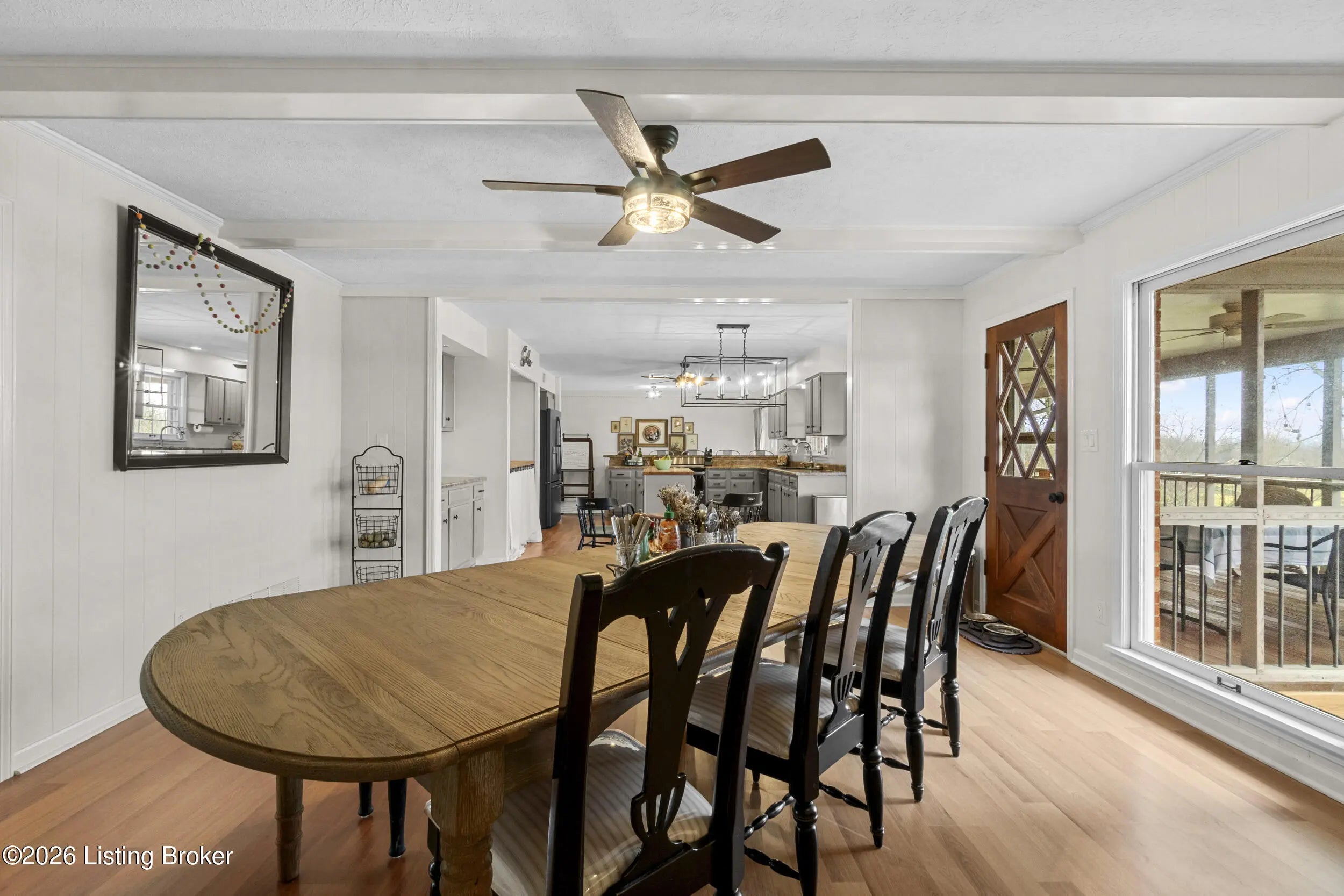 Welcome to 2421 Pendleton Rd, set on nearly 10 picturesque acres. This exceptional walk-out ranch delivers the perfect blend of space, flexibility, and privacy with over 5,500 finished square feet, 7 bedrooms, and 4 full baths. Designed for multi-generational living or income potential, a private-entry suite offers two bedrooms, a living room, full bath, and laundry—ideal for guests or Airbnb use. The main level impresses with a grand foyer featuring detailed crown moulding, a striking 25-foot living room with bay window, and a spacious kitchen with breakfast bar that flows seamlessly into the dining room with a warm wood-burning fireplace that rcurrently has an electric insert. A refined library/office with custom built-ins adds both charm and functionality. Enjoy peaceful views from covered deck that opens to a new deck under construction that will be finished prior to closing, perfect for entertaining or unwinding. The primary suite features double closets and private access to a catwalk leading to the deck, complemented by two additional generously sized bedrooms. The finished walk-out lower level expands your living space with a large family room with wood-burning fireplace, two bedrooms, a full bath, ample storage, and access to a 2.5-car attached garage, plus a patio for outdoor enjoyment. A rare opportunity to own a versatile retreat with room to live, host, and grow. Large garden with 27 raised beds, each with water run to them. Chicken coop/garden shed with water and electric. The property has multiple trails with bridges throughout.