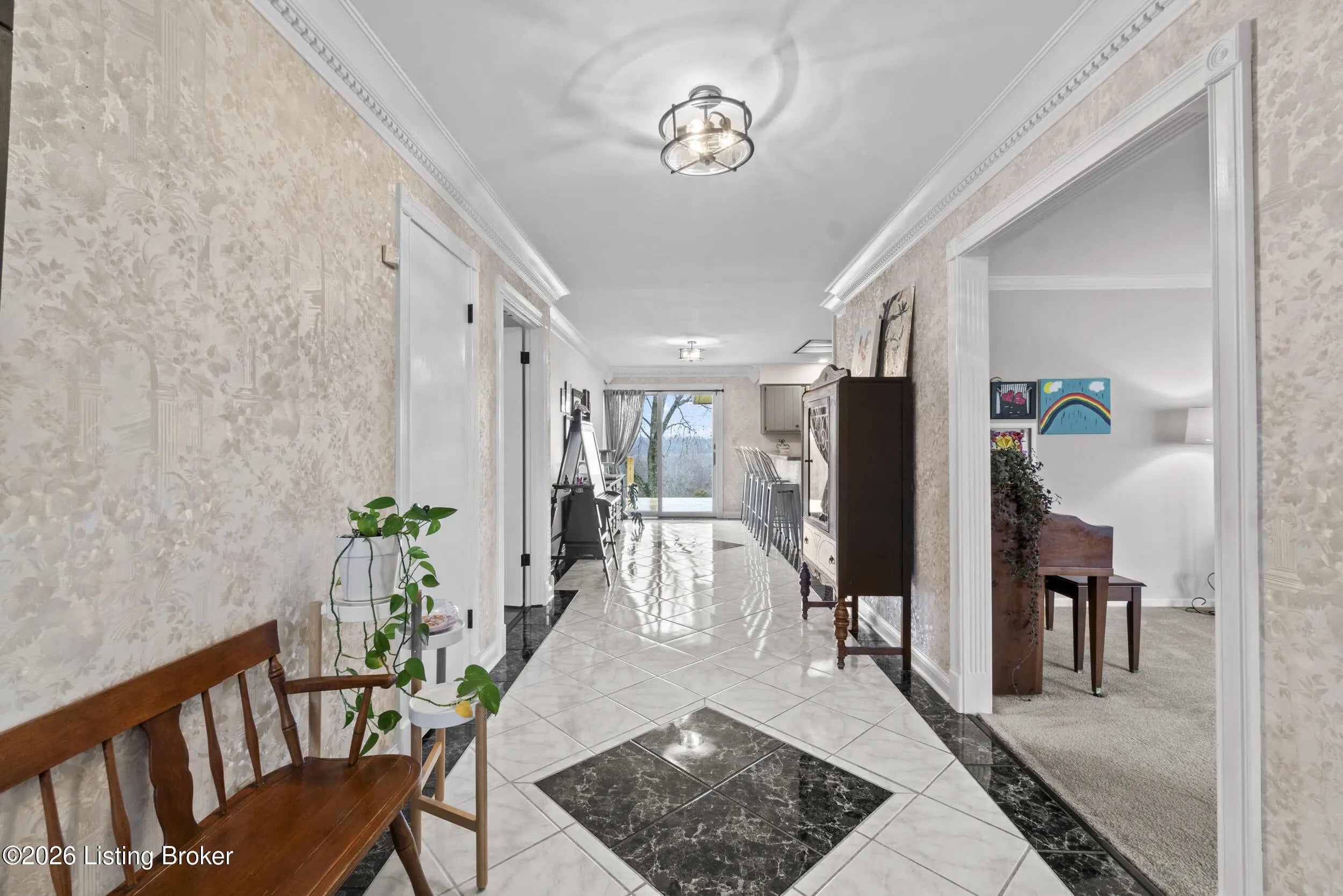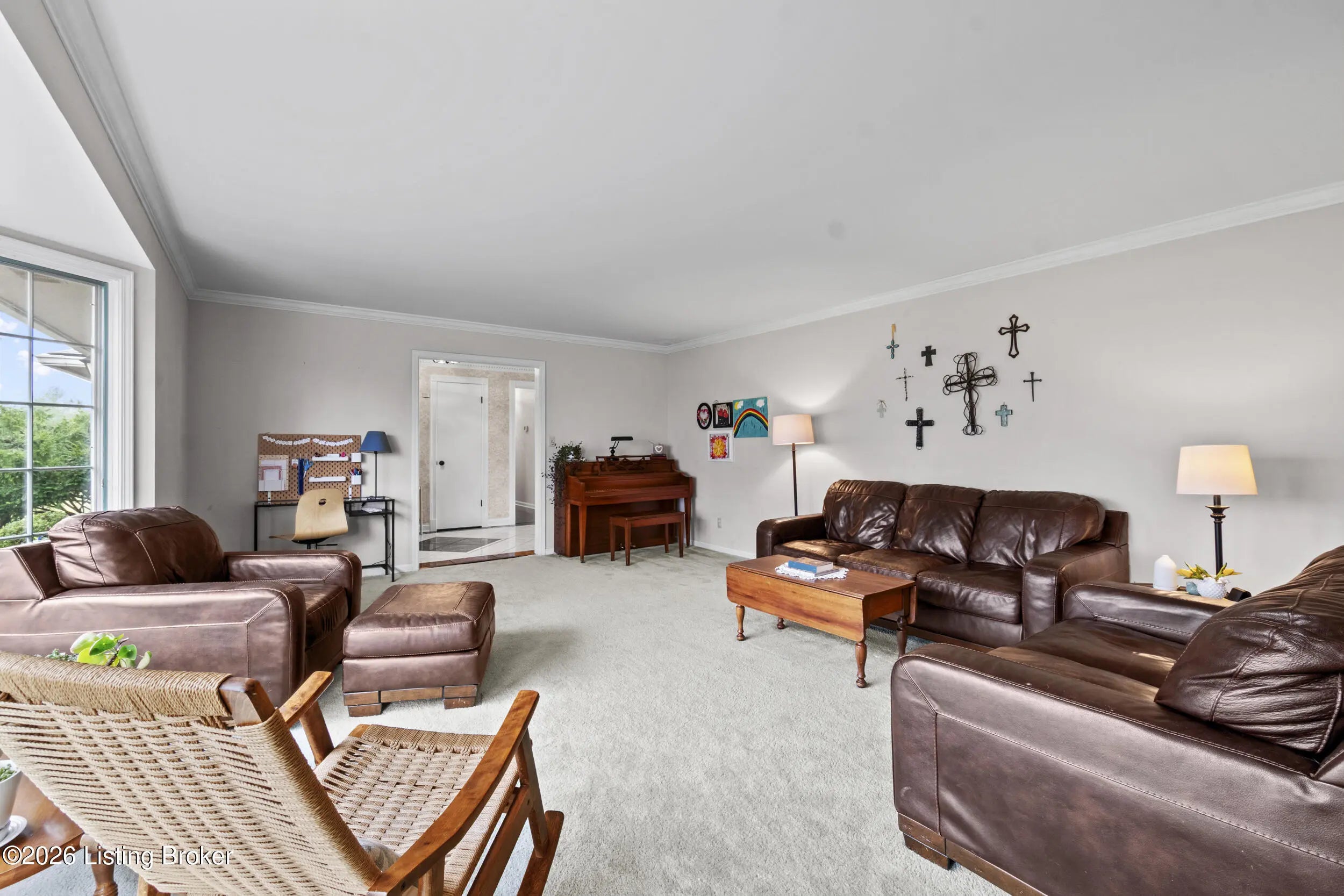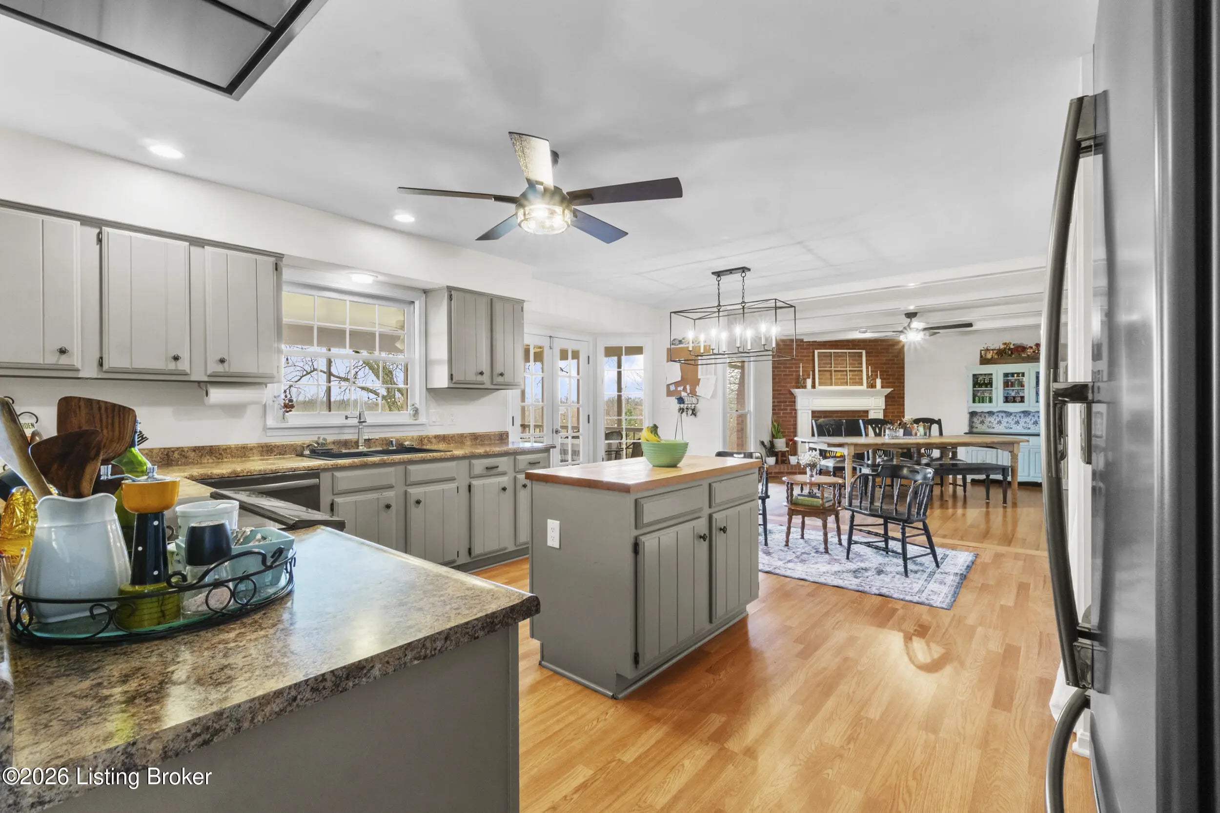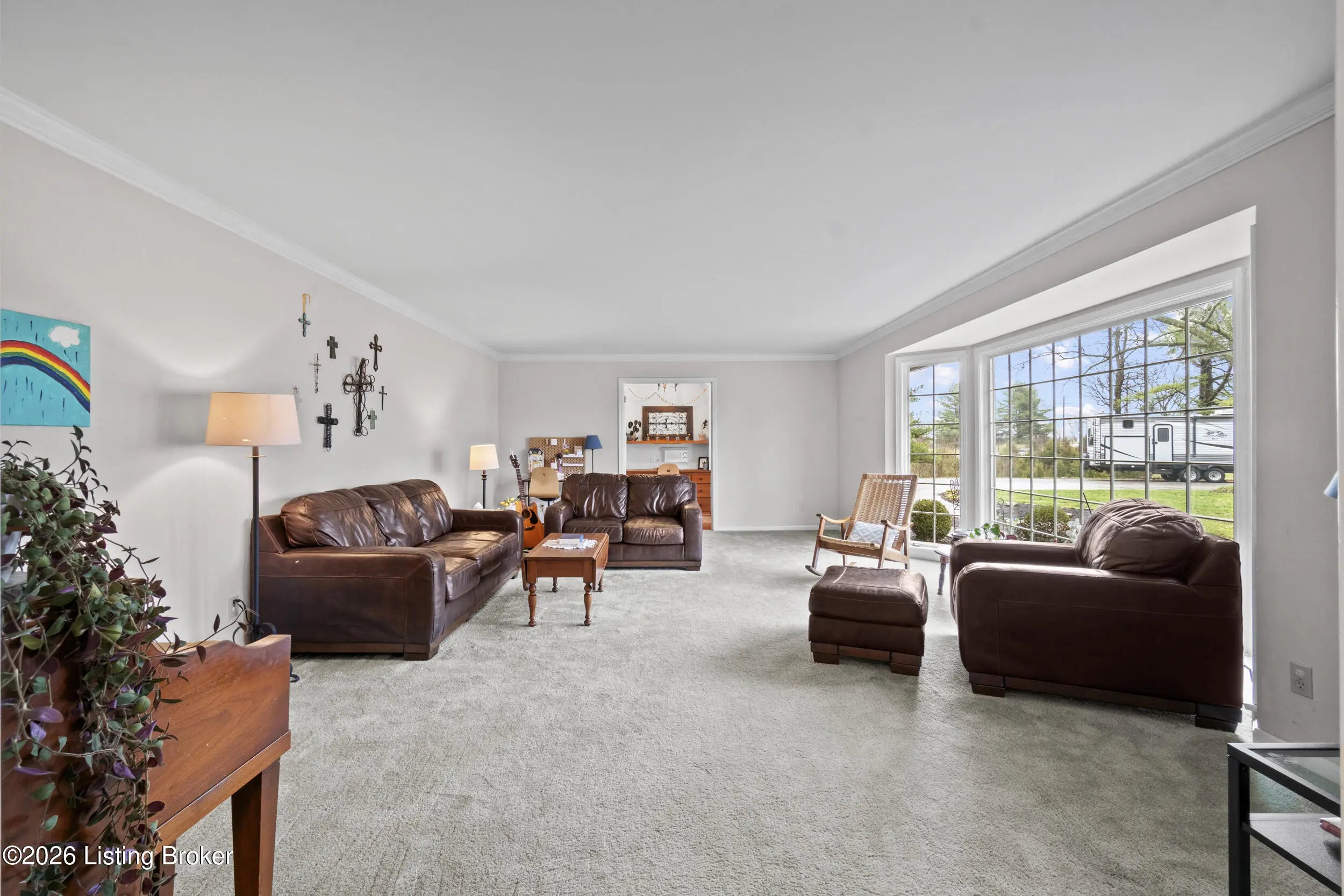 Welcome to 2421 Pendleton Rd, set on nearly 10 picturesque acres. This exceptional walk-out ranch delivers the perfect blend of space, flexibility, and privacy with over 5,500 finished square feet, 7 bedrooms, and 4 full baths. Designed for multi-generational living or income potential, a private-entry suite offers two bedrooms, a living room, full bath, and laundry—ideal for guests or Airbnb use. The main level impresses with a grand foyer featuring detailed crown moulding, a striking 25-foot living room with bay window, and a spacious kitchen with breakfast bar that flows seamlessly into the dining room with a warm wood-burning fireplace that rcurrently has an electric insert. A refined library/office with custom built-ins adds both charm and functionality. Enjoy peaceful views from covered deck that opens to a new deck under construction that will be finished prior to closing, perfect for entertaining or unwinding. The primary suite features double closets and private access to a catwalk leading to the deck, complemented by two additional generously sized bedrooms. The finished walk-out lower level expands your living space with a large family room with wood-burning fireplace, two bedrooms, a full bath, ample storage, and access to a 2.5-car attached garage, plus a patio for outdoor enjoyment. A rare opportunity to own a versatile retreat with room to live, host, and grow. Large garden with 27 raised beds, each with water run to them. Chicken coop/garden shed with water and electric. The property has multiple trails with bridges throughout.