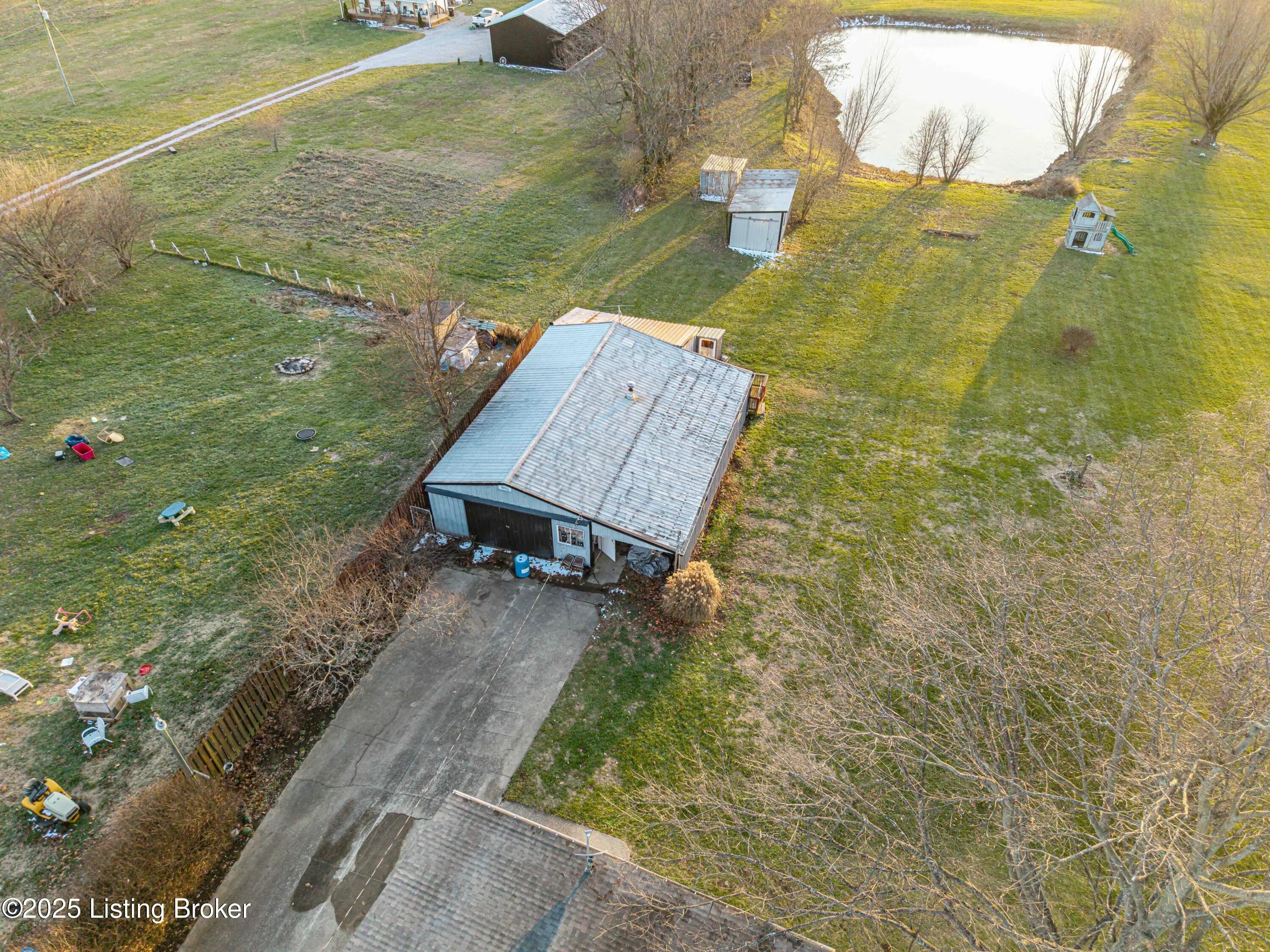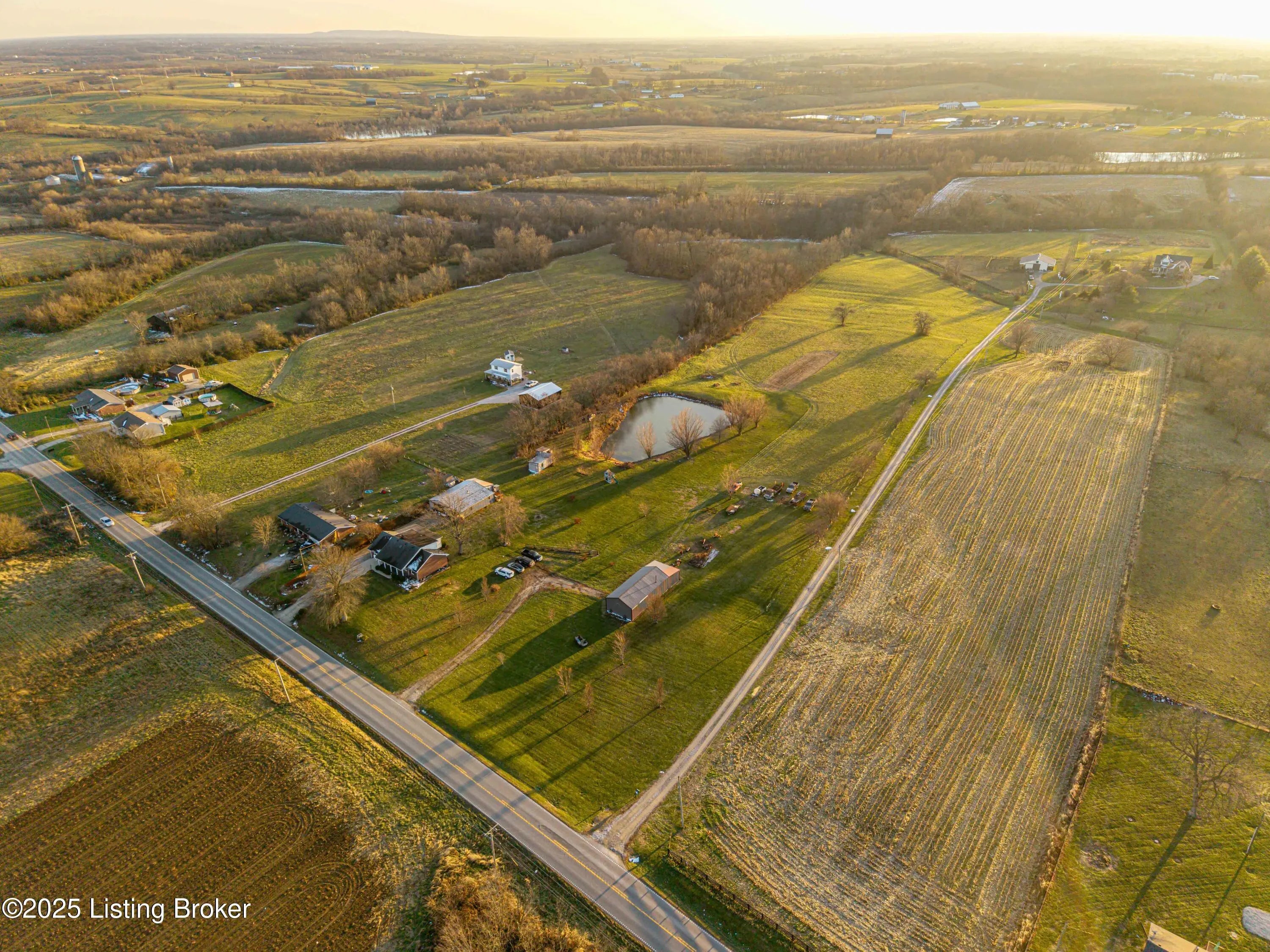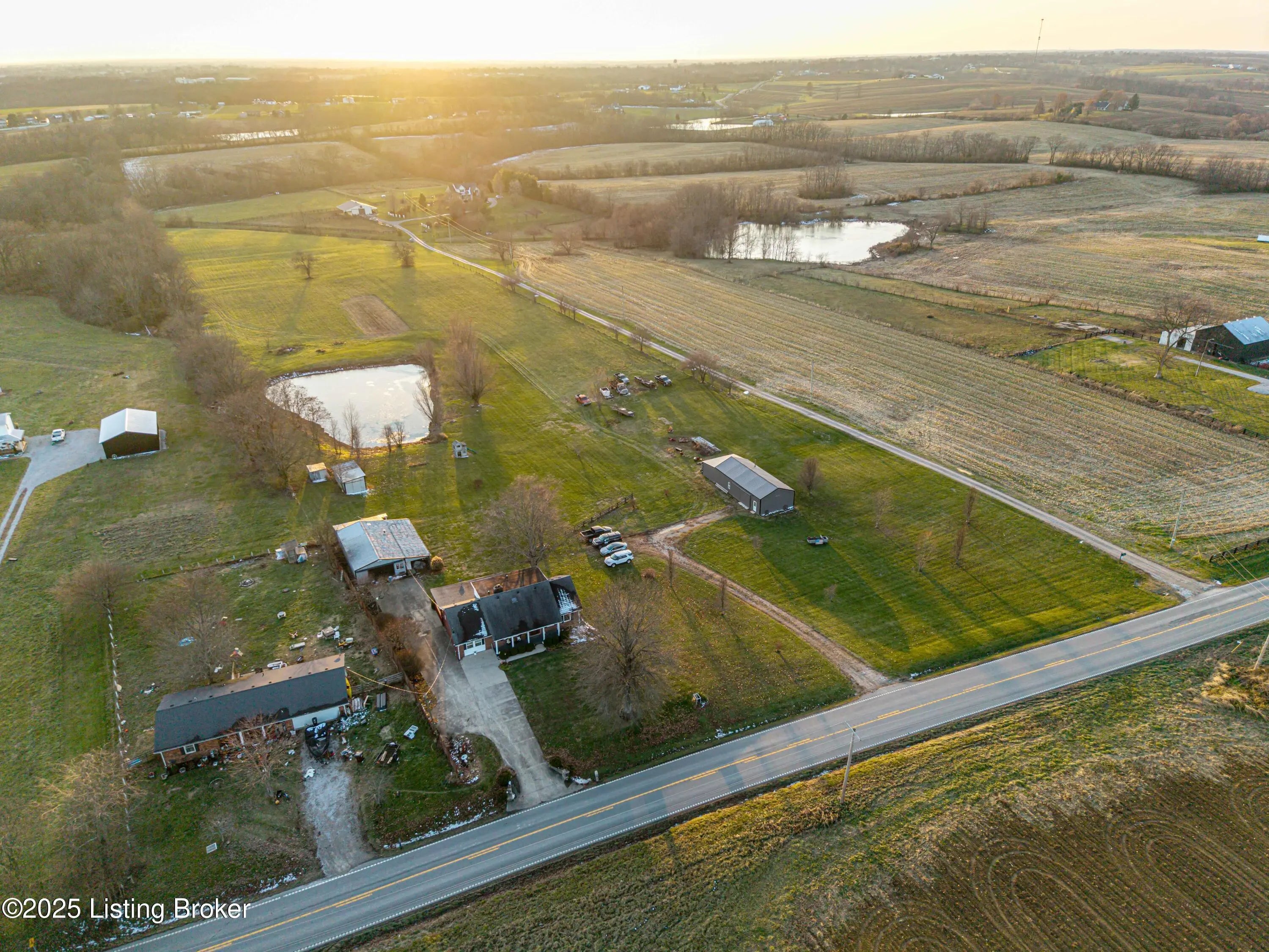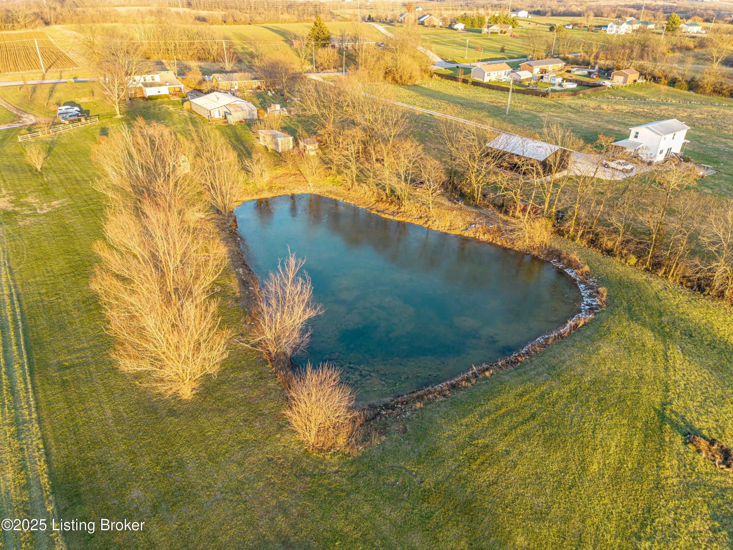 Discover the perfect blend of comfort, space, and rural charm in this beautifully expanded 3-bedroom, 3-bath home offering over 2,600 sq ft on 10+ acres of flat, cleared land with a large pond—perfect for animals, gardening, and outdoor living. Since 2015, the seller has added a spacious dining room, a second family room, an additional full bathroom, and finished a versatile bonus room upstairs that could serve as a 4th bedroom. Updates include a new roof, HVAC, water heater, windows, and flooring all within the last 10 years. Two outbuildings feature upgraded electric service, water, concrete floors, and wood burning stoves—one with partially finished space ideal for an office or living quarters. Built in 2018, the other garage/barn provides abundant workshop and storage space, plus a additional pondside shed for more storage. Conveniently located just minutes from Pleasureville and Eminence this property offers quick access to town conveniences while preserving the peaceful rural lifestyle you're looking for.