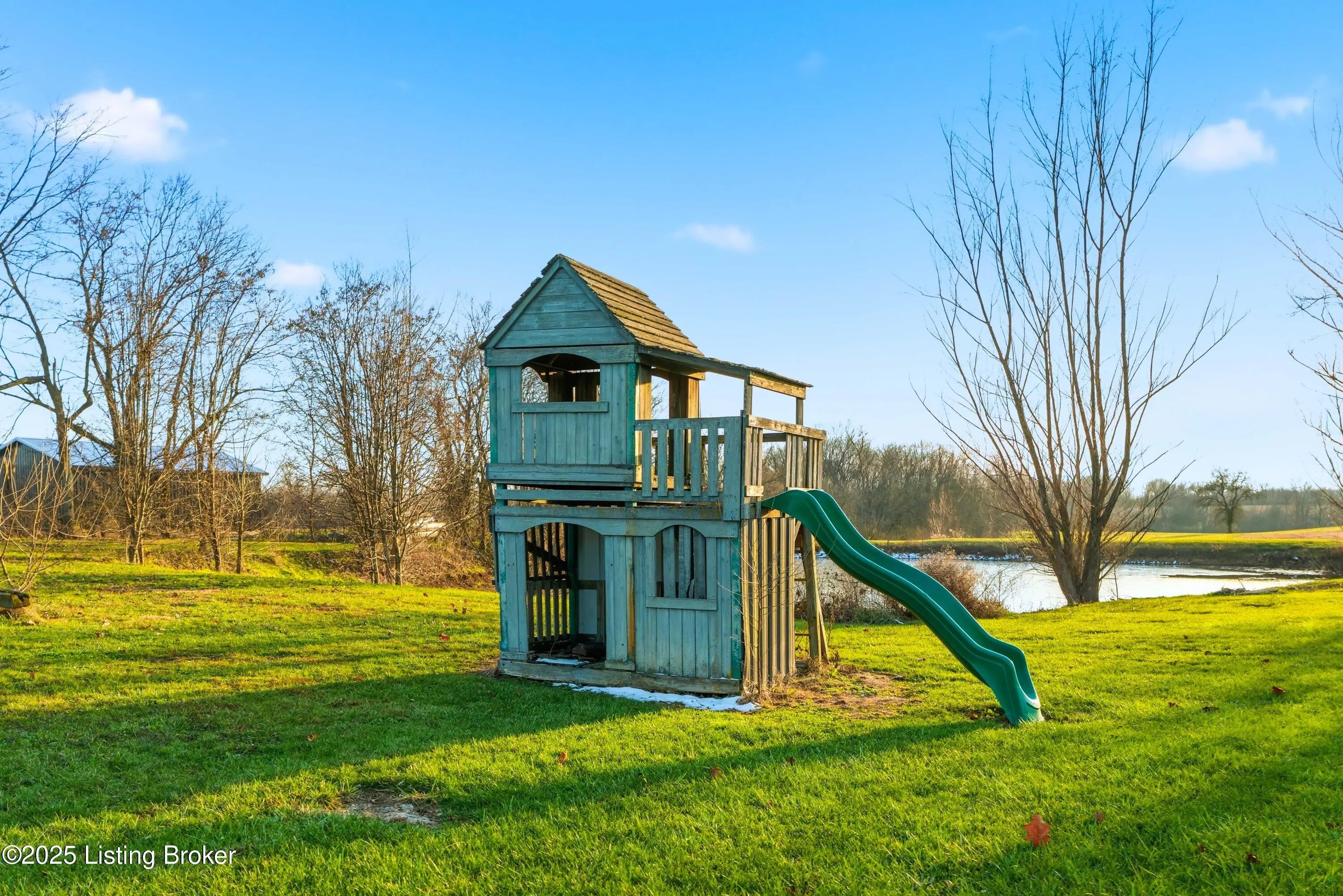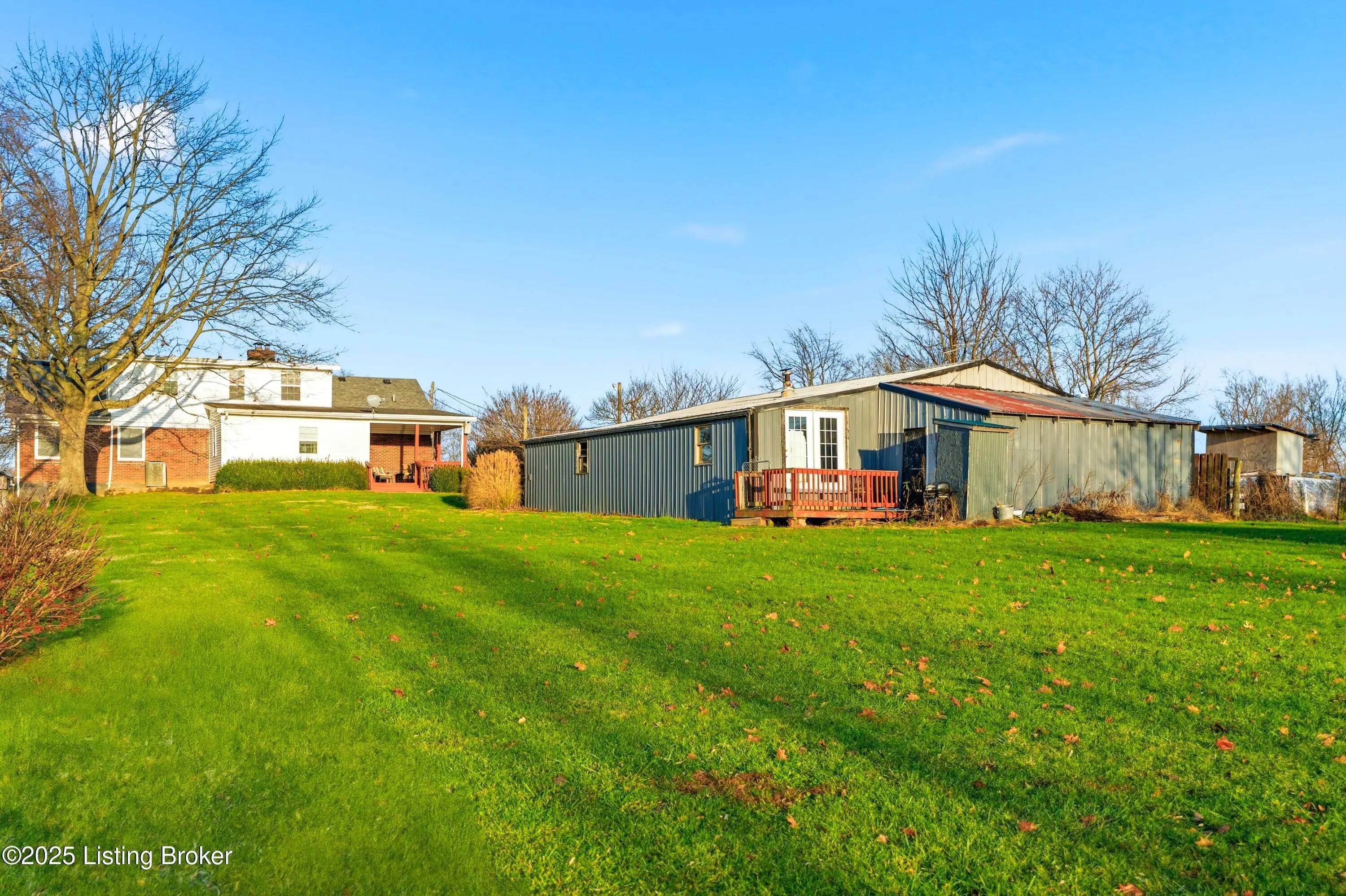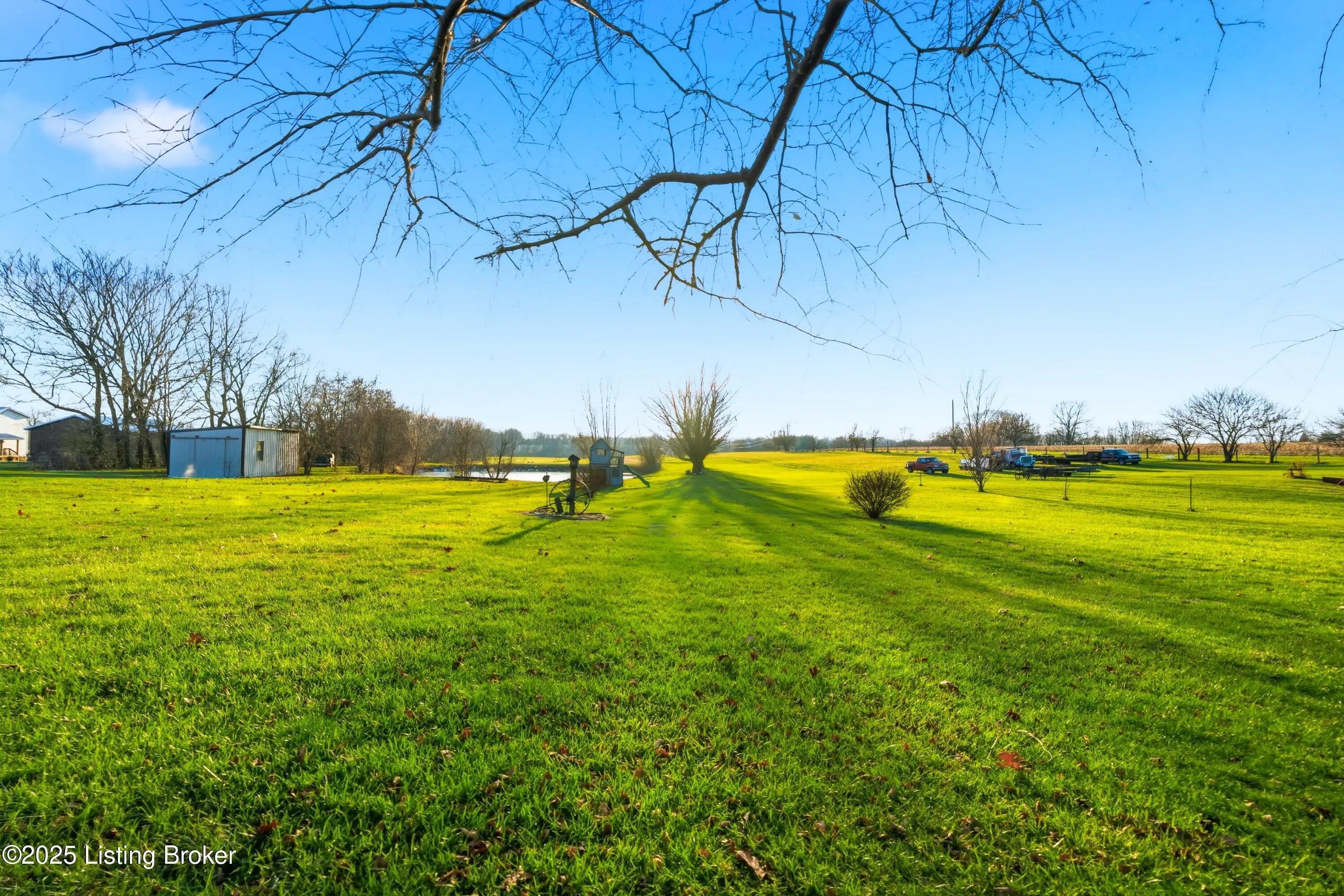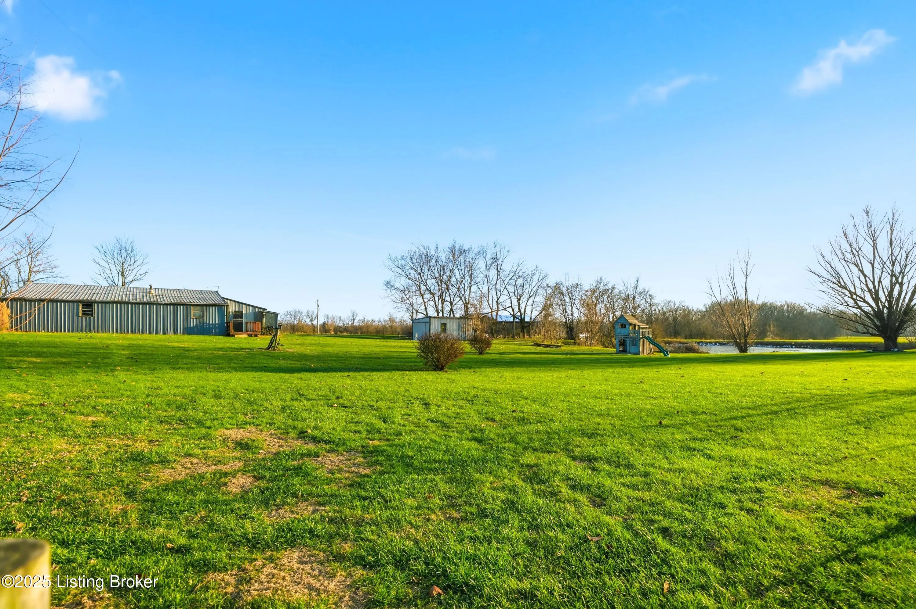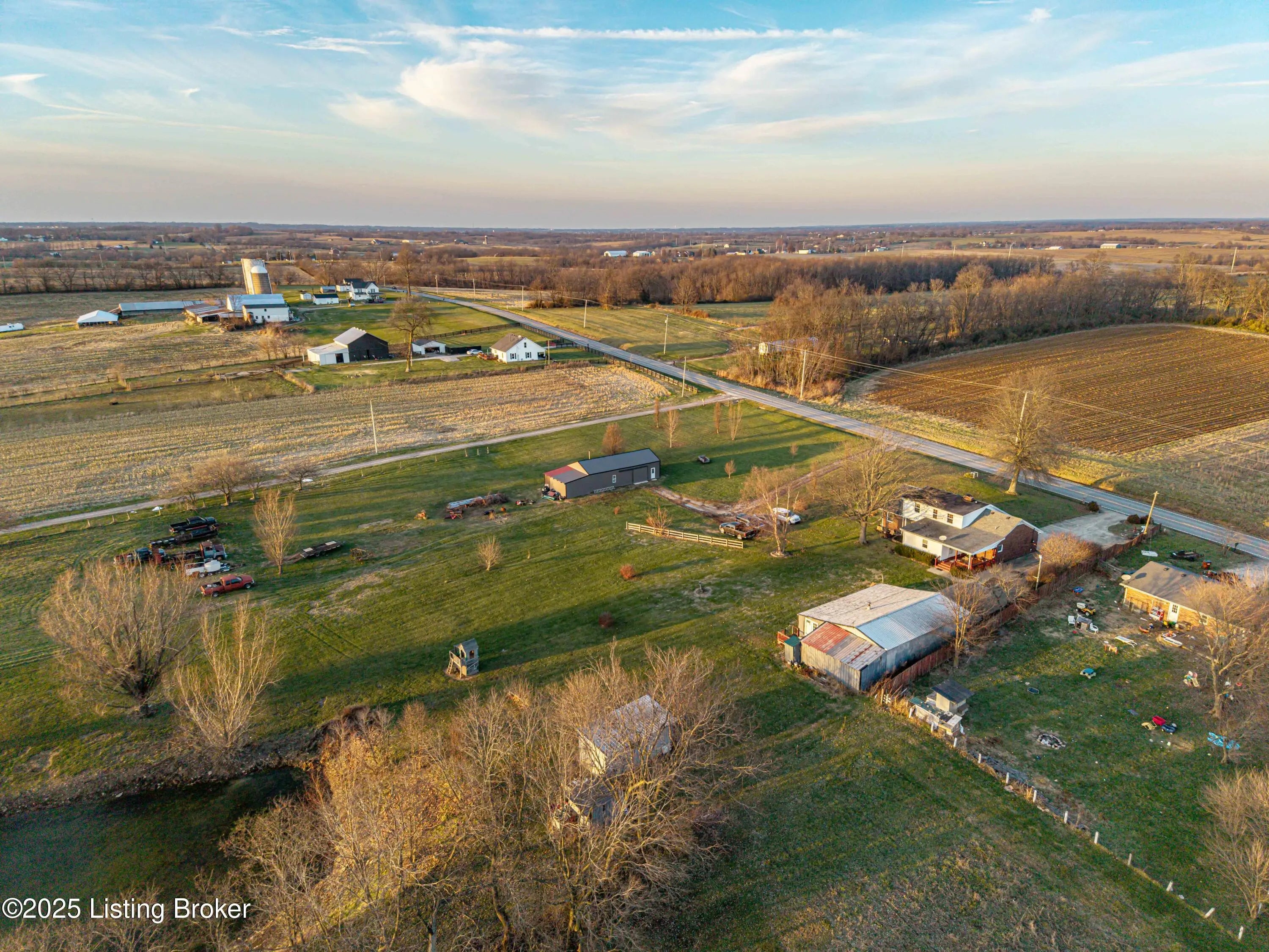 Discover the perfect blend of comfort, space, and rural charm in this beautifully expanded 3-bedroom, 3-bath home offering over 2,600 sq ft on 10+ acres of flat, cleared land with a large pond—perfect for animals, gardening, and outdoor living. Since 2015, the seller has added a spacious dining room, a second family room, an additional full bathroom, and finished a versatile bonus room upstairs that could serve as a 4th bedroom. Updates include a new roof, HVAC, water heater, windows, and flooring all within the last 10 years. Two outbuildings feature upgraded electric service, water, concrete floors, and wood burning stoves—one with partially finished space ideal for an office or living quarters. Built in 2018, the other garage/barn provides abundant workshop and storage space, plus a additional pondside shed for more storage. Conveniently located just minutes from Pleasureville and Eminence this property offers quick access to town conveniences while preserving the peaceful rural lifestyle you're looking for.