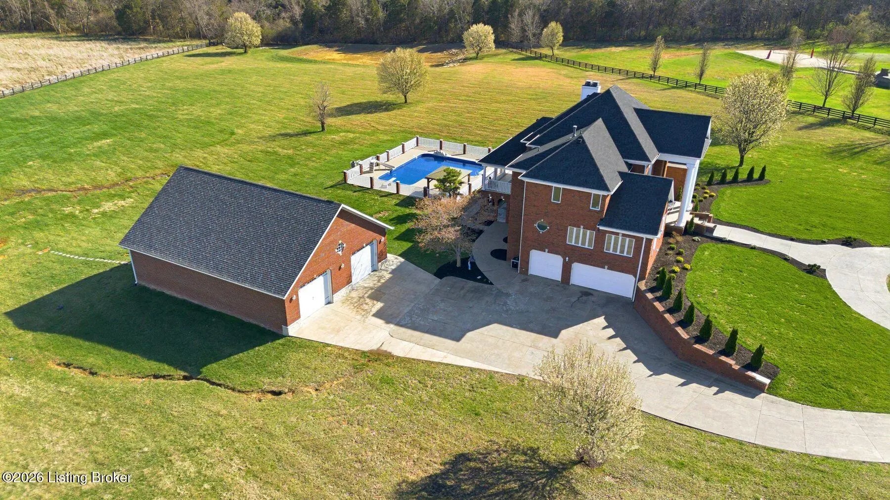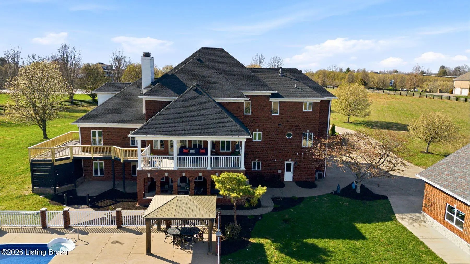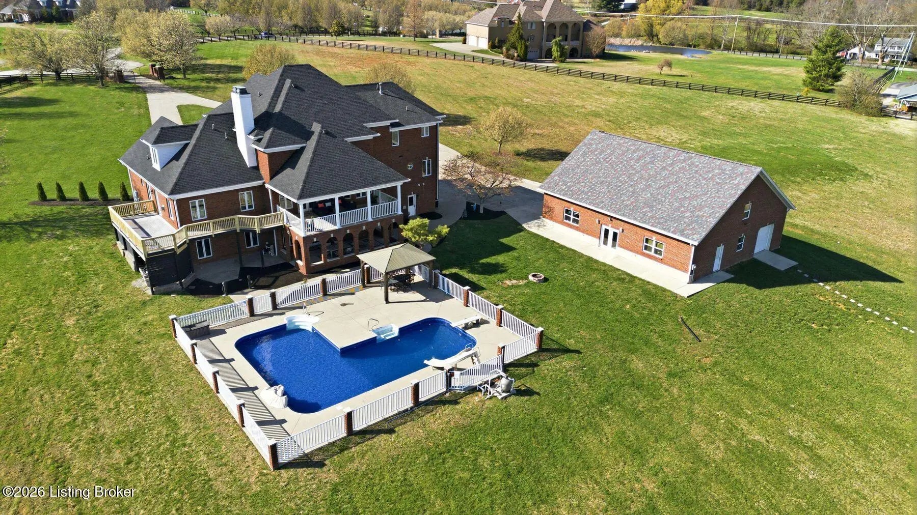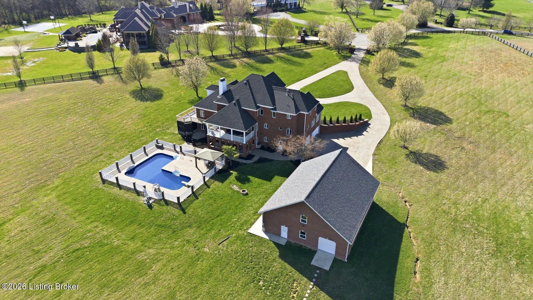 Welcome to a rare opportunity to own an extraordinary gated estate on nearly 9 acres—a truly unique property that offers privacy, space, and luxury while still being conveniently located. Properties with this much acreage inside Jefferson County are incredibly hard to find, making this home a special blend of peaceful country living with city convenience. As you enter through the gate and travel down the drive, you'll immediately feel the lifestyle this estate provides. The home welcomes you with soaring ceilings, expansive windows, and abundant natural light, creating a bright and open atmosphere while framing beautiful views of the surrounding property and pool area. The stunning staircase and balcony overlooking the living room below add architectural elegance and a dramatic focal point to the main living space. The main level offers exceptional comfort and functionality, with every bedroom featuring its own en suite bathroom, providing privacy for family and guests alike. The oversized primary suite is a true retreat, featuring multiple closets, a double tray ceiling, and a private exit to the deck where you can step out and enjoy the peaceful views of the property. The spa-like primary bathroom includes a large jetted tub and an oversized tiled walk-in shower, creating the perfect place to unwind. Outdoor living is just as impressive. The home features beautiful covered patios on both the upper and lower levels, ideal for entertaining, relaxing, or enjoying quiet evenings overlooking the large inground pool and expansive acreage. Whether hosting summer gatherings, watching the sunset, or simply enjoying the tranquility of the property, the outdoor spaces are designed for memorable moments. The walkout basement functions as a complete separate living quarters, offering incredible versatility. This level includes a full kitchen, dining area, living room, game room with fireplace, exercise room, and additional flexible spaces to suit your needs. With direct access to the lower patio featuring elegant archways overlooking the pool, this area could serve as a mother-in-law suite, guest quarters, or even potential rental space. For those who need space for hobbies, equipment, or toys, the property also includes a huge workshop garage, perfect for projects, storage, or recreational vehicles. Recent Updates & Improvements This home has been thoughtfully refreshed and updated, including fresh neutral paint throughout, new carpet, new light fixtures, new door hardware, new landscaping, and a new pool liner. Additional major updates include a newer HVAC system, newer roof, and a newer detached garage with separate service, offering peace of mind for years to come. Properties like this rarely become available—nearly 9 acres inside Jefferson County, a gated setting, luxury amenities, and unmatched versatility. If you've been searching for privacy, space, and convenience in one remarkable property, this is it. Schedule your private showing today before this incredible estate is gone.