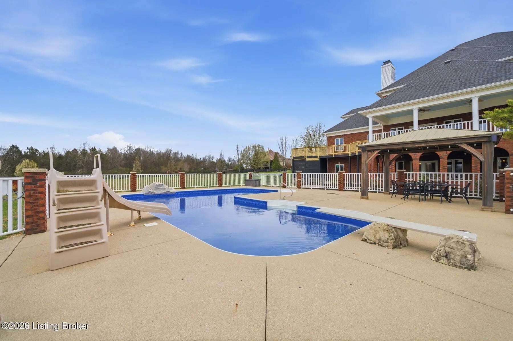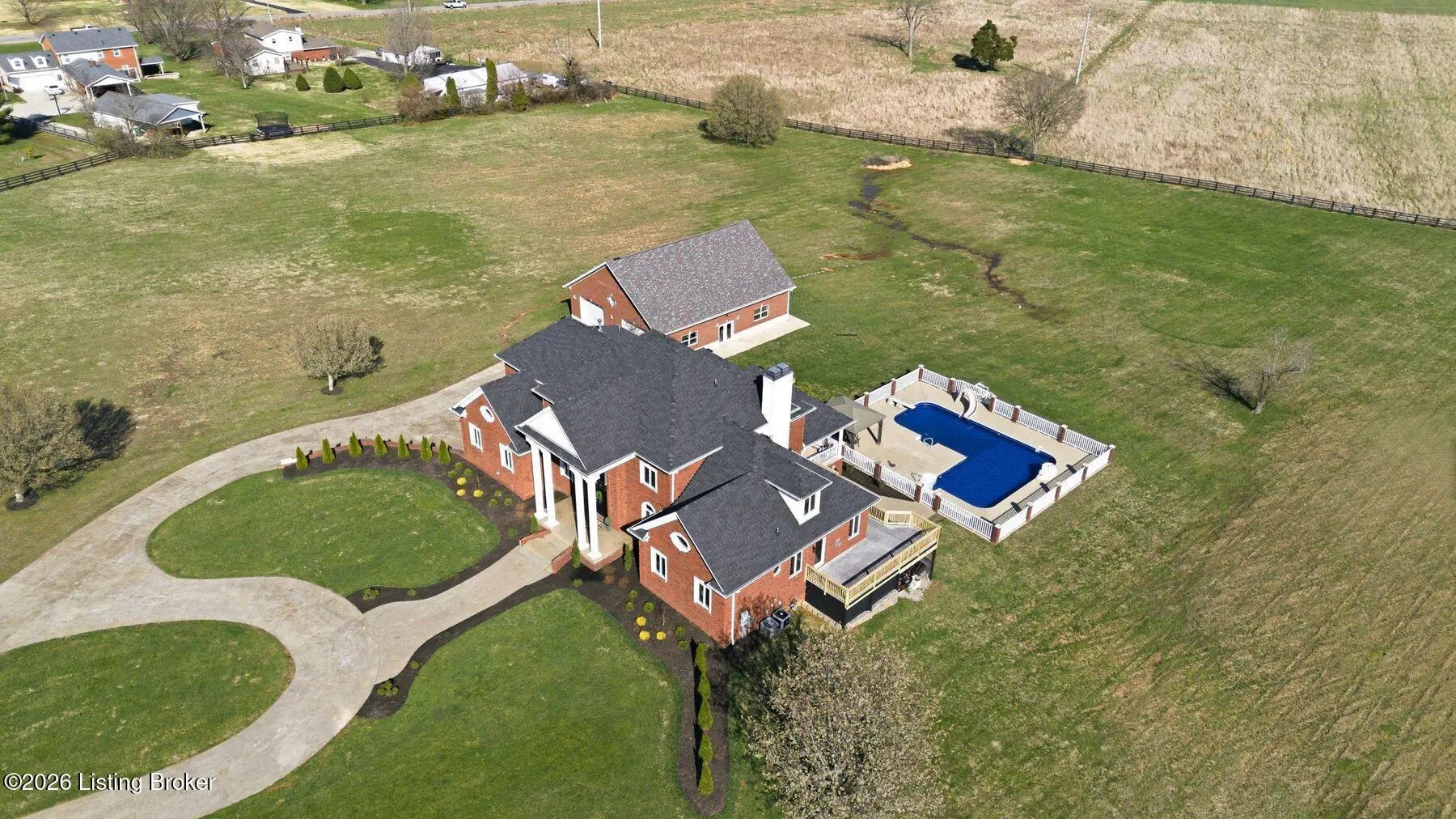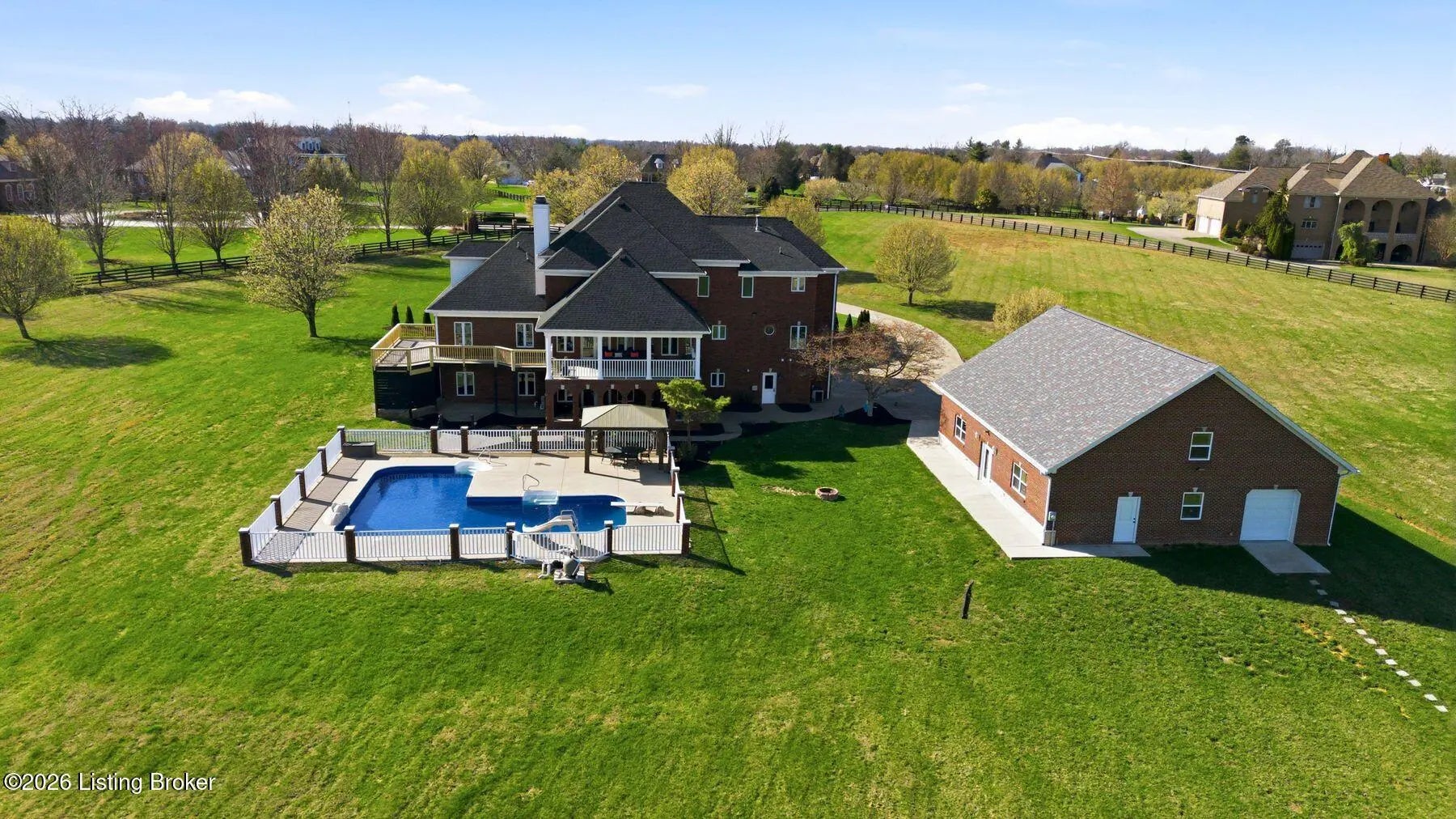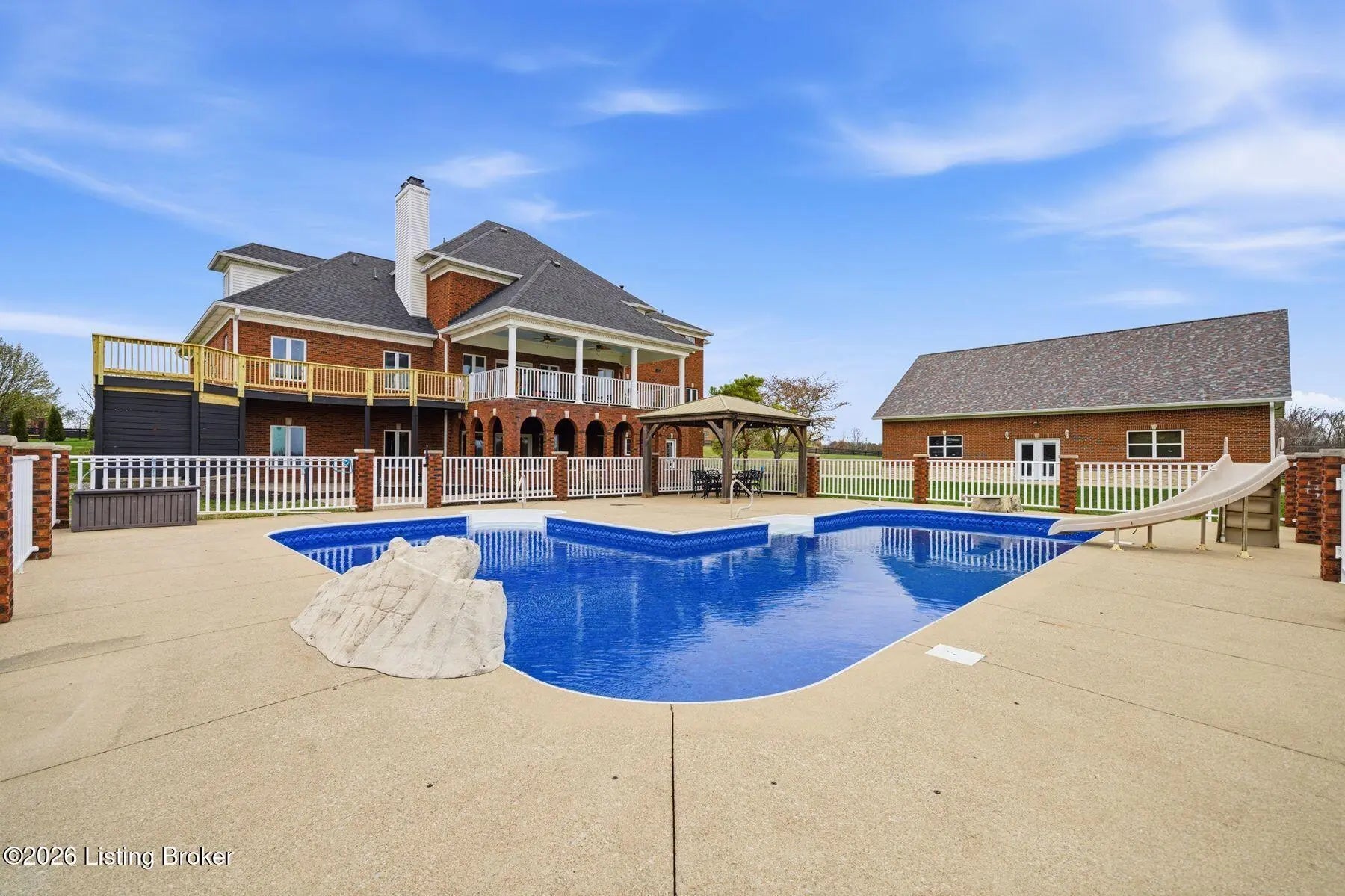 Welcome to a rare opportunity to own an extraordinary gated estate on nearly 9 acres—a truly unique property that offers privacy, space, and luxury while still being conveniently located. Properties with this much acreage inside Jefferson County are incredibly hard to find, making this home a special blend of peaceful country living with city convenience. As you enter through the gate and travel down the drive, you'll immediately feel the lifestyle this estate provides. The home welcomes you with soaring ceilings, expansive windows, and abundant natural light, creating a bright and open atmosphere while framing beautiful views of the surrounding property and pool area. The stunning staircase and balcony overlooking the living room below add architectural elegance and a dramatic focal point to the main living space. The main level offers exceptional comfort and functionality, with every bedroom featuring its own en suite bathroom, providing privacy for family and guests alike. The oversized primary suite is a true retreat, featuring multiple closets, a double tray ceiling, and a private exit to the deck where you can step out and enjoy the peaceful views of the property. The spa-like primary bathroom includes a large jetted tub and an oversized tiled walk-in shower, creating the perfect place to unwind. Outdoor living is just as impressive. The home features beautiful covered patios on both the upper and lower levels, ideal for entertaining, relaxing, or enjoying quiet evenings overlooking the large inground pool and expansive acreage. Whether hosting summer gatherings, watching the sunset, or simply enjoying the tranquility of the property, the outdoor spaces are designed for memorable moments. The walkout basement functions as a complete separate living quarters, offering incredible versatility. This level includes a full kitchen, dining area, living room, game room with fireplace, exercise room, and additional flexible spaces to suit your needs. With direct access to the lower patio featuring elegant archways overlooking the pool, this area could serve as a mother-in-law suite, guest quarters, or even potential rental space. For those who need space for hobbies, equipment, or toys, the property also includes a huge workshop garage, perfect for projects, storage, or recreational vehicles. Recent Updates & Improvements This home has been thoughtfully refreshed and updated, including fresh neutral paint throughout, new carpet, new light fixtures, new door hardware, new landscaping, and a new pool liner. Additional major updates include a newer HVAC system, newer roof, and a newer detached garage with separate service, offering peace of mind for years to come. Properties like this rarely become available—nearly 9 acres inside Jefferson County, a gated setting, luxury amenities, and unmatched versatility. If you've been searching for privacy, space, and convenience in one remarkable property, this is it. Schedule your private showing today before this incredible estate is gone.