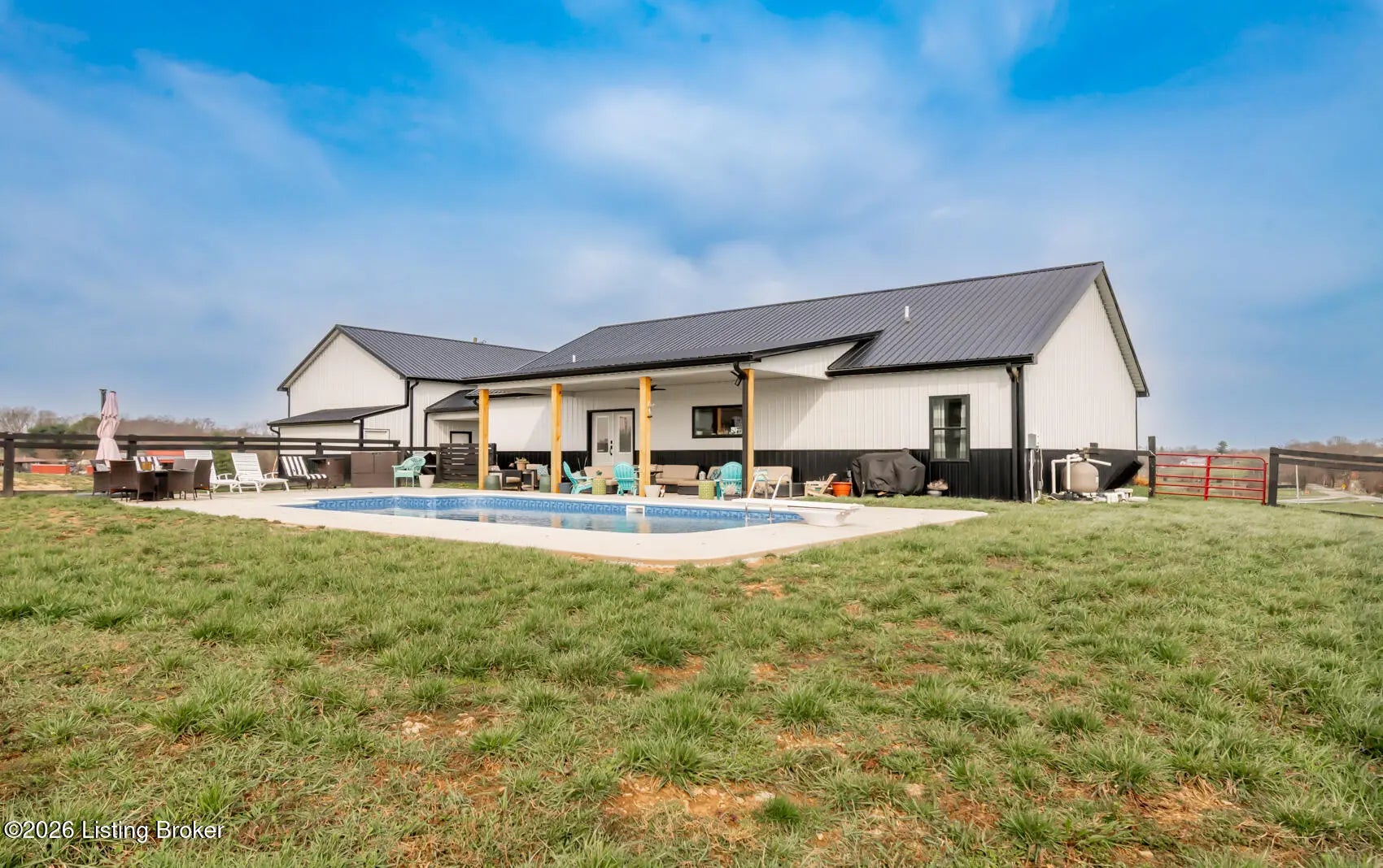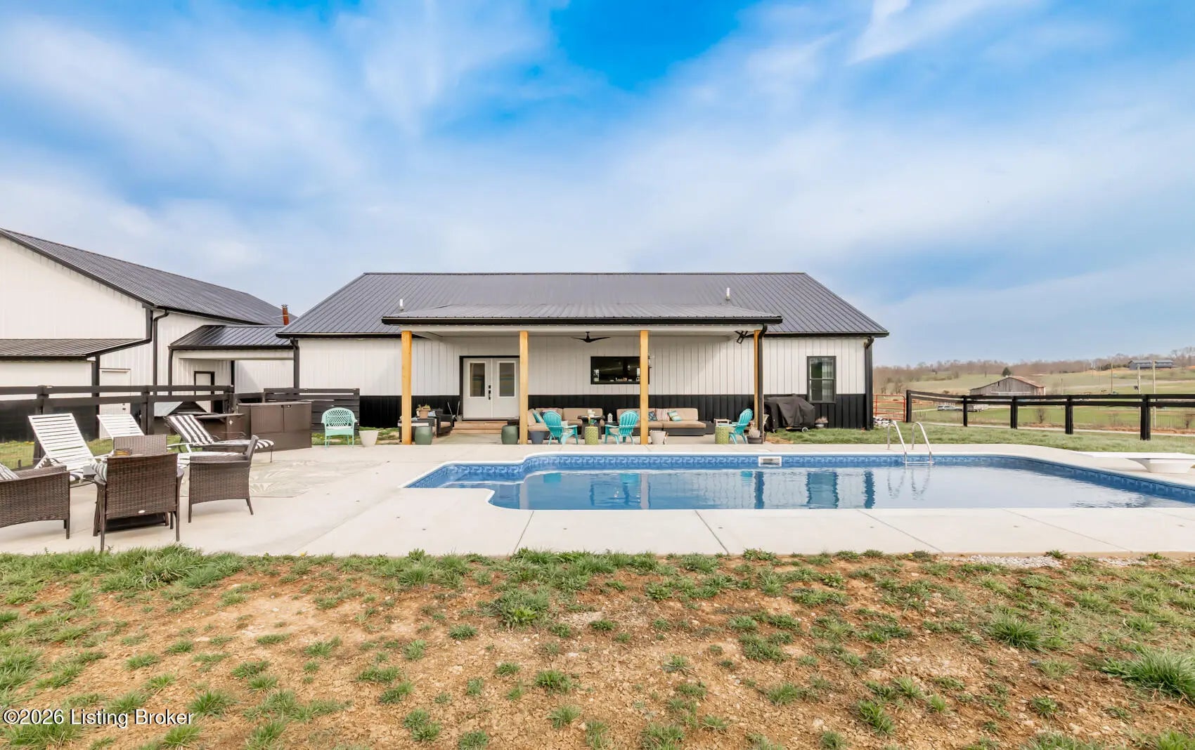 Welcome to 2097 Turner Station Rd. where you'll Experience the pinnacle of modern country living in this stunning, custom-Built home featuring an expansive open-concept floor plan where the boundaries between indoors and outdoors seem to disappear. The heart of the home is defined by breathtaking pinewood vaulted ceilings, extraordinary large size family room to enjoy while relaxing by the electric fireplace, a chef's dream kitchen featuring large island that can easily seat 4, white quartz countertop, soft close cabinets with plenty of storge & all appliances are Bespoke Brand. Walk-in designed pantry. Natural lighting home will be noticed throughout home. Let's flow right into Master bedroom with charming ensuite, tile shower with glass enclosure, double vanity and a " his & hers" style boutique walk-in closet. On the opposite side of the house, you can find the other 2 bedrooms with Jack-n-Jill bathroom. Outside you can relax on covered front porch or entertain out on back patio by the premium 16x32 inground saltwater pool, featuring a deep end of 8 feet. Whether you're hosting a summer celebration or enjoying a quiet morning swim, the pool deck offers some of the most fantastic, unobstructed views the property has to offer. 30x40 garage/outbuilding that goes far beyond standard storage. This versatile space is a hobbyist's or professional's dream that has its own half bath easily accessible to pool. There's an extra 4x20 lean-to with built-in shelving. Important to mention this is stick built home on a 4ft crawl space that can be accessed from laundry room. Come out to visit all this home situated on 5.87 picturesque acres.