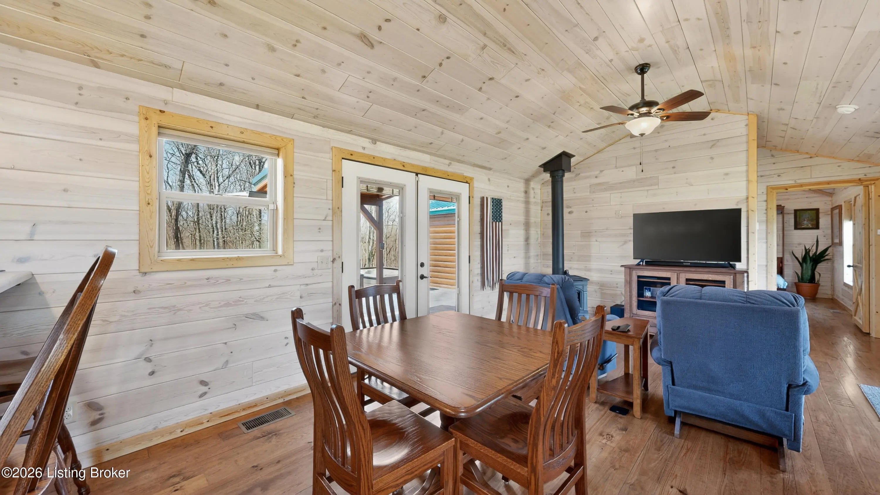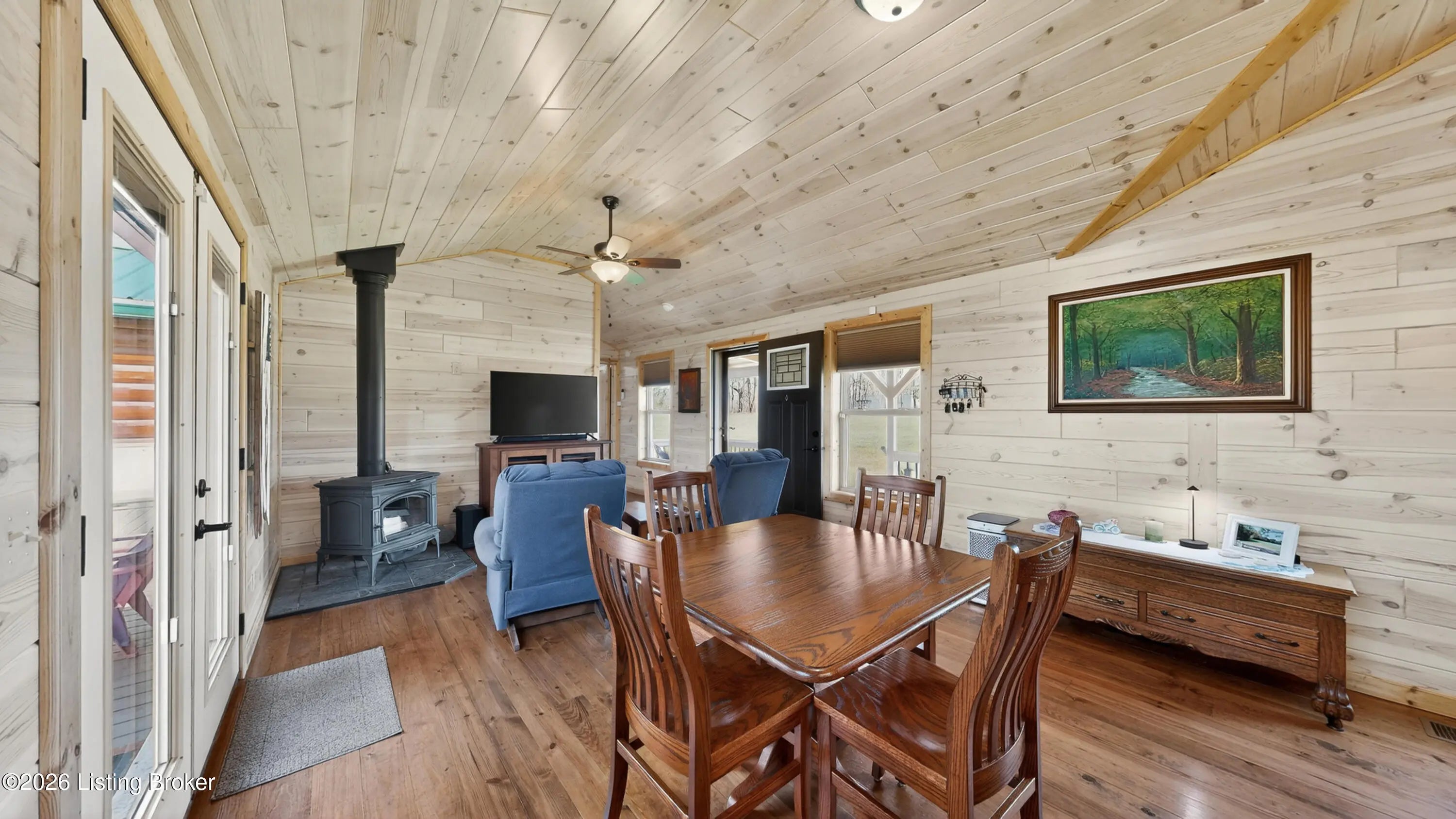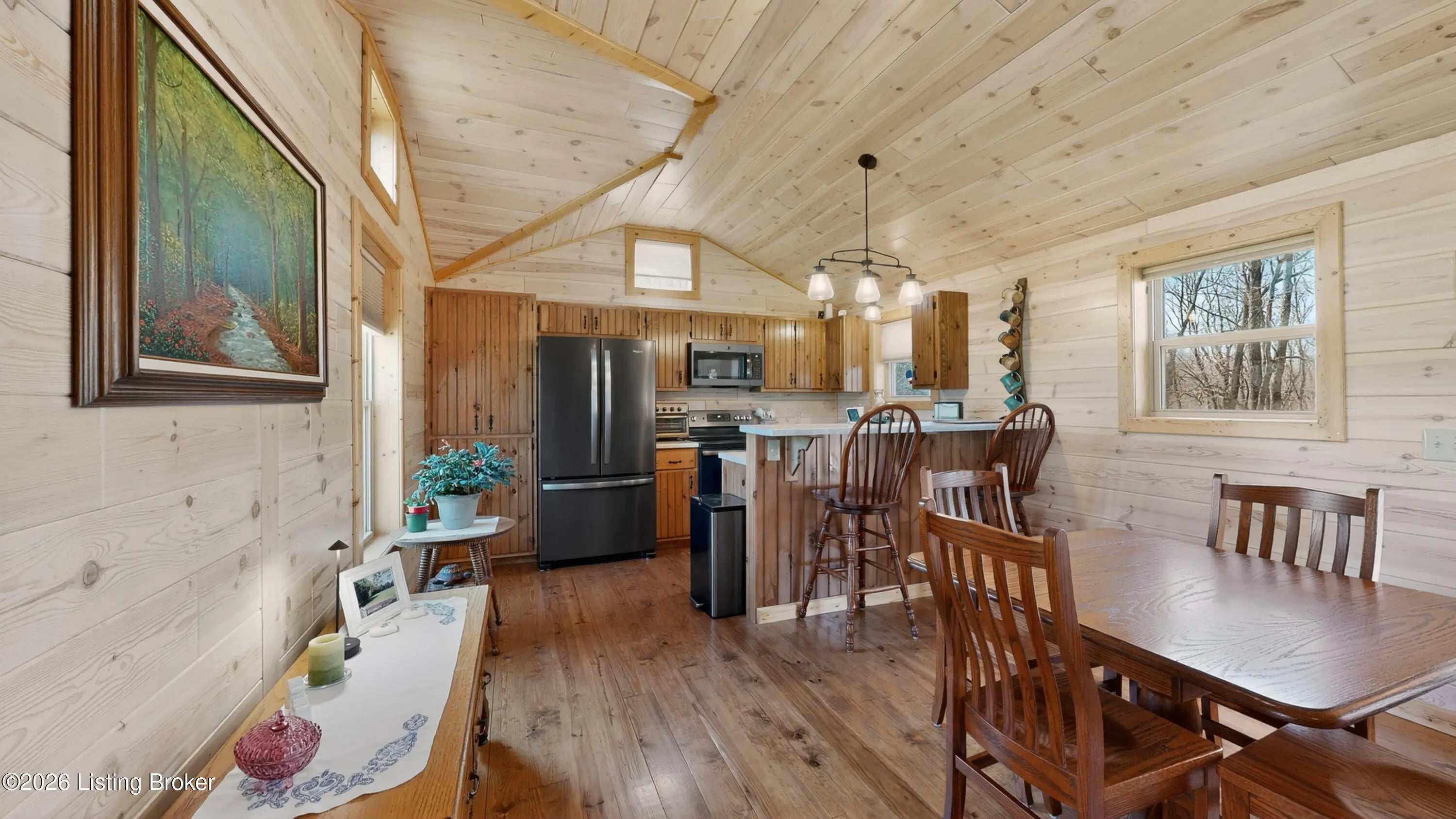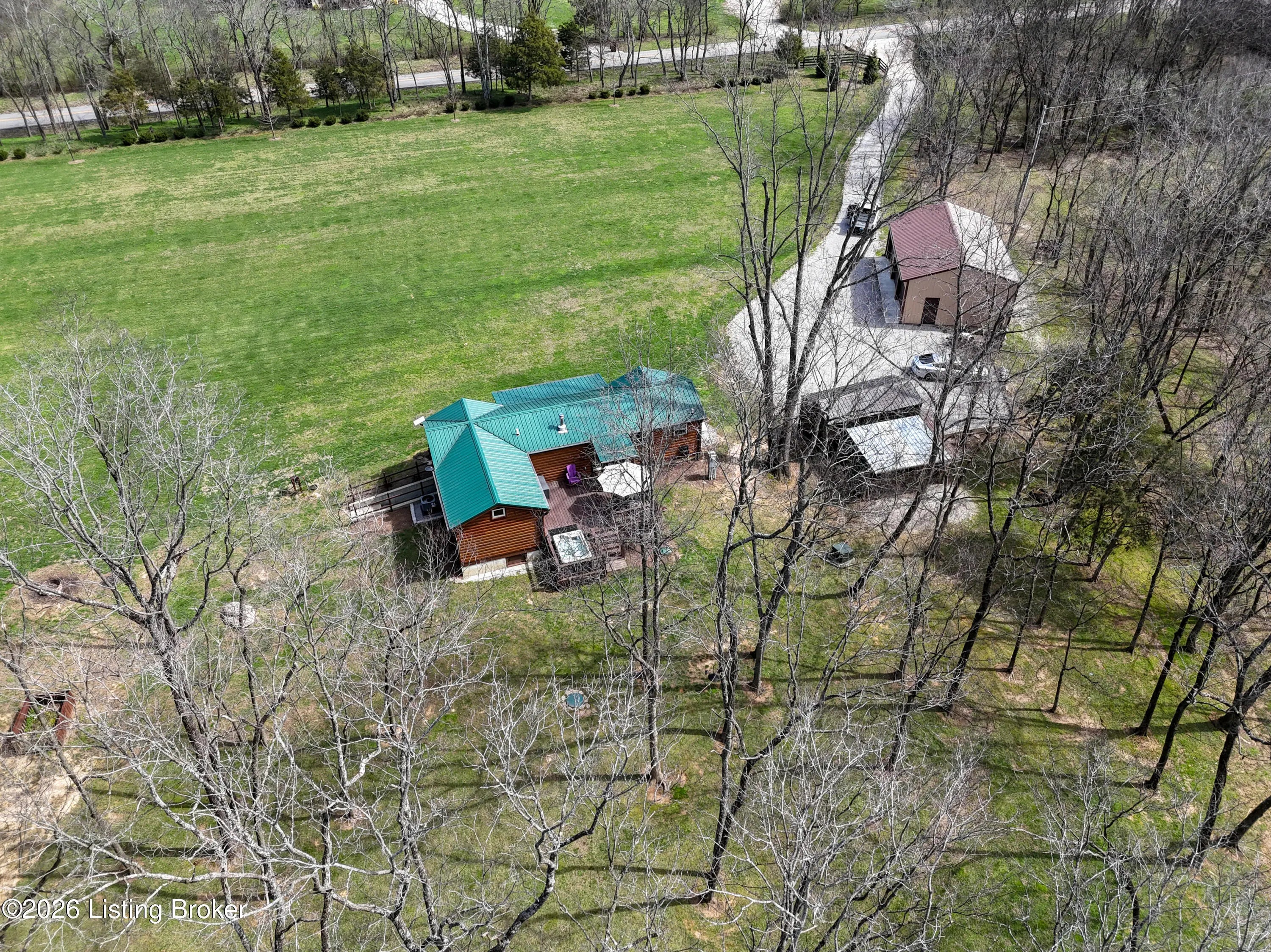 Custom Amish-Built Cabin on 7.4 Wooded Acres with Creek Access, 3-Car Barn, and a Hot Tub Off the Back Deck. This property started as raw land and a vision. What exists today is a custom Amish-built cabin retreat that took years to get right, with zero shortcuts along the way. The 1-bedroom, 1-bath cabin lives entirely on one level, including laundry, making daily life here genuinely easy. The den adds a murphy bed, giving the cabin real flexibility for guests without sacrificing the room's everyday function. French doors off the main living area open directly onto a deck where the hot tub sits framed by the woods. Trees were selectively cleared behind the cabin to establish a grass clearing, and the result is a backyard that pulls birds, deer, and abundant wildlife in close...... Sit long enough and the show comes to you. The upgraded HVAC system keeps the cabin comfortable year-round, and a whole-house generator backed by a seller-owned 500-gallon underground propane tank means power and heat are never a concern. No tank rental, no monthly fees on your fuel supply. That transfers with the sale. Starlink delivers full broadband anywhere on the property. SimpliSafe handles security. The lower level adds a reinforced safe room, dedicated office space, and clean mechanical access. The sellers engineered this land from the ground up. A complete water management system was designed and installed, including grading, French gutters, and strategically placed farm faucets throughout the acreage. A dedicated wood processing area manages the natural timber that comes down on 7.4 mostly wooded acres and keeps seasoned firewood stocked for seasons ahead. The 3-car barn is built to the same standard as everything else here. The floor is coated in Polyurea, installed in 2021 with a lifetime warranty. Polyurea outperforms epoxy in every meaningful category: 20 times more flexible, crack-resistant as the concrete moves with the seasons, and impervious to the chemicals and moisture a working barn sees daily. It's the kind of detail that tells you how this entire property was approached. Direct access to a 6-mile creek corridor completes the picture. It shows in person in ways photographs simply cannot capture.