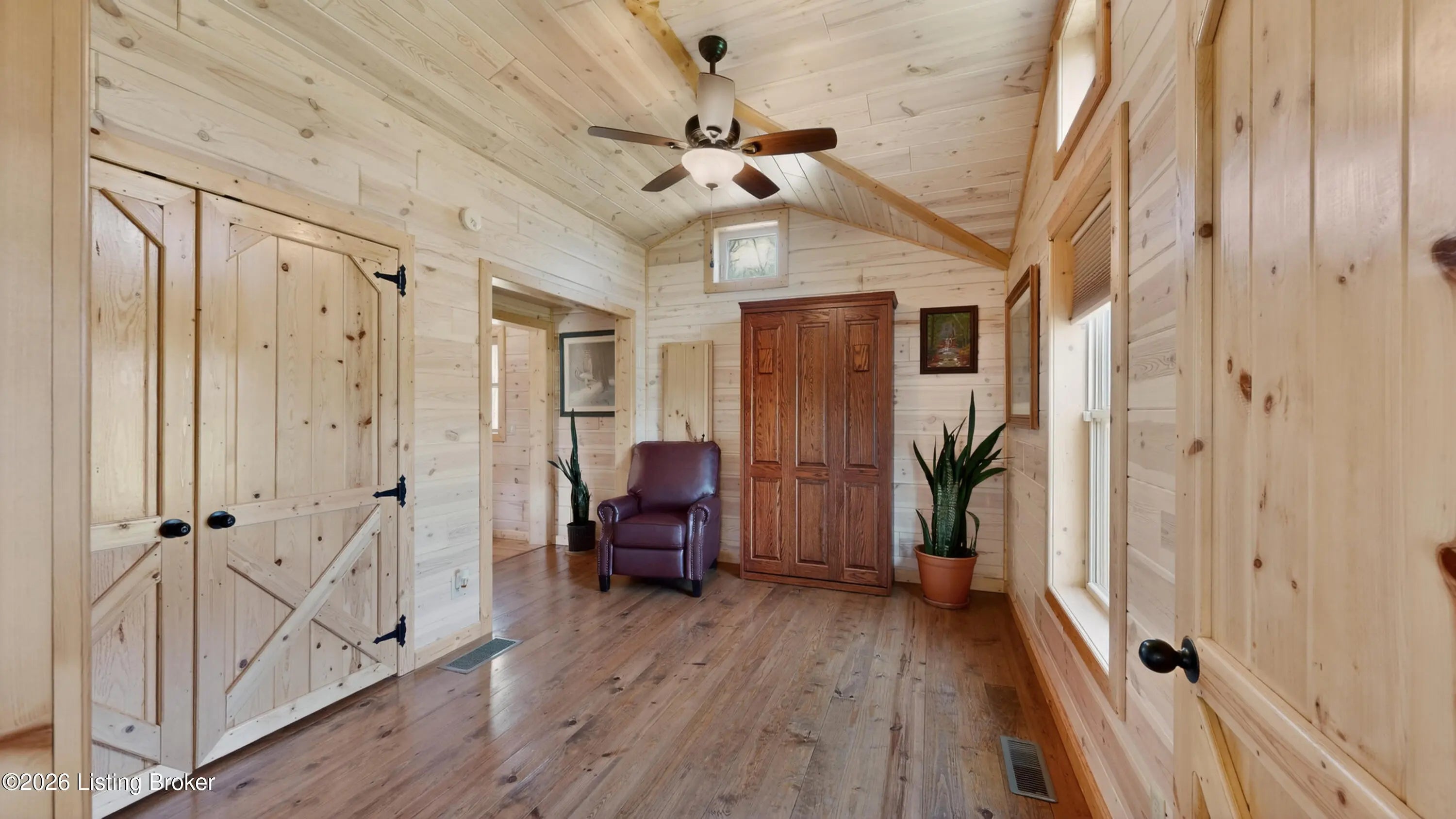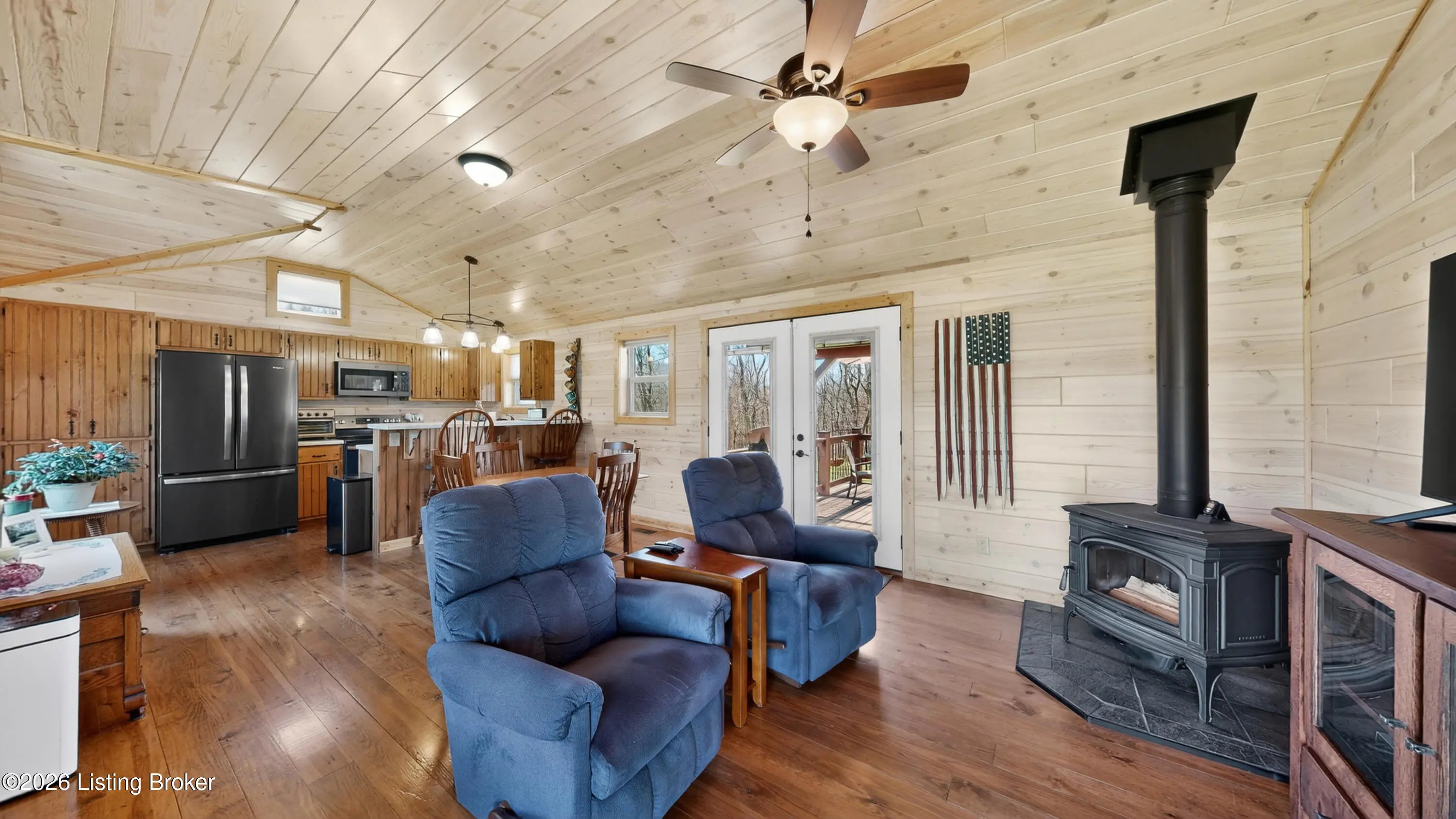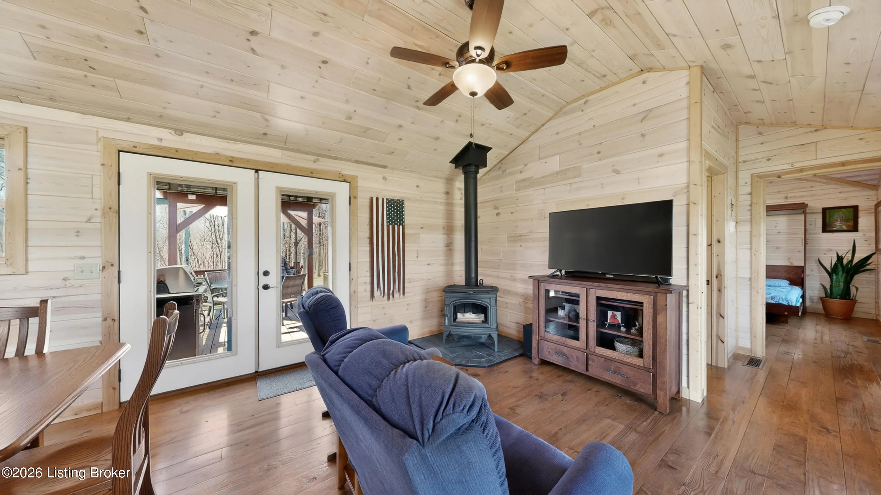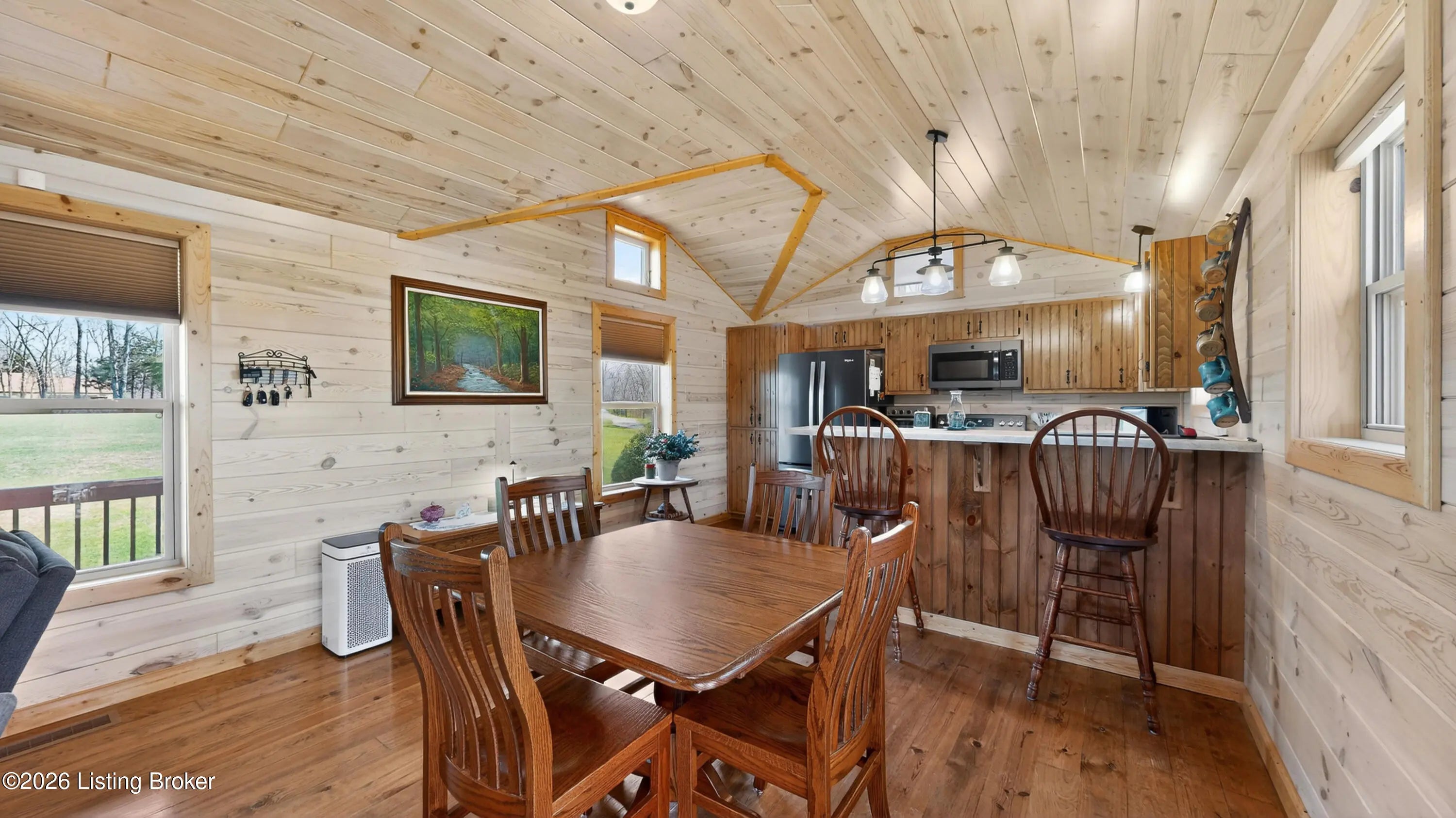 Custom Amish-Built Cabin on 7.4 Wooded Acres with Creek Access, 3-Car Barn, and a Hot Tub Off the Back Deck. This property started as raw land and a vision. What exists today is a custom Amish-built cabin retreat that took years to get right, with zero shortcuts along the way. The 1-bedroom, 1-bath cabin lives entirely on one level, including laundry, making daily life here genuinely easy. The den adds a murphy bed, giving the cabin real flexibility for guests without sacrificing the room's everyday function. French doors off the main living area open directly onto a deck where the hot tub sits framed by the woods. Trees were selectively cleared behind the cabin to establish a grass clearing, and the result is a backyard that pulls birds, deer, and abundant wildlife in close...... Sit long enough and the show comes to you. The upgraded HVAC system keeps the cabin comfortable year-round, and a whole-house generator backed by a seller-owned 500-gallon underground propane tank means power and heat are never a concern. No tank rental, no monthly fees on your fuel supply. That transfers with the sale. Starlink delivers full broadband anywhere on the property. SimpliSafe handles security. The lower level adds a reinforced safe room, dedicated office space, and clean mechanical access. The sellers engineered this land from the ground up. A complete water management system was designed and installed, including grading, French gutters, and strategically placed farm faucets throughout the acreage. A dedicated wood processing area manages the natural timber that comes down on 7.4 mostly wooded acres and keeps seasoned firewood stocked for seasons ahead. The 3-car barn is built to the same standard as everything else here. The floor is coated in Polyurea, installed in 2021 with a lifetime warranty. Polyurea outperforms epoxy in every meaningful category: 20 times more flexible, crack-resistant as the concrete moves with the seasons, and impervious to the chemicals and moisture a working barn sees daily. It's the kind of detail that tells you how this entire property was approached. Direct access to a 6-mile creek corridor completes the picture. It shows in person in ways photographs simply cannot capture.
