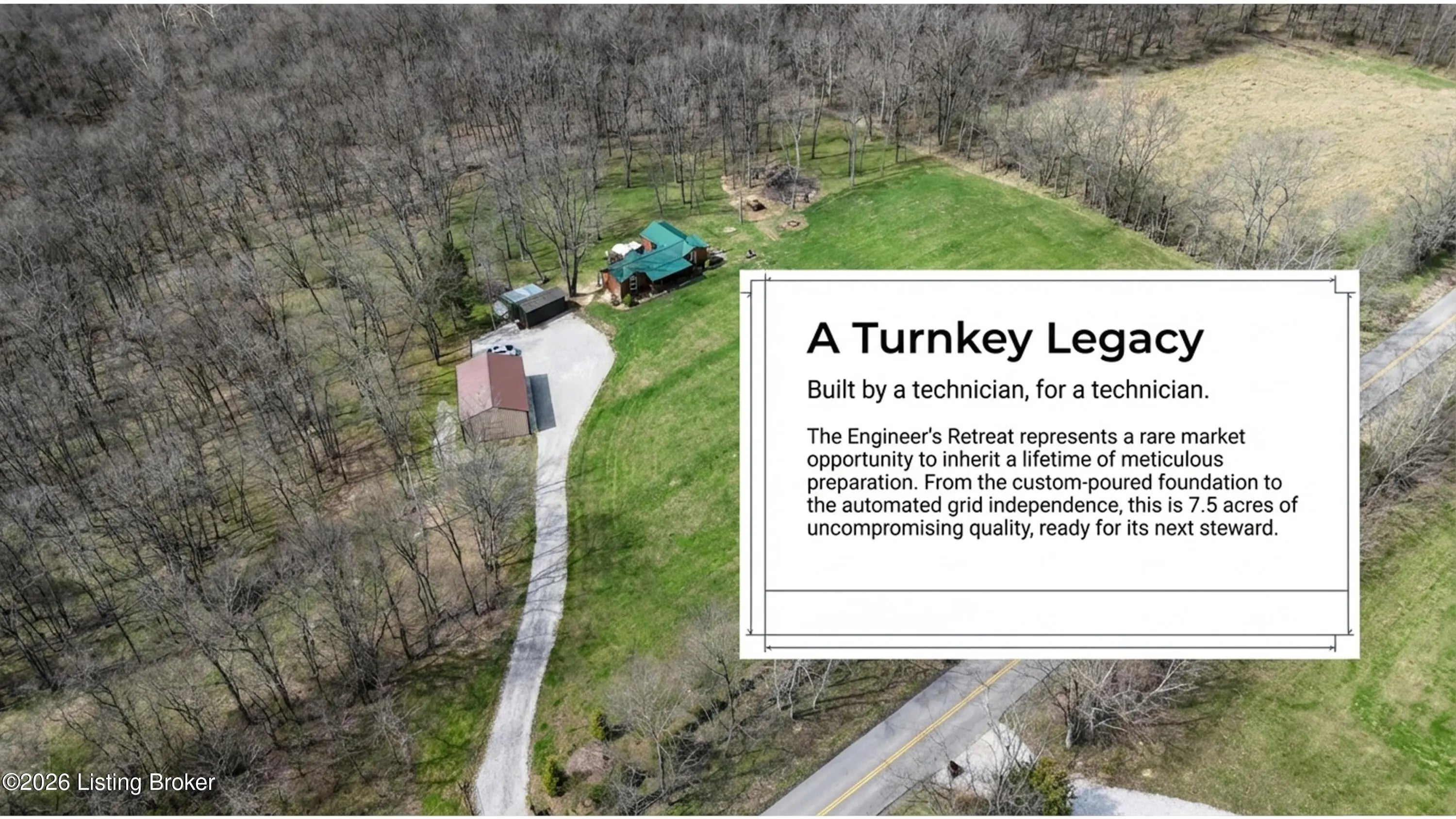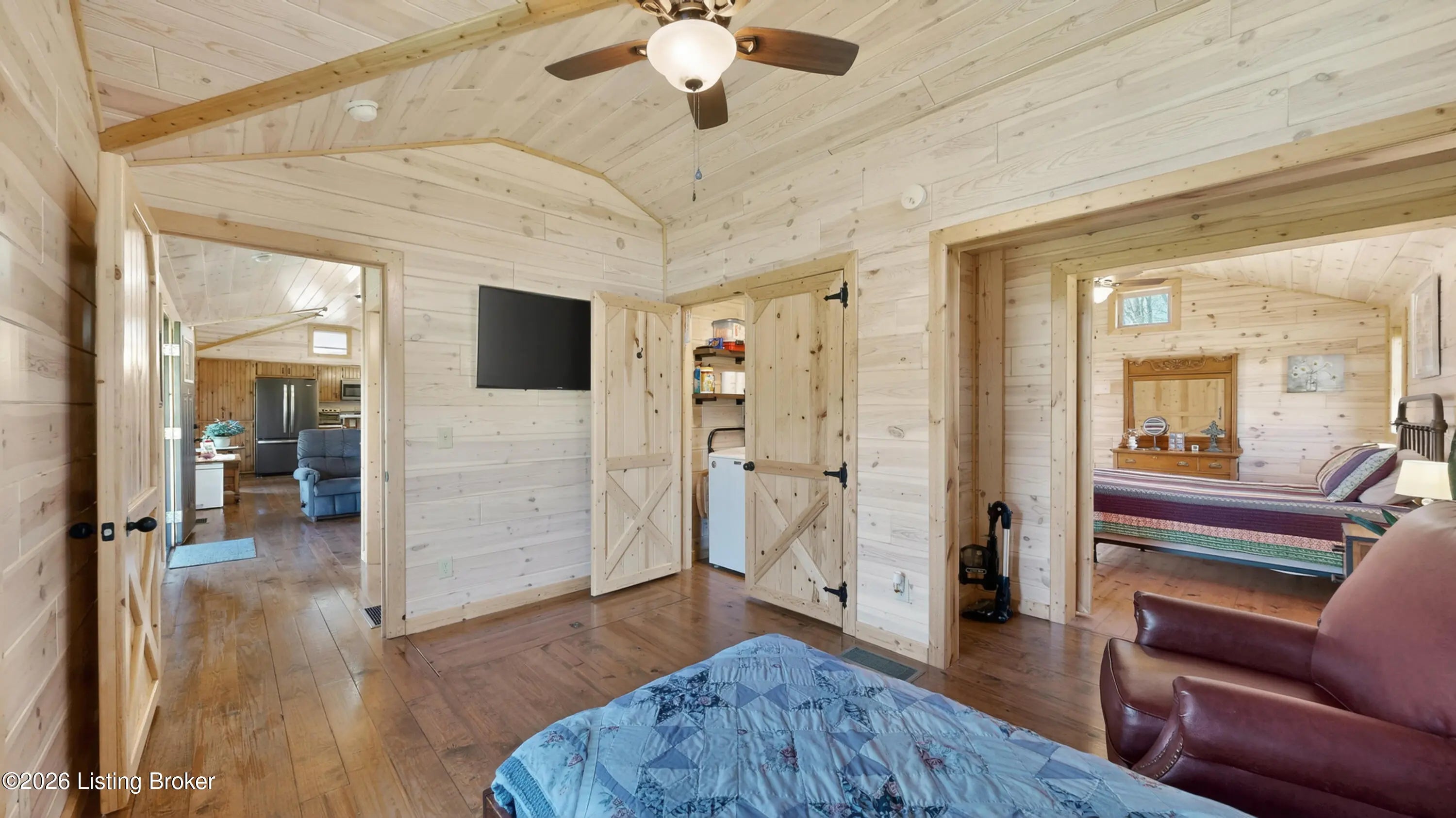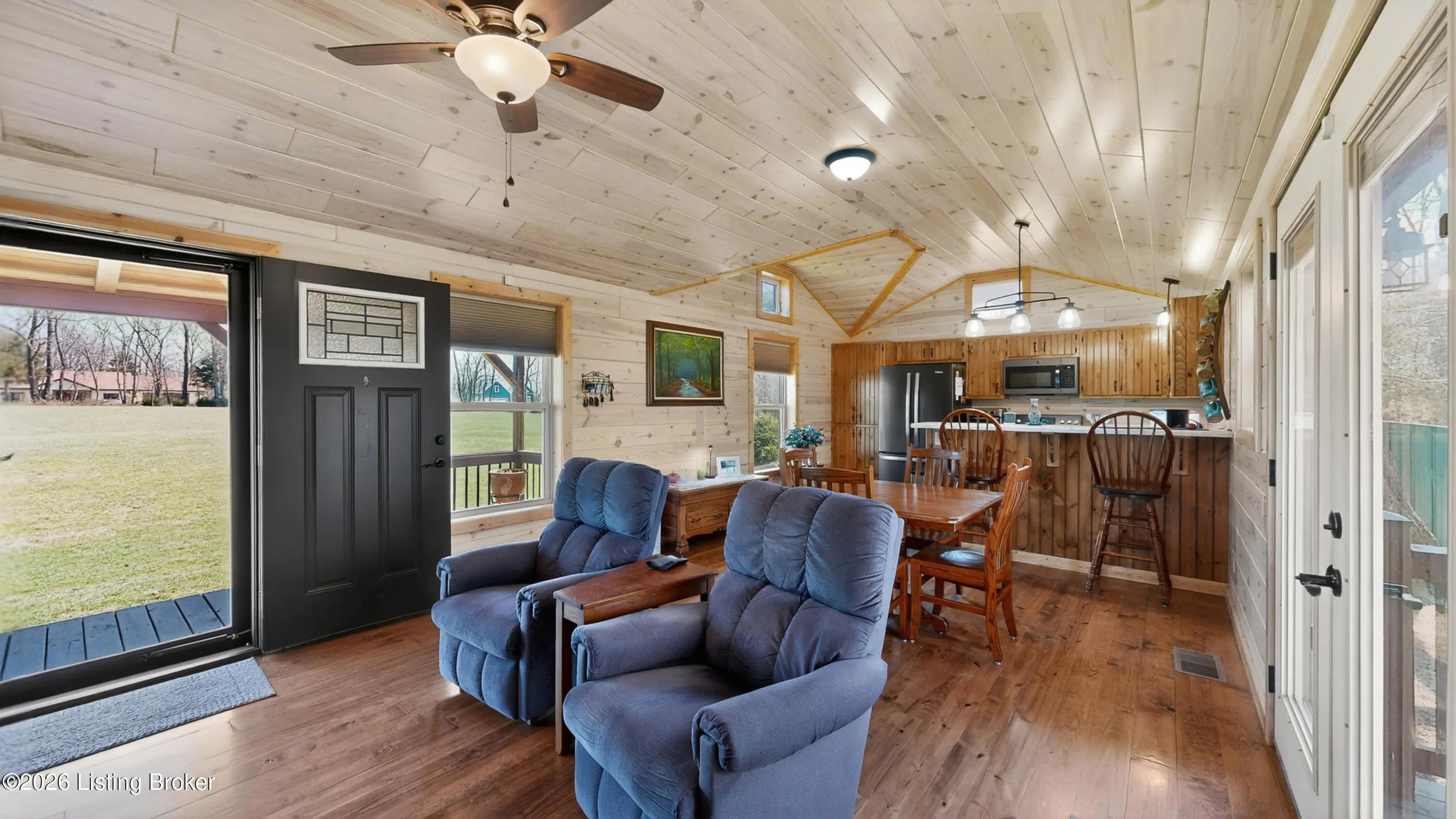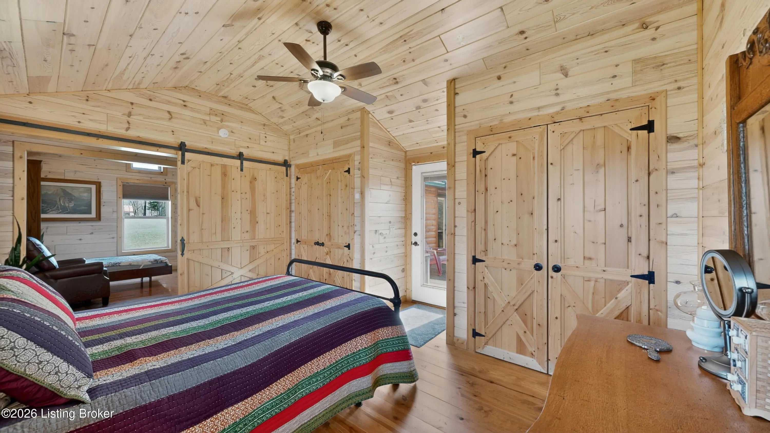 Custom Amish-Built Cabin on 7.4 Wooded Acres with Creek Access, 3-Car Barn, and a Hot Tub Off the Back Deck. This property started as raw land and a vision. What exists today is a custom Amish-built cabin retreat that took years to get right, with zero shortcuts along the way. The 1-bedroom, 1-bath cabin lives entirely on one level, including laundry, making daily life here genuinely easy. The den adds a murphy bed, giving the cabin real flexibility for guests without sacrificing the room's everyday function. French doors off the main living area open directly onto a deck where the hot tub sits framed by the woods. Trees were selectively cleared behind the cabin to establish a grass clearing, and the result is a backyard that pulls birds, deer, and abundant wildlife in close...... Sit long enough and the show comes to you. The upgraded HVAC system keeps the cabin comfortable year-round, and a whole-house generator backed by a seller-owned 500-gallon underground propane tank means power and heat are never a concern. No tank rental, no monthly fees on your fuel supply. That transfers with the sale. Starlink delivers full broadband anywhere on the property. SimpliSafe handles security. The lower level adds a reinforced safe room, dedicated office space, and clean mechanical access. The sellers engineered this land from the ground up. A complete water management system was designed and installed, including grading, French gutters, and strategically placed farm faucets throughout the acreage. A dedicated wood processing area manages the natural timber that comes down on 7.4 mostly wooded acres and keeps seasoned firewood stocked for seasons ahead. The 3-car barn is built to the same standard as everything else here. The floor is coated in Polyurea, installed in 2021 with a lifetime warranty. Polyurea outperforms epoxy in every meaningful category: 20 times more flexible, crack-resistant as the concrete moves with the seasons, and impervious to the chemicals and moisture a working barn sees daily. It's the kind of detail that tells you how this entire property was approached. Direct access to a 6-mile creek corridor completes the picture. It shows in person in ways photographs simply cannot capture.