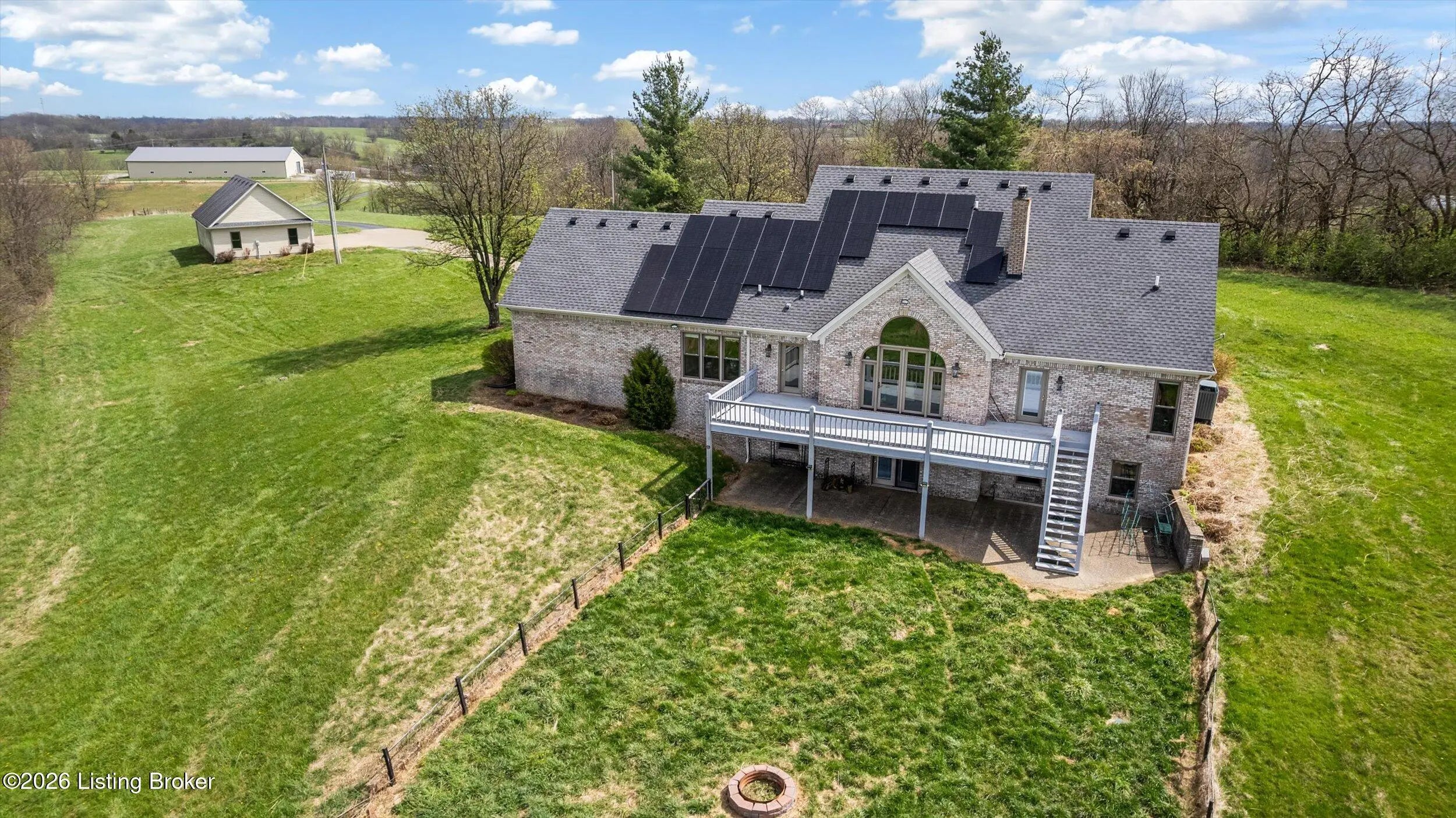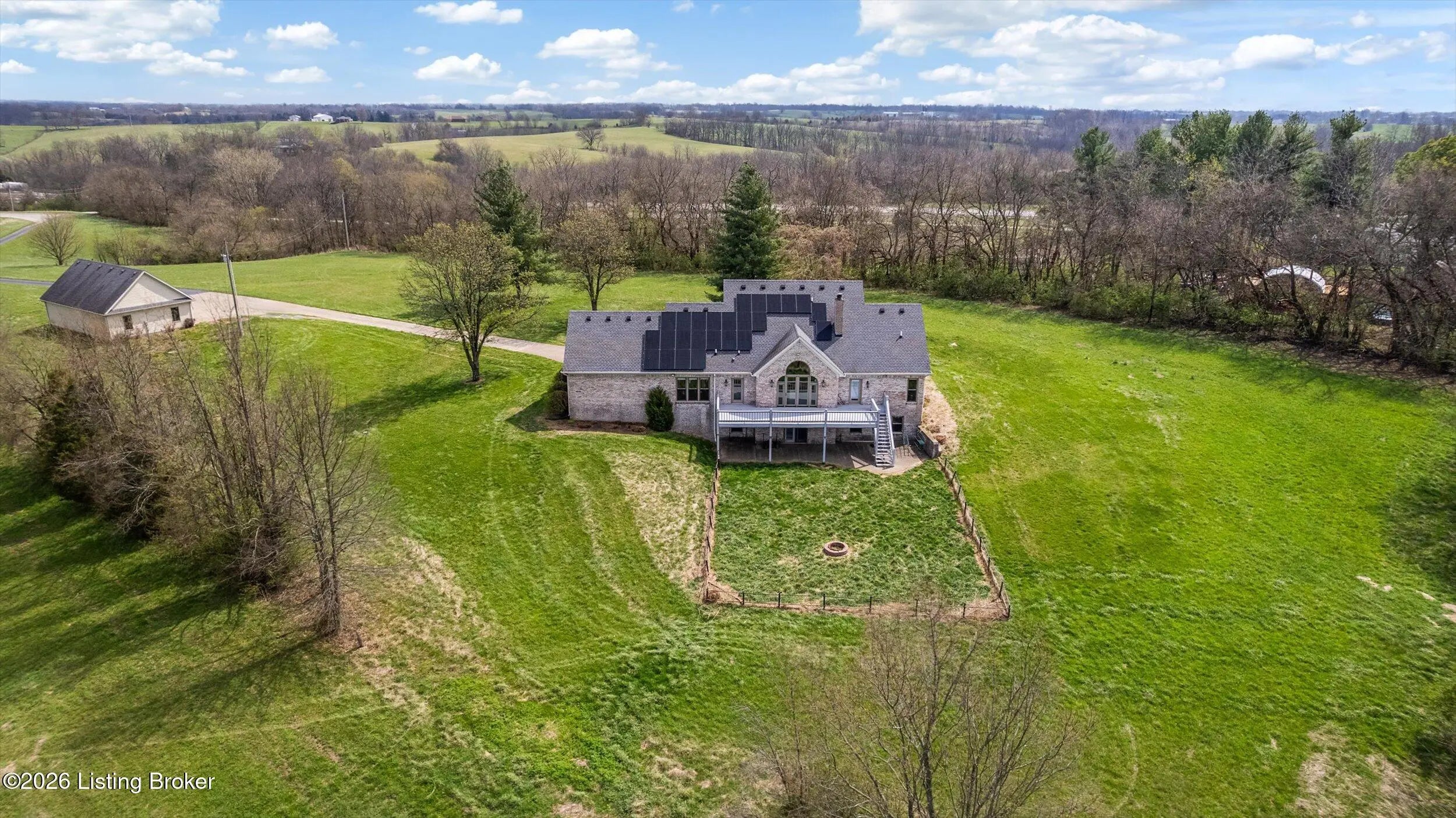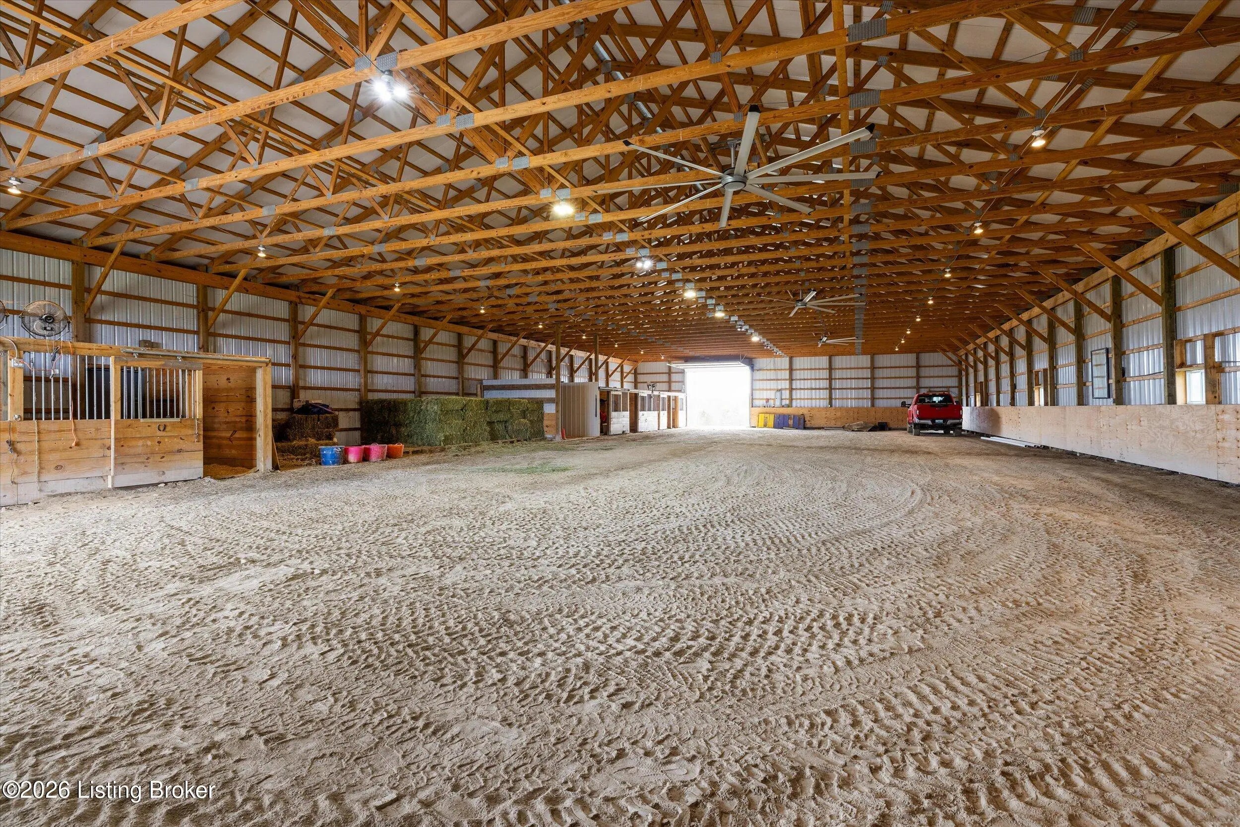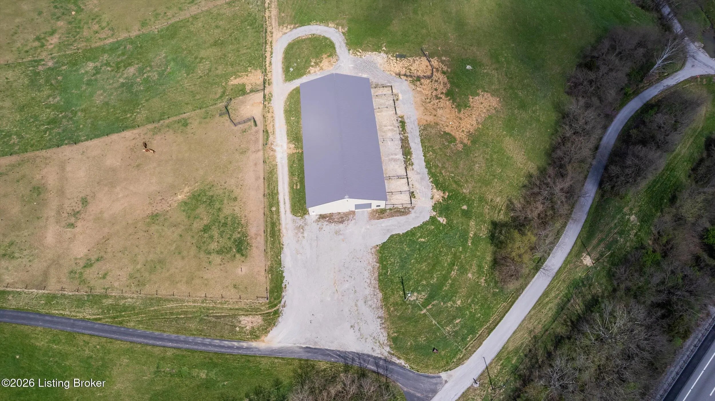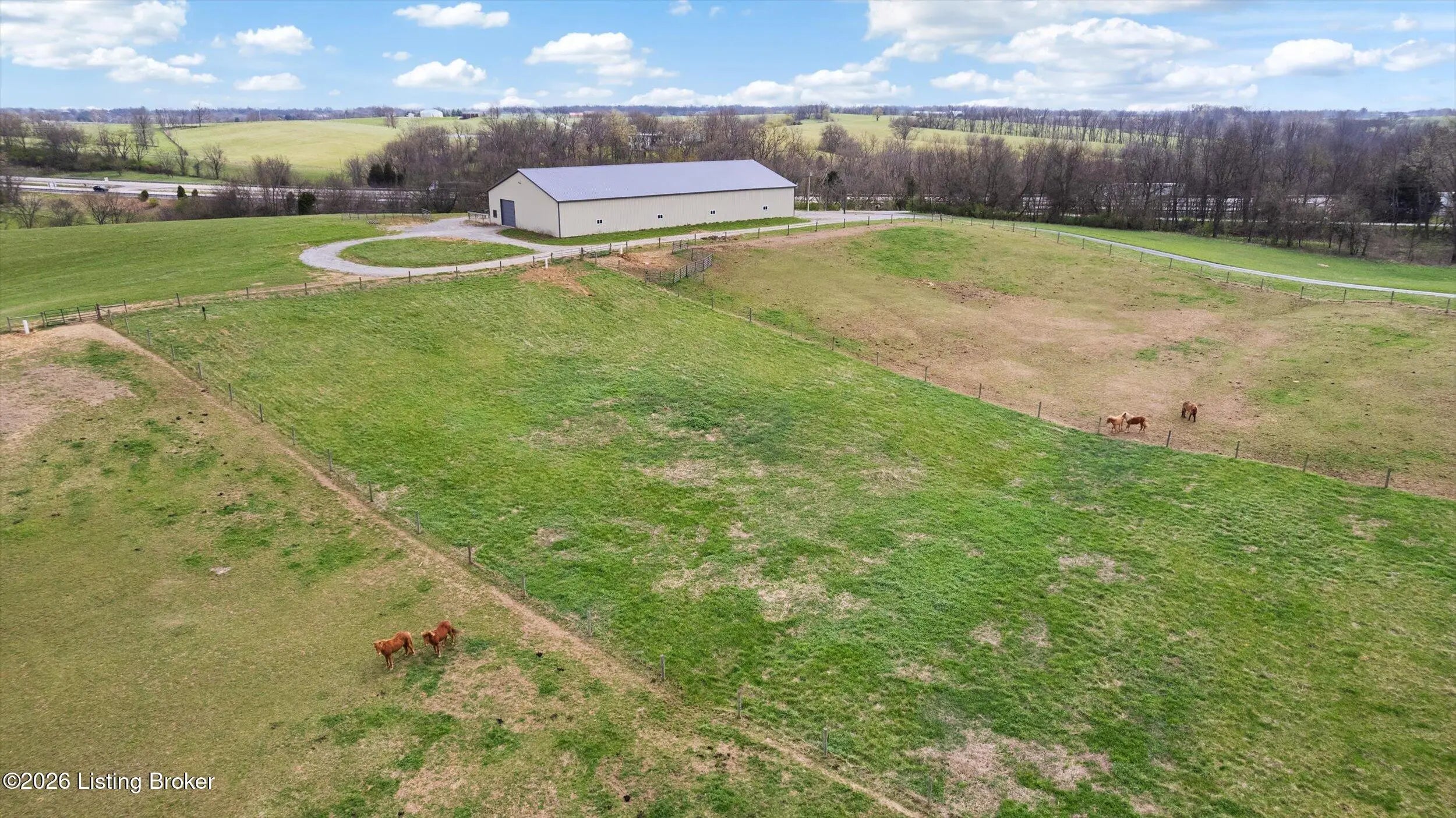 Your Kentucky horse farm sanctuary is here. Nestled just minutes off I-71 at Exit 34 in the heart of Henry County, 101 Frontage Road offers something genuinely rare in today's market - a turn-key equestrian operation on nearly 60 acres of rolling Kentucky countryside, anchored by a custom-built home and a professional-grade training facility that has no equal in this corridor. Whether you are an active equestrian professional, a dedicated hobbyist, or simply someone seeking a private Kentucky estate with room to breathe, this property delivers every element of that life - ready from day one. The Home. Custom-built in 1995 with brick veneer construction, this 1.5-story home offers 2,564 square feet above grade and an additional 1,172 square feet of finished walkout basement living space, totaling 3,736 finished square feet on three levels. The main floor is designed for how horse owners actually live - with a first-floor primary suite, first-floor laundry, and an open vaulted great room anchored by a wood-burning fireplace. The kitchen has been thoughtfully updated with quartz countertops, a gas cooktop prep island, and full stainless appliance package. The formal dining room is ideal for gatherings. The primary en-suite bath features a walk-in shower, whirlpool tub, and double vanities with marble countertops. The second level provides two spacious bedrooms with built-in window seats, walk-in closets, and a shared Jack-and-Jill bath. The finished walkout lower level extends the living experience with a family room featuring a second fireplace, an exercise room complete with hot tub, a private safe room with additional secure storage, a full bathroom, and a workshop area. Step outside to a 456-square-foot deck, a 440-square-foot covered front porch, and a covered lower-level patio overlooking the property. Recent Updates. The current owners have invested substantially in this property since purchase. New windows throughout - Sun Windows brand with fully transferable warranty - plus new carpet provide a fresh interior presentation. Solar panels have been added to reduce energy costs, and an air scrubber has been installed to address Ohio Valley air quality for any family members with allergy sensitivities. Warranty information for both conveys with the property. A whole-home generator hook-up provides peace of mind during storm season. The home has been inspected by a professional relocation company inspector and passed. The septic system has been inspected and passed. The Equestrian Training Arena. Built new in 2024, this 166-foot by 66-foot metal building is the centerpiece of the equestrian operation and has no comparable in this market. At 8,976 square feet, it is a true professional-grade facility featuring two drive-through high-profile garage doors, six stalls with exterior Dutch doors, overhead lighting throughout, and a wash rack with both hot and cold water. Whether you are training, boarding, showing, or breeding, this arena is built and equipped to support it. The structure is fully insulated, has overhead lighting, three Big Ass fans, and is designed for daily working use year-round. The Land and Pasture System. The 59.33-acre property has been thoughtfully configured for serious equestrian use. A rotational grazing pasture system with approximately $35,000 invested features separated pastures with top-line electric fencing, a dedicated run for ease of movement between pastures and transport preparation, a separate pasture for stallion and breeding management, and frost-free water supply at the base of all pastures. A local farmer currently has a hay arrangement in place - supplying the property with free hay in exchange for access - a meaningful operational benefit that conveys with the sale. The detached three-car garage has had its left bay insulated, heated, and plumbed with water and 220-volt electrical service, making it easily convertible to additional horse stabling or an expanded equipment facility. Additional Improvements. The property includes a 30-by-30-foot traditional barn, a 10-by-20-foot loafing shed, and a 10-by-16-foot storage building. There is a pond on the property, wooded trails through the back acreage with additional riding paths beyond the perimeter, and a stand of mature black walnut timber with documented harvest potential. The property is fully perimeter-fenced with livestock fencing. There is one neighbor on the road with no new development in any direction. Location. Located just five miles directly off I-71 at Exit 34 in Campbellsburg, Kentucky, this property offers 45-minute access to Louisville, approximately one hour to Cincinnati, and convenient proximity to Lexington via I-64. The I-71 corridor position is particularly valuable for equestrian buyers who travel regularly to shows, breeding appointments, and veterinary facilities. Public water service is connected. The property is not located in a flood plain. The Opportunity. Properties like 101 Frontage Road do not appear often. A custom home in move-in condition, a professional equestrian training arena built new in 2024, nearly 60 acres with a complete operational pasture system, and immediate I-71 access - all in one offering. For the right buyer, this is not a project. It is a ready life, waiting.