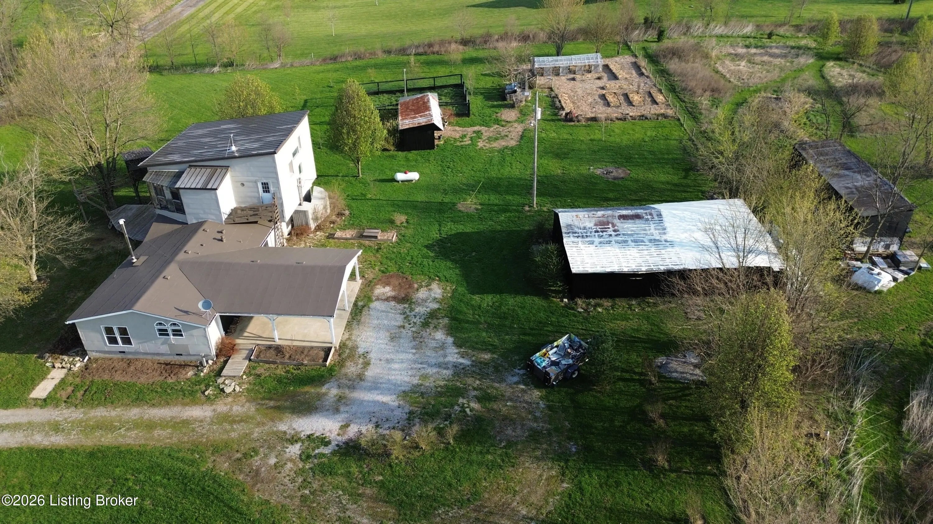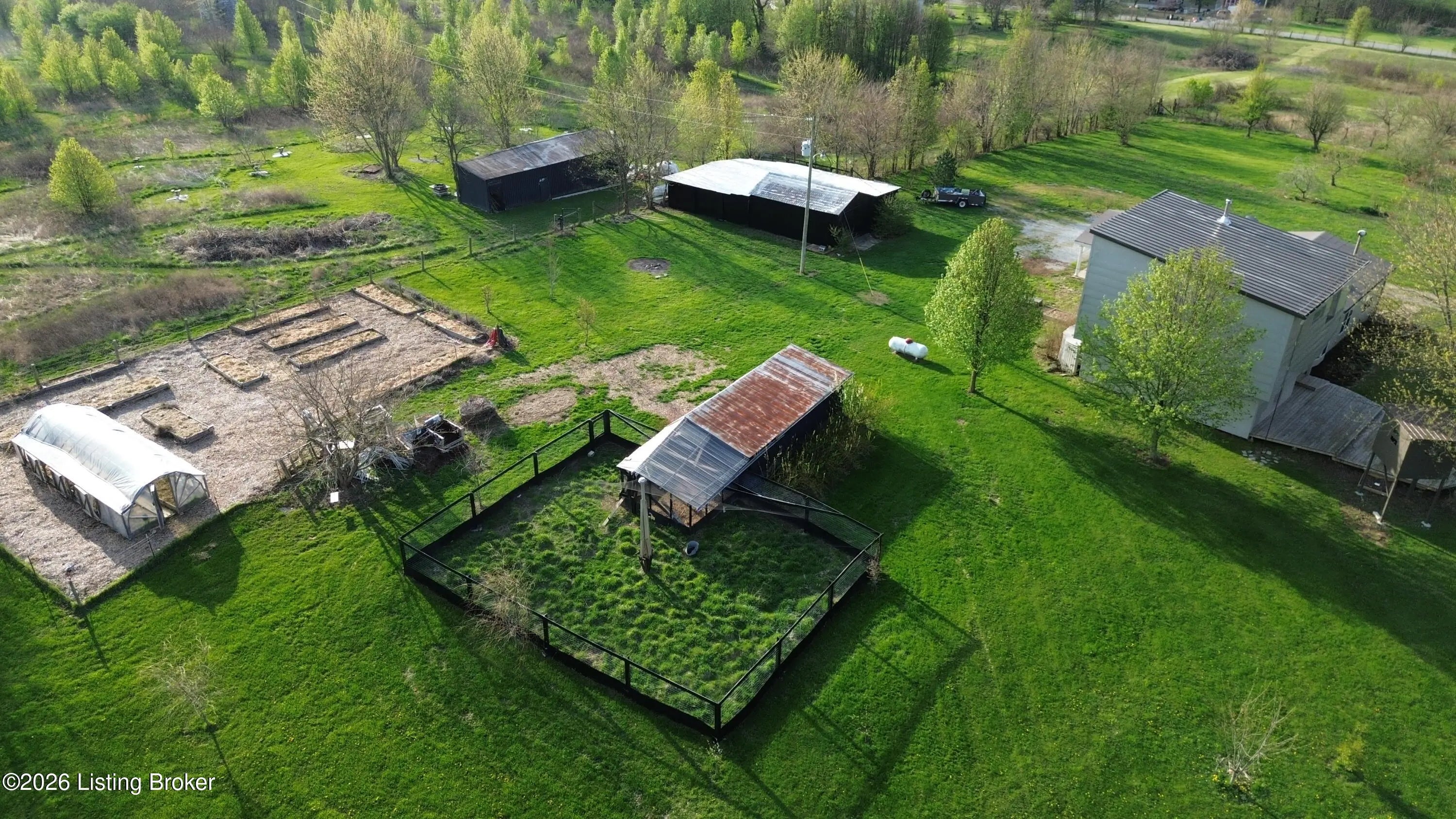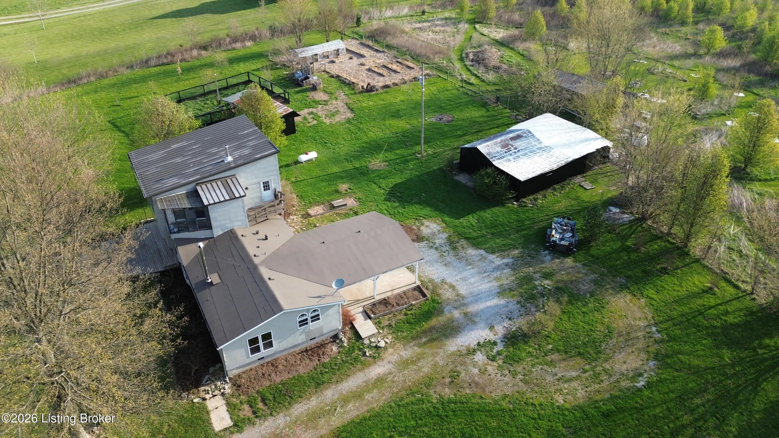 A Homesteader's dream on 7.49 picturesque acres in Eminence!! This beautifully maintained expanded ranch offers 3 bedrooms and 2.5 bathrooms, combining comfortable living with incredible self-sufficiency potential. Inside, you'll find hardwood floors throughout, tile in the bathrooms, and a thoughtfully designed kitchen featuring custom cabinetry, a large island, and unique concrete countertops. The versatile layout includes a partial second-story addition, ideal for a bonus room, office, or guest space. Step outside and experience everything this property has to offer, from the welcoming front deck with attached treehouse to the massive covered rear patio that can easily double as a carport. The land is fully equipped for a homesteading lifestyle, featuring three barns/outbuildings, a chicken coop with a fully fenced and netted run, and a polytunnel situated within a fenced garden complete with raised beds. The established bee yard/apiary includes 12 individual hive stands plus a multi-hive nuc stand. You'll also enjoy a small orchard with apple, peach, and pear trees, along with approximately 1.5 acres of natural blackberries on the land. With upgraded aluminum-clad siding and roofing for durability and low maintenance, plus a peaceful setting just minutes from town, this one-of-a-kind property offers the perfect blend of rural charm and modern comfort. Don't miss your chance to own this truly special retreat! Call or message me today to schedule your private showing before it's too late!!