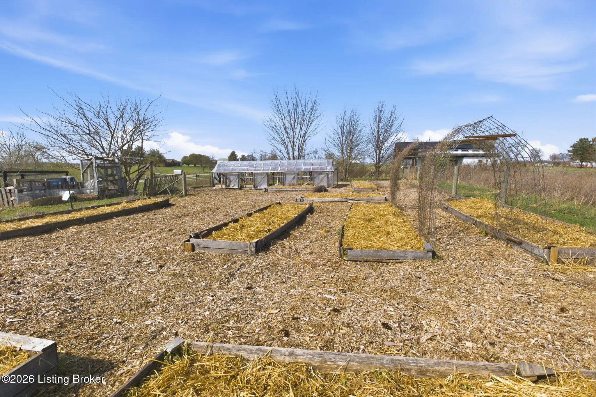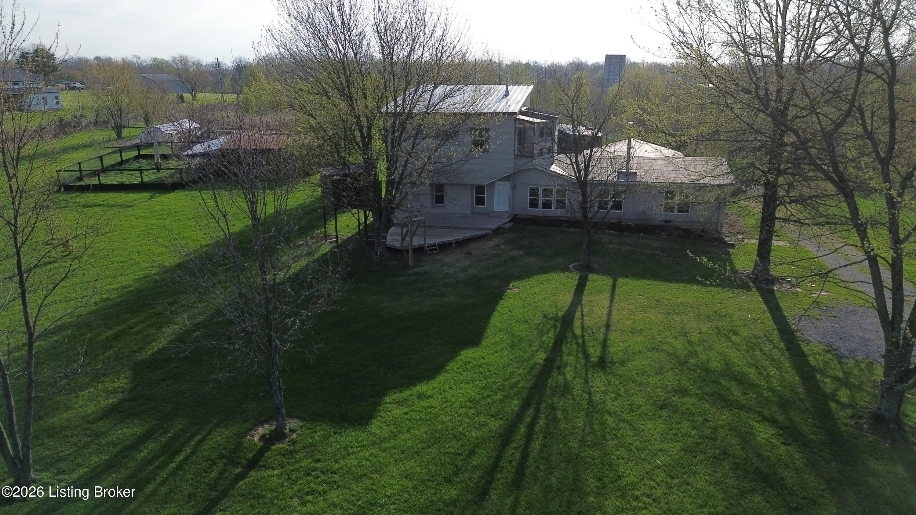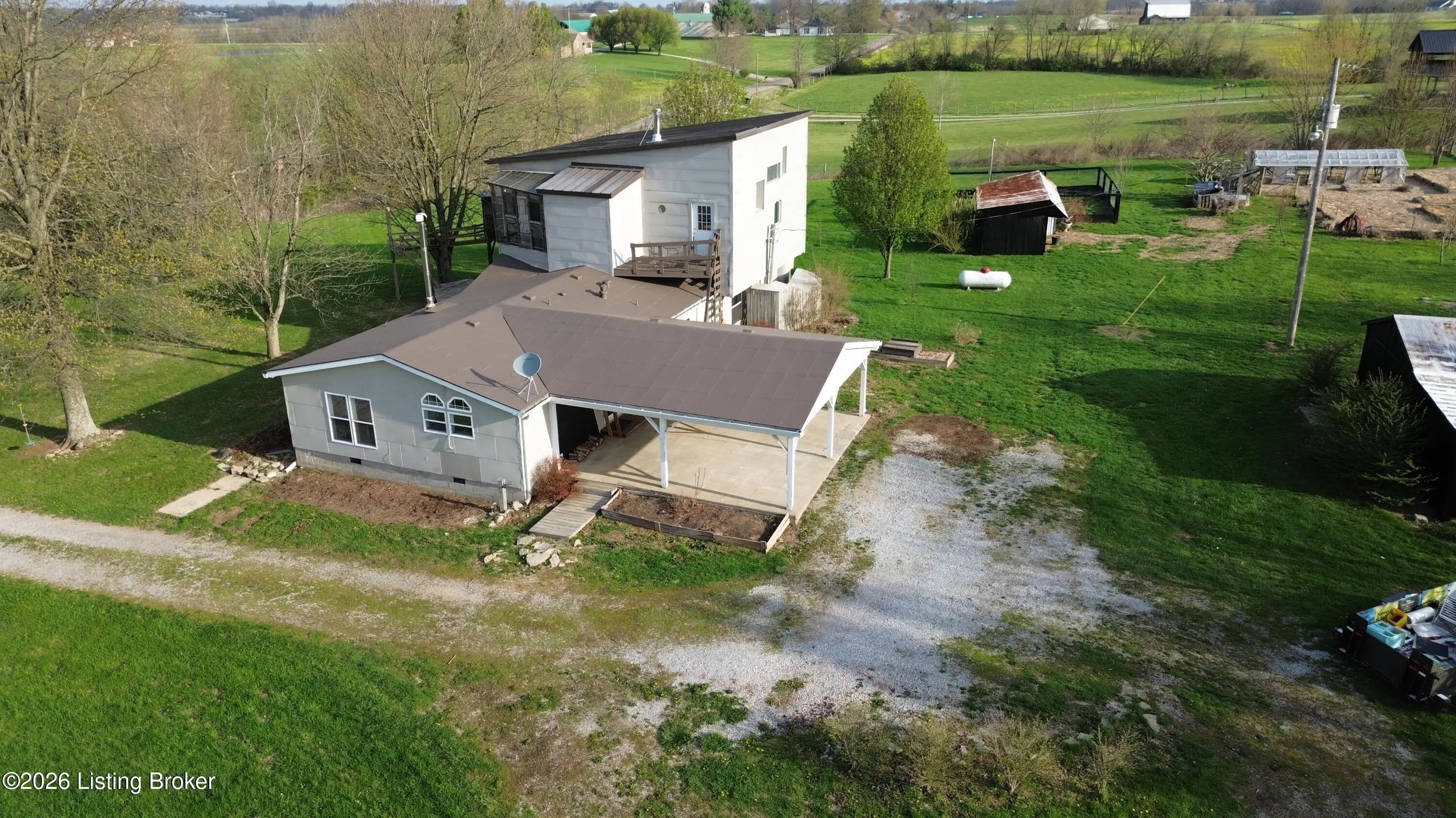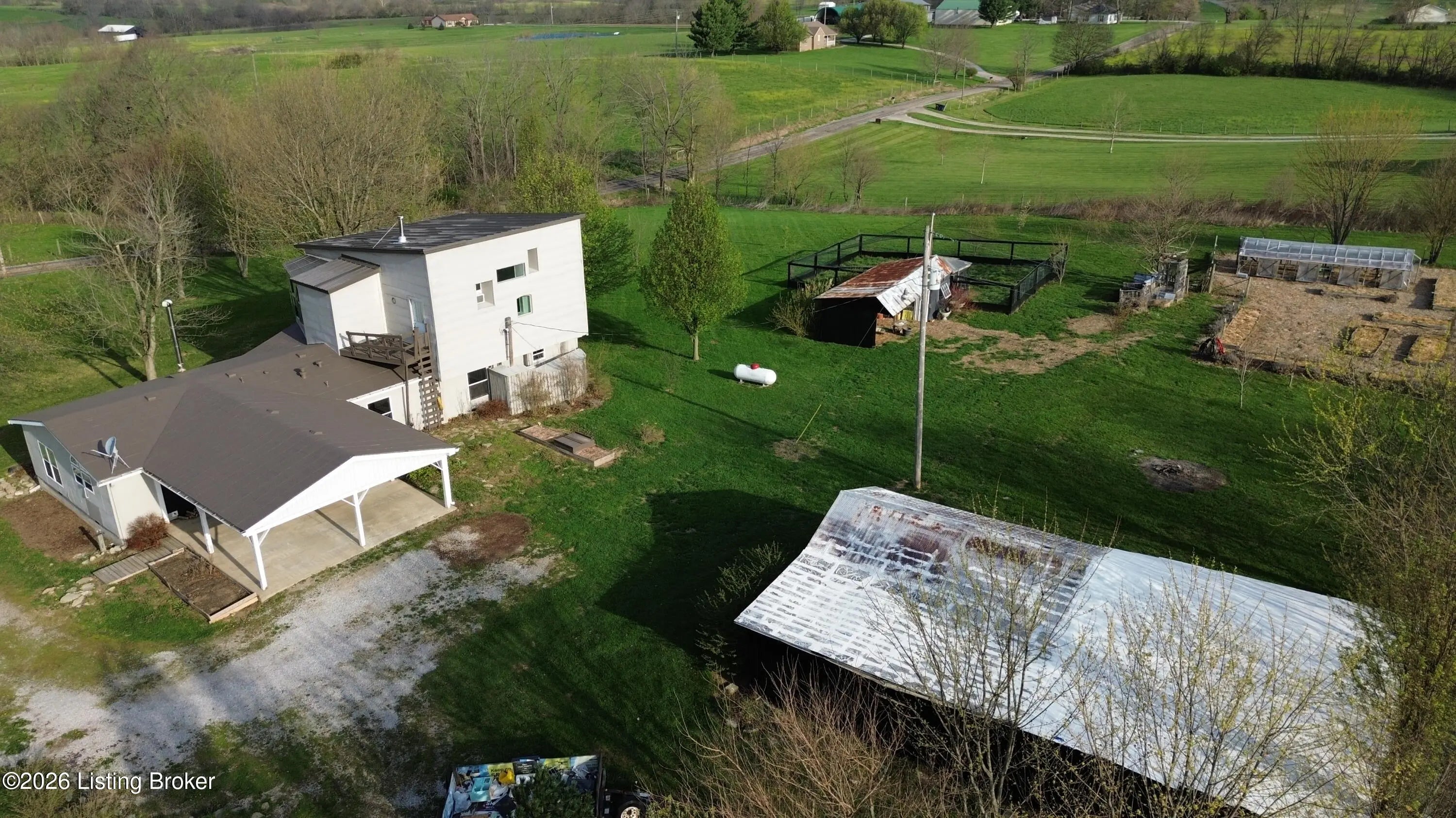A Homesteader's dream on 7.49 picturesque acres in Eminence!! This beautifully maintained expanded ranch offers 3 bedrooms and 2.5 bathrooms, combining comfortable living with incredible self-sufficiency potential. Inside, you'll find hardwood floors throughout, tile in the bathrooms, and a thoughtfully designed kitchen featuring custom cabinetry, a large island, and unique concrete countertops. The versatile layout includes a partial second-story addition, ideal for a bonus room, office, or guest space. Step outside and experience everything this property has to offer, from the welcoming front deck with attached treehouse to the massive covered rear patio that can easily double as a carport. The land is fully equipped for a homesteading lifestyle, featuring three barns/outbuildings, a chicken coop with a fully fenced and netted run, and a polytunnel situated within a fenced garden complete with raised beds. The established bee yard/apiary includes 12 individual hive stands plus a multi-hive nuc stand. You'll also enjoy a small orchard with apple, peach, and pear trees, along with approximately 1.5 acres of natural blackberries on the land. With upgraded aluminum-clad siding and roofing for durability and low maintenance, plus a peaceful setting just minutes from town, this one-of-a-kind property offers the perfect blend of rural charm and modern comfort. Don't miss your chance to own this truly special retreat! Call or message me today to schedule your private showing before it's too late!!