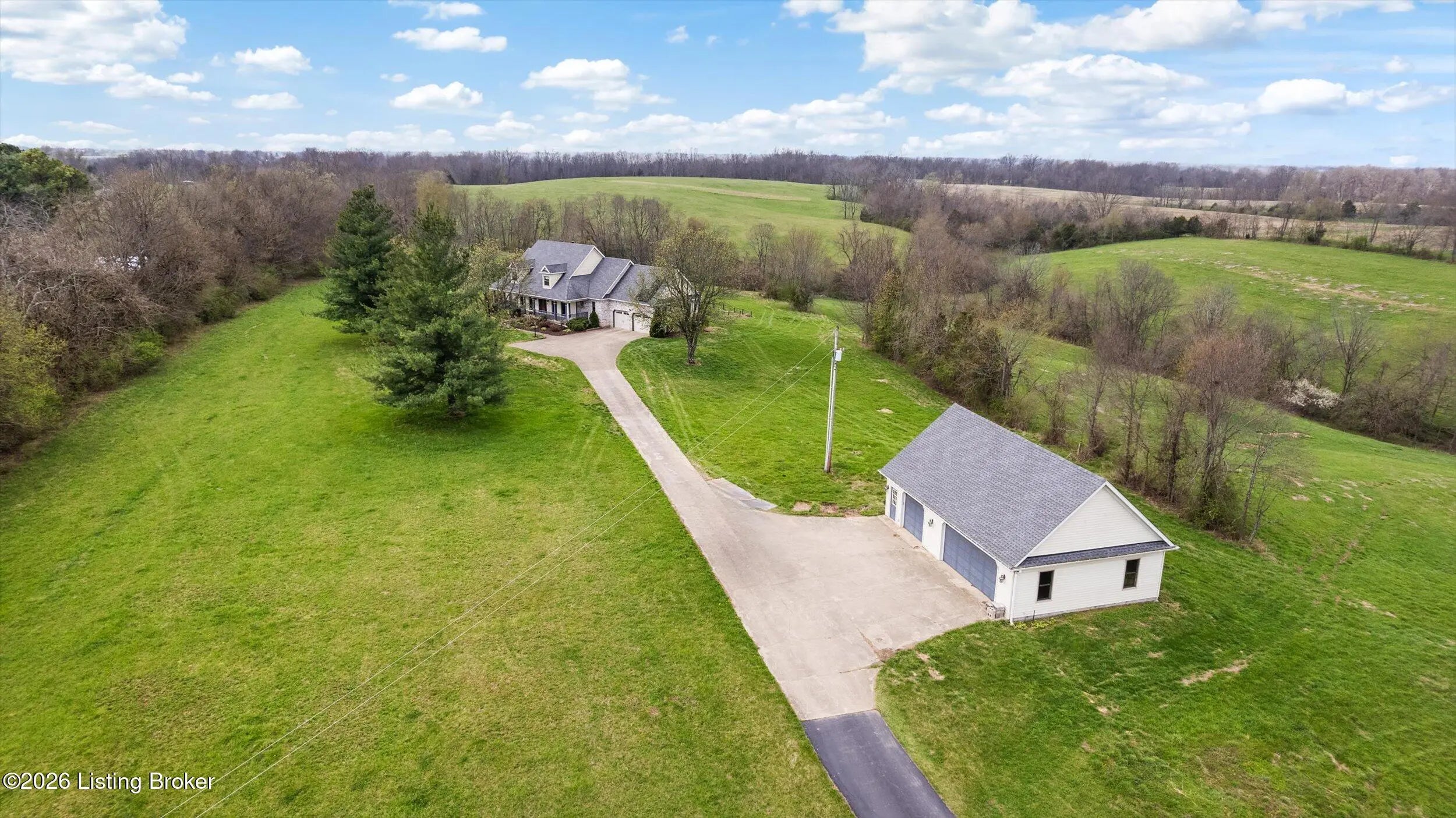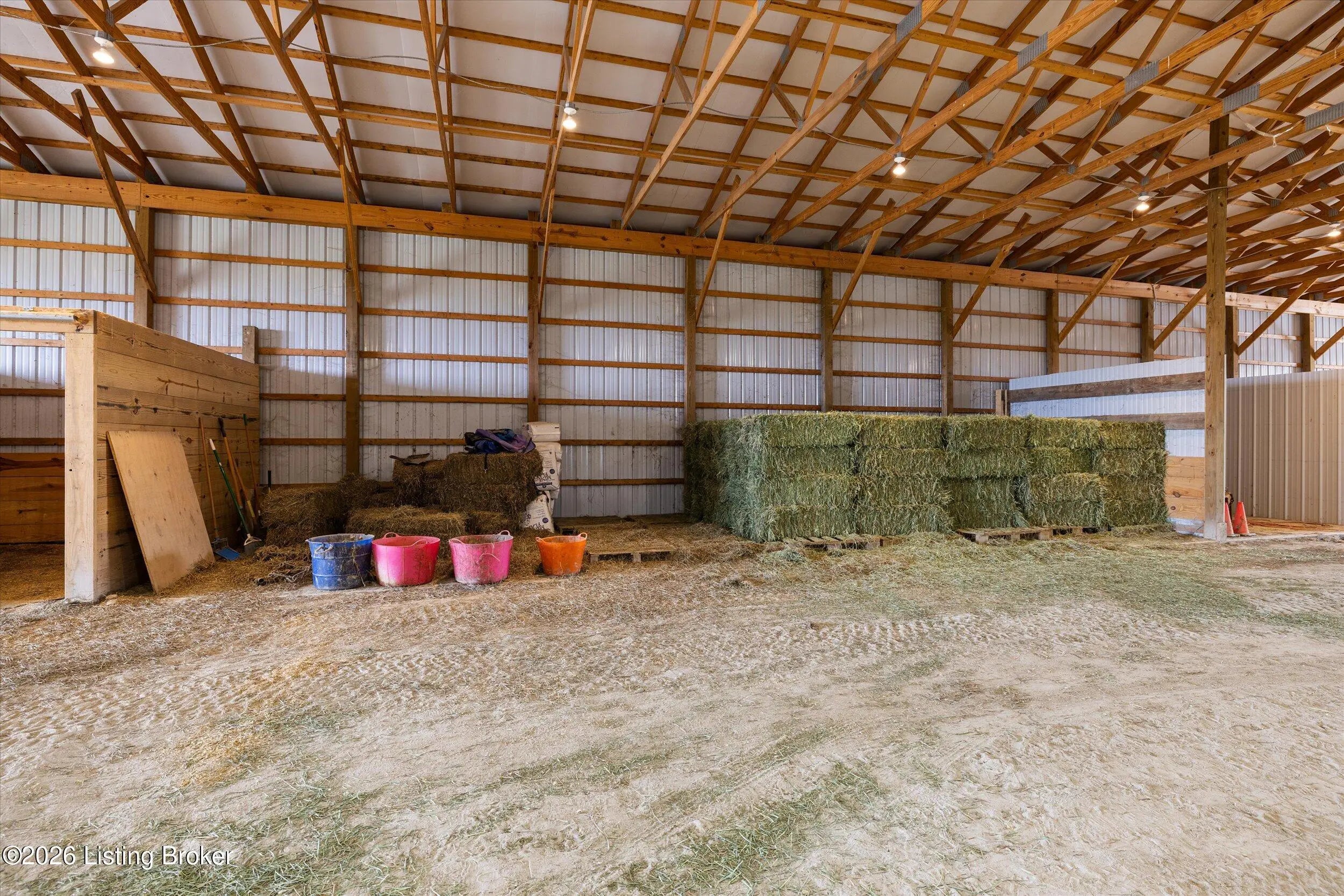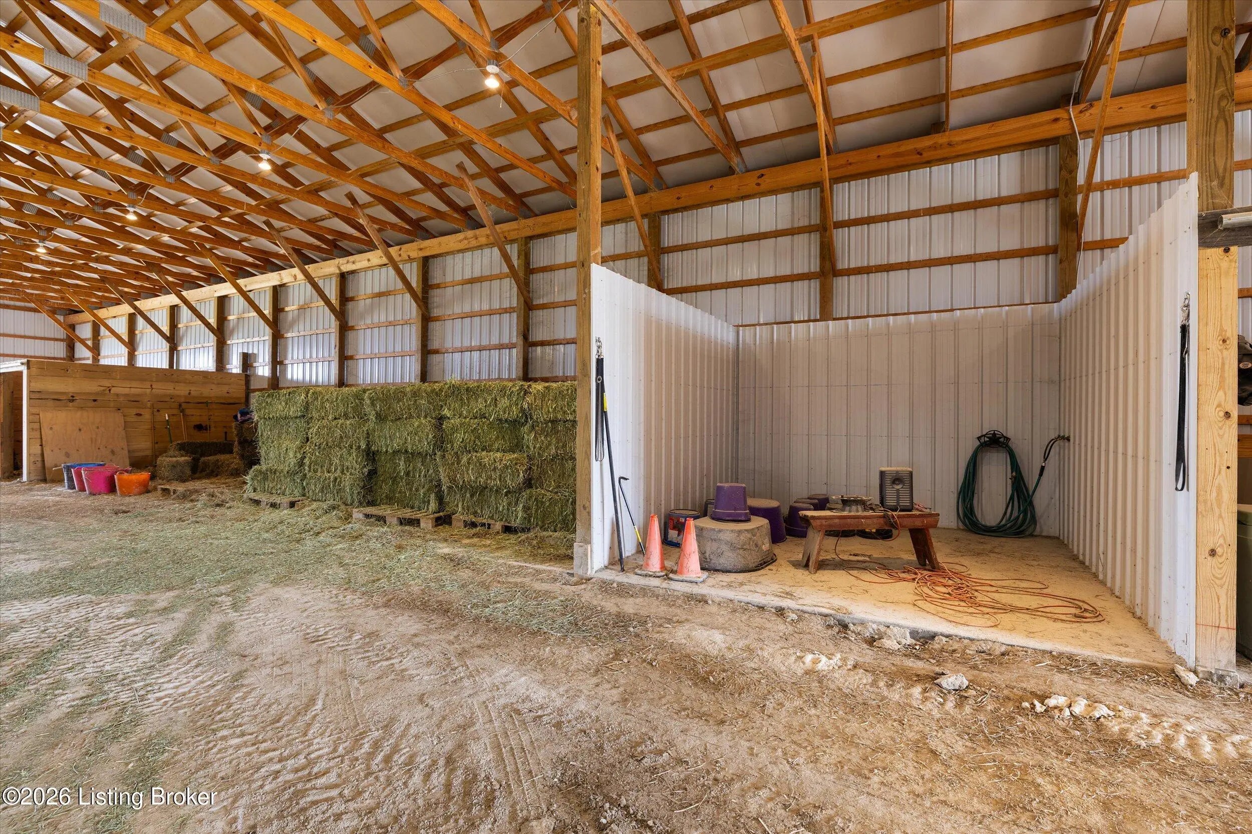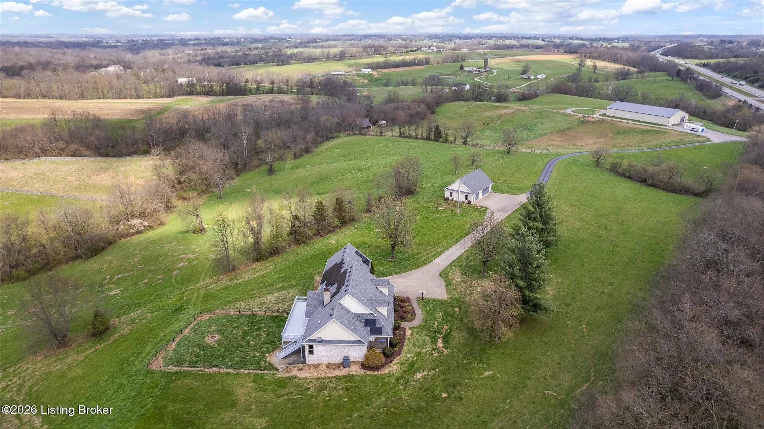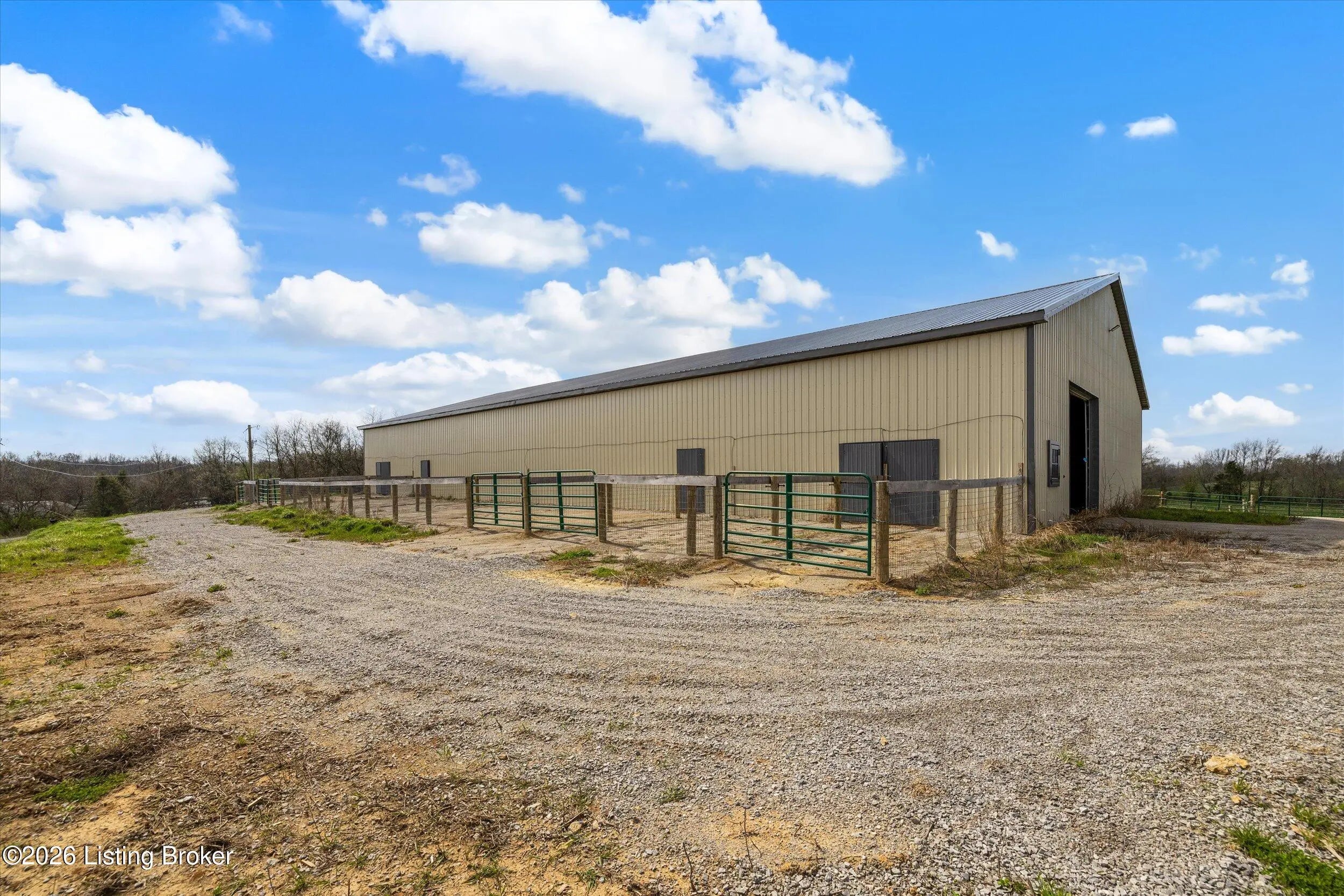 Your Kentucky horse farm sanctuary is here. Nestled just minutes off I-71 at Exit 34 in the heart of Henry County, 101 Frontage Road offers something genuinely rare in today's market - a turn-key equestrian operation on nearly 60 acres of rolling Kentucky countryside, anchored by a custom-built home and a professional-grade training facility that has no equal in this corridor. Whether you are an active equestrian professional, a dedicated hobbyist, or simply someone seeking a private Kentucky estate with room to breathe, this property delivers every element of that life - ready from day one. The Home. Custom-built in 1995 with brick veneer construction, this 1.5-story home offers 2,564 square feet above grade and an additional 1,172 square feet of finished walkout basement living space, totaling 3,736 finished square feet on three levels. The main floor is designed for how horse owners actually live - with a first-floor primary suite, first-floor laundry, and an open vaulted great room anchored by a wood-burning fireplace. The kitchen has been thoughtfully updated with quartz countertops, a gas cooktop prep island, and full stainless appliance package. The formal dining room is ideal for gatherings. The primary en-suite bath features a walk-in shower, whirlpool tub, and double vanities with marble countertops. The second level provides two spacious bedrooms with built-in window seats, walk-in closets, and a shared Jack-and-Jill bath. The finished walkout lower level extends the living experience with a family room featuring a second fireplace, an exercise room complete with hot tub, a private safe room with additional secure storage, a full bathroom, and a workshop area. Step outside to a 456-square-foot deck, a 440-square-foot covered front porch, and a covered lower-level patio overlooking the property. Recent Updates. The current owners have invested substantially in this property since purchase. New windows throughout - Sun Windows brand with fully transferable warranty - plus new carpet provide a fresh interior presentation. Solar panels have been added to reduce energy costs, and an air scrubber has been installed to address Ohio Valley air quality for any family members with allergy sensitivities. Warranty information for both conveys with the property. A whole-home generator hook-up provides peace of mind during storm season. The home has been inspected by a professional relocation company inspector and passed. The septic system has been inspected and passed. The Equestrian Training Arena. Built new in 2024, this 166-foot by 66-foot metal building is the centerpiece of the equestrian operation and has no comparable in this market. At 8,976 square feet, it is a true professional-grade facility featuring two drive-through high-profile garage doors, six stalls with exterior Dutch doors, overhead lighting throughout, and a wash rack with both hot and cold water. Whether you are training, boarding, showing, or breeding, this arena is built and equipped to support it. The structure is fully insulated, has overhead lighting, three Big Ass fans, and is designed for daily working use year-round. The Land and Pasture System. The 59.33-acre property has been thoughtfully configured for serious equestrian use. A rotational grazing pasture system with approximately $35,000 invested features separated pastures with top-line electric fencing, a dedicated run for ease of movement between pastures and transport preparation, a separate pasture for stallion and breeding management, and frost-free water supply at the base of all pastures. A local farmer currently has a hay arrangement in place - supplying the property with free hay in exchange for access - a meaningful operational benefit that conveys with the sale. The detached three-car garage has had its left bay insulated, heated, and plumbed with water and 220-volt electrical service, making it easily convertible to additional horse stabling or an expanded equipment facility. Additional Improvements. The property includes a 30-by-30-foot traditional barn, a 10-by-20-foot loafing shed, and a 10-by-16-foot storage building. There is a pond on the property, wooded trails through the back acreage with additional riding paths beyond the perimeter, and a stand of mature black walnut timber with documented harvest potential. The property is fully perimeter-fenced with livestock fencing. There is one neighbor on the road with no new development in any direction. Location. Located just five miles directly off I-71 at Exit 34 in Campbellsburg, Kentucky, this property offers 45-minute access to Louisville, approximately one hour to Cincinnati, and convenient proximity to Lexington via I-64. The I-71 corridor position is particularly valuable for equestrian buyers who travel regularly to shows, breeding appointments, and veterinary facilities. Public water service is connected. The property is not located in a flood plain. The Opportunity. Properties like 101 Frontage Road do not appear often. A custom home in move-in condition, a professional equestrian training arena built new in 2024, nearly 60 acres with a complete operational pasture system, and immediate I-71 access - all in one offering. For the right buyer, this is not a project. It is a ready life, waiting.