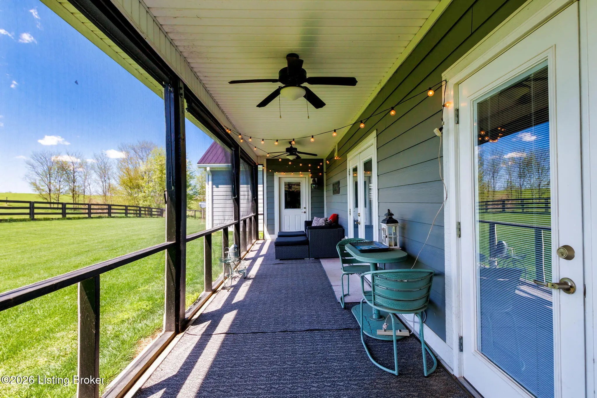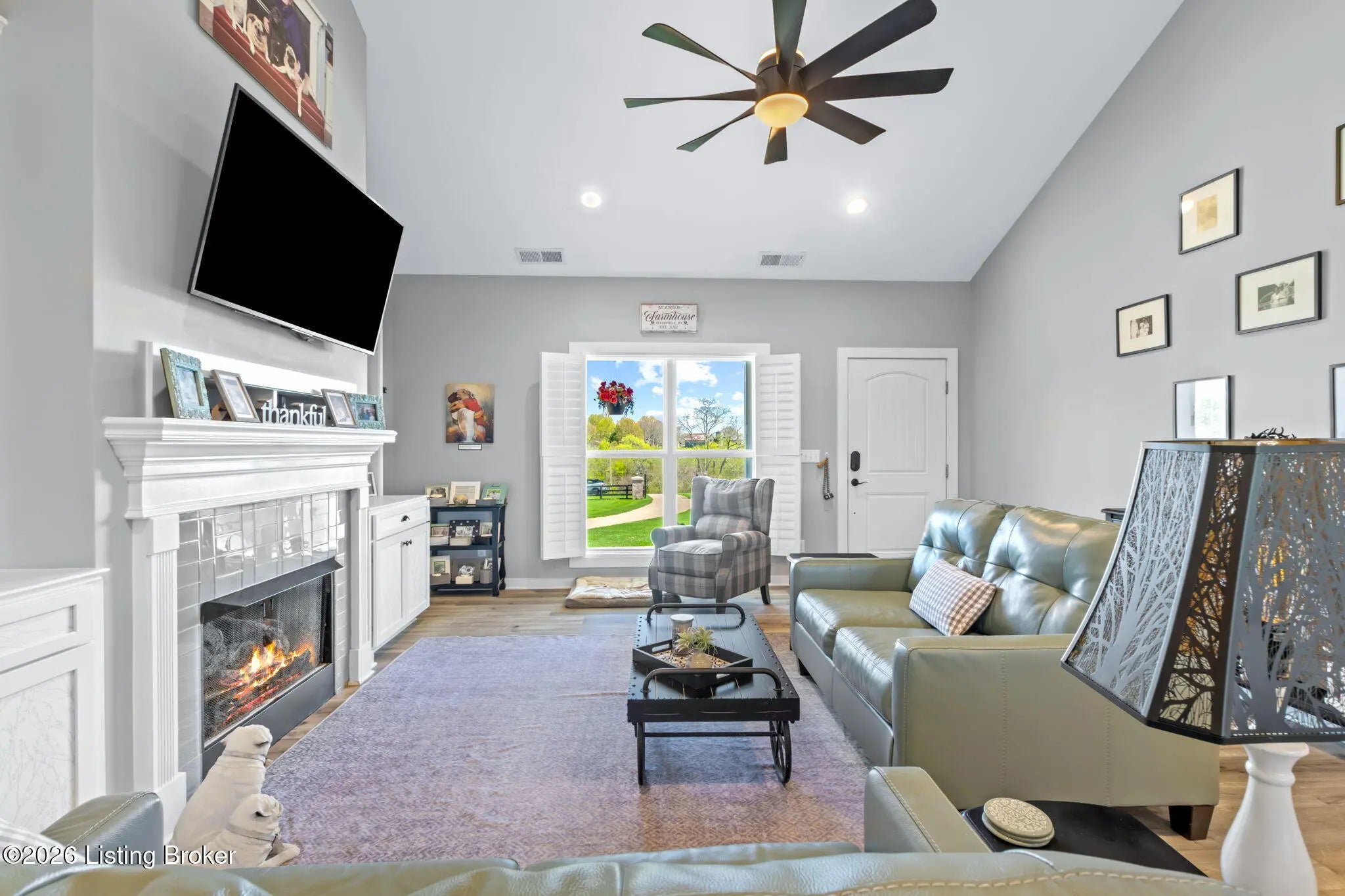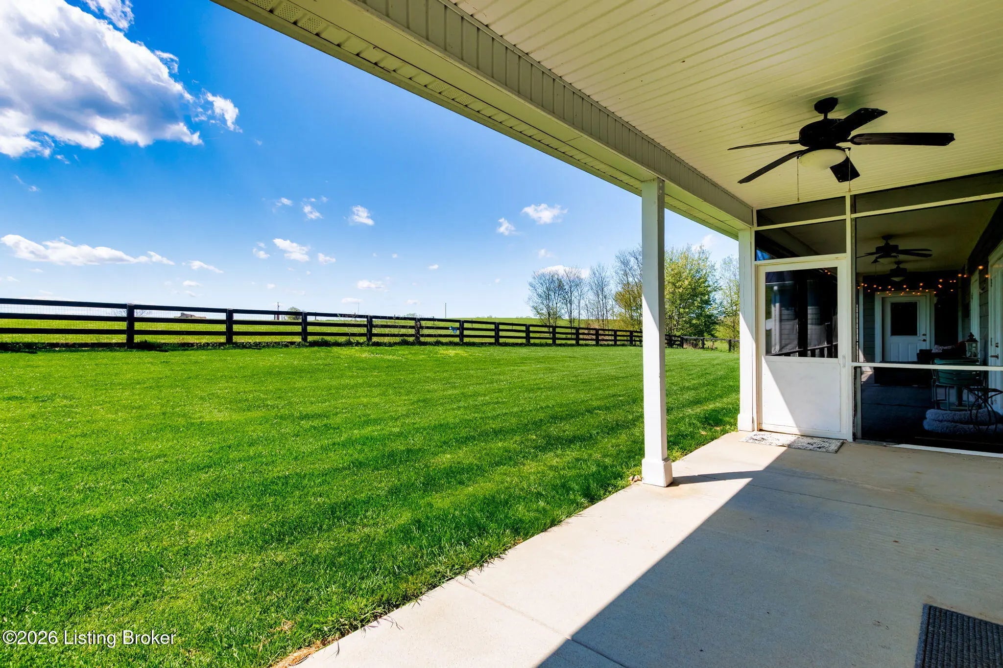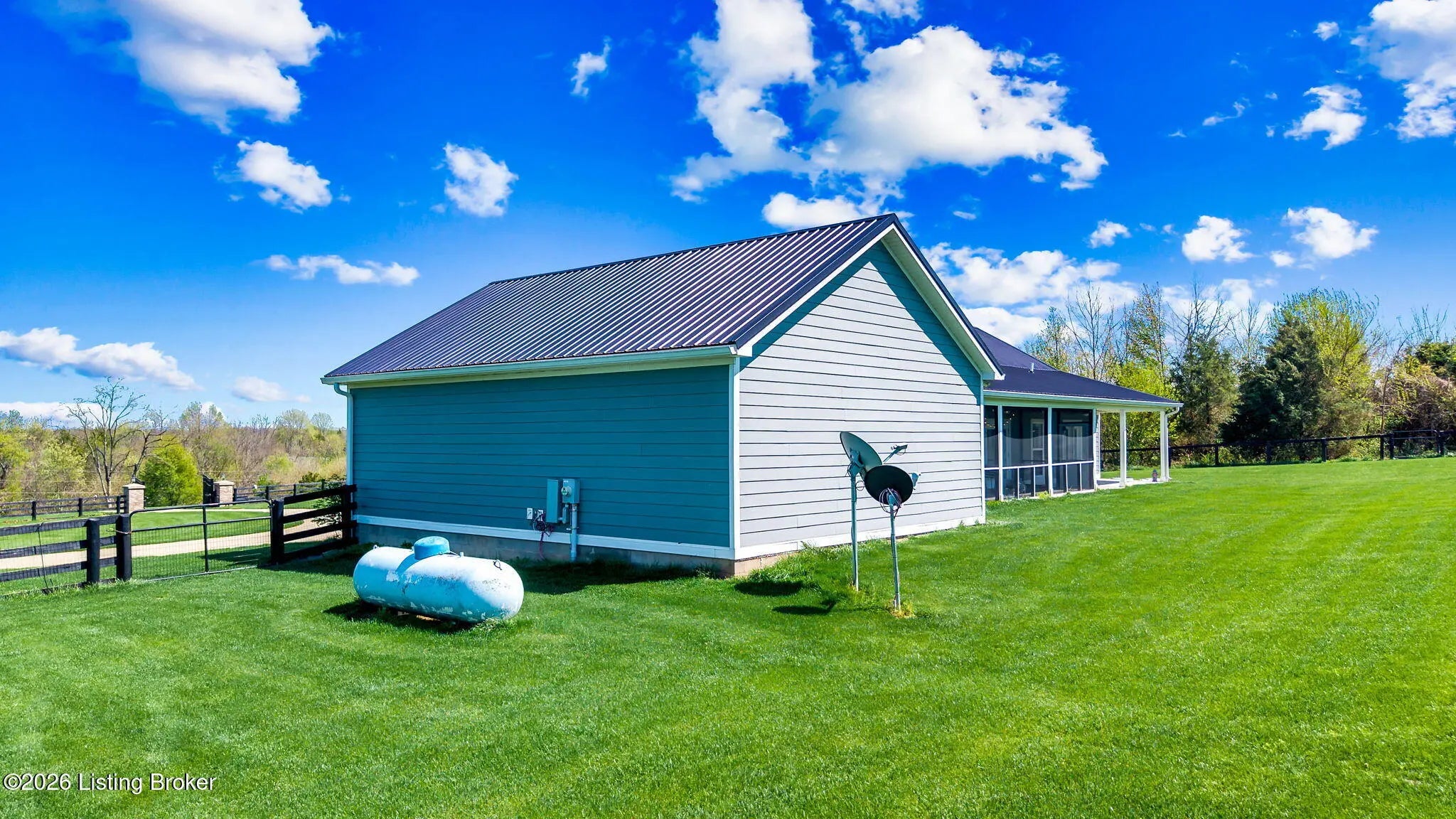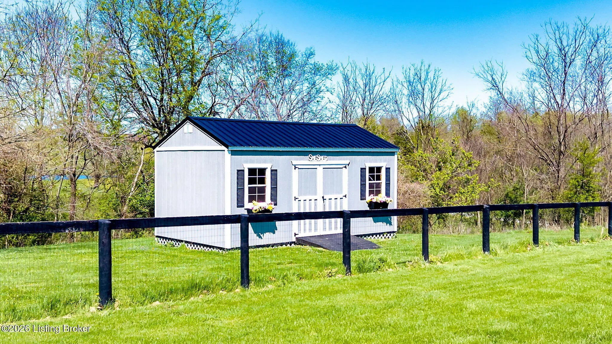 Welcome to your own private slice of Kentucky paradise, this like-new ranch home, built in 2017 and set on 5.5 beautiful acres in Shelby County, offers the perfect blend of modern comfort, low-maintenance living, and peaceful surroundings. From the moment you arrive, you'll appreciate the thoughtfully designed, maintenance-free exterior featuring durable Hardie plank siding and a metal roof built to last. The fully fenced front yard, complete with remote controlled gate and irrigation system, creates a picture-perfect setting while offering both security and convenience. A charming front porch invites you to relax and take in the serene views, while the screened-in back patio overlooks open pasture and wooded areas, ideal for unwinding or entertaining. Inside, the home showcases a bright, open floor plan with wide-plank LVP flooring, plantation shutters, abundant recessed lighting, and upgraded fixtures throughout. The heart of the home is the stunning kitchen, featuring custom cabinetry, exceptional storage, a large center island, and high-end stainless steel appliances, including a 36-inch gas range, double ovens, refrigerator, and a secondary beverage fridge. The kitchen flows seamlessly into the vaulted great room, where a cozy gas fireplace and expansive space create the perfect gathering area. The spacious primary suite is a true retreat, highlighted by a double tray ceiling and direct access to the back patio. The luxurious en suite bath features a large tiled walk-in shower with bench seating, a soaking tub, and an oversized walk-in closet. Two additional bedrooms are generously sized, and the 2nd bathroom offers another large walk-in shower with quality finishes. Additional features include a large two-car garage with a dedicated storage area, pull-down attic access with floored storage space, and a versatile outbuilding perfect for lawn equipment, or easily transformed into a workshop or "she shed." Enjoy the peace and privacy of country living without sacrificing convenience. Ideally located near Shelbyville, Simpsonville, Taylorsville, I-64, the Gene Snyder Freeway, and an abundance of shopping, dining, parks, and family activities, this property truly offers the best of both worlds. Homes like this don't come around often, schedule your private showing today and experience it for yourself.