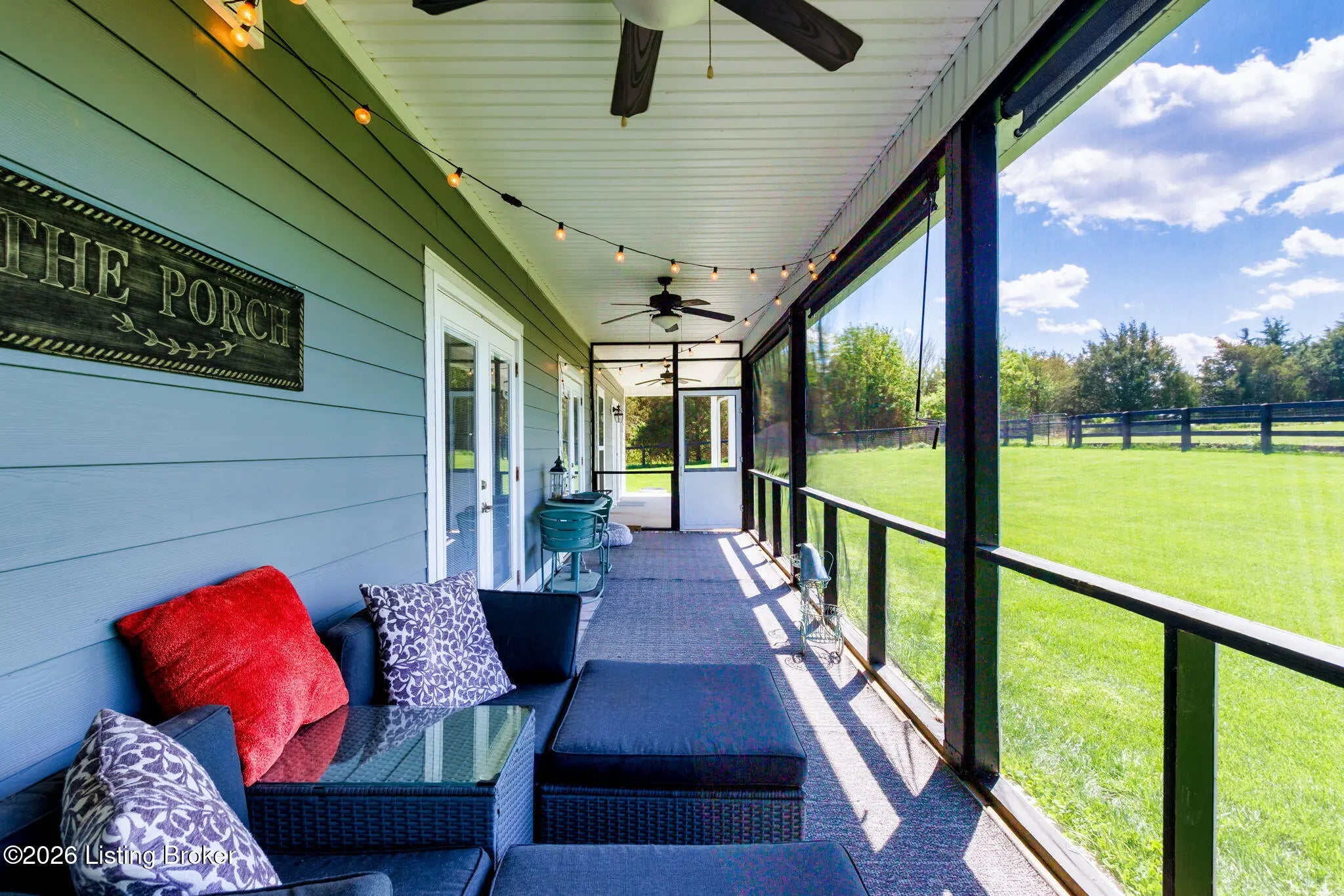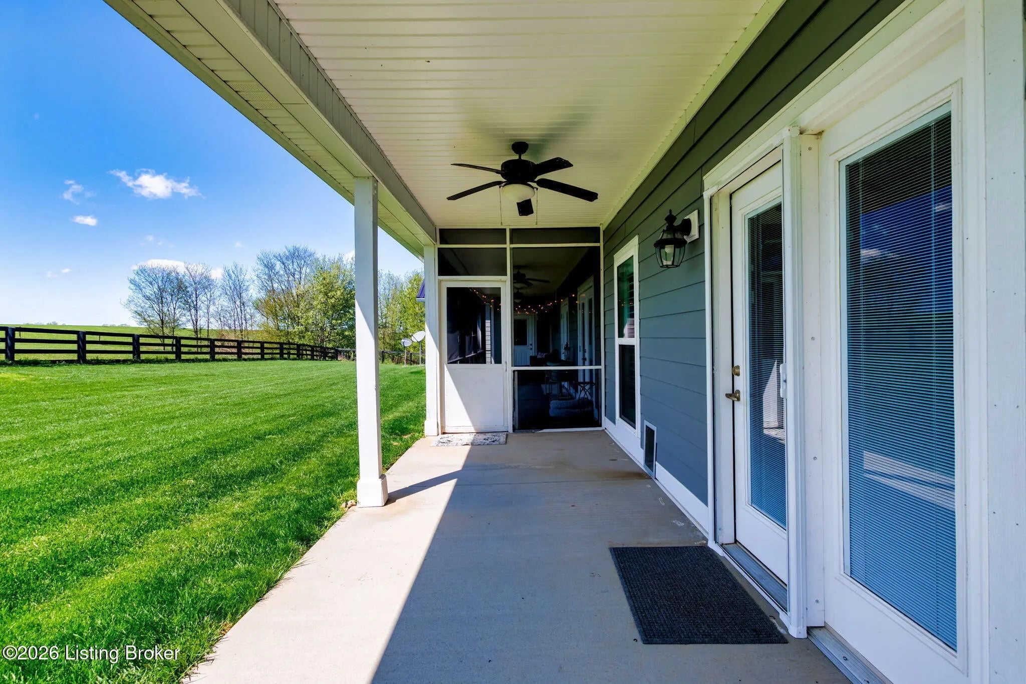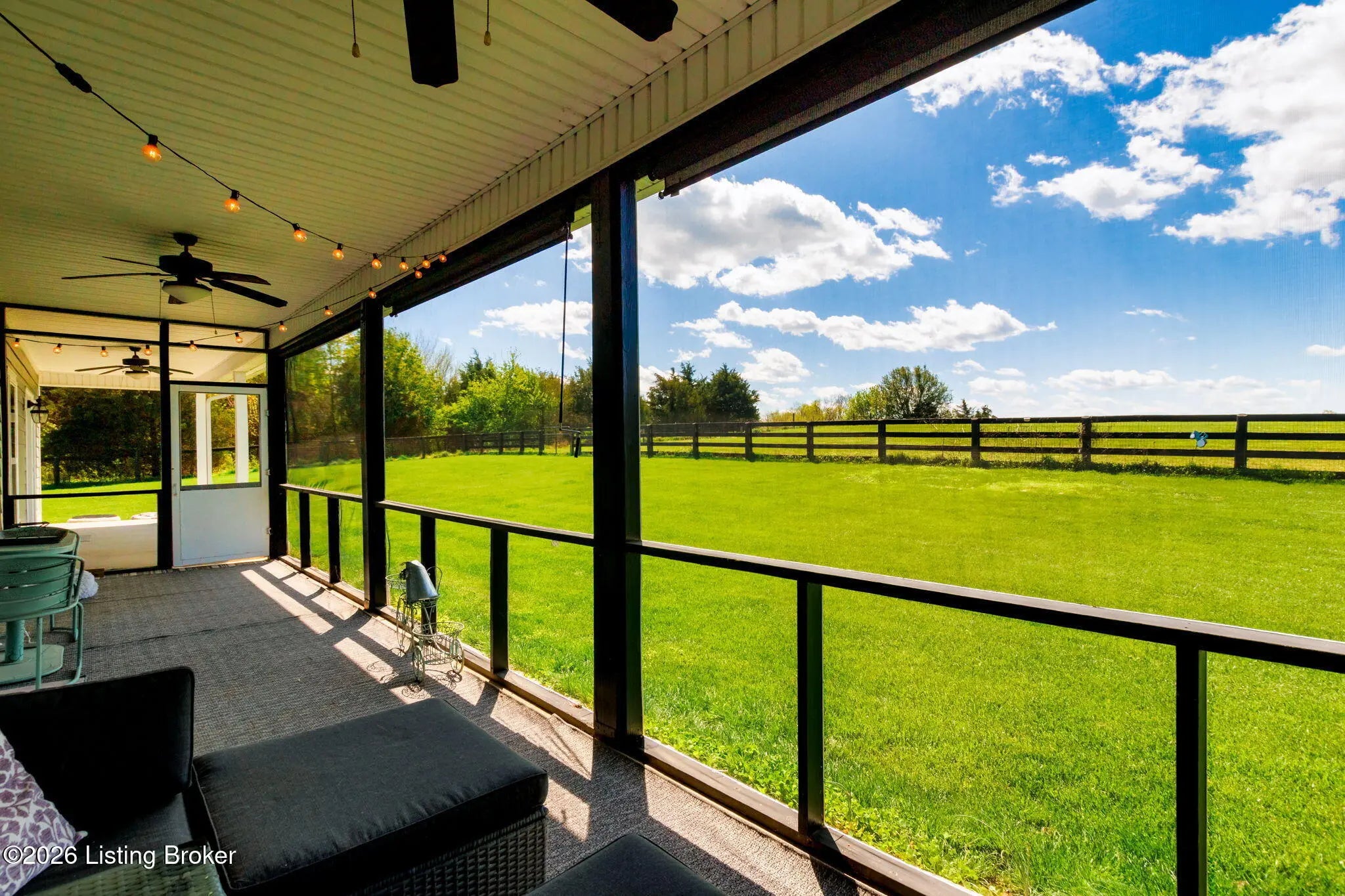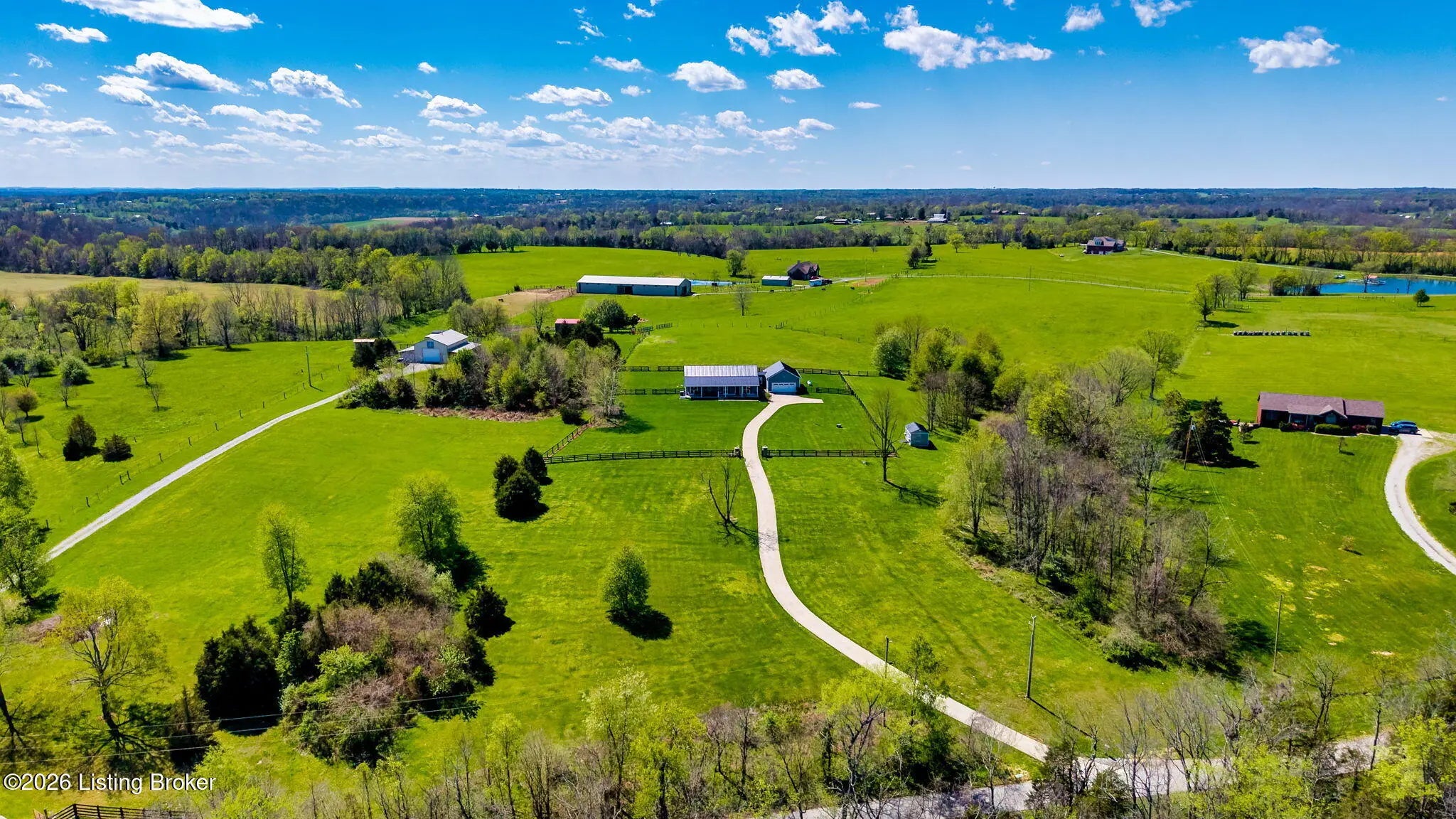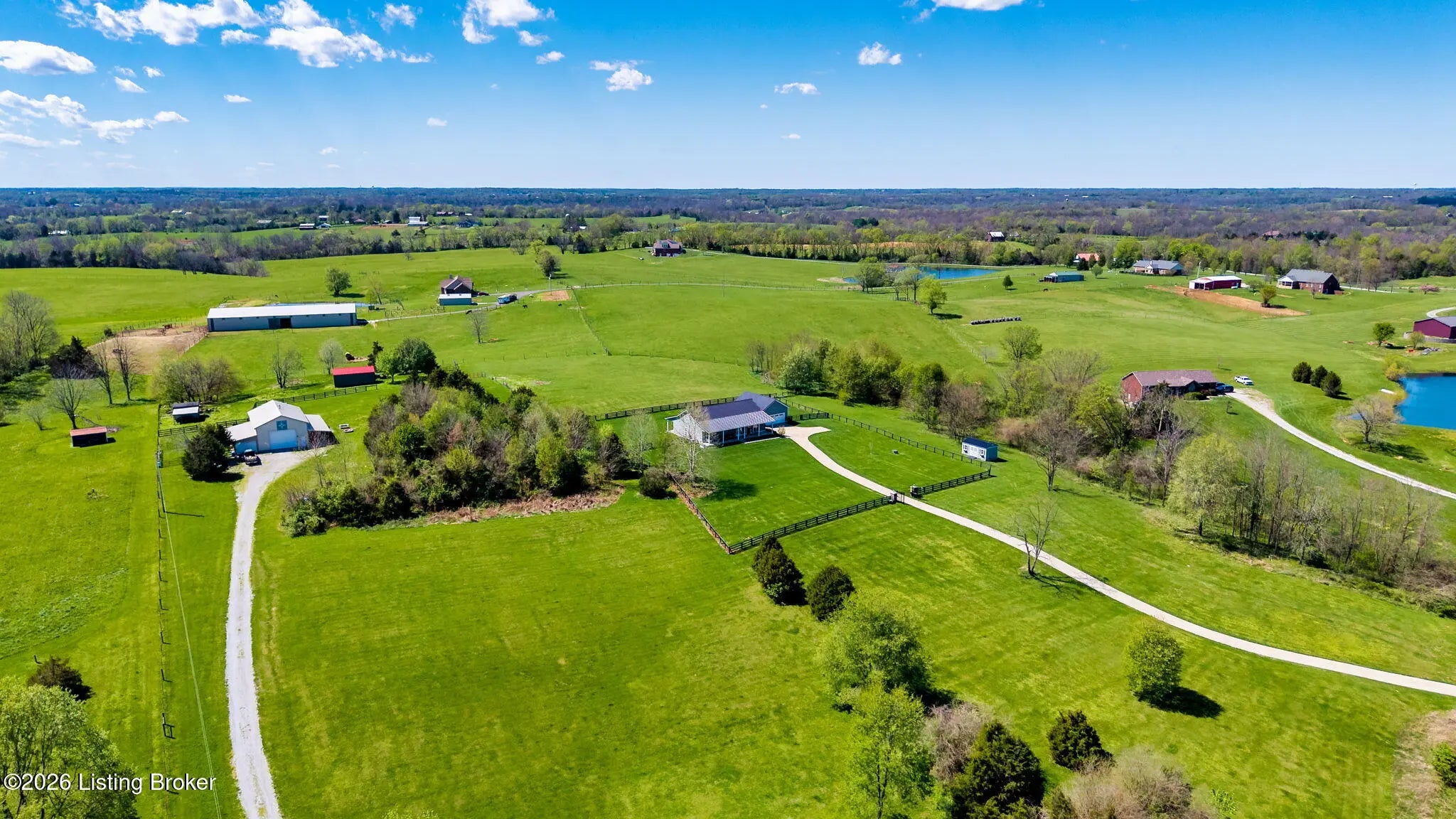 Welcome to your own private slice of Kentucky paradise, this like-new ranch home, built in 2017 and set on 5.5 beautiful acres in Shelby County, offers the perfect blend of modern comfort, low-maintenance living, and peaceful surroundings. From the moment you arrive, you'll appreciate the thoughtfully designed, maintenance-free exterior featuring durable Hardie plank siding and a metal roof built to last. The fully fenced front yard, complete with remote controlled gate and irrigation system, creates a picture-perfect setting while offering both security and convenience. A charming front porch invites you to relax and take in the serene views, while the screened-in back patio overlooks open pasture and wooded areas, ideal for unwinding or entertaining. Inside, the home showcases a bright, open floor plan with wide-plank LVP flooring, plantation shutters, abundant recessed lighting, and upgraded fixtures throughout. The heart of the home is the stunning kitchen, featuring custom cabinetry, exceptional storage, a large center island, and high-end stainless steel appliances, including a 36-inch gas range, double ovens, refrigerator, and a secondary beverage fridge. The kitchen flows seamlessly into the vaulted great room, where a cozy gas fireplace and expansive space create the perfect gathering area. The spacious primary suite is a true retreat, highlighted by a double tray ceiling and direct access to the back patio. The luxurious en suite bath features a large tiled walk-in shower with bench seating, a soaking tub, and an oversized walk-in closet. Two additional bedrooms are generously sized, and the 2nd bathroom offers another large walk-in shower with quality finishes. Additional features include a large two-car garage with a dedicated storage area, pull-down attic access with floored storage space, and a versatile outbuilding perfect for lawn equipment, or easily transformed into a workshop or "she shed." Enjoy the peace and privacy of country living without sacrificing convenience. Ideally located near Shelbyville, Simpsonville, Taylorsville, I-64, the Gene Snyder Freeway, and an abundance of shopping, dining, parks, and family activities, this property truly offers the best of both worlds. Homes like this don't come around often, schedule your private showing today and experience it for yourself.