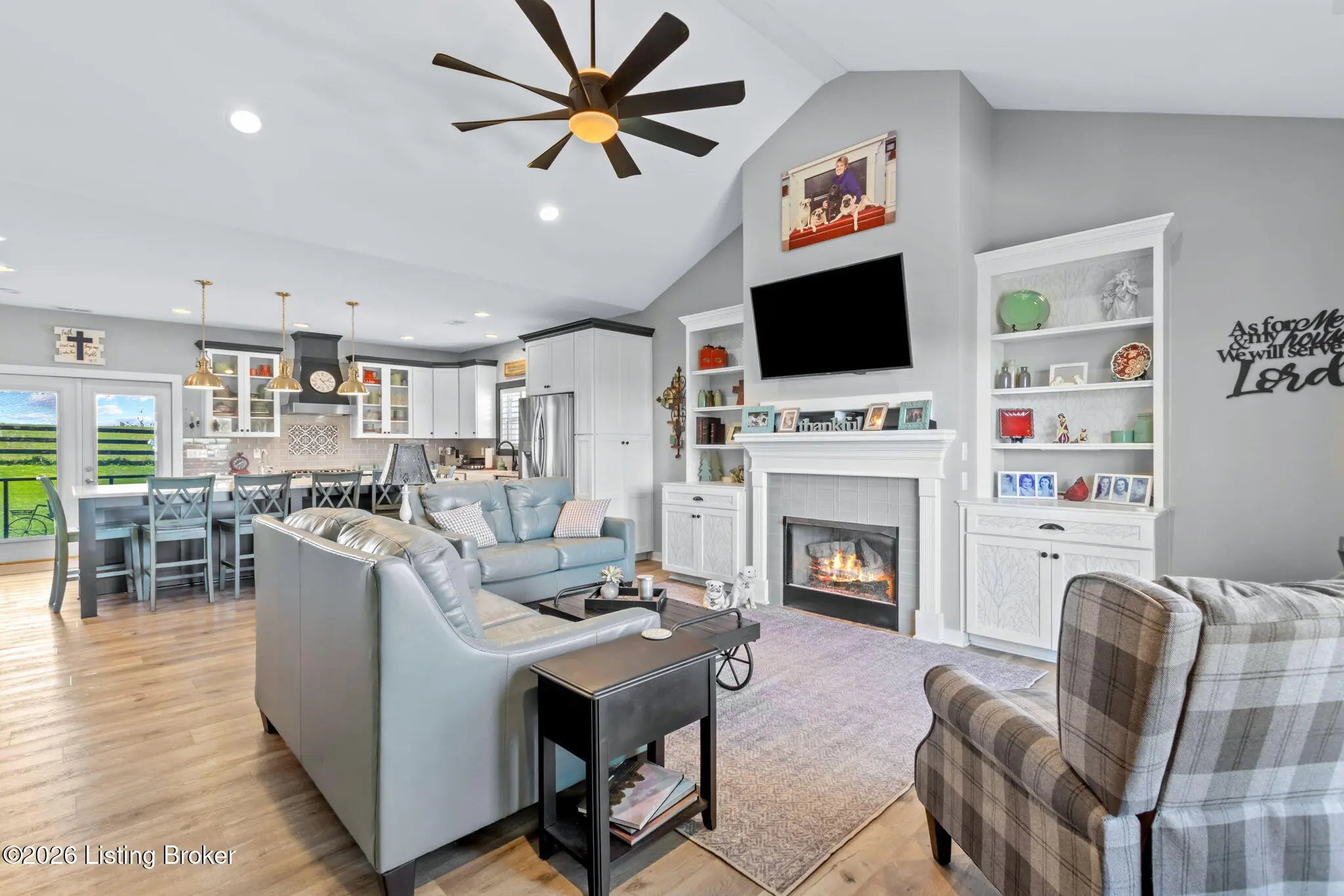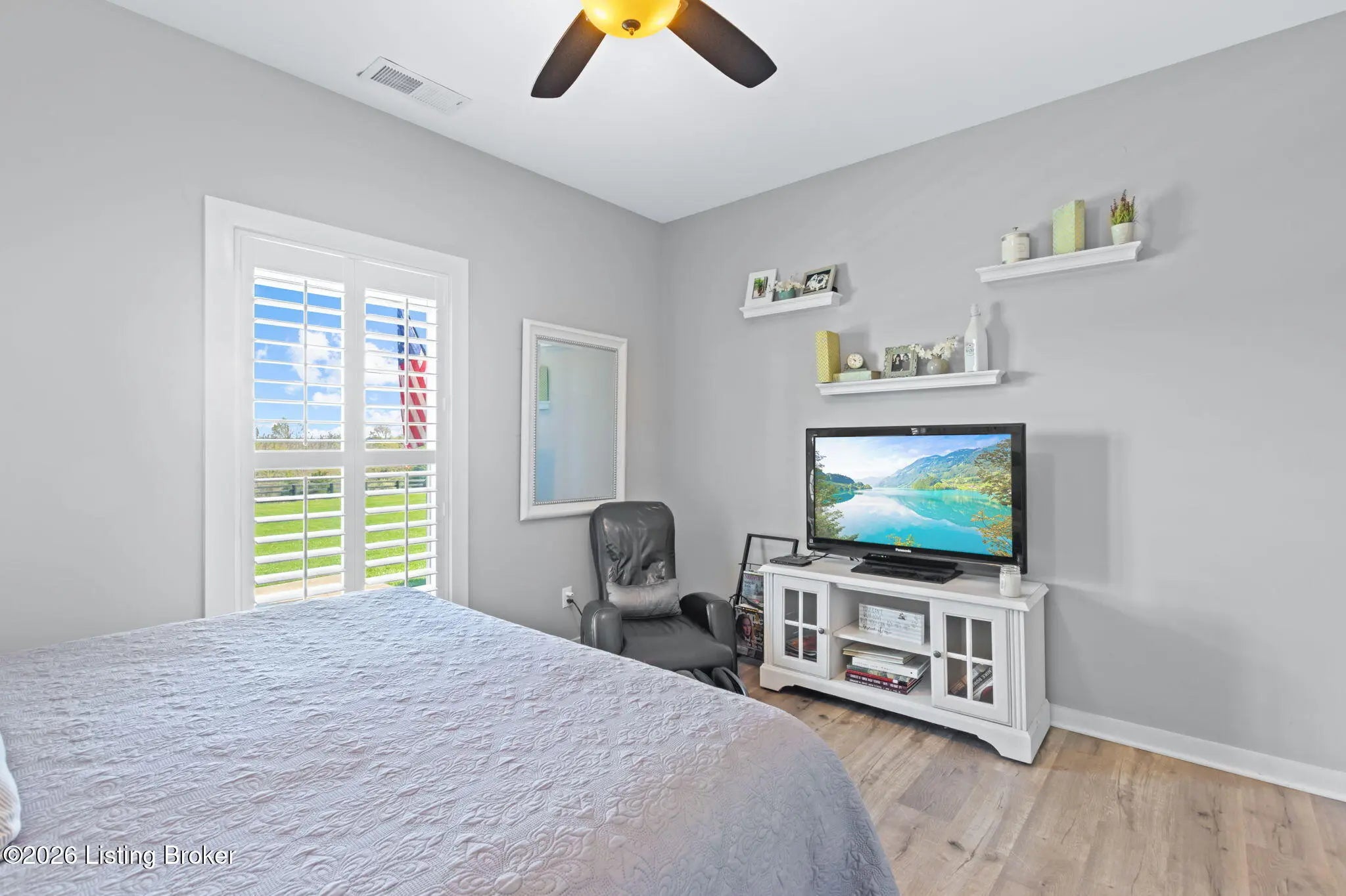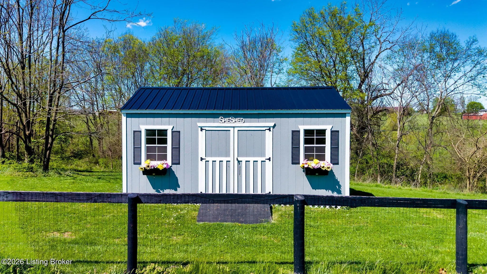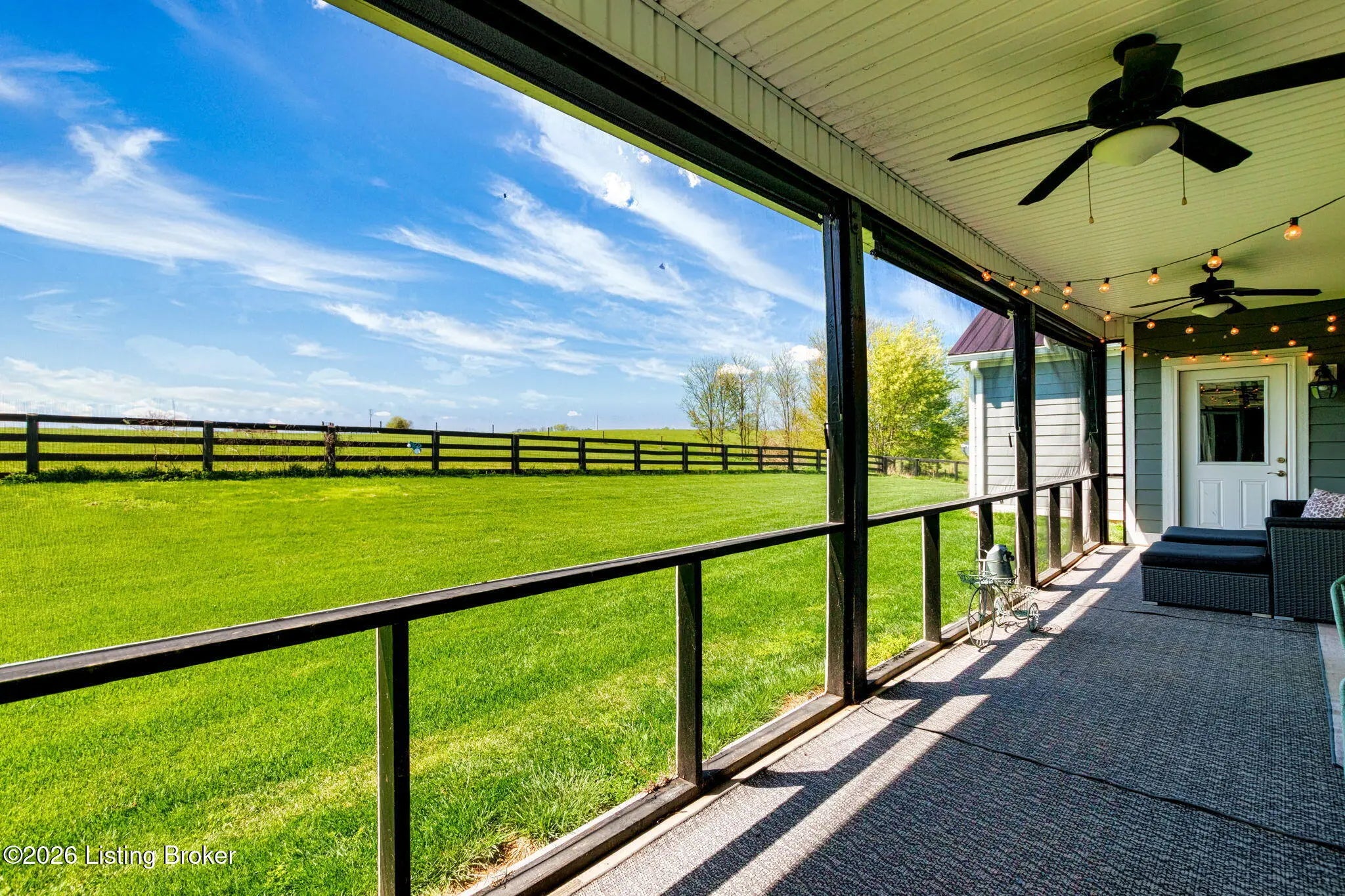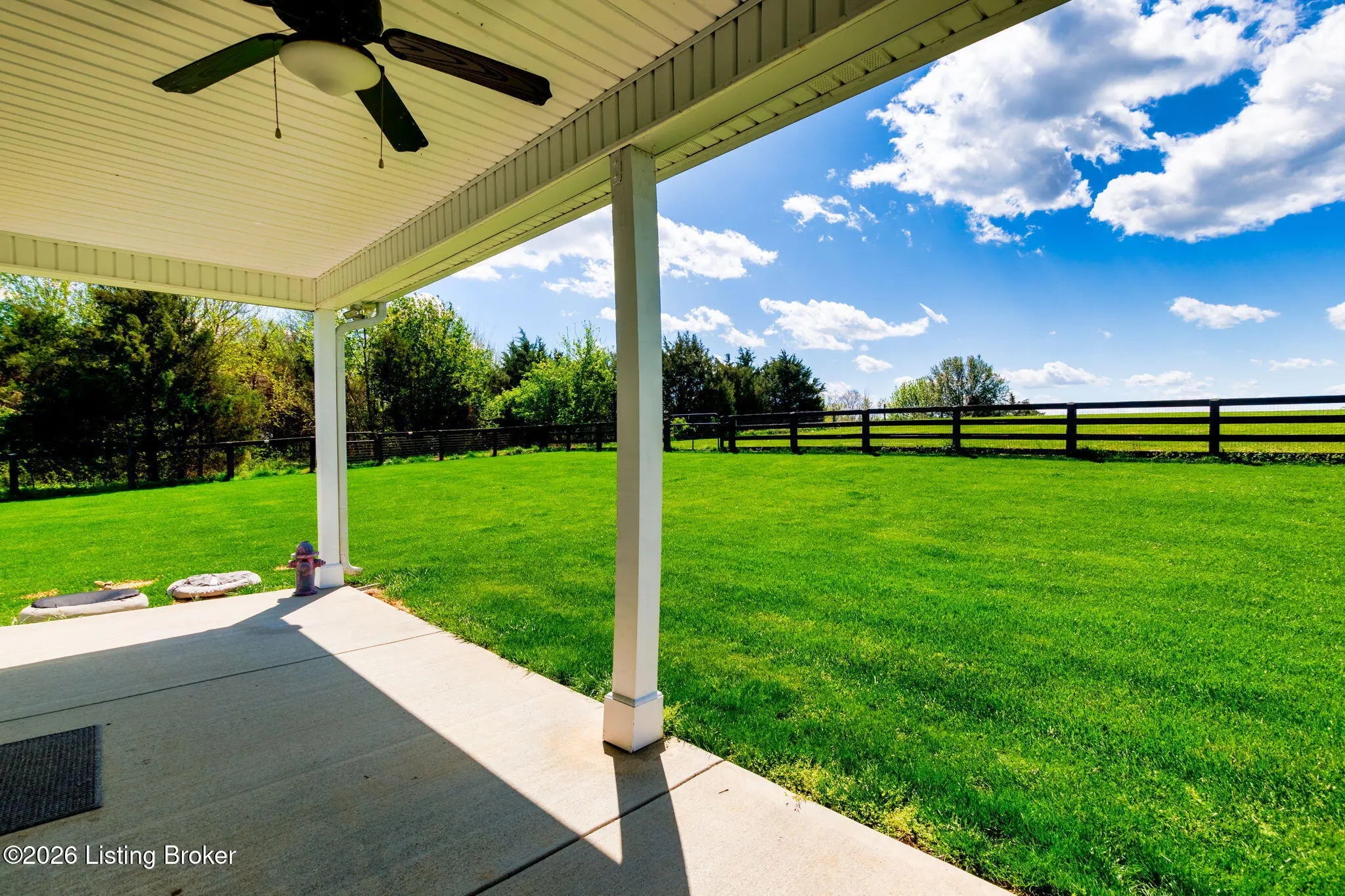 Welcome to your own private slice of Kentucky paradise, this like-new ranch home, built in 2017 and set on 5.5 beautiful acres in Shelby County, offers the perfect blend of modern comfort, low-maintenance living, and peaceful surroundings. From the moment you arrive, you'll appreciate the thoughtfully designed, maintenance-free exterior featuring durable Hardie plank siding and a metal roof built to last. The fully fenced front yard, complete with remote controlled gate and irrigation system, creates a picture-perfect setting while offering both security and convenience. A charming front porch invites you to relax and take in the serene views, while the screened-in back patio overlooks open pasture and wooded areas, ideal for unwinding or entertaining. Inside, the home showcases a bright, open floor plan with wide-plank LVP flooring, plantation shutters, abundant recessed lighting, and upgraded fixtures throughout. The heart of the home is the stunning kitchen, featuring custom cabinetry, exceptional storage, a large center island, and high-end stainless steel appliances, including a 36-inch gas range, double ovens, refrigerator, and a secondary beverage fridge. The kitchen flows seamlessly into the vaulted great room, where a cozy gas fireplace and expansive space create the perfect gathering area. The spacious primary suite is a true retreat, highlighted by a double tray ceiling and direct access to the back patio. The luxurious en suite bath features a large tiled walk-in shower with bench seating, a soaking tub, and an oversized walk-in closet. Two additional bedrooms are generously sized, and the 2nd bathroom offers another large walk-in shower with quality finishes. Additional features include a large two-car garage with a dedicated storage area, pull-down attic access with floored storage space, and a versatile outbuilding perfect for lawn equipment, or easily transformed into a workshop or "she shed." Enjoy the peace and privacy of country living without sacrificing convenience. Ideally located near Shelbyville, Simpsonville, Taylorsville, I-64, the Gene Snyder Freeway, and an abundance of shopping, dining, parks, and family activities, this property truly offers the best of both worlds. Homes like this don't come around often, schedule your private showing today and experience it for yourself.