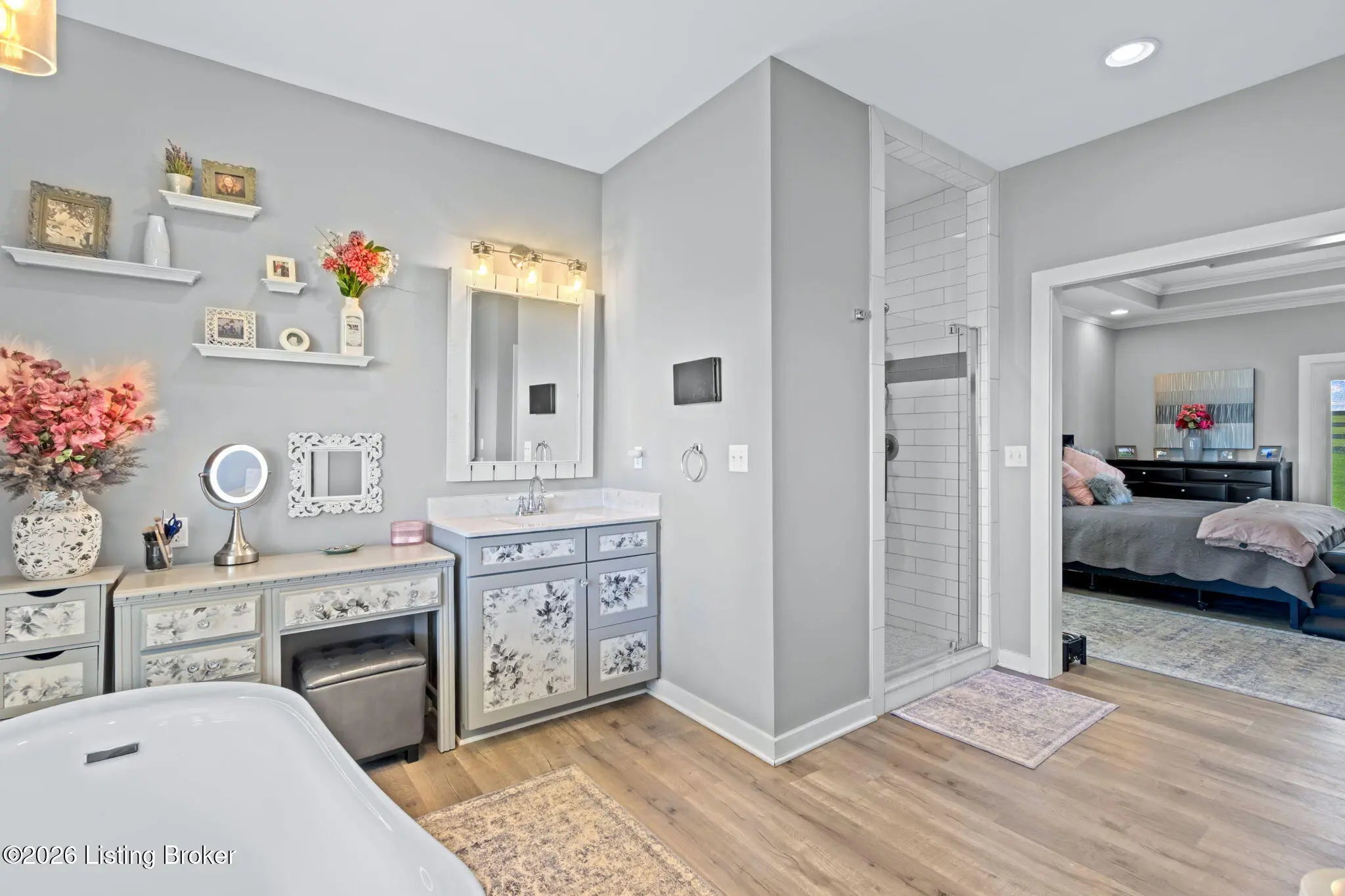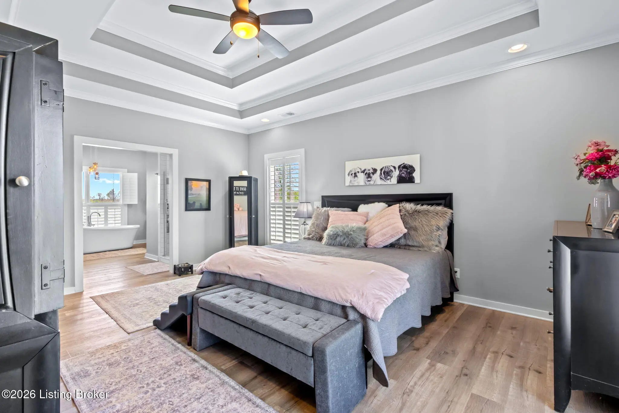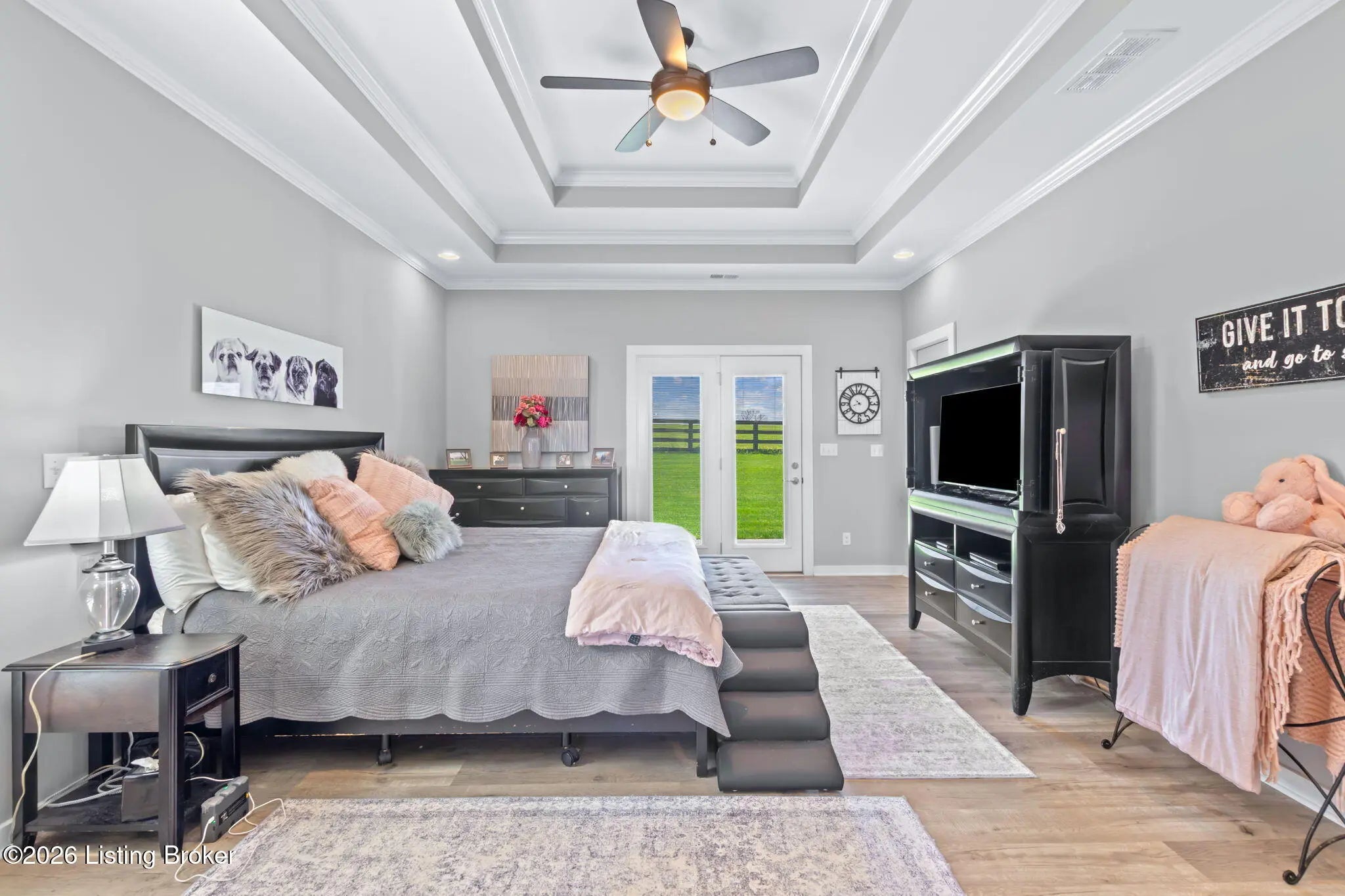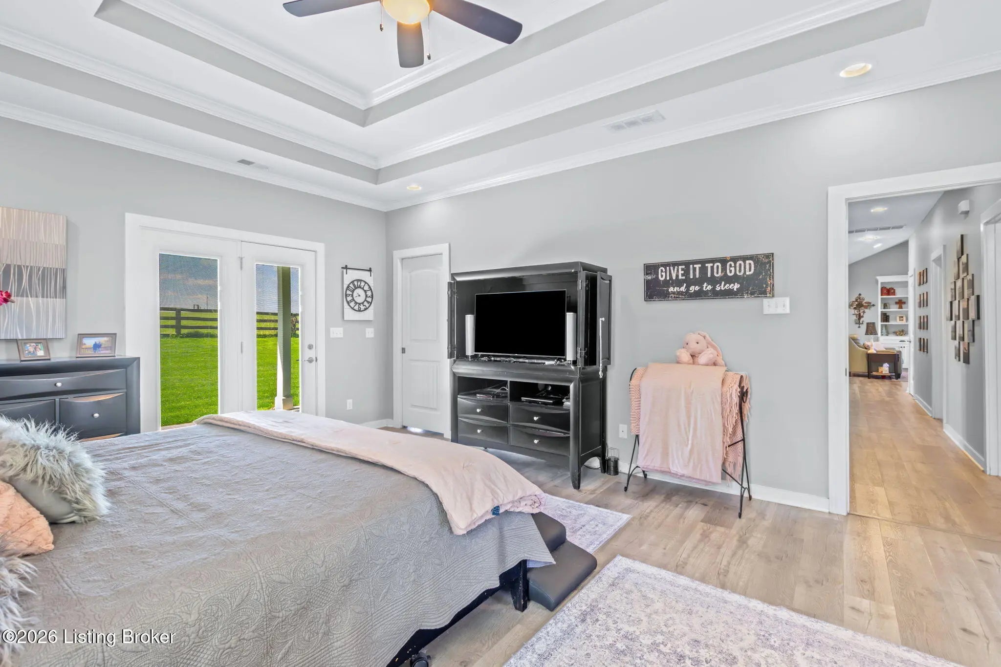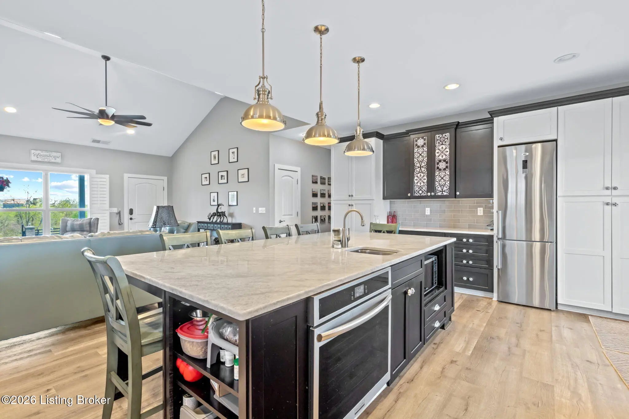 Welcome to your own private slice of Kentucky paradise, this like-new ranch home, built in 2017 and set on 5.5 beautiful acres in Shelby County, offers the perfect blend of modern comfort, low-maintenance living, and peaceful surroundings. From the moment you arrive, you'll appreciate the thoughtfully designed, maintenance-free exterior featuring durable Hardie plank siding and a metal roof built to last. The fully fenced front yard, complete with remote controlled gate and irrigation system, creates a picture-perfect setting while offering both security and convenience. A charming front porch invites you to relax and take in the serene views, while the screened-in back patio overlooks open pasture and wooded areas, ideal for unwinding or entertaining. Inside, the home showcases a bright, open floor plan with wide-plank LVP flooring, plantation shutters, abundant recessed lighting, and upgraded fixtures throughout. The heart of the home is the stunning kitchen, featuring custom cabinetry, exceptional storage, a large center island, and high-end stainless steel appliances, including a 36-inch gas range, double ovens, refrigerator, and a secondary beverage fridge. The kitchen flows seamlessly into the vaulted great room, where a cozy gas fireplace and expansive space create the perfect gathering area. The spacious primary suite is a true retreat, highlighted by a double tray ceiling and direct access to the back patio. The luxurious en suite bath features a large tiled walk-in shower with bench seating, a soaking tub, and an oversized walk-in closet. Two additional bedrooms are generously sized, and the 2nd bathroom offers another large walk-in shower with quality finishes. Additional features include a large two-car garage with a dedicated storage area, pull-down attic access with floored storage space, and a versatile outbuilding perfect for lawn equipment, or easily transformed into a workshop or "she shed." Enjoy the peace and privacy of country living without sacrificing convenience. Ideally located near Shelbyville, Simpsonville, Taylorsville, I-64, the Gene Snyder Freeway, and an abundance of shopping, dining, parks, and family activities, this property truly offers the best of both worlds. Homes like this don't come around often, schedule your private showing today and experience it for yourself.