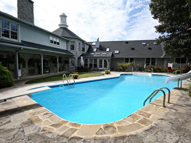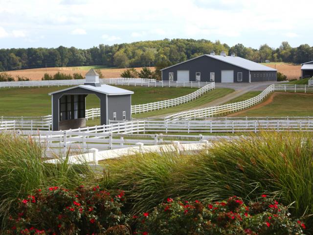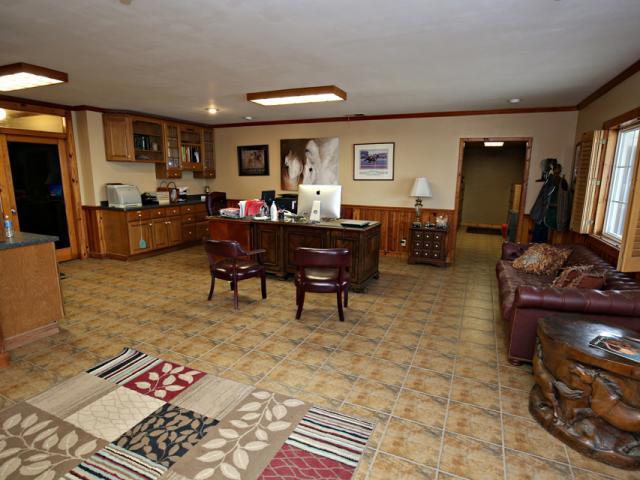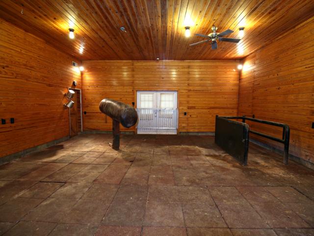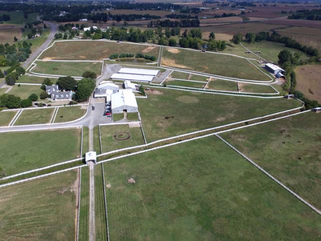 World class horse farm. Stone manor house sits amidst green rolling fields lined with miles of white fences. This unique and stately home is built for entertaining with 5 bedrooms and features a rustic family room with a soaring stone fireplace and trussed ceiling with ancient beams. There is a formal den with exotic wood paneling and an enormous great room with second kitchen, billiard room and dramatic fireplace with French imported mantle. Beyond the main house, there are 2 apartments on the farm with 2 BRs each and 3 homes for staff across the street. This is a top notch horse breeding facility with USDA approved breeding lab. The stallion barn is heated and features 15 stalls, breeding/collection shed, labs, CCTV, 2 offices (manager and visiting vets), exam area & attached indoor More...arena. The lower barns were built in 2008 and have 52 stalls each (12x12 and 12x16). The upper barn has 24 stalls (12x16). There are separate hay, straw and implement barns. This farm was developed/designed for safety & comfort of the horse and efficiency for those that care for them. Paddocks and fields are fenced in low maintenance white vinyl fencing and many also have run-in sheds. Located approx 30 minutes from Ellis Park. Seller may consider dividing. Don't need this many stalls? Ask about removing lower barns and converting to outdoor arena complex